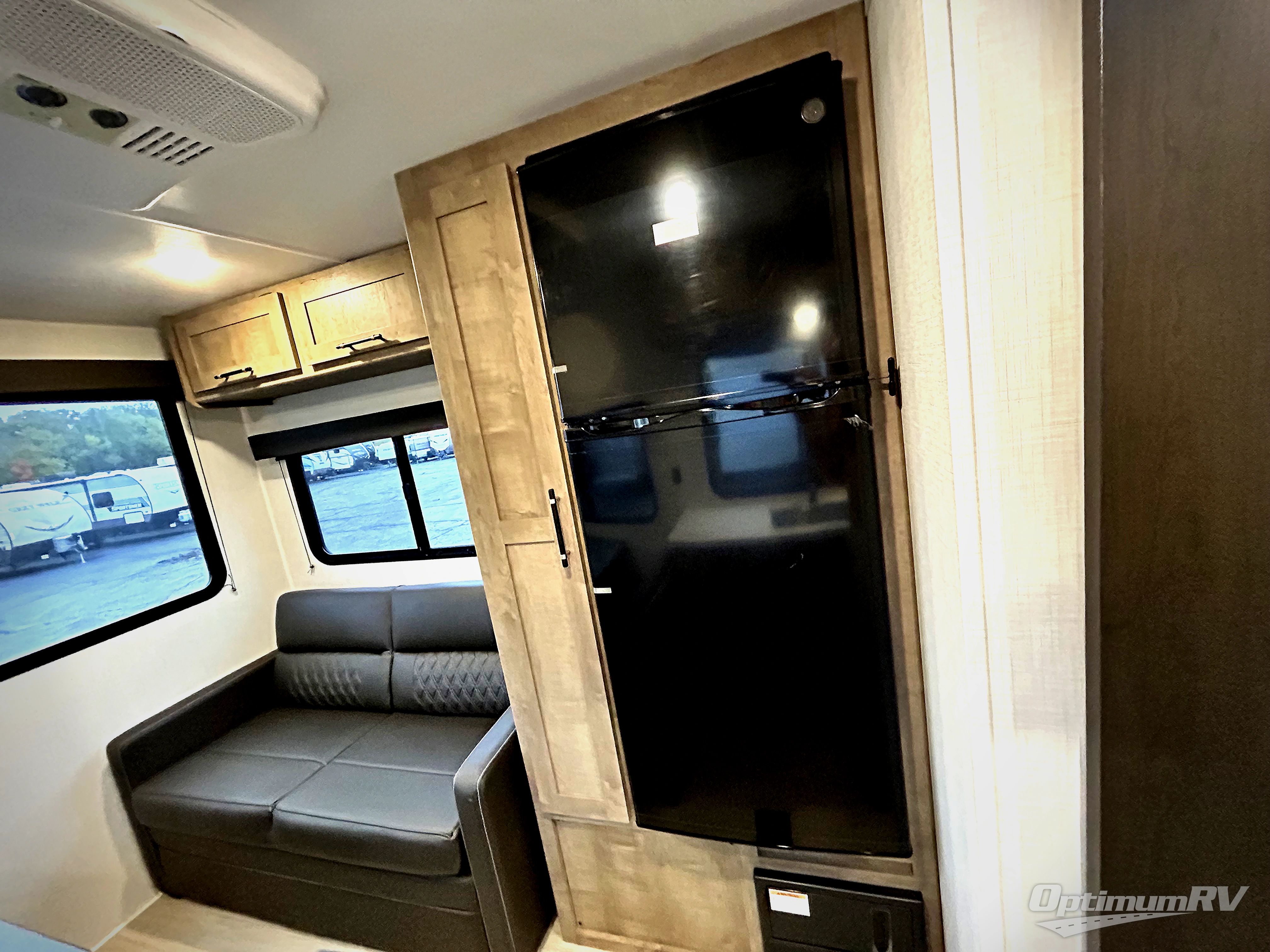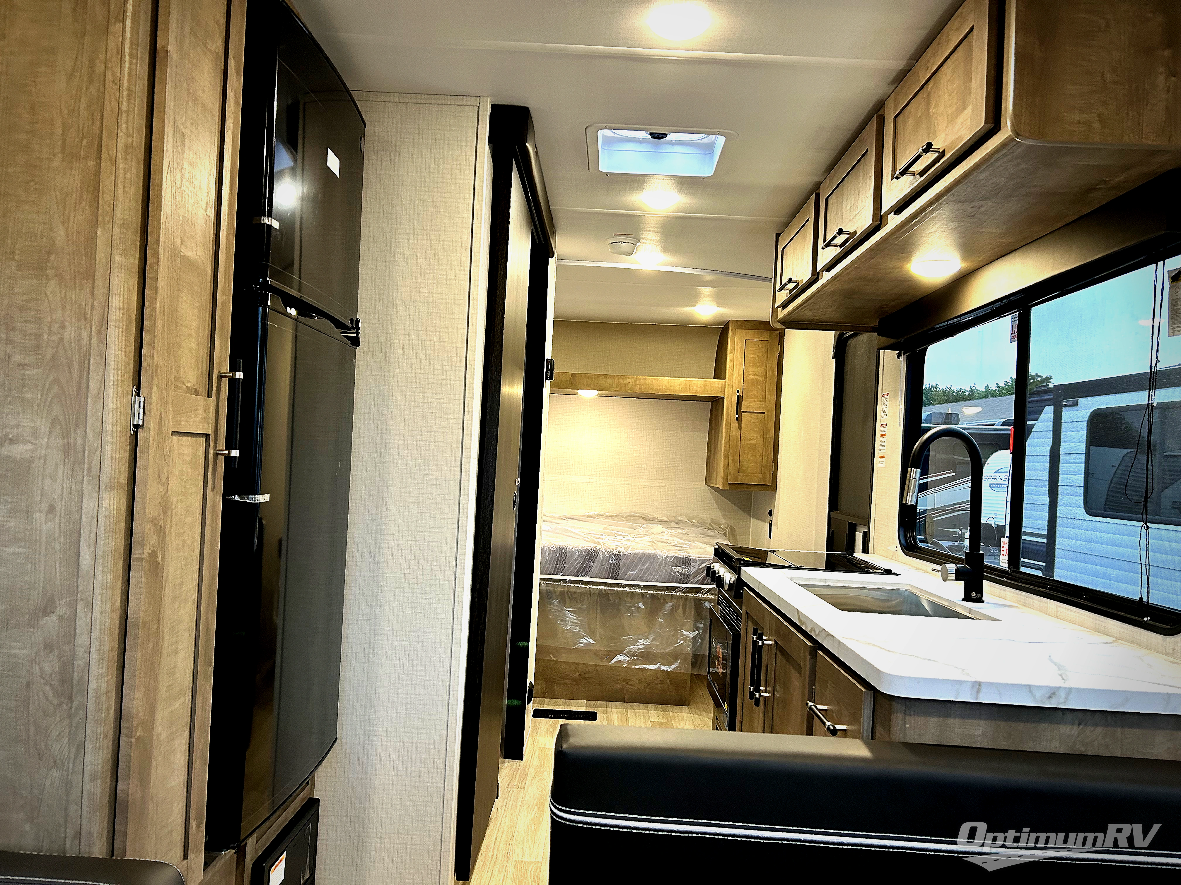 This trailer is perfect for your crew of four to six. There is a queen bed in the front bedroom, along with dual closets and nightstands to keep your things tidy. You can dine each day on the booth dinette, relax on the sofa, and house additional guests here at night. The kitchen includes everything you need to prepare meals each day, including a gas range, microwave, and a 10-cu. ft. 12V refrigerator for cold items. And the full bath on board lets you stay clean throughout each camping trip!