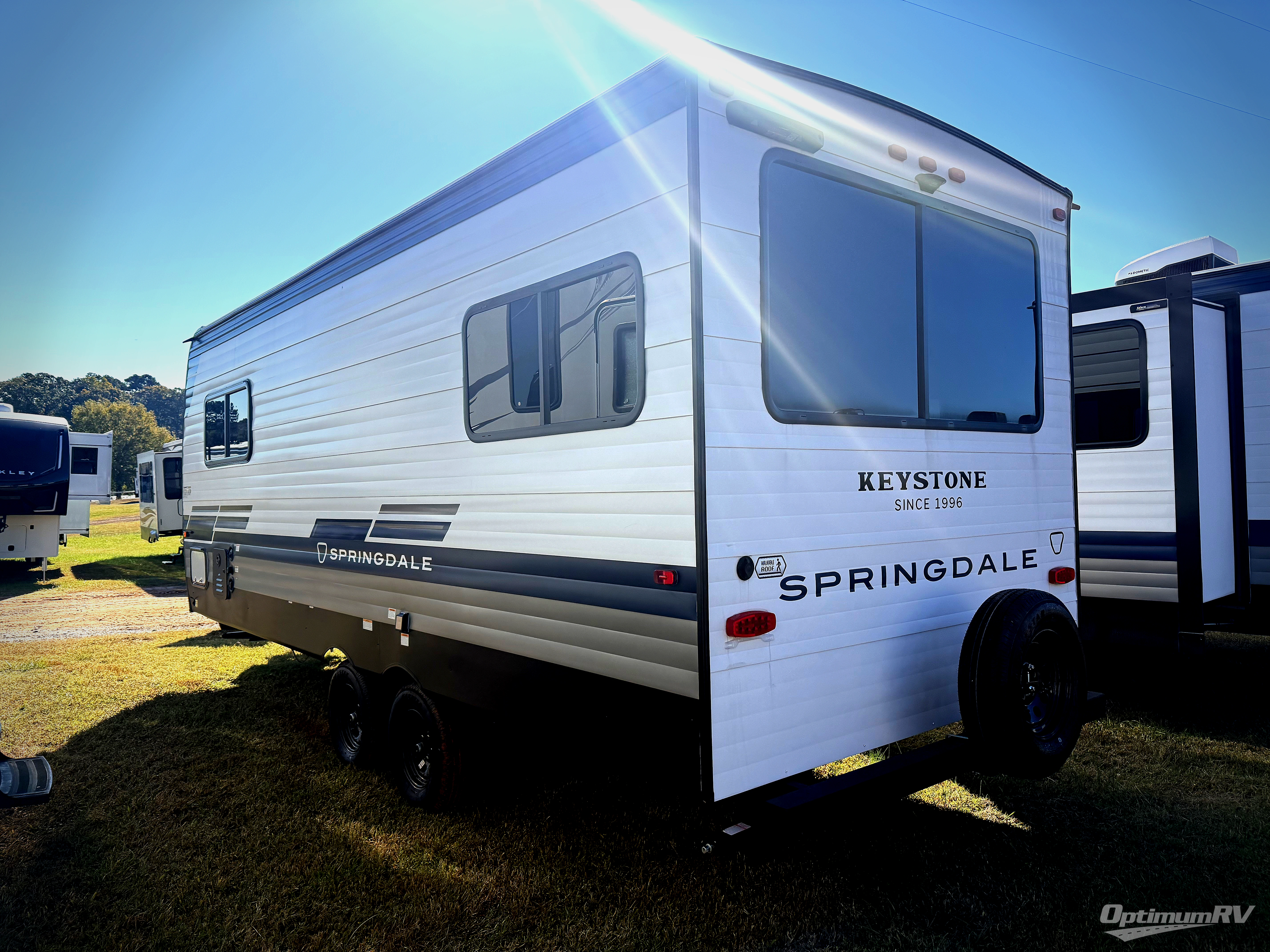 The Springdale Classic travel trailers by Keystone will provide you and your family many great outdoor experiences and it will also be kind to your pocketbook. Each one is constructed with a walkable roof and an I-beam frame with stamped steel cross-members and outriggers for added strength. There are also heavy-duty stabilizer jacks and power tongue jacks outside, along with an XL entry assist handle for added convenience. Each travel trailer includes LED lighting, bedside outlets, and blackout night shades inside that will provide you with more privacy at night.