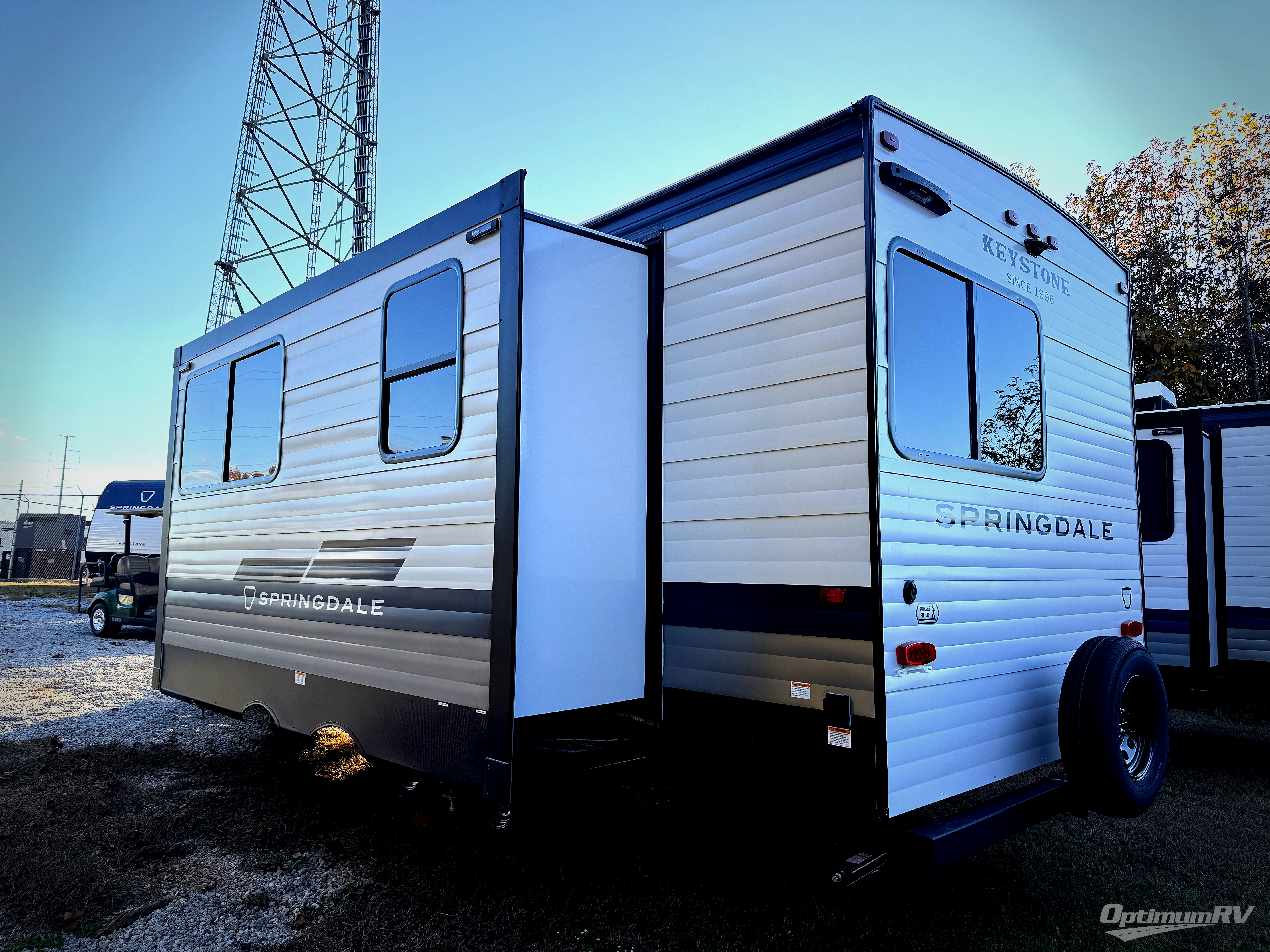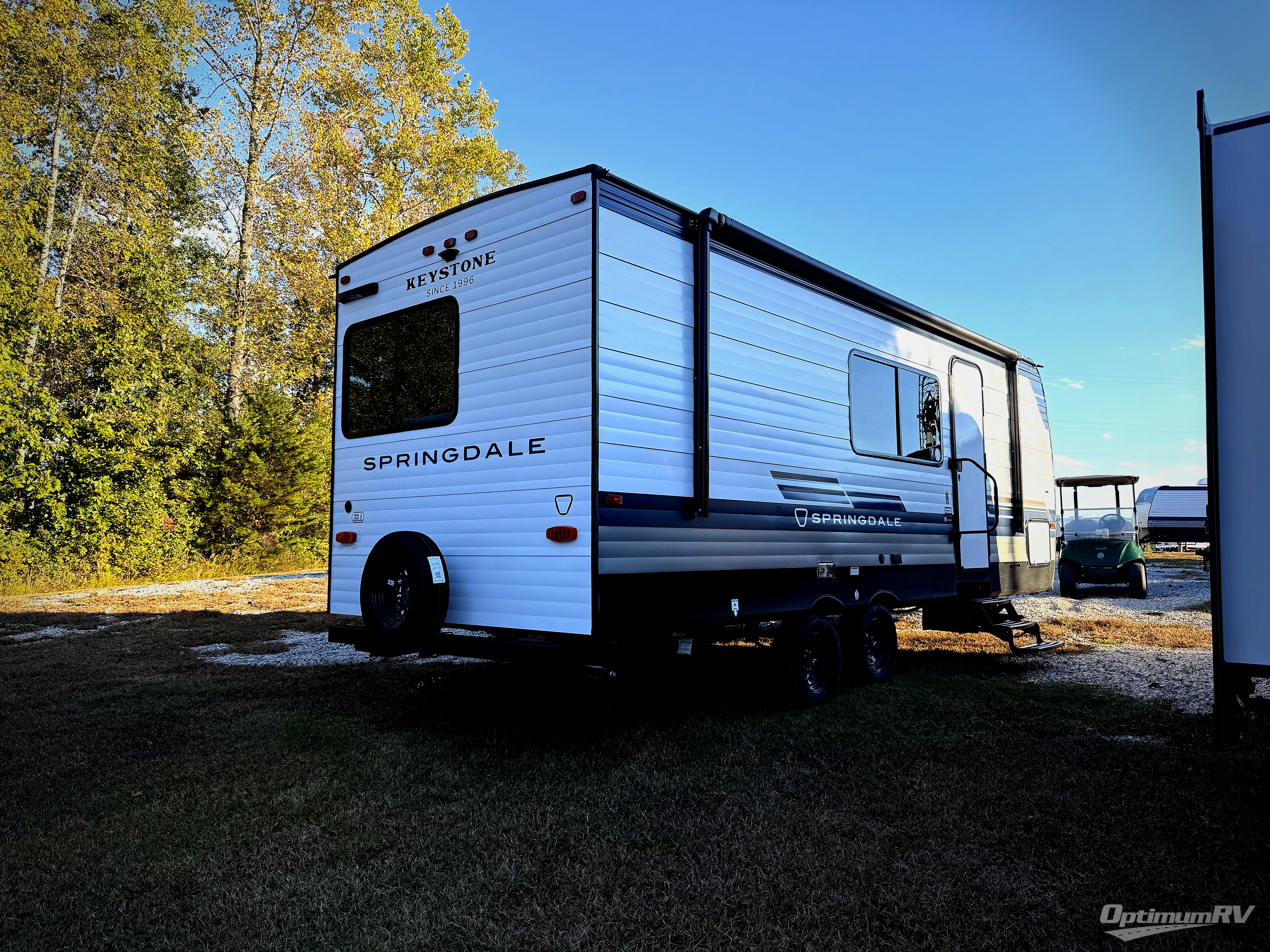 The Springdale Classic travel trailers by Keystone will provide you and your family many great outdoor experiences and it will also be kind to your pocketbook. Each one is constructed with a walkable roof and an I-beam frame with stamped steel cross-members and outriggers for added strength. There are also heavy-duty stabilizer jacks and power tongue jacks outside, along with an XL entry assist handle for added convenience. Each travel trailer includes LED lighting, bedside outlets, and blackout night shades inside that will provide you with more privacy at night.