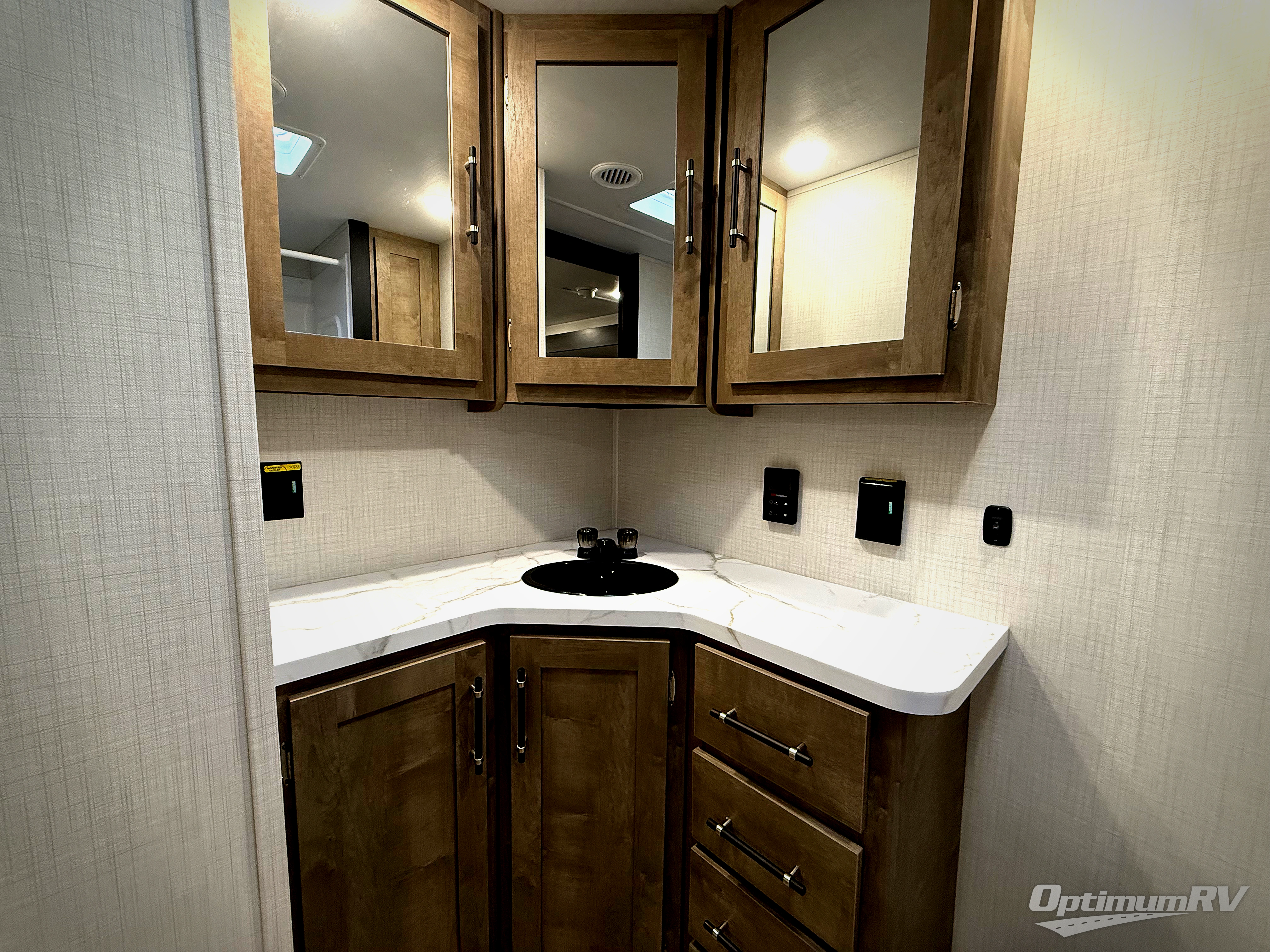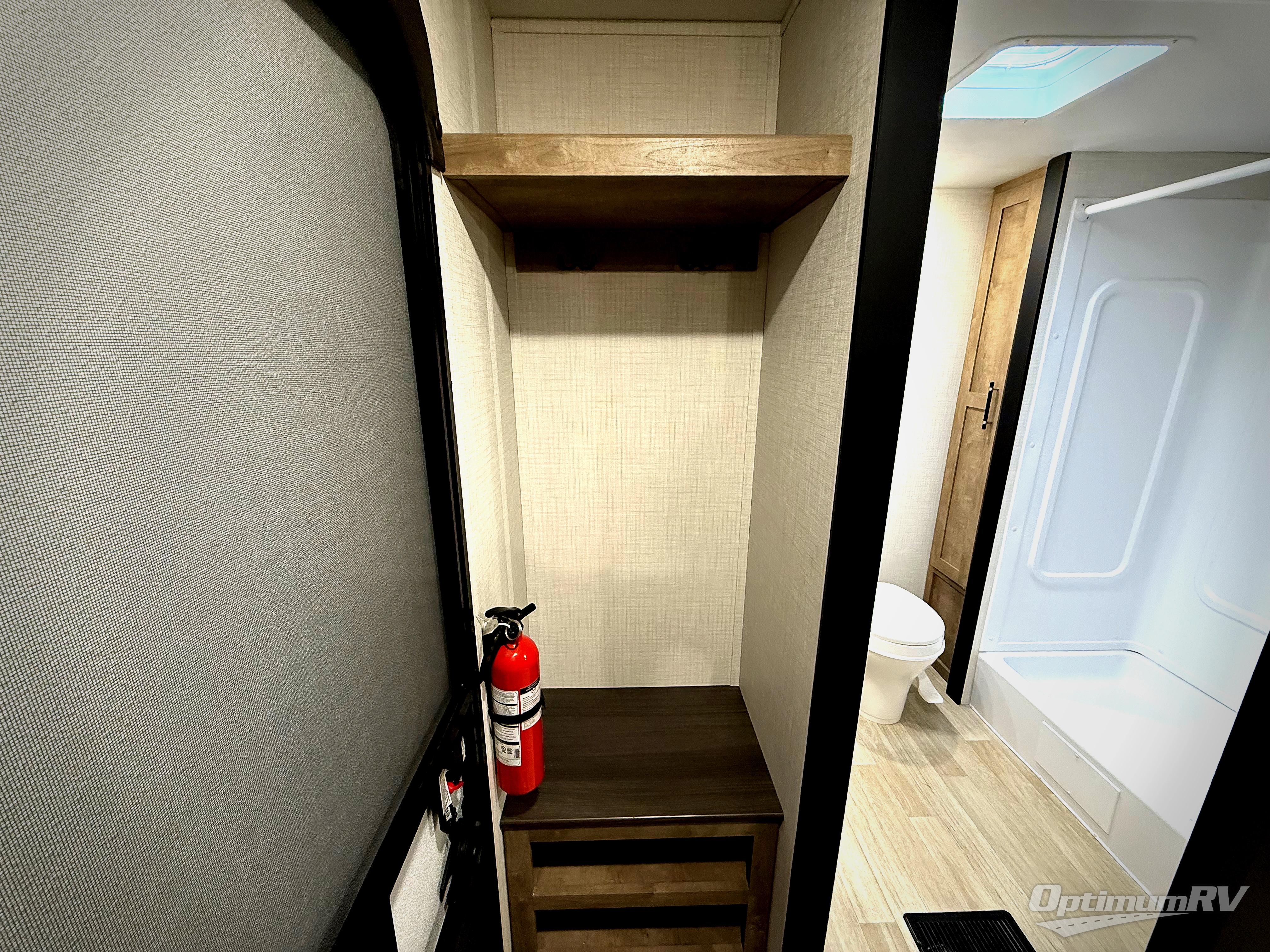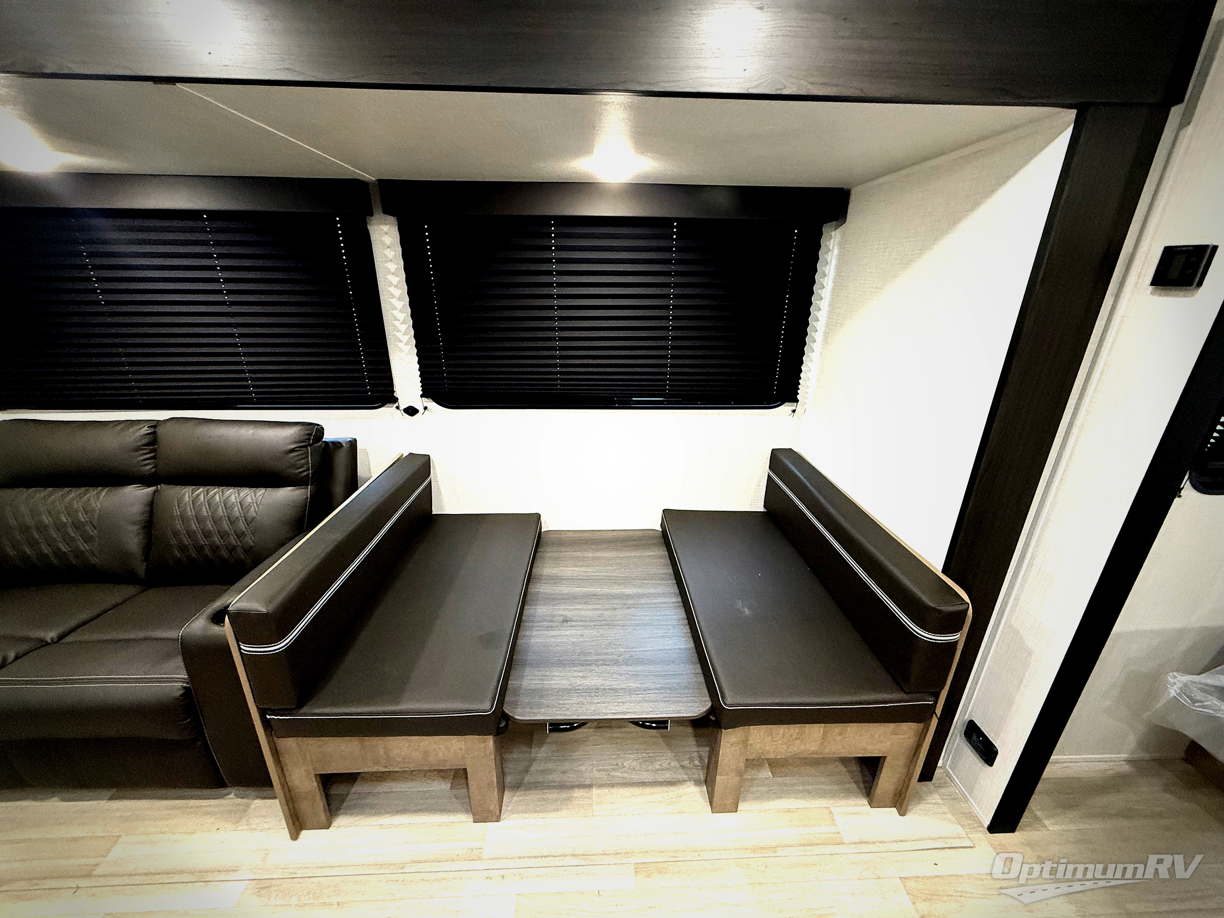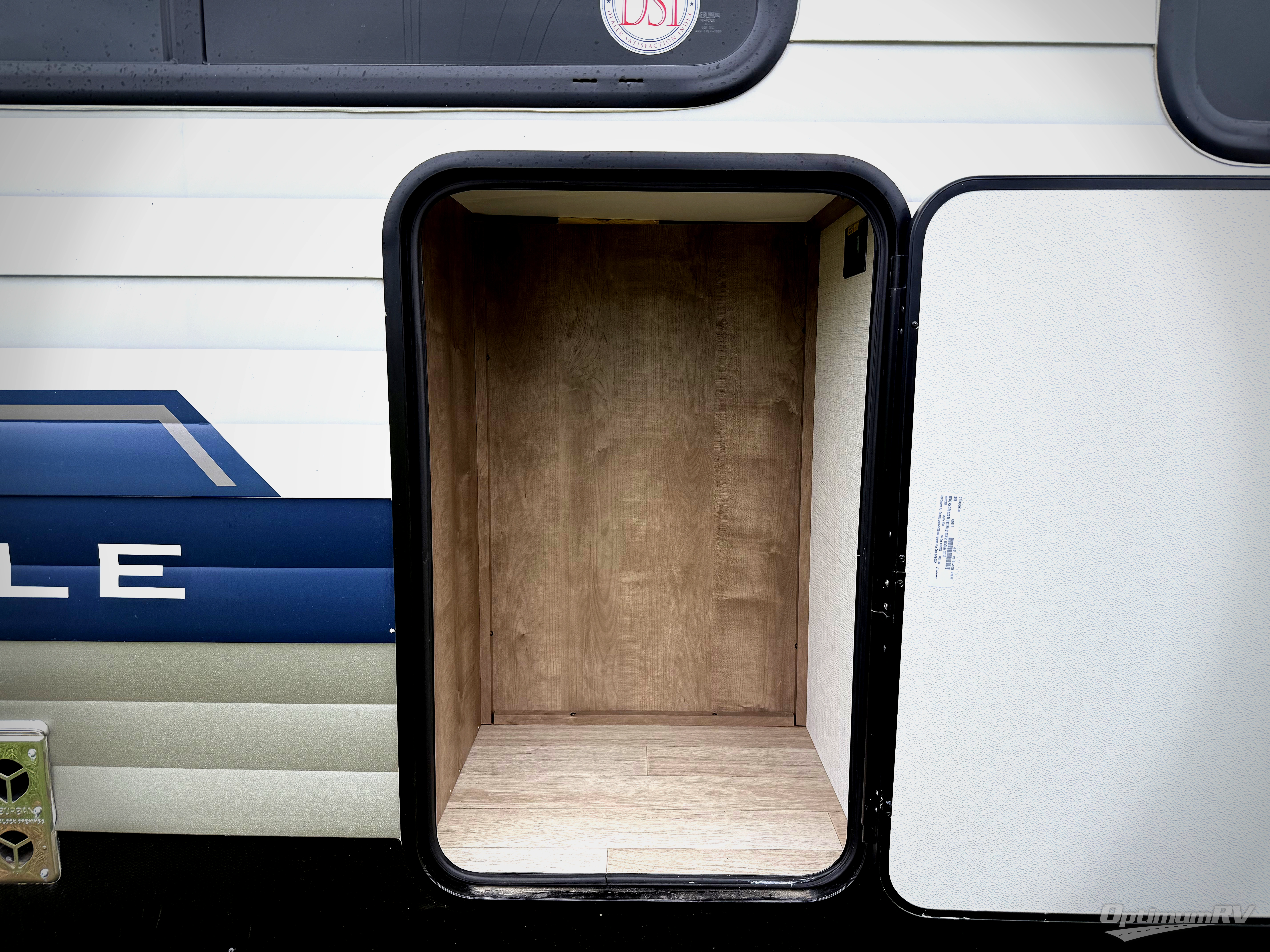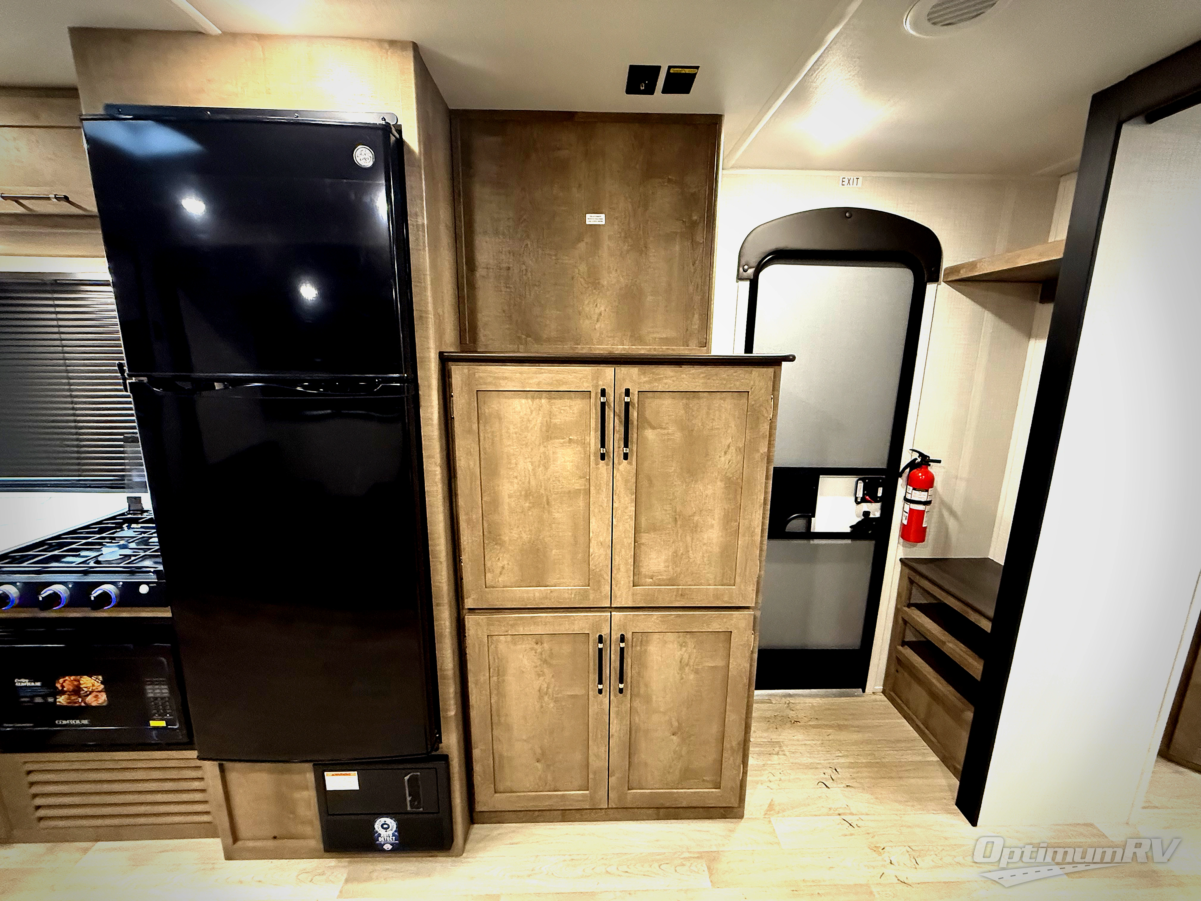 You'll feel right at home wherever you decide to camp in this travel trailer. The large slide out in the combined kitchen and living area gives your crew plenty of space to move about, plus there is a booth dinette and sofa for comfy seating and sleeping spaces. A full kitchen, compete with three burner cooktop and 10 cu. ft. 12V refrigerator will let you cook and store food for the whole week. Head to the full rear bath that includes a spacious vanity, a shower, toilet, and linen closet for clean towels. And when you're ready to catch some zzz's, the queen bed in the front private bedroom is sure to bring comfort!