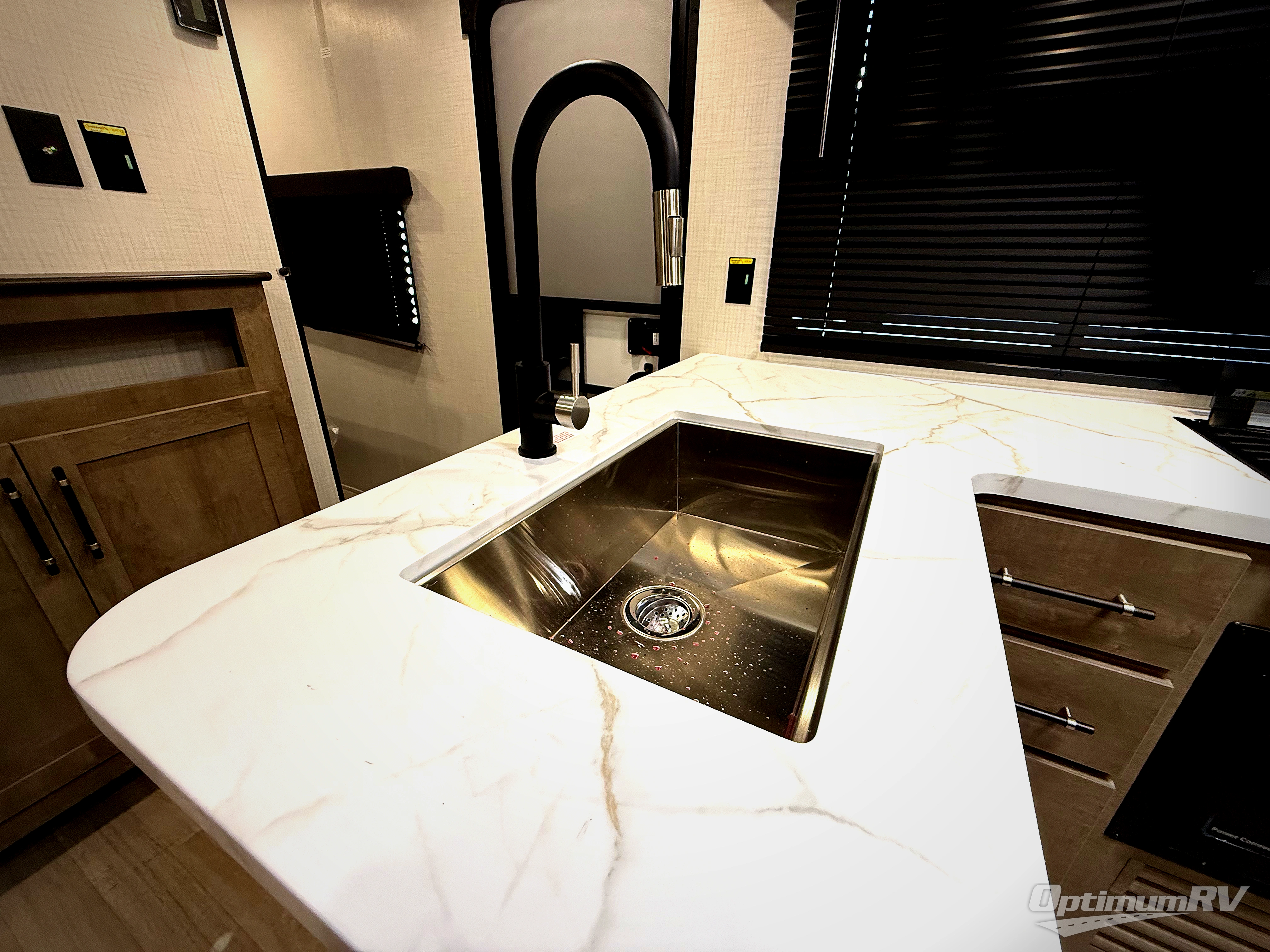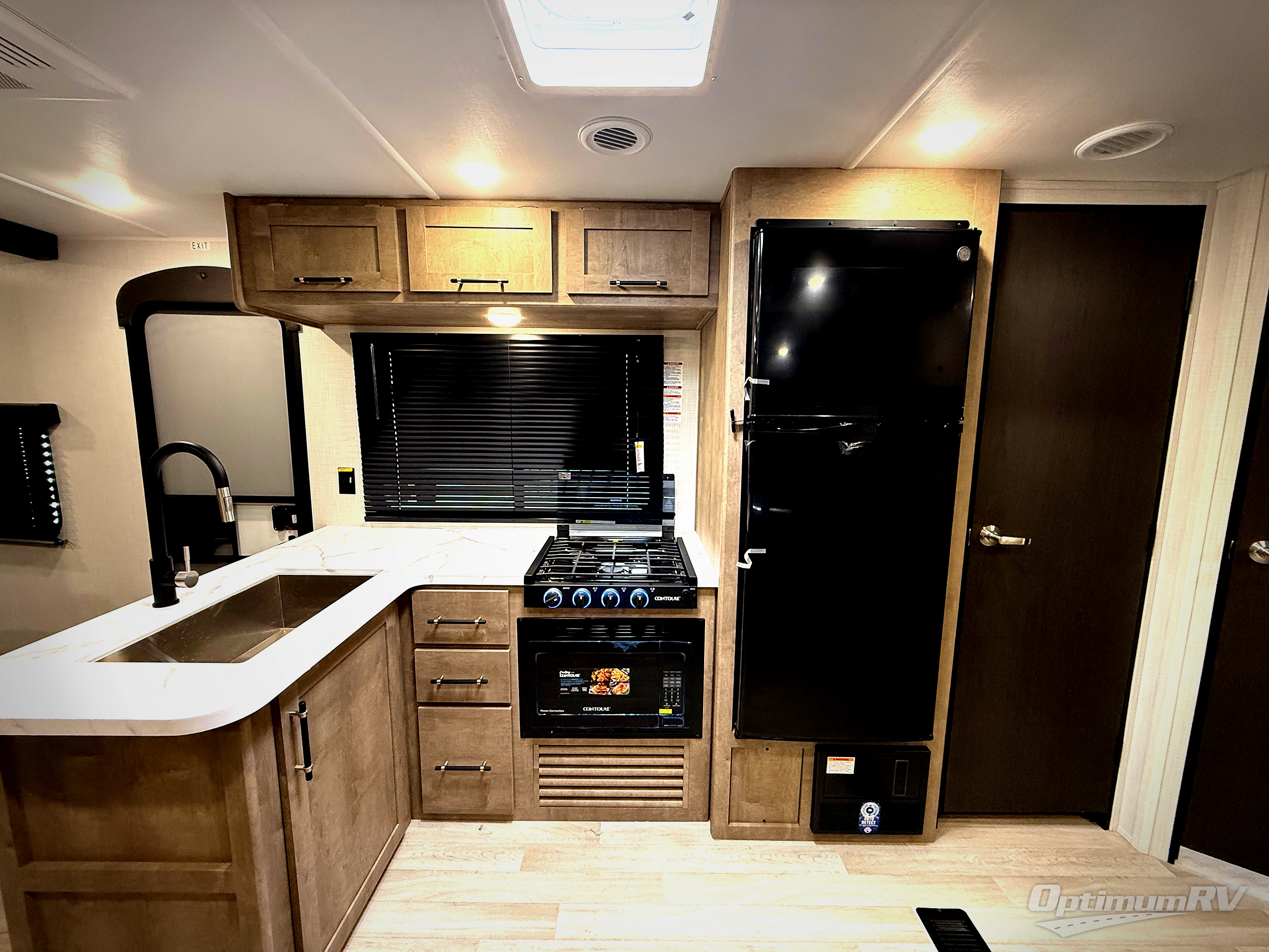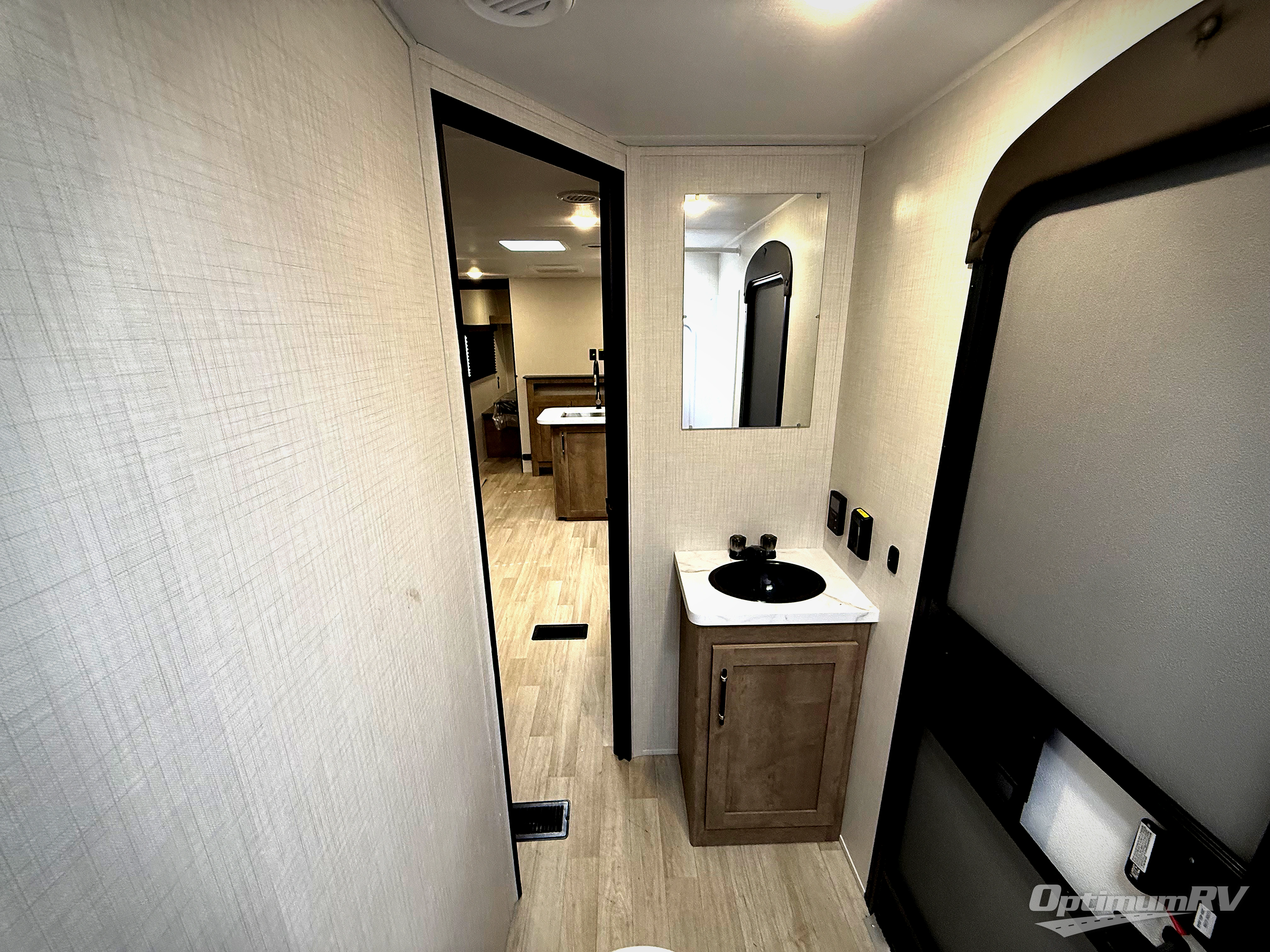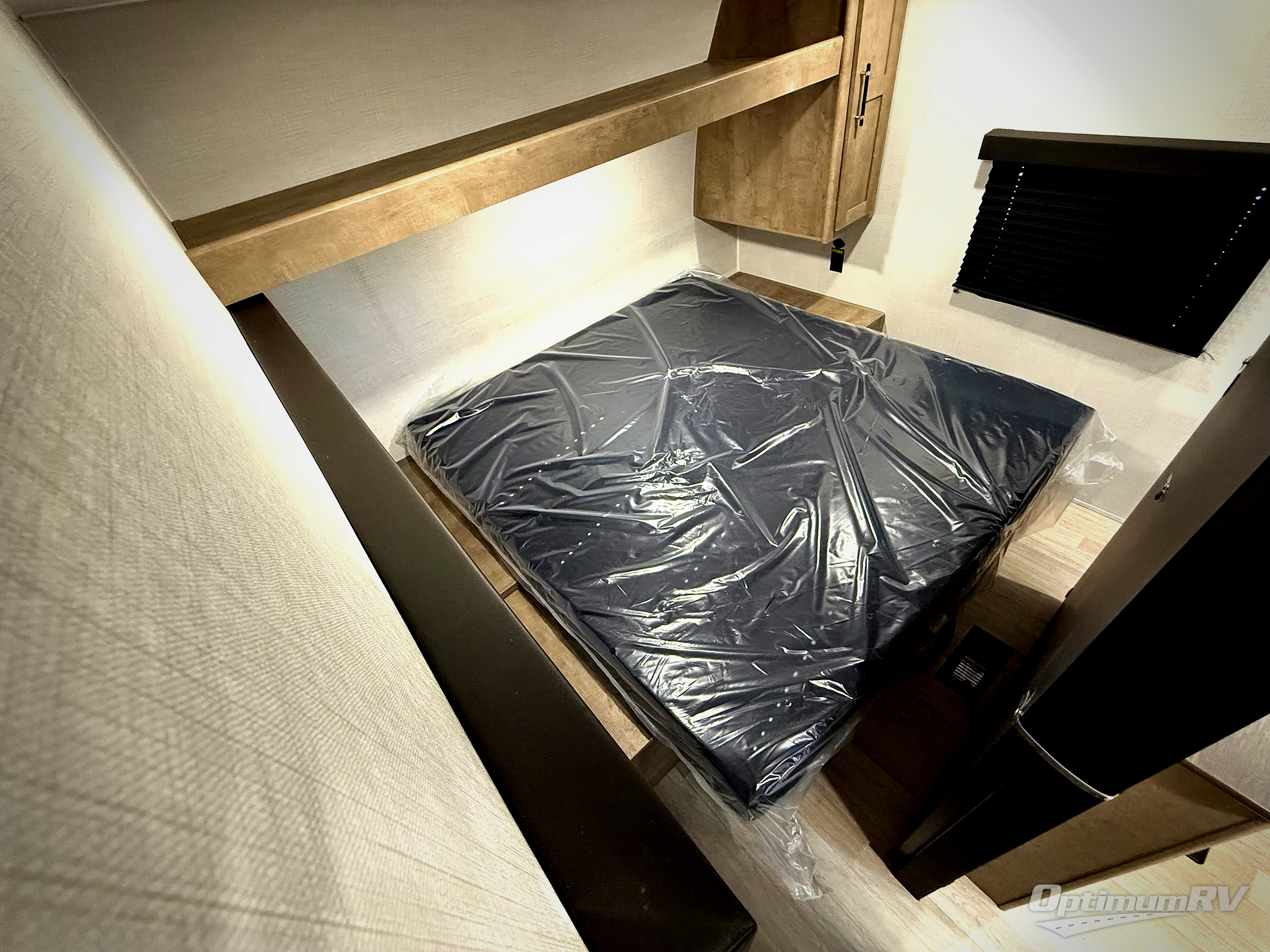 You'll have additional space to stretch out in this travel trailer for eight to ten! Within the slide you'll find the booth dinette and sofa that will be perfect for mealtimes, relaxing, and sleeping more guests, and there is an entertainment with TV prep for movie nights. The little ones will love the double-size bunks, and the full bath is close by for easy nighttime use, and one of the dual entry doors is found here for convenience. You'll have the front private bedroom with a queen bed all to yourselves, plus there are dual closets and nightstands for your things. This model also includes an exterior pass-through storage outside and a 16' power awning for protection against the sun!