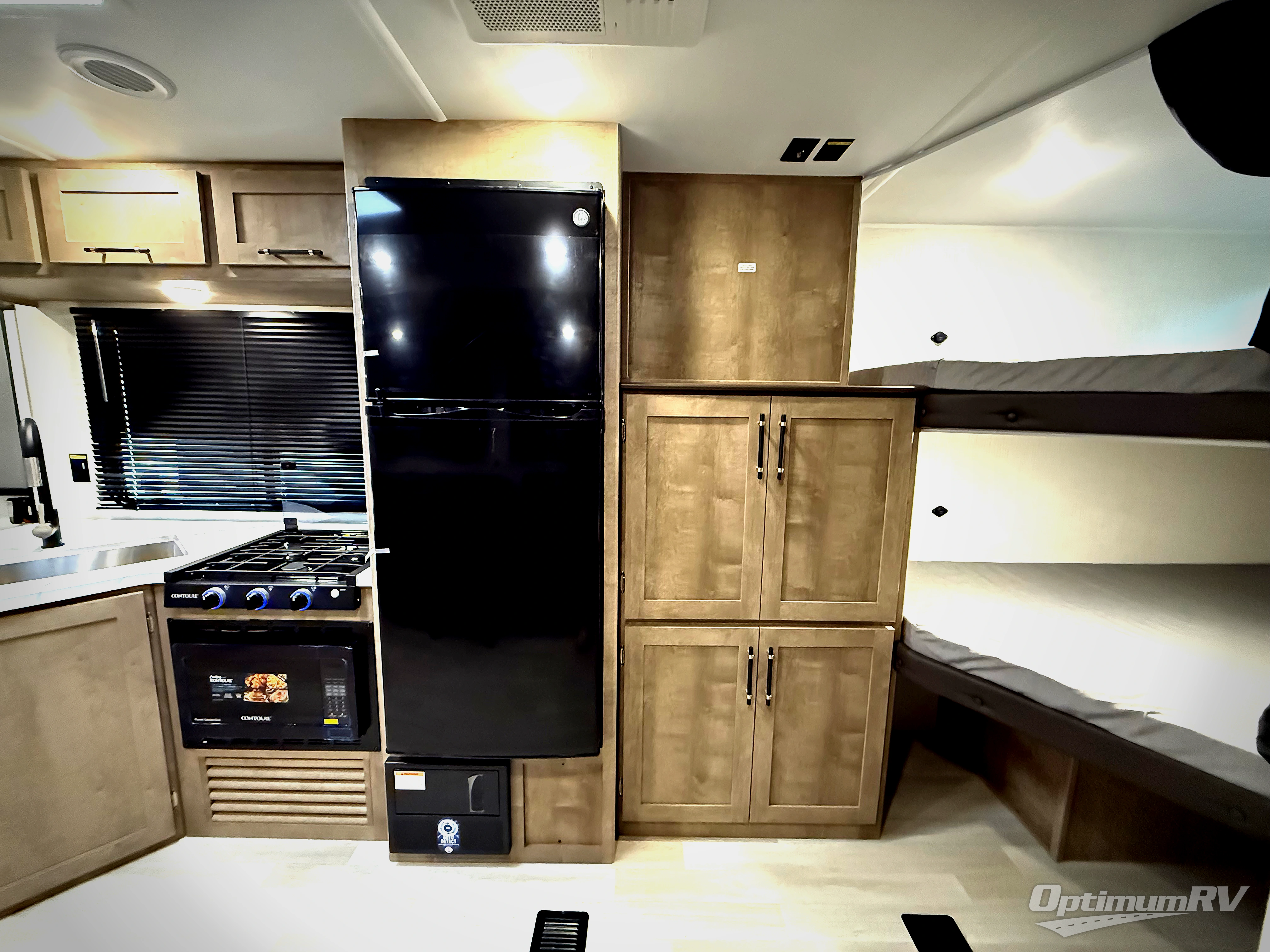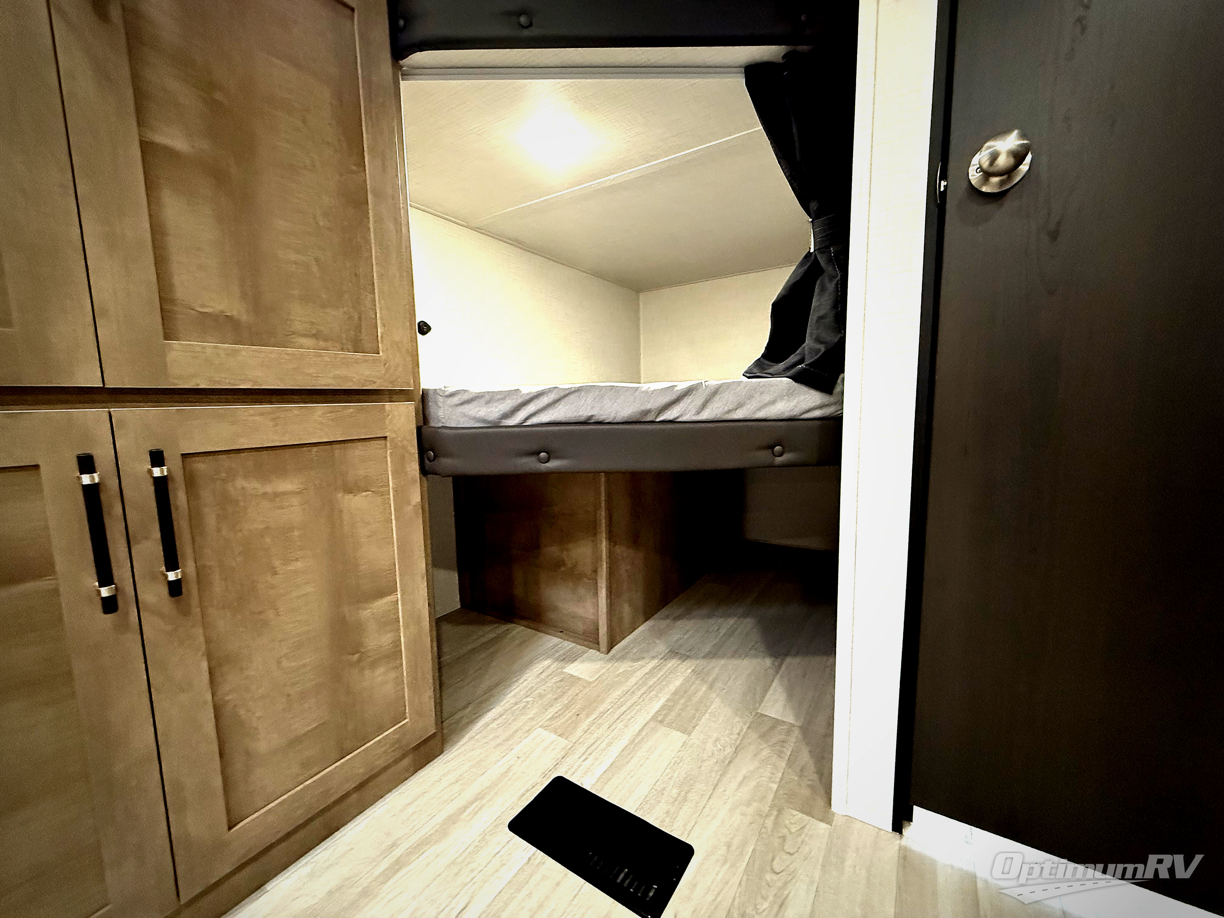 What could be better than camping with double-size bunks for guests? How about a front private bedroom for you, a full bath to clean up in, and a large slide out for maximum space! The chef of your group can prepare breakfast on the three-burner gas range in the morning or use the microwave if you're on the go. There is a U-shaped dinette to dine at, or you can take your plate outdoors to sit under the power awning.