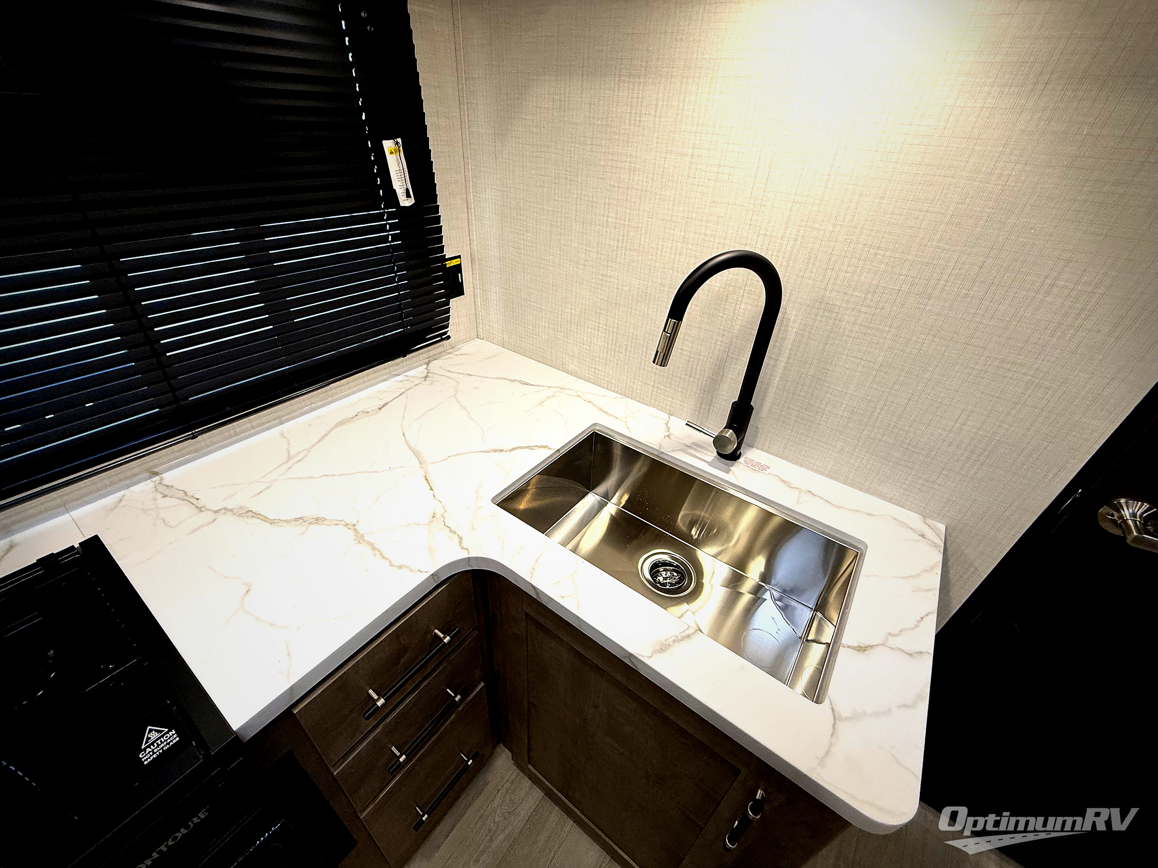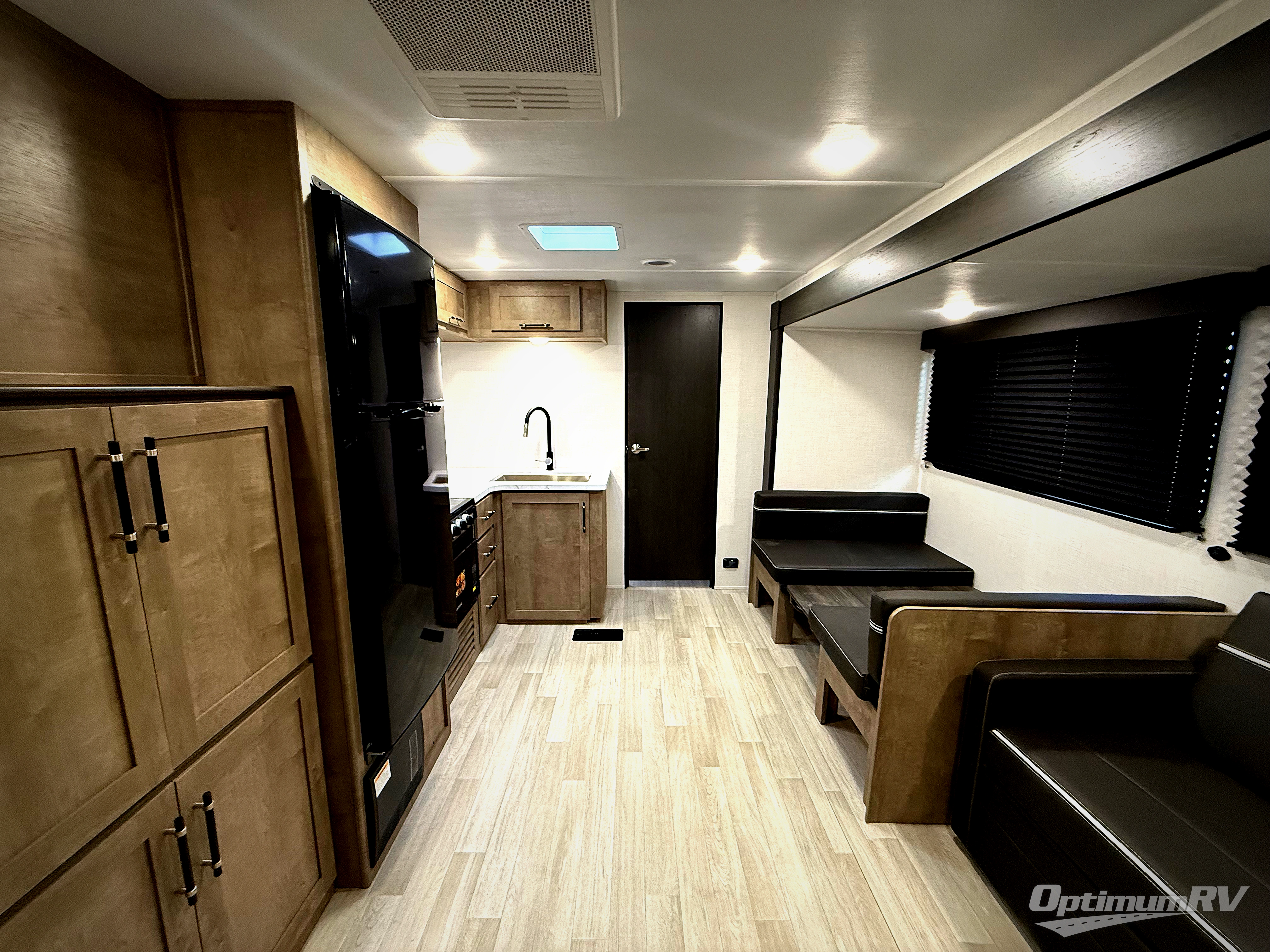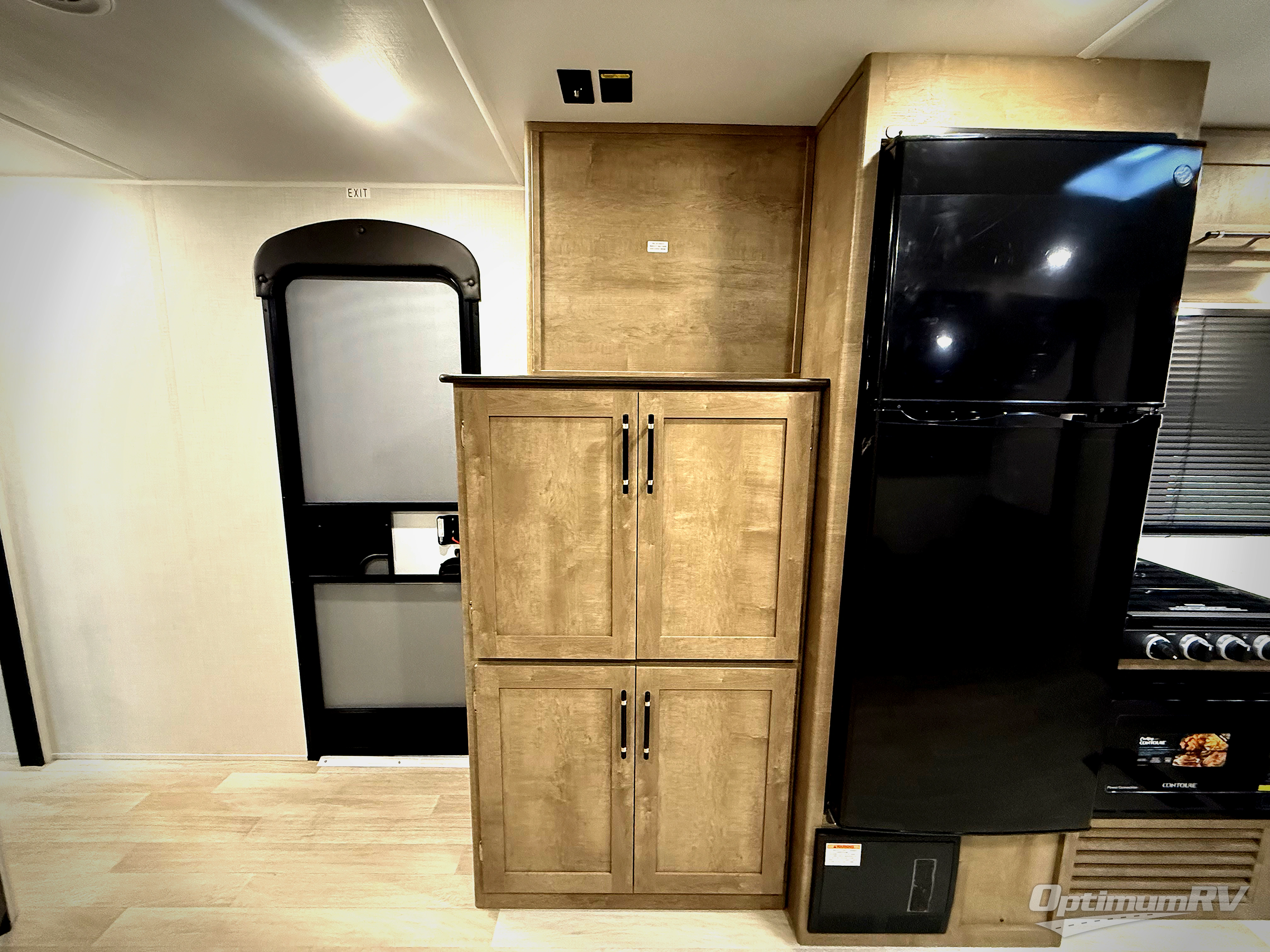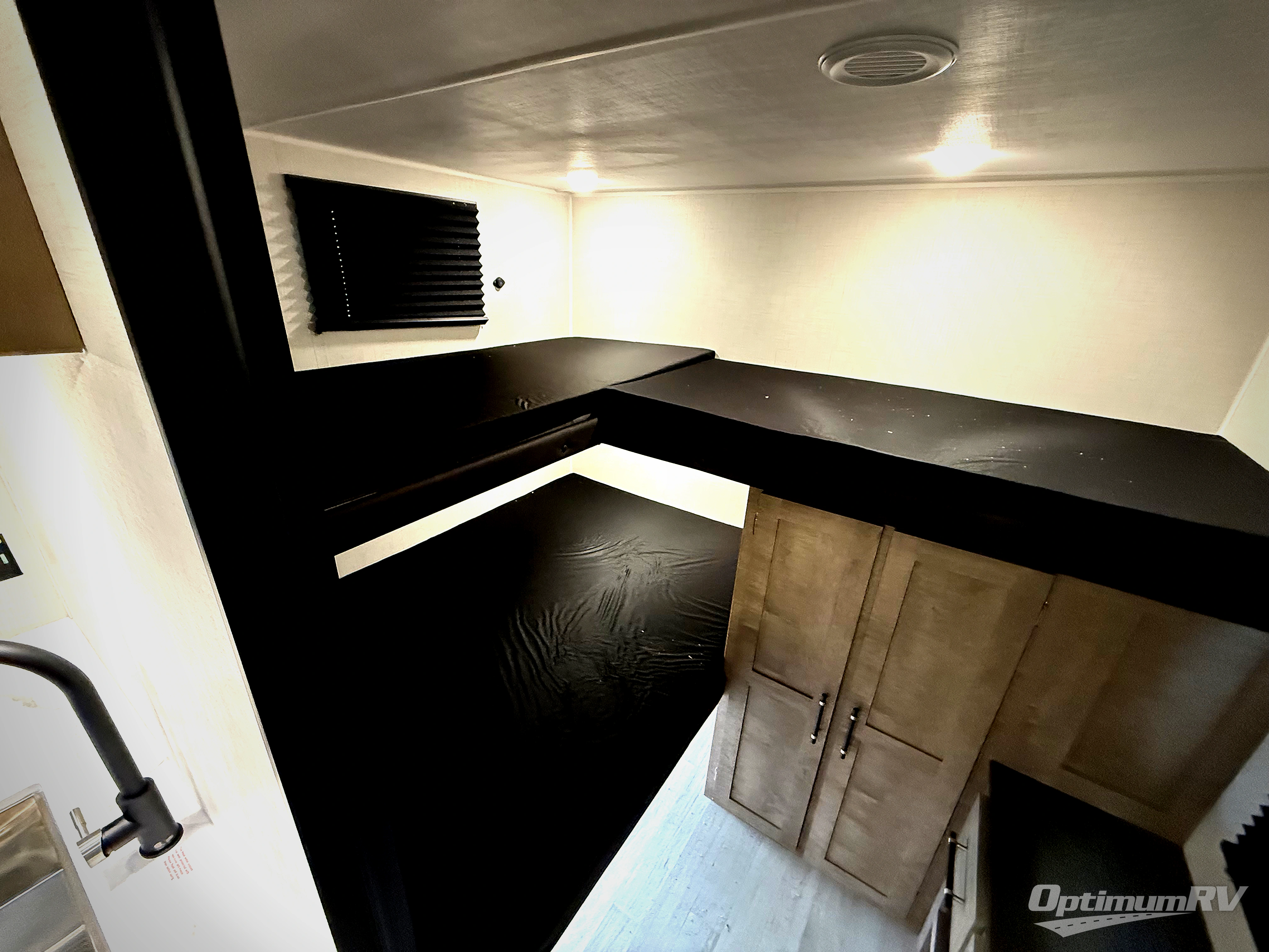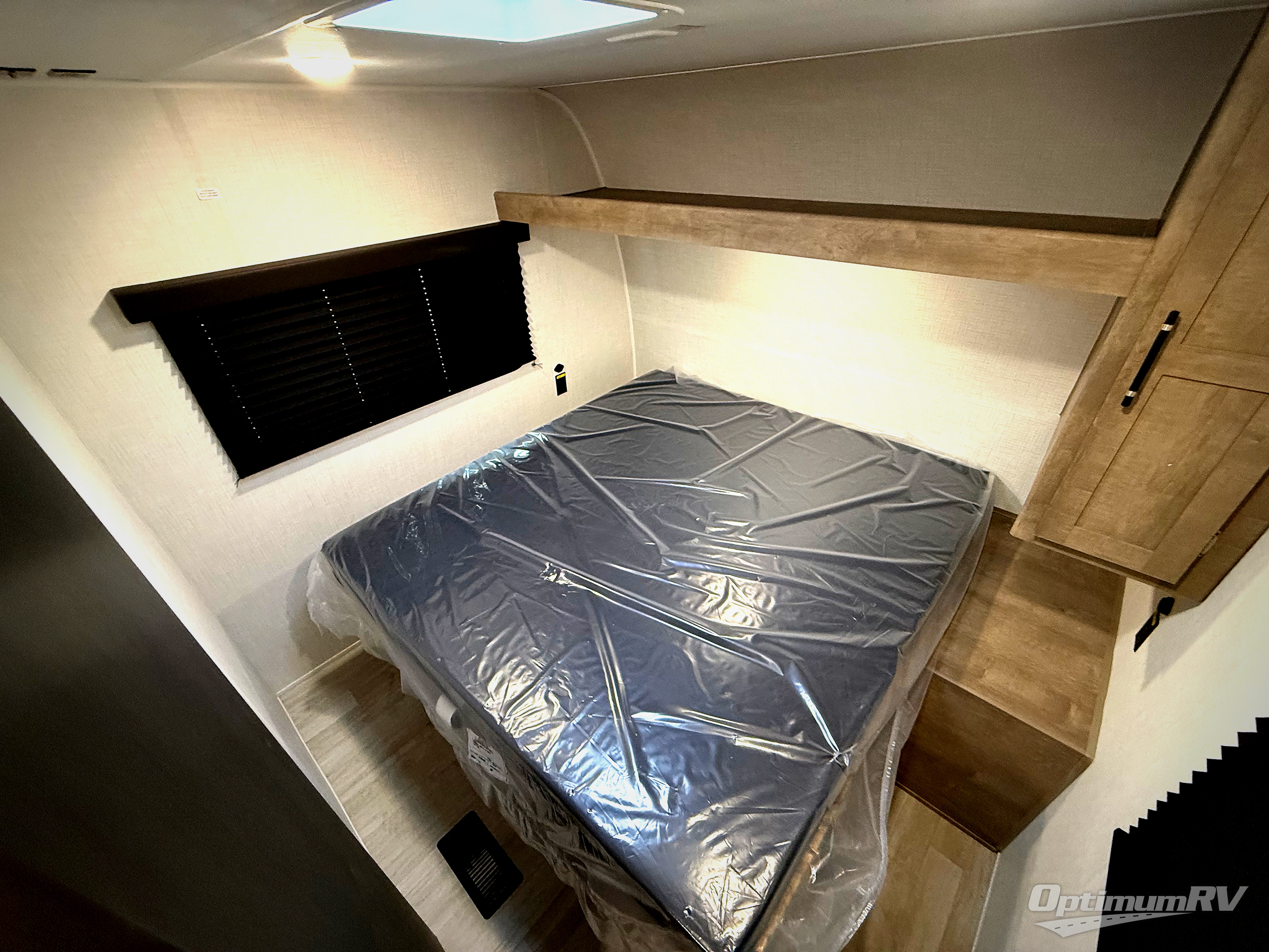 Camping with friends and family is easier than ever in this spacious trailer with a rear private bunkhouse! You'll find triple bunks in this room, along with a dresser and closet to keep everything tidy. The front private bedroom will feel just like home with its queen bed, plus dual closets and dual nightstands. Your crew can all gather in the main living area to relax on the sofa or play a game at the booth dinette, and there is even TV prep in this room if you enjoy movie nights. Head outdoors to relax under the 16' power awning.