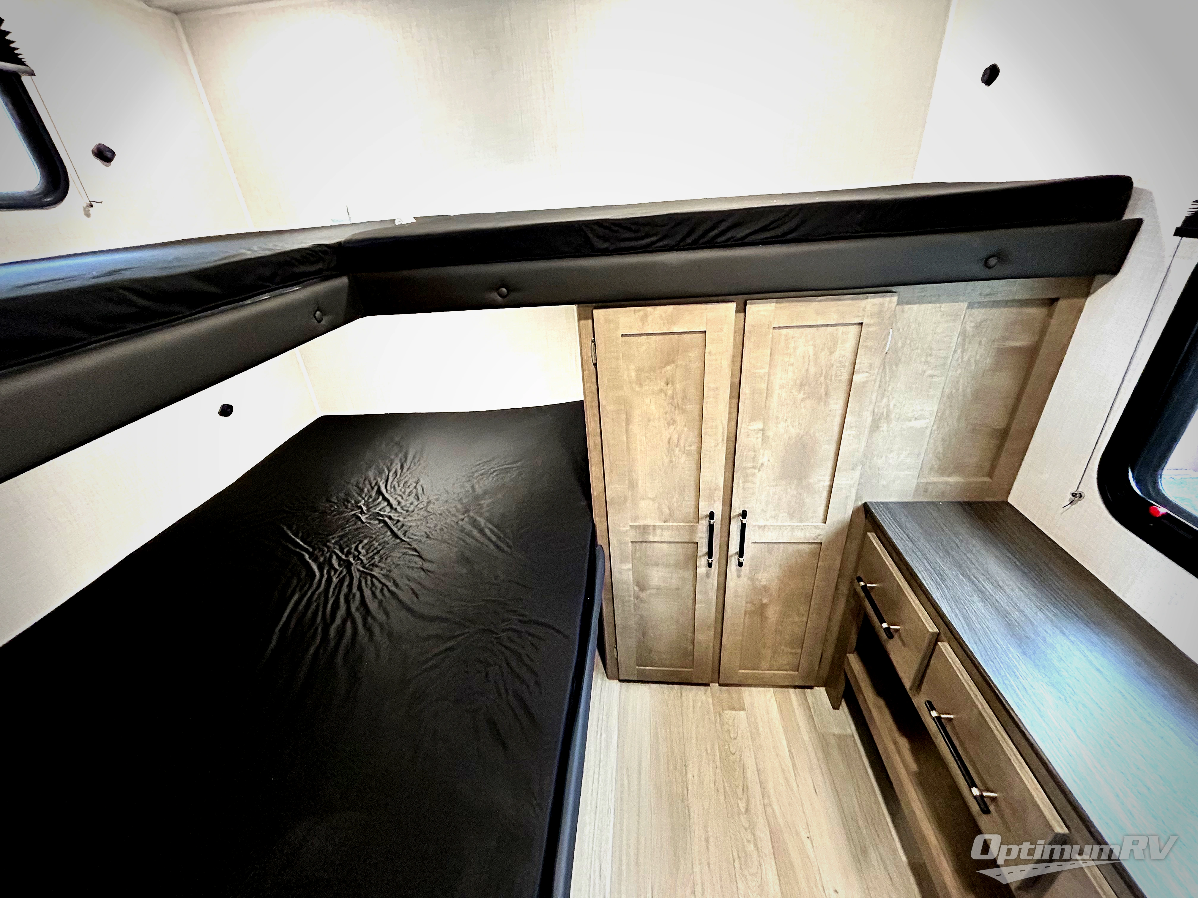 Camping with friends and family is easier than ever in this spacious trailer with a rear private bunkhouse! You'll find triple bunks in this room, along with a dresser and closet to keep everything tidy. The front private bedroom will feel just like home with its queen bed, plus dual closets and dual nightstands. Your crew can all gather in the main living area to relax on the sofa or play a game at the booth dinette, and there is even TV prep in this room if you enjoy movie nights. Head outdoors to relax under the 16' power awning.
