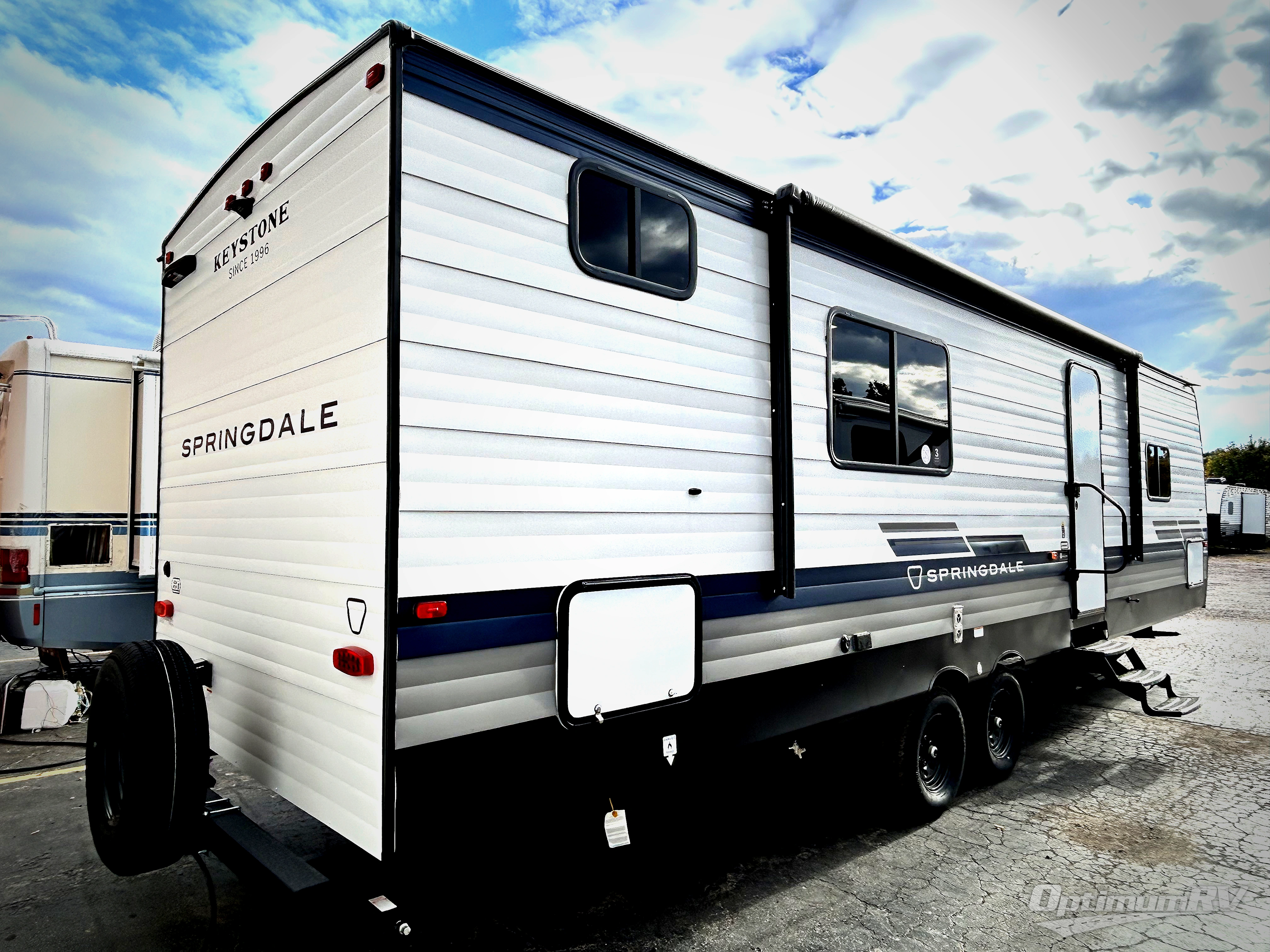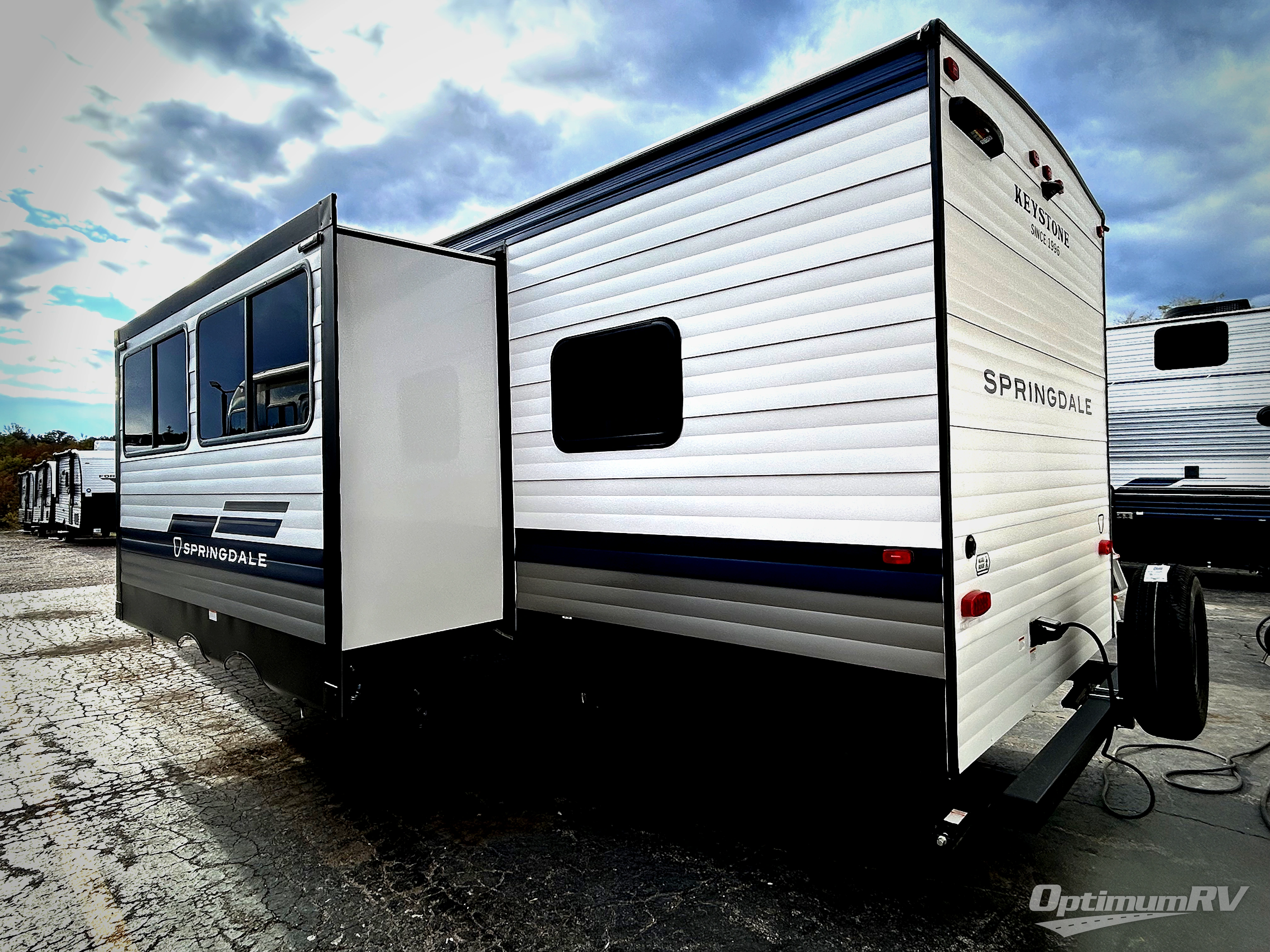 The Springdale Classic travel trailers by Keystone will provide you and your family many great outdoor experiences and it will also be kind to your pocketbook. Each one is constructed with an aluminum exterior, a walkable roof, and an I-beam frame with stamped steel cross-members and outriggers for added strength. There are also heavy duty stabilizer jacks and power tongue jacks outside, along with an XL entry assist handle for added convenience. Each travel trailer includes LED lighting, bedside outlets, and blackout night shades inside that will provide you with more privacy at night.