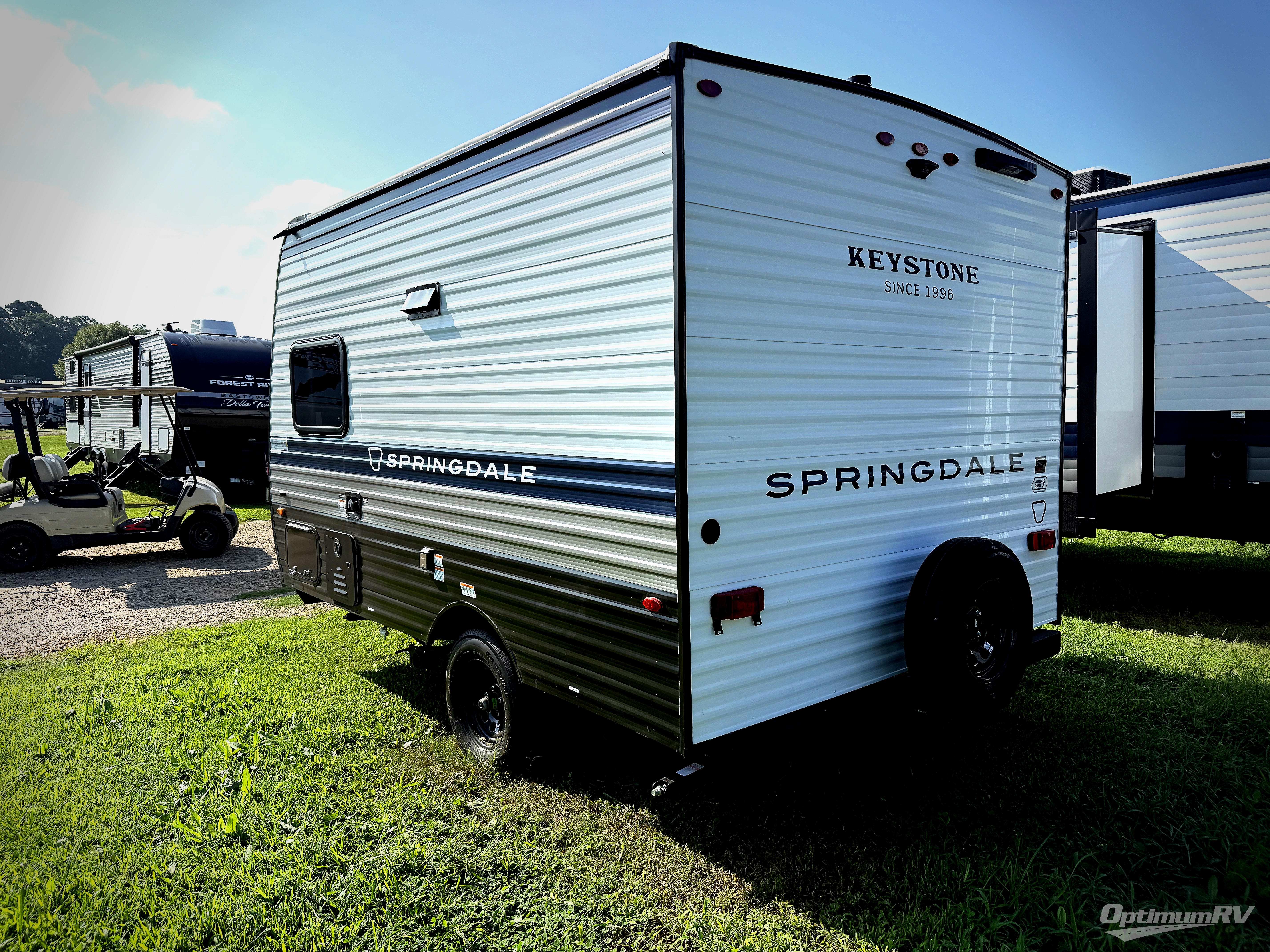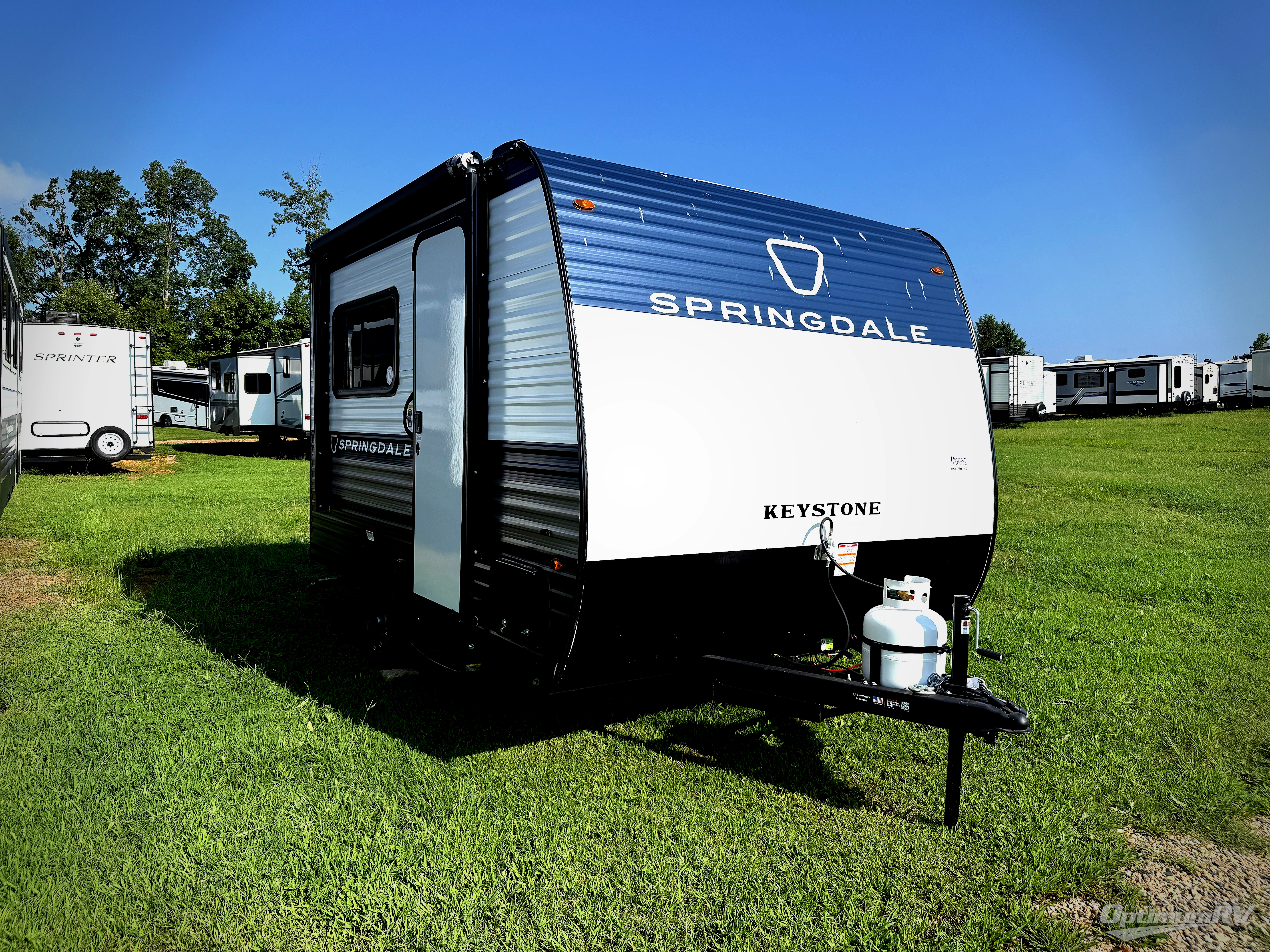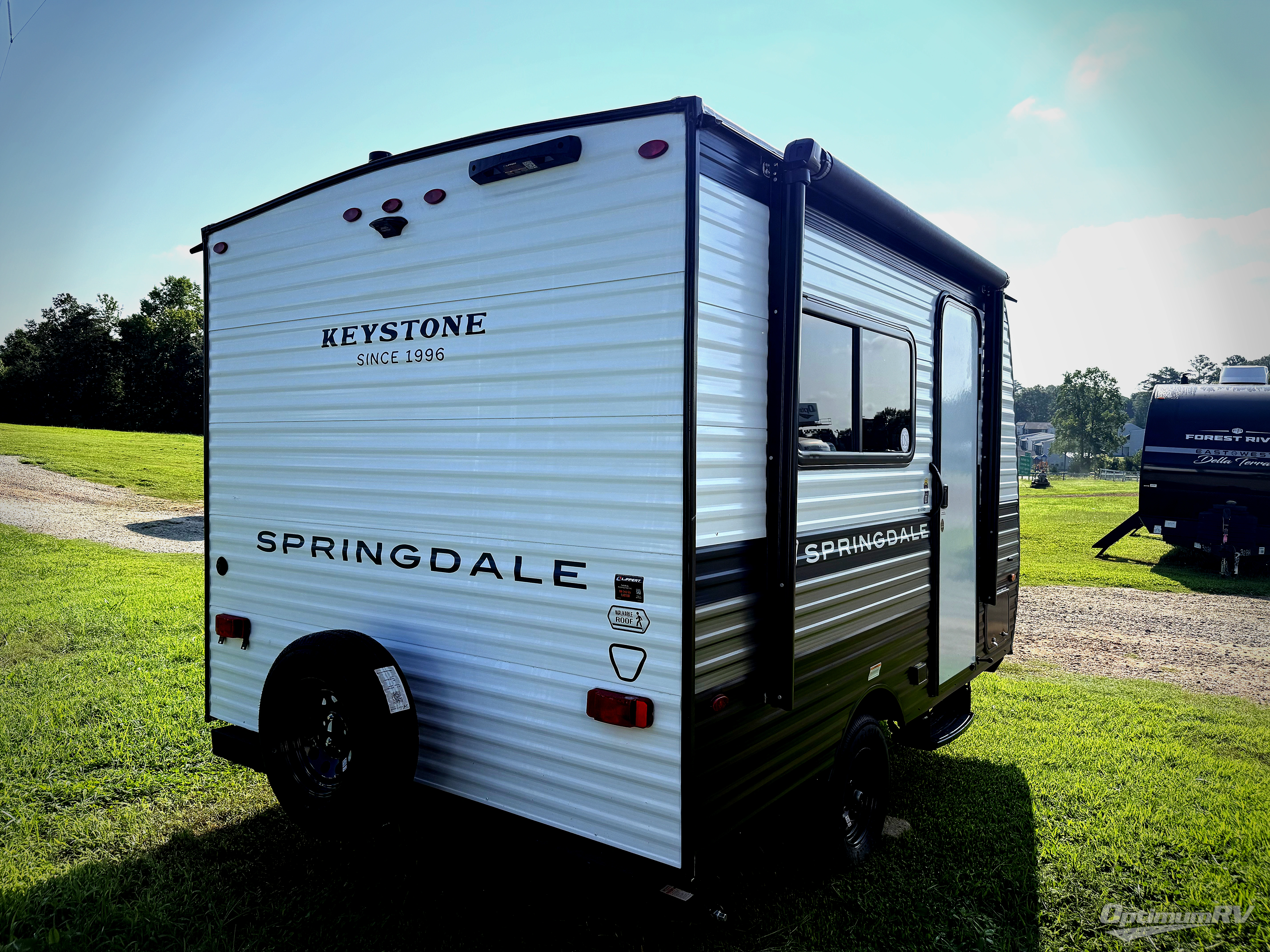 With any Springdale Mini travel trailer by Keystone, you will enjoy lightweight towing thanks to their single-axle! The AlphaPly TPO roof membrane is ultra durable, and the power awning will provide protection from the sun as you relax in your camp chairs outside. Each model includes blackout night shades, LED lighting, plus many more interior comforts. There is also a roof A/C and 20K BTU furnace to keep you comfortable, plus a tankless water heater for endless hot showers!