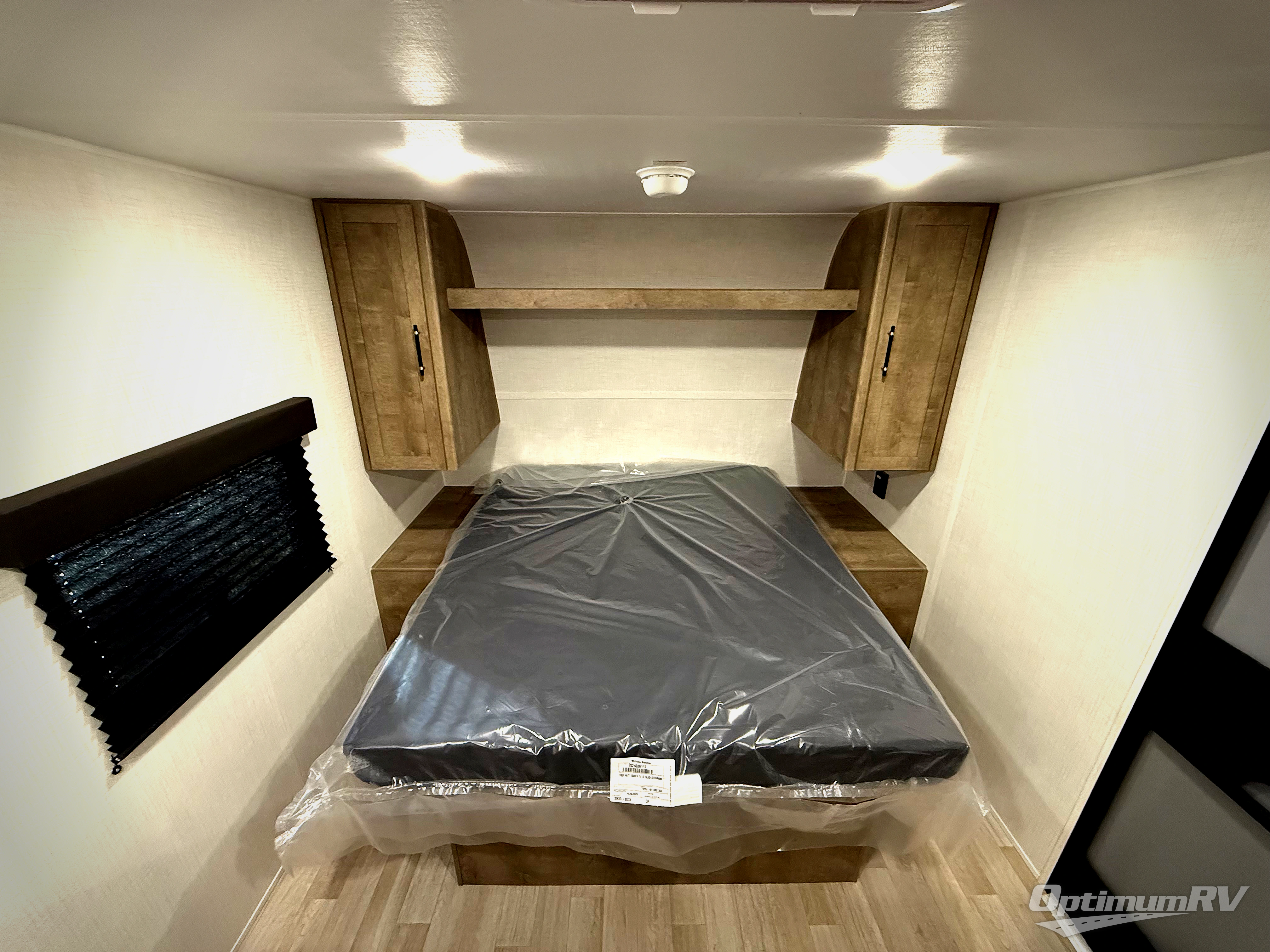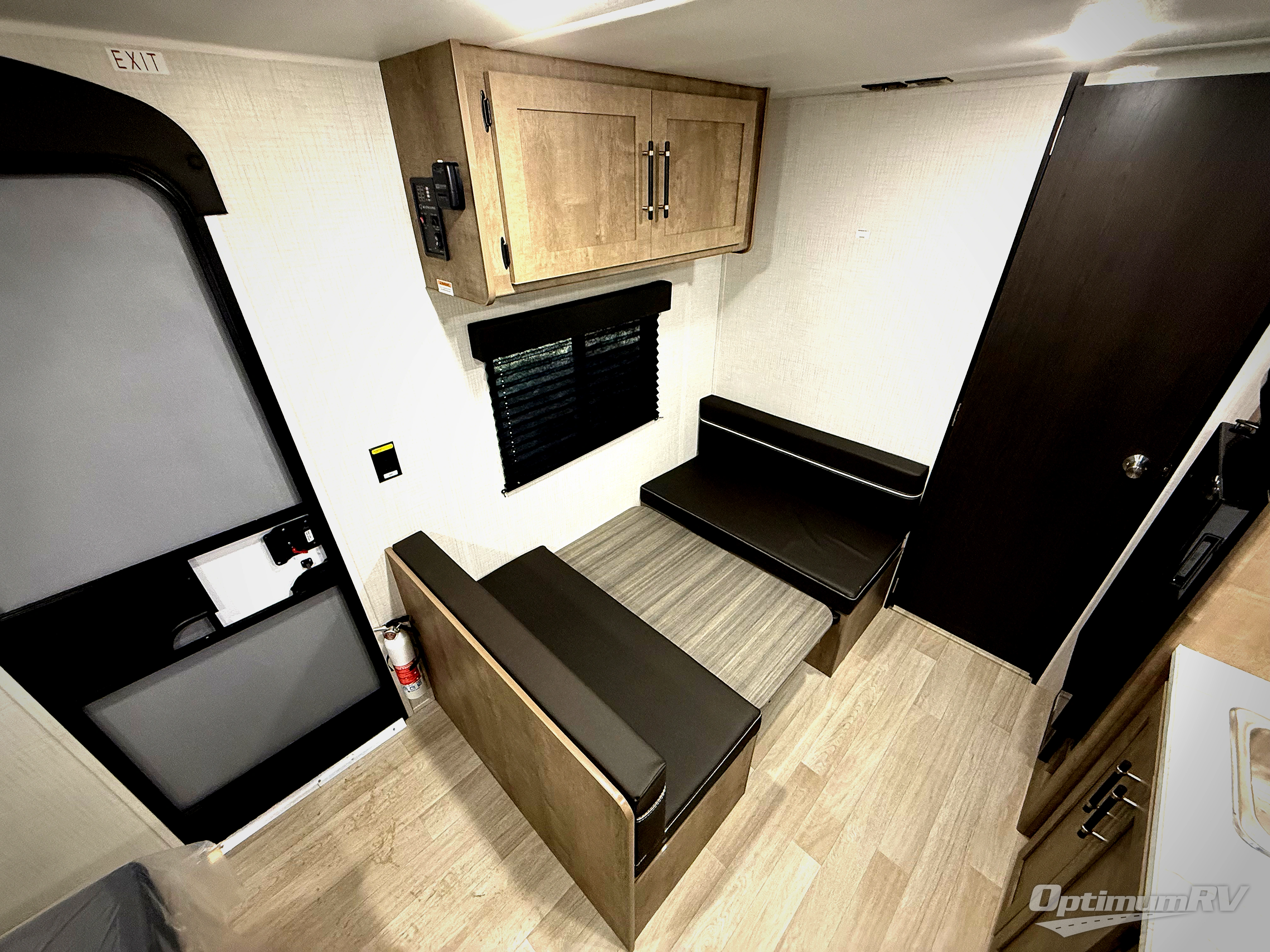 This cozy trailer for two or four will have you out enjoying nature easily. There is a queen bed for you, and the booth dinette can easily transform into a bed for one or two more campers if needed at night. The rear private bath features a shower and vanity with sink, plus toilet so no late night trips to the campground bathroom. There is ample storage in overhead cabinets on both sides of the trailer, as well as dual closets and nightstands on either side of the bed. A 10' awning offers even more living space outside. Grab a couple of camp chairs and enjoy hanging out with your campground neighbors or enjoying a campfire.