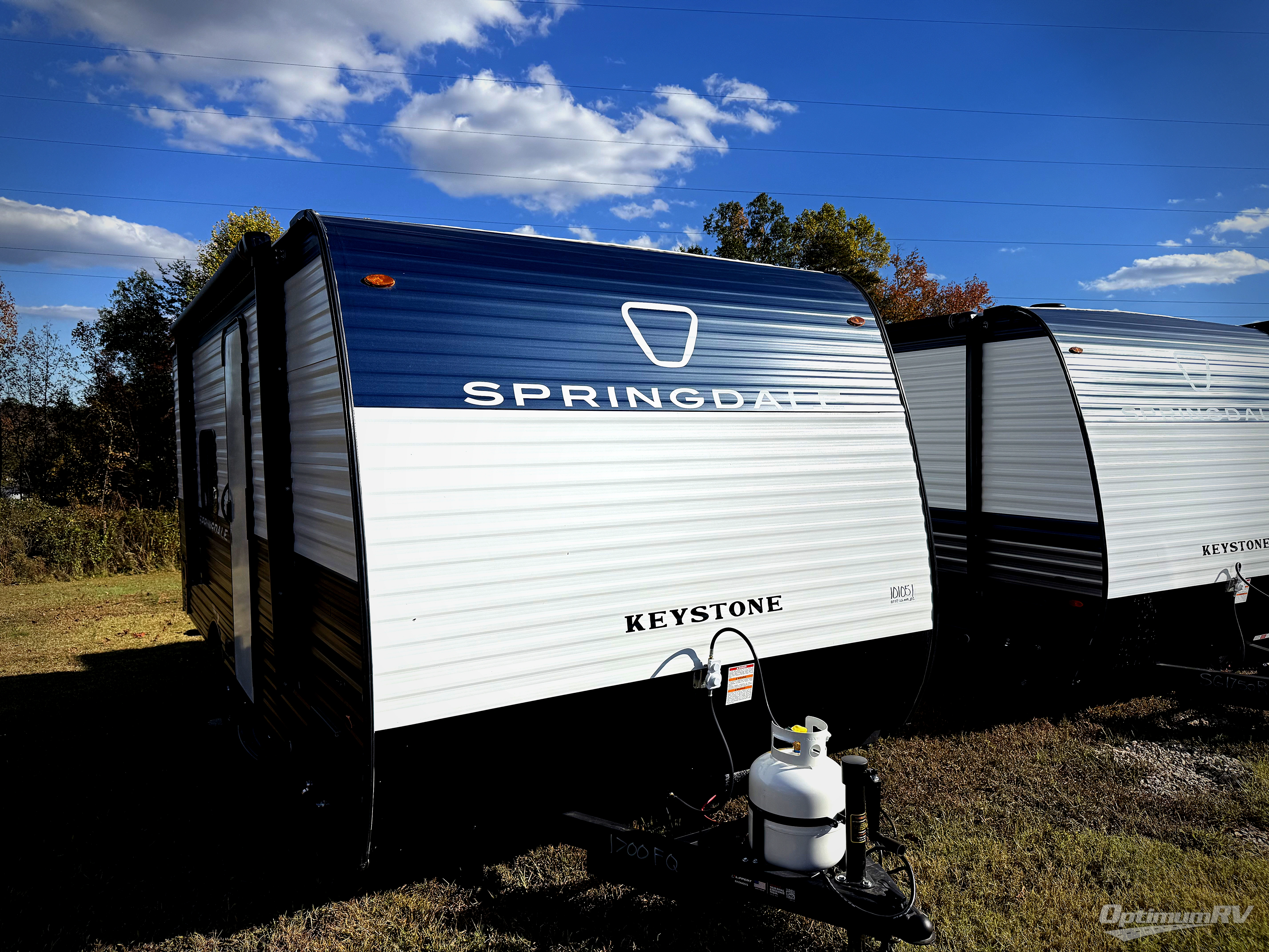 With any Springdale Mini travel trailer by Keystone, you will enjoy lightweight towing thanks to their single-axle! The AlphaPly TPO roof membrane is ultra durable, and the power awning will provide protection from the sun as you relax in your camp chairs outside. Each model includes blackout night shades, LED lighting, plus many more interior comforts. There is also a roof A/C and 20K BTU furnace to keep you comfortable, plus a tankless water heater for endless hot showers!