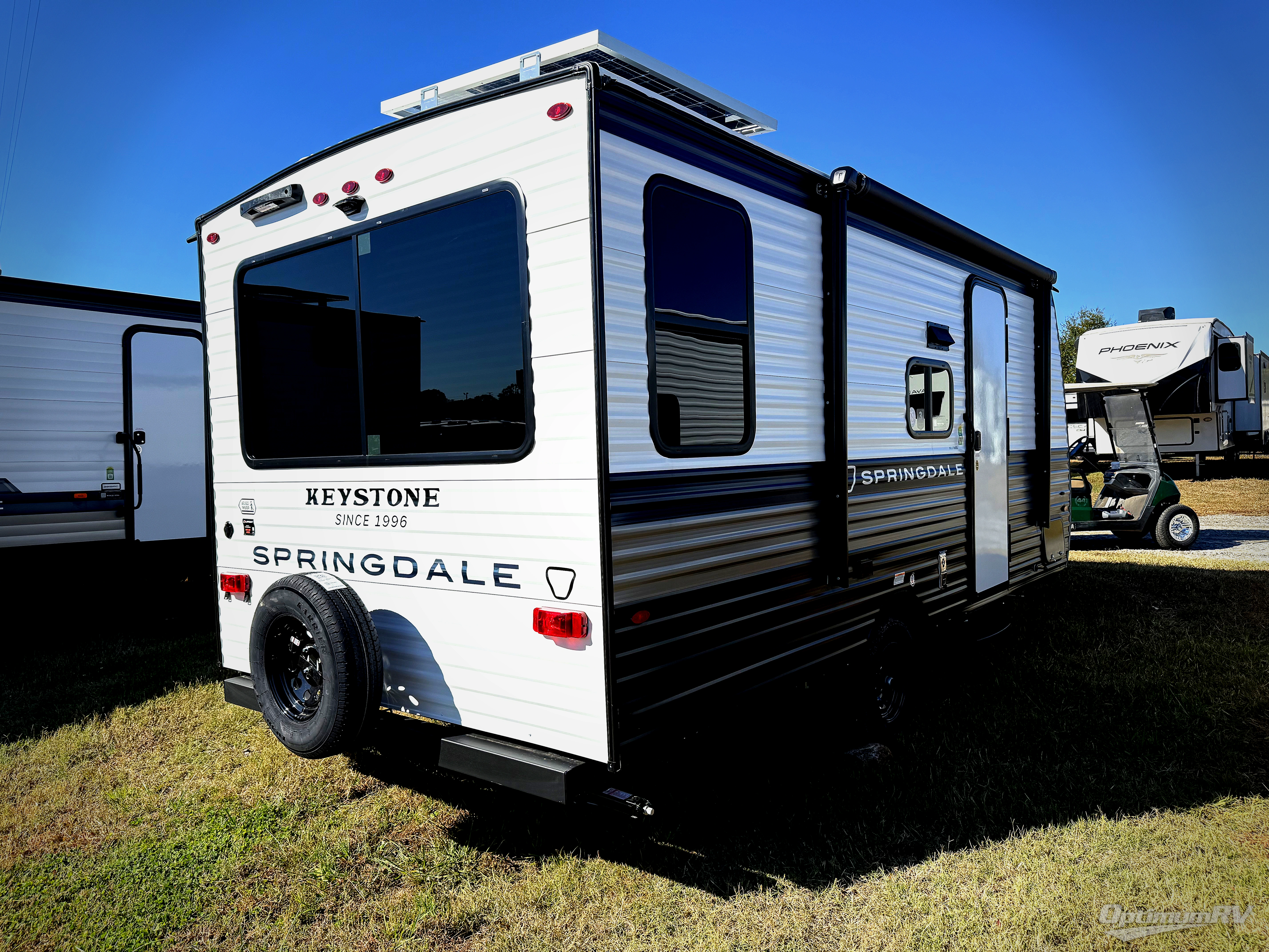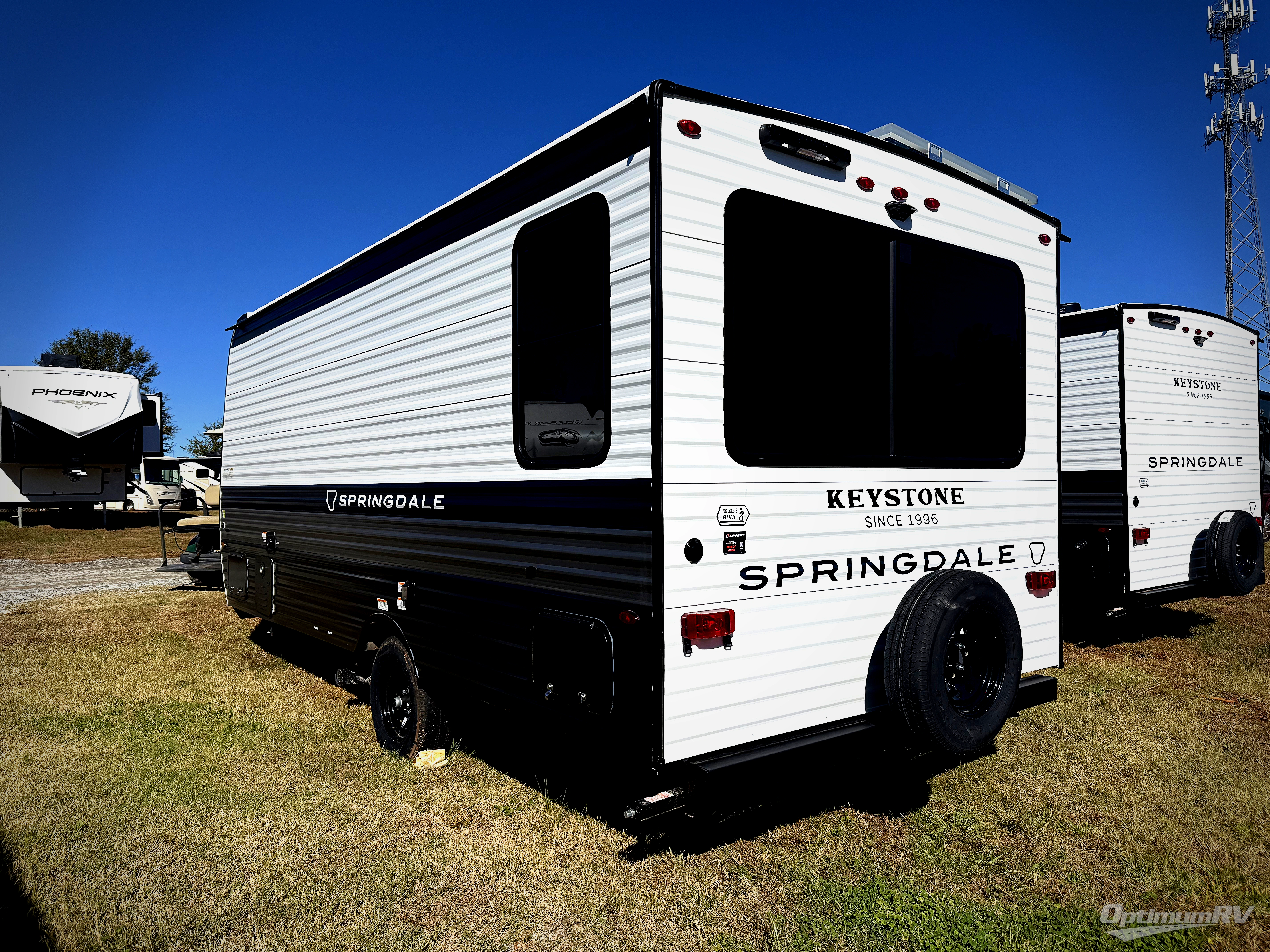 With any Springdale Mini travel trailer by Keystone, you will enjoy lightweight towing thanks to their single-axle! The AlphaPly TPO roof membrane is ultra durable, and the power awning will provide protection from the sun as you relax in your camp chairs outside. Each model includes blackout night shades, LED lighting, plus many more interior comforts. There is also a roof A/C and 20K BTU furnace to keep you comfortable, plus a tankless water heater for endless hot showers!