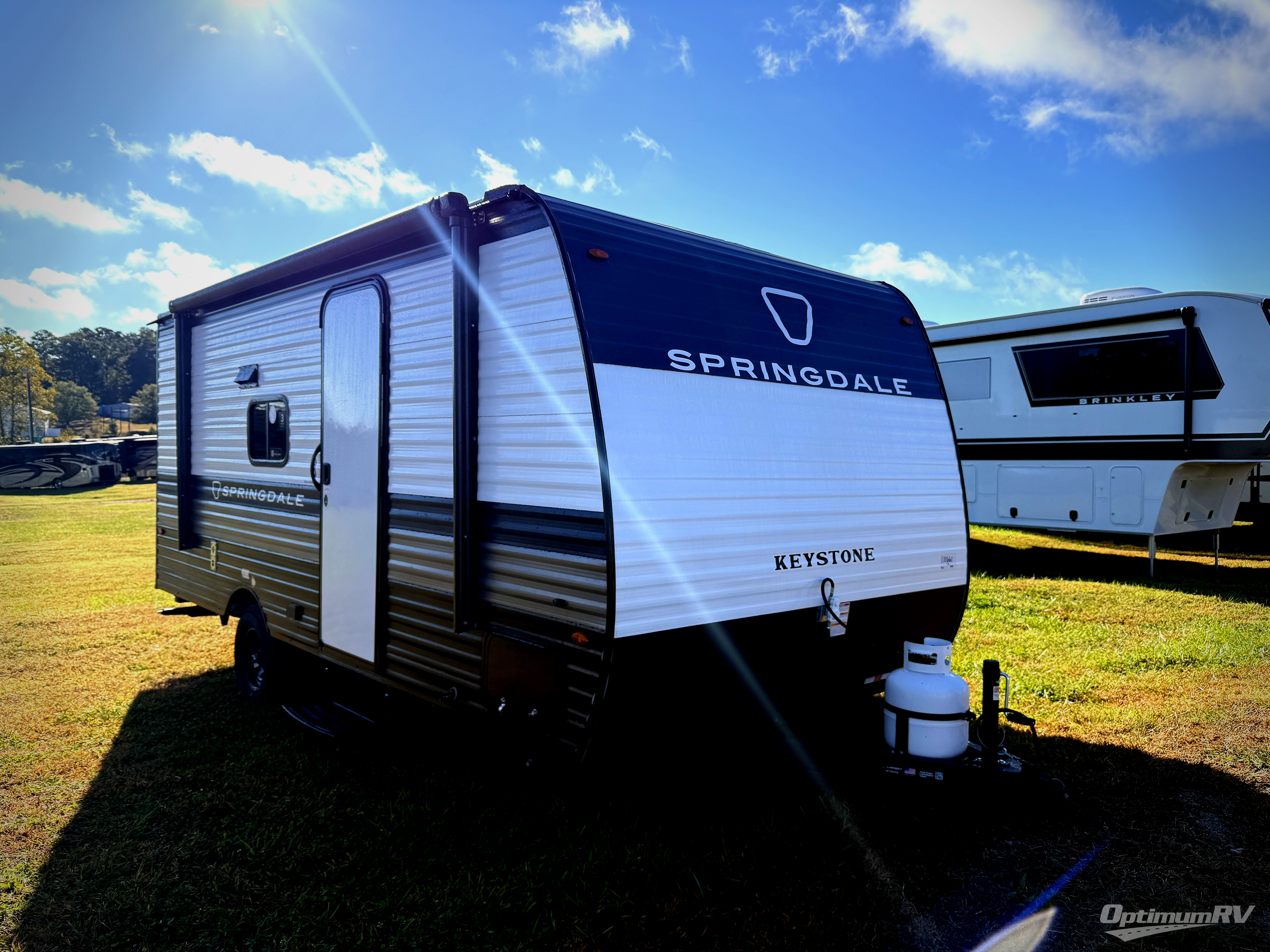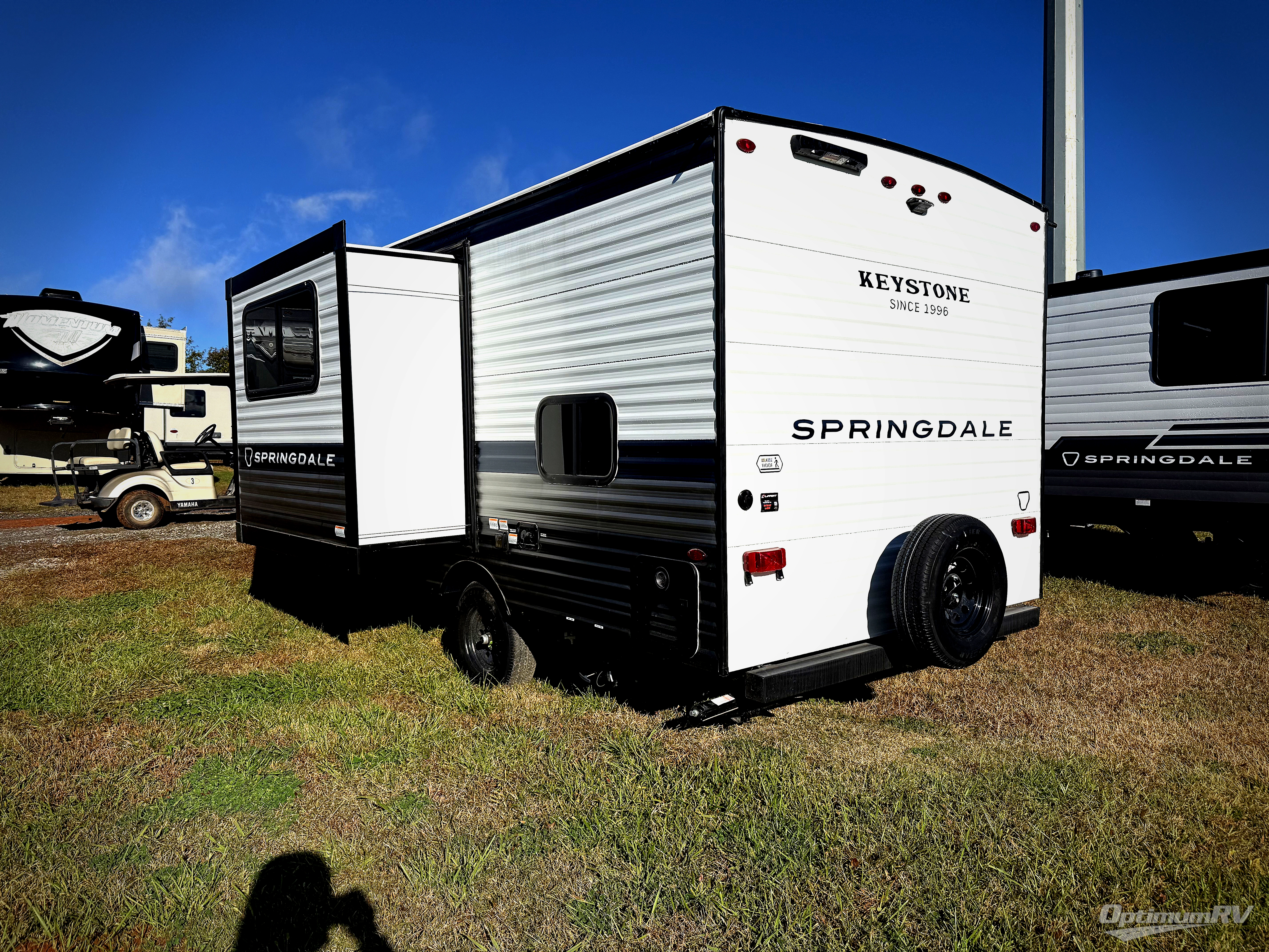 With any Springdale Mini travel trailer by Keystone, you will enjoy lightweight towing thanks to their single-axle! The AlphaPly TPO roof membrane is ultra durable, and the power awning will provide protection from the sun as you relax in your camp chairs outside. Each model includes blackout night shades, LED lighting, plus many more interior comforts. There is also a roof A/C and 20K BTU furnace to keep you comfortable, plus a tankless water heater for endless hot showers!