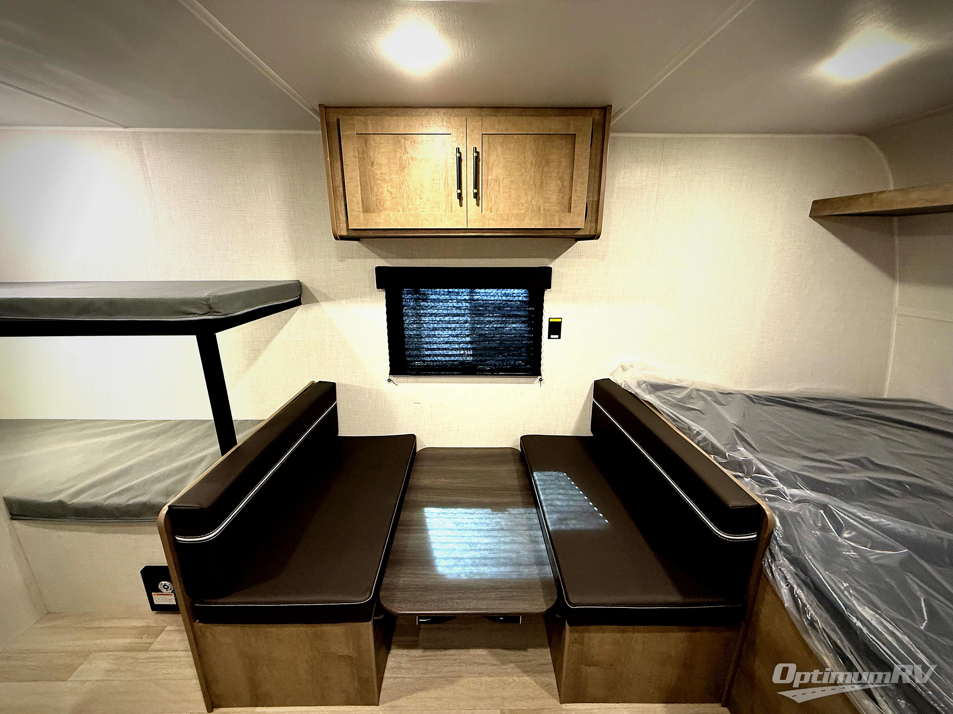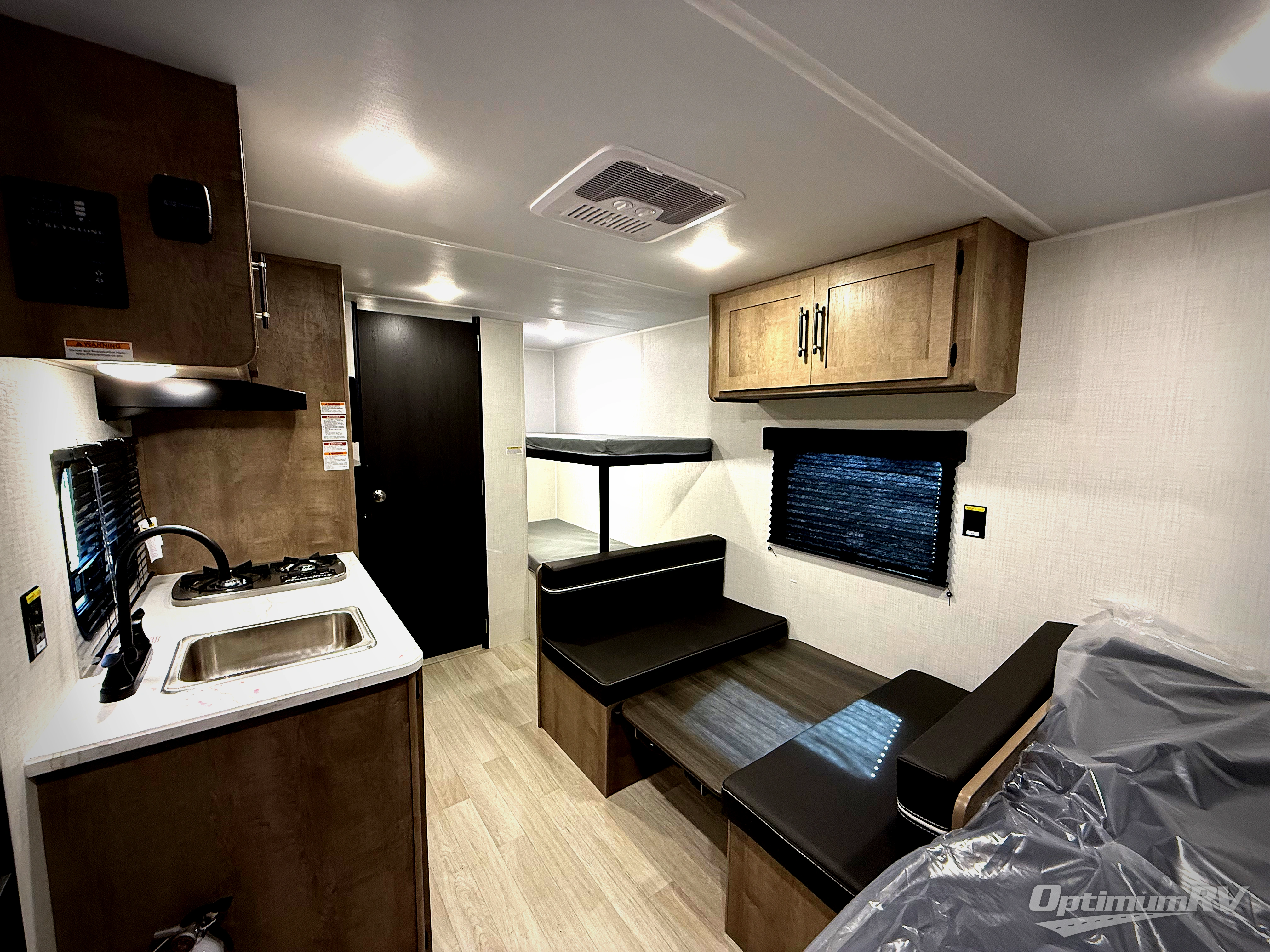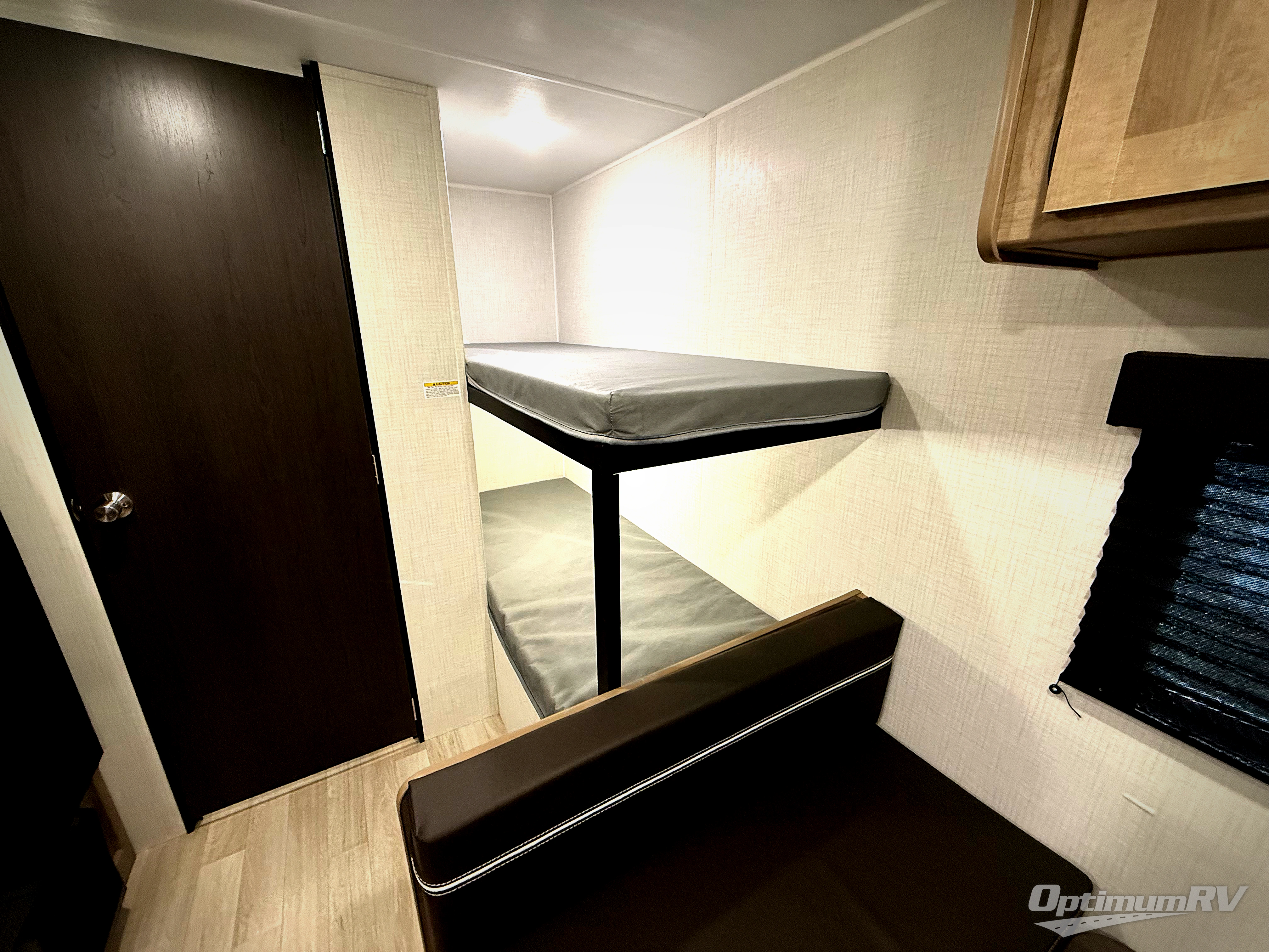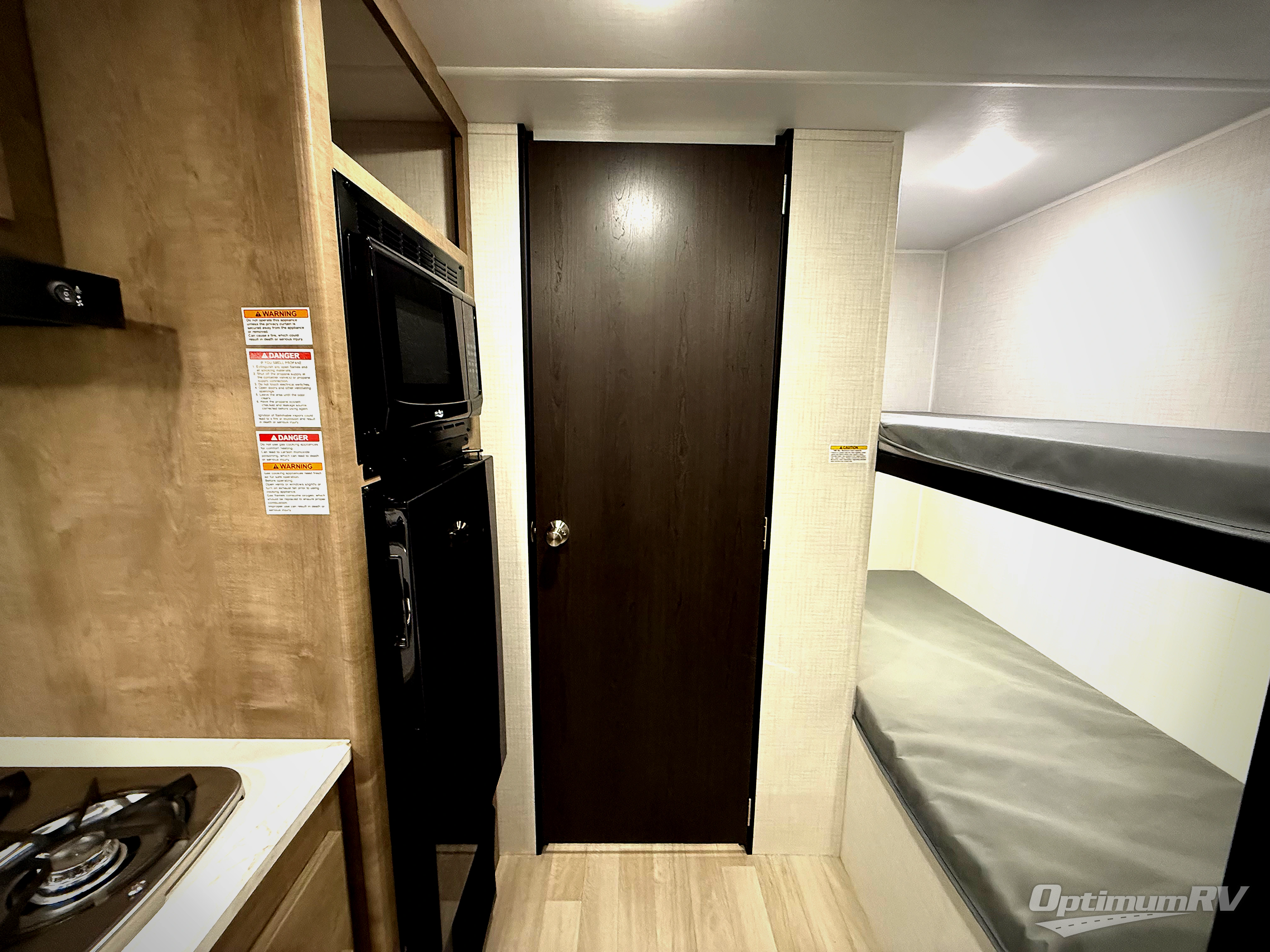 Get ready for outdoor fun with your favorite people when you have this trailer in tow! Once at your campsite, you can easily setup the 10' power awning, grab your camping chairs from the pass-thru storage, and relax or start playing. The cook will love the galley kitchen with the two burner cooktop, plus a refrigerator for cold items. If you like, you can eat inside at the booth dinette which doubles as sleeping space, and of course the kids will love the bunk beds next to the full bathroom. And you will sleep soundly on the front queen bed.