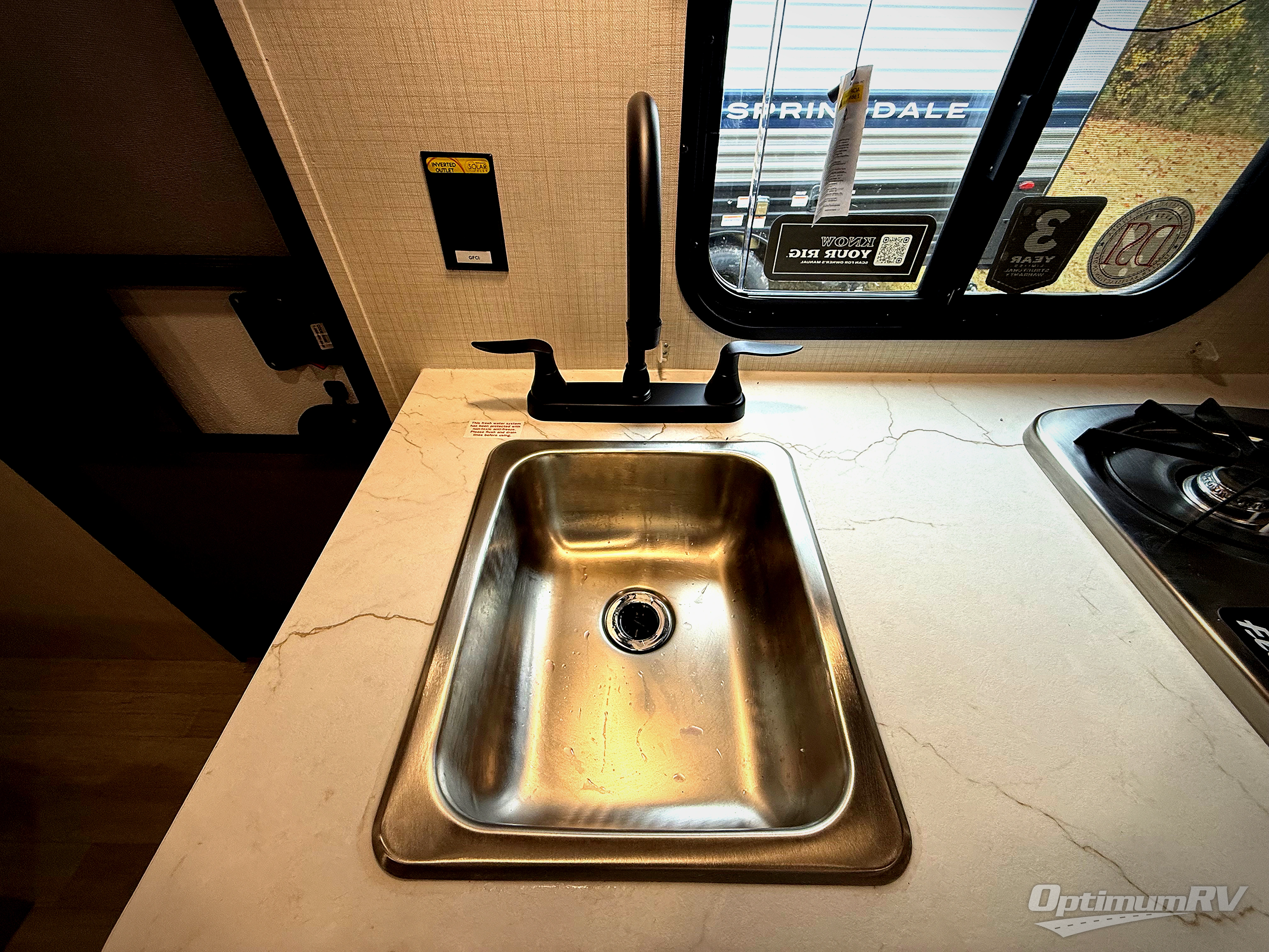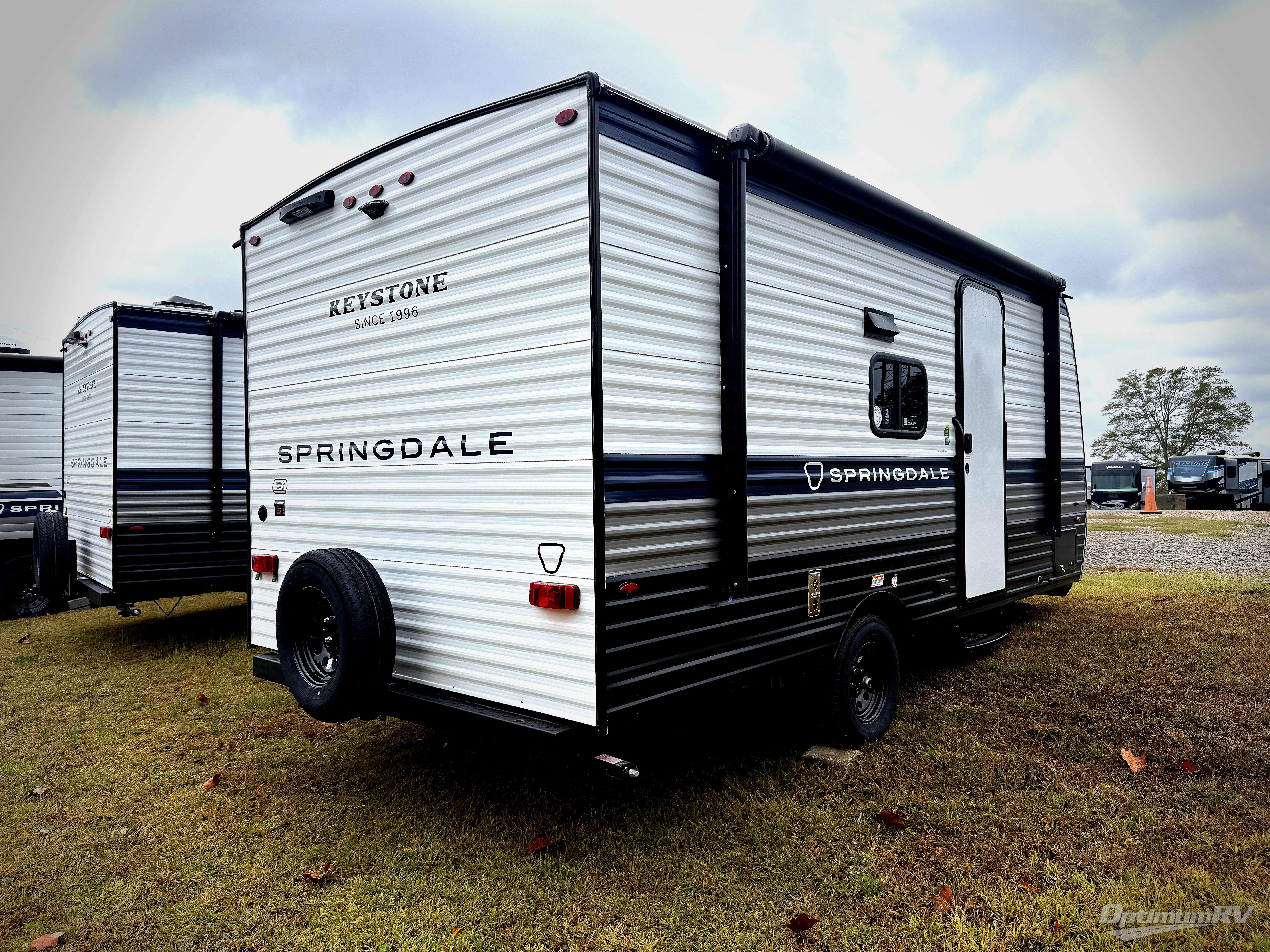 With any Springdale Mini travel trailer by Keystone, you will enjoy lightweight towing thanks to their single-axle! The AlphaPly TPO roof membrane is ultra durable, and the power awning will provide protection from the sun as you relax in your camp chairs outside. Each model includes blackout night shades, LED lighting, plus many more interior comforts. There is also a roof A/C and 20K BTU furnace to keep you comfortable, plus a tankless water heater for endless hot showers!