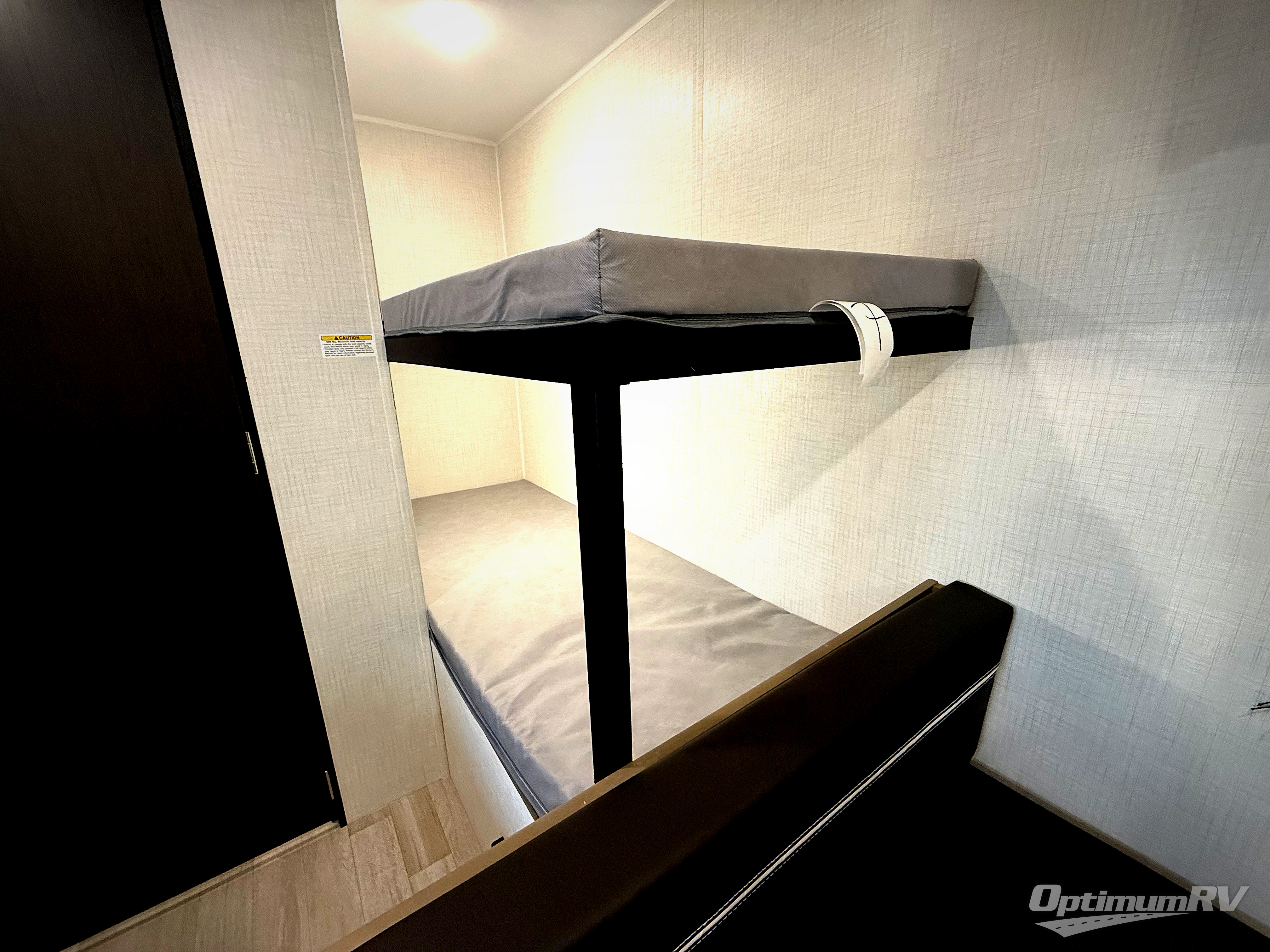 Get ready for outdoor fun with your favorite people when you have this trailer in tow! Once at your campsite, you can easily setup the 10' power awning, grab your camping chairs from the pass-thru storage, and relax or start playing. The cook will love the galley kitchen with the two burner cooktop, plus a refrigerator for cold items. If you like, you can eat inside at the booth dinette which doubles as sleeping space, and of course the kids will love the bunk beds next to the full bathroom. And you will sleep soundly on the front queen bed.
