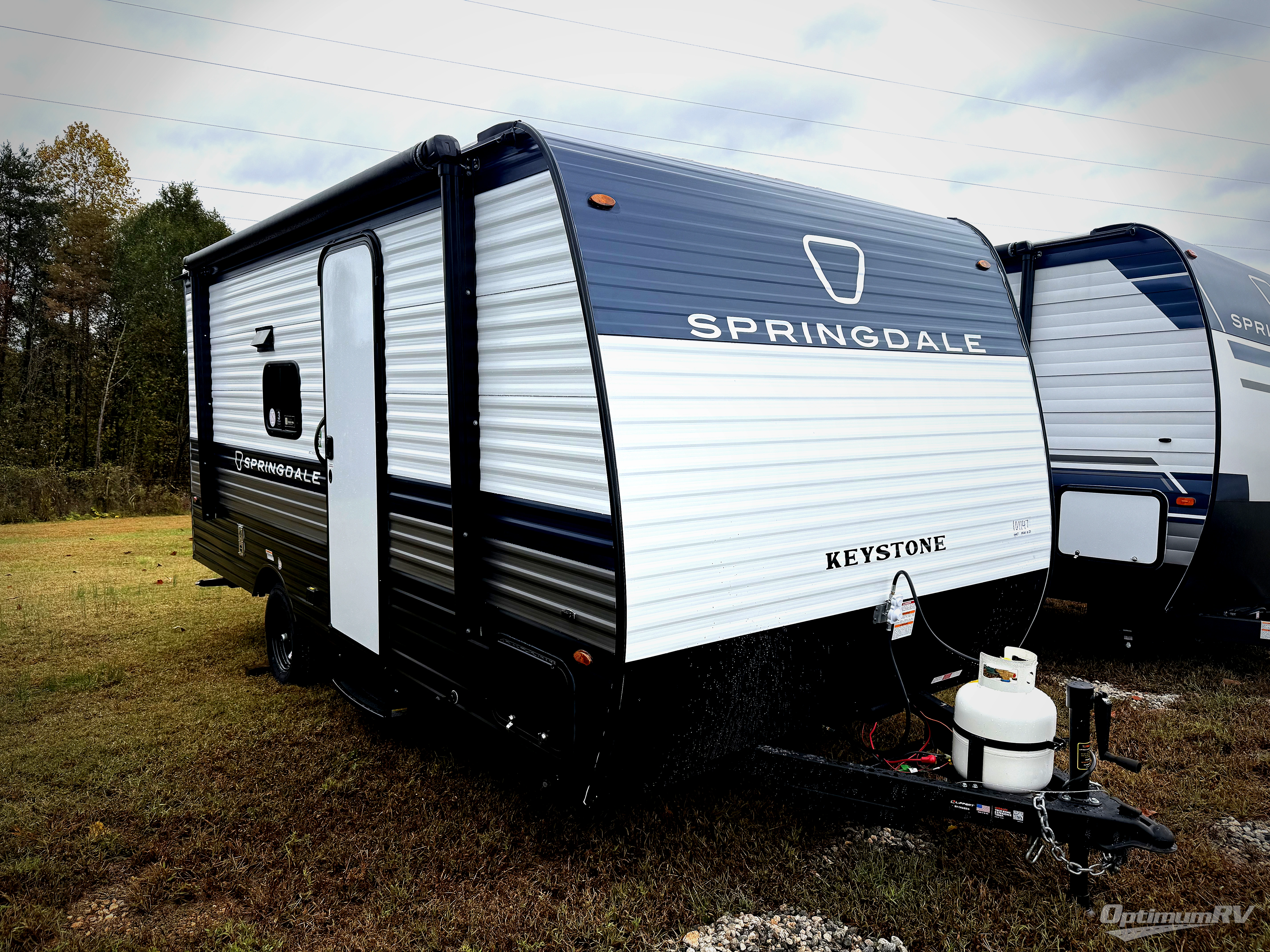 With any Springdale Mini travel trailer by Keystone, you will enjoy lightweight towing thanks to their single-axle! The AlphaPly TPO roof membrane is ultra durable, and the power awning will provide protection from the sun as you relax in your camp chairs outside. Each model includes blackout night shades, LED lighting, plus many more interior comforts. There is also a roof A/C and 20K BTU furnace to keep you comfortable, plus a tankless water heater for endless hot showers!
