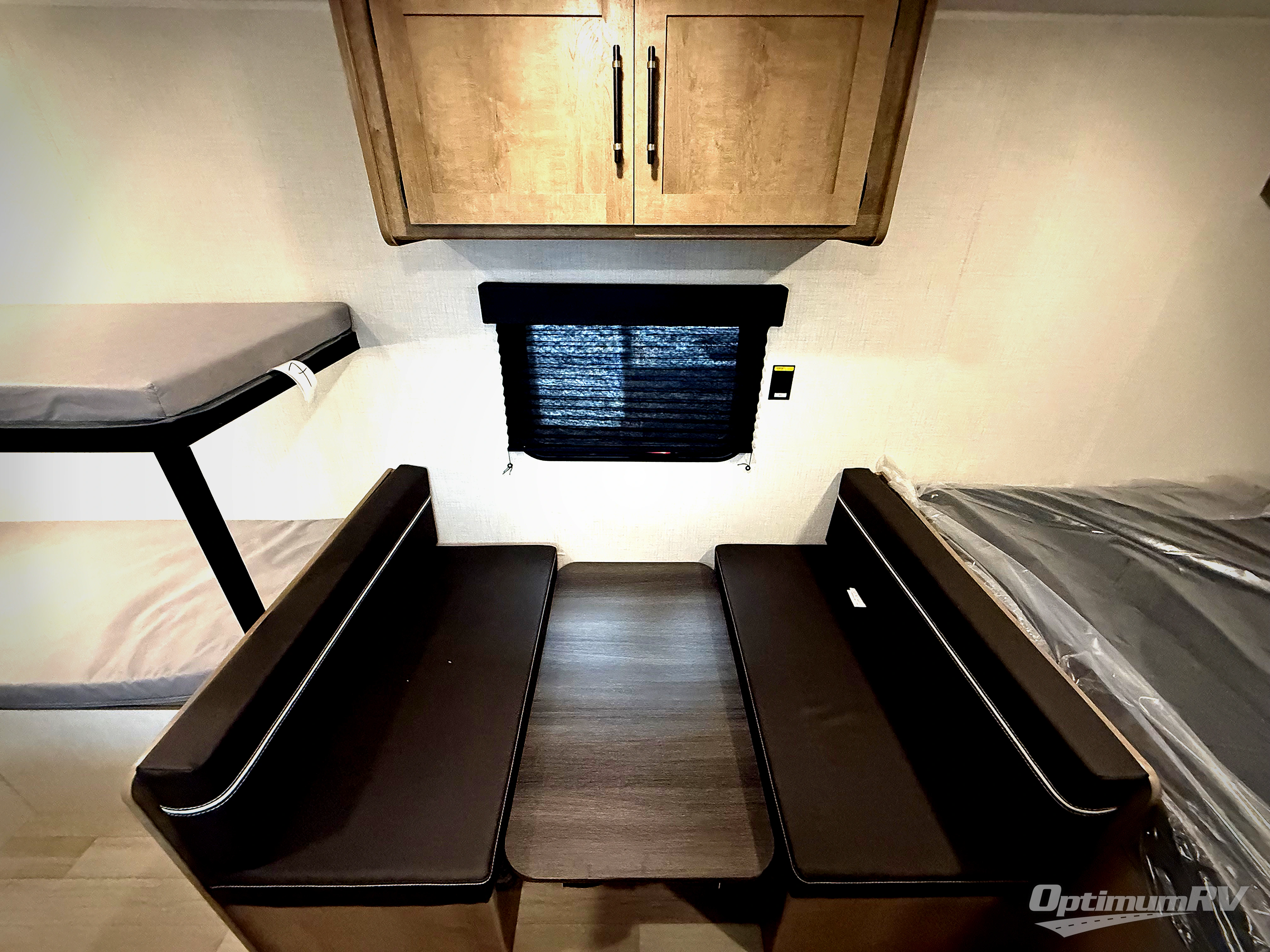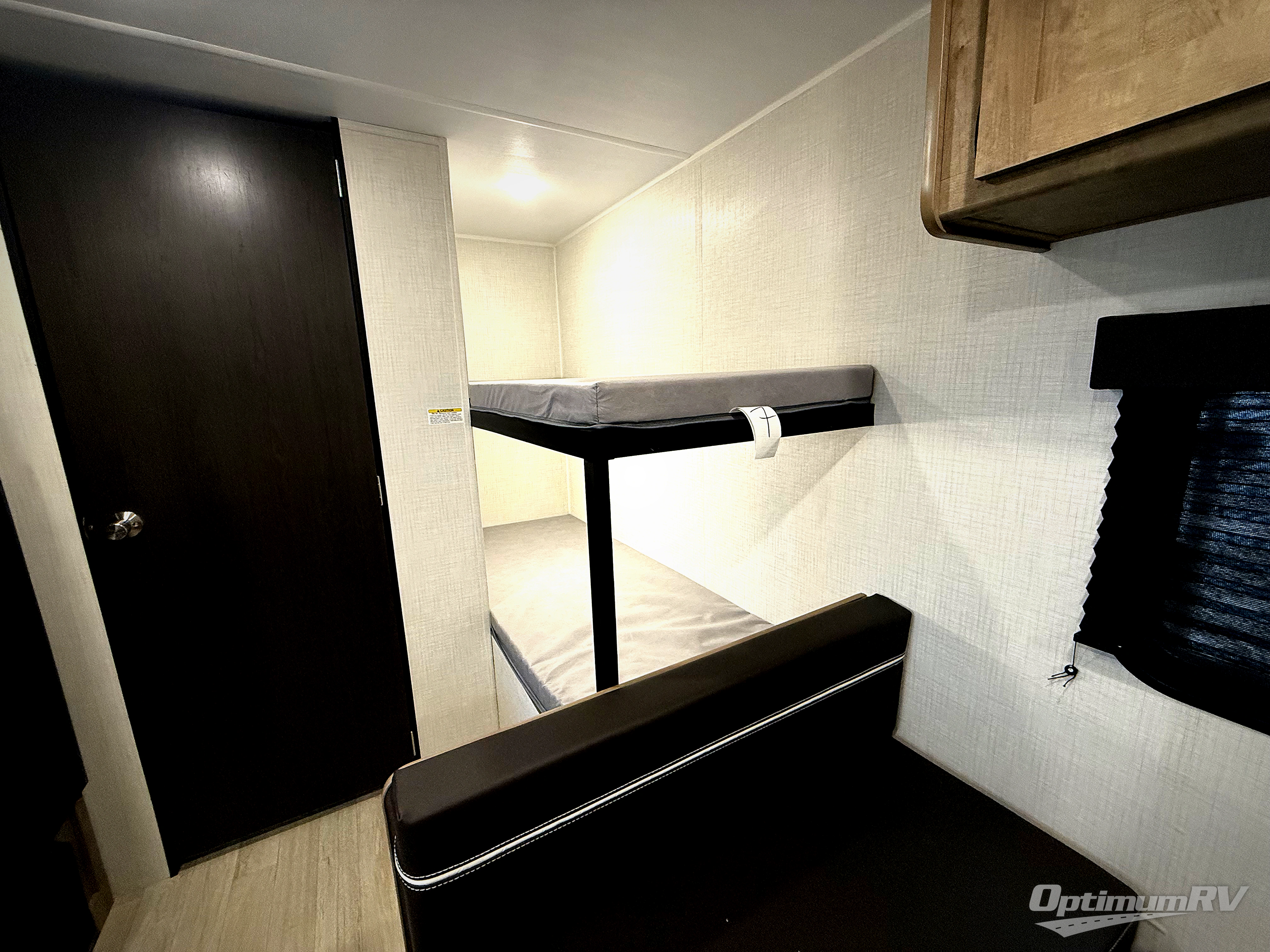 Get ready for outdoor fun with your favorite people when you have this trailer in tow! Once at your campsite, you can easily setup the 10' power awning, grab your camping chairs from the pass-thru storage, and relax or start playing. The cook will love the galley kitchen with the two burner cooktop, plus a refrigerator for cold items. If you like, you can eat inside at the booth dinette which doubles as sleeping space, and of course the kids will love the bunk beds next to the full bathroom. And you will sleep soundly on the front queen bed.