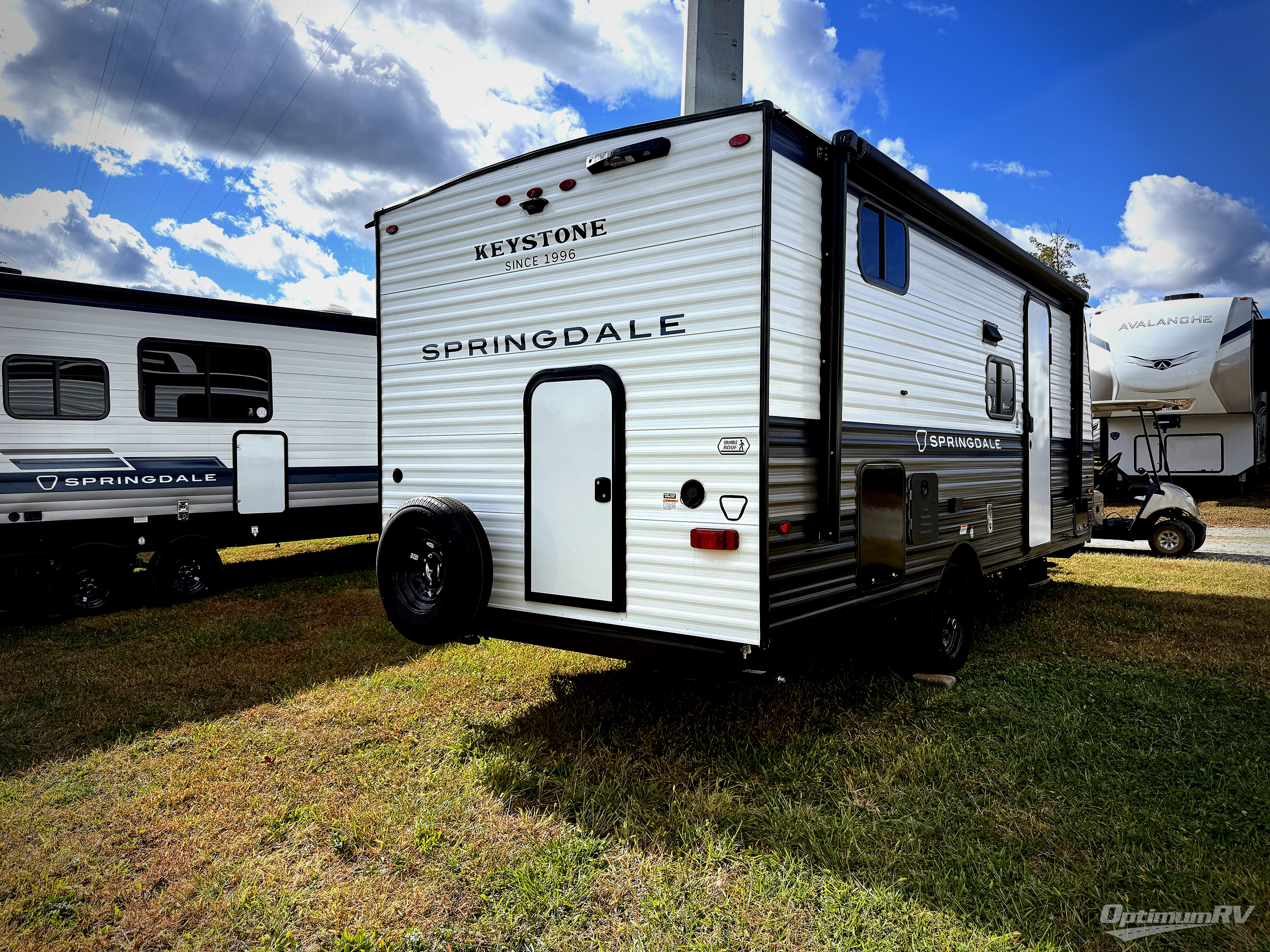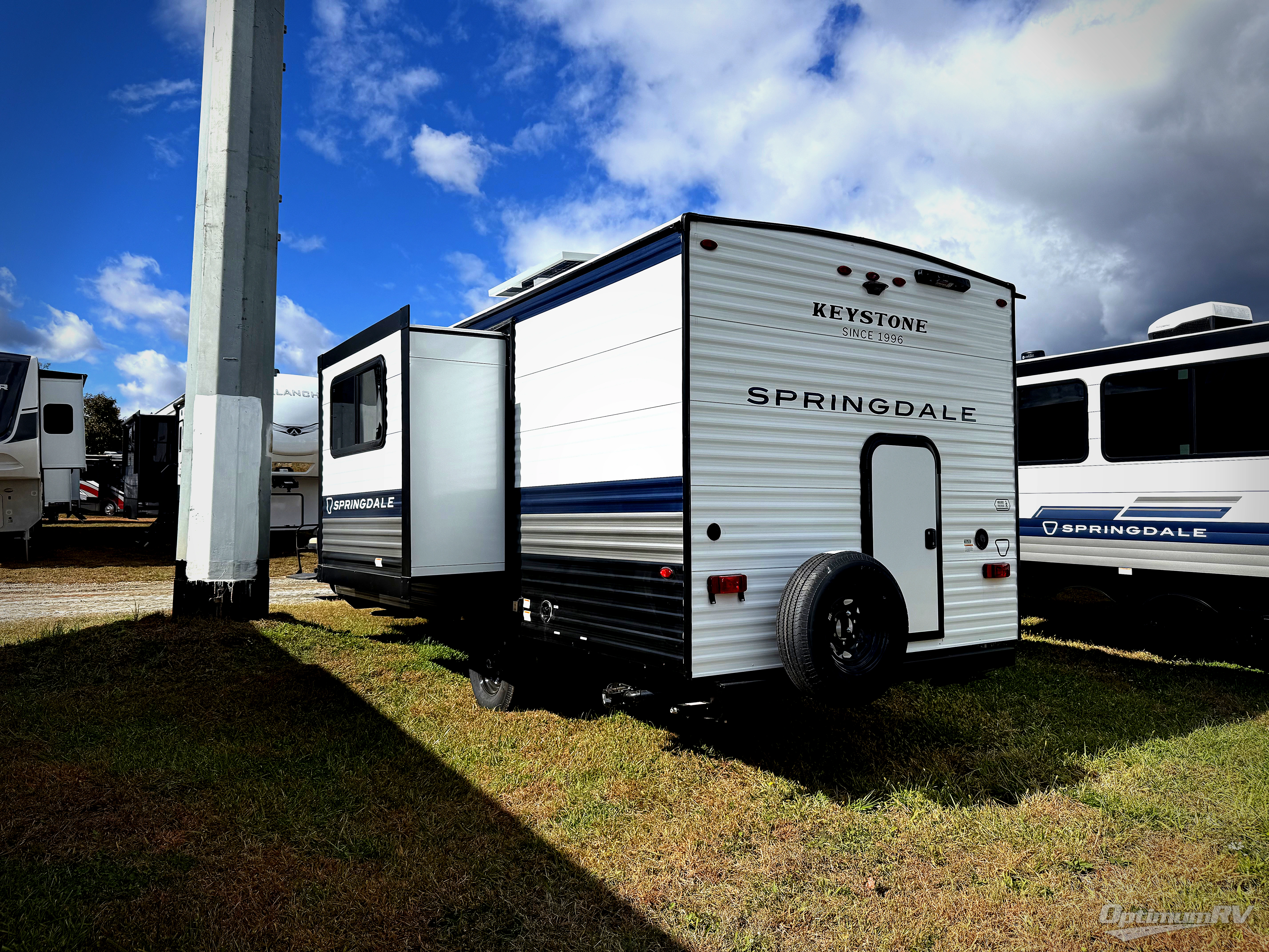 With any Springdale Mini travel trailer by Keystone, you will enjoy lightweight towing thanks to their single-axle! The AlphaPly TPO roof membrane is ultra durable, and the power awning will provide protection from the sun as you relax in your camp chairs outside. Each model includes blackout night shades, LED lighting, plus many more interior comforts. There is also a roof A/C and 20K BTU furnace to keep you comfortable, plus a tankless water heater for endless hot showers!