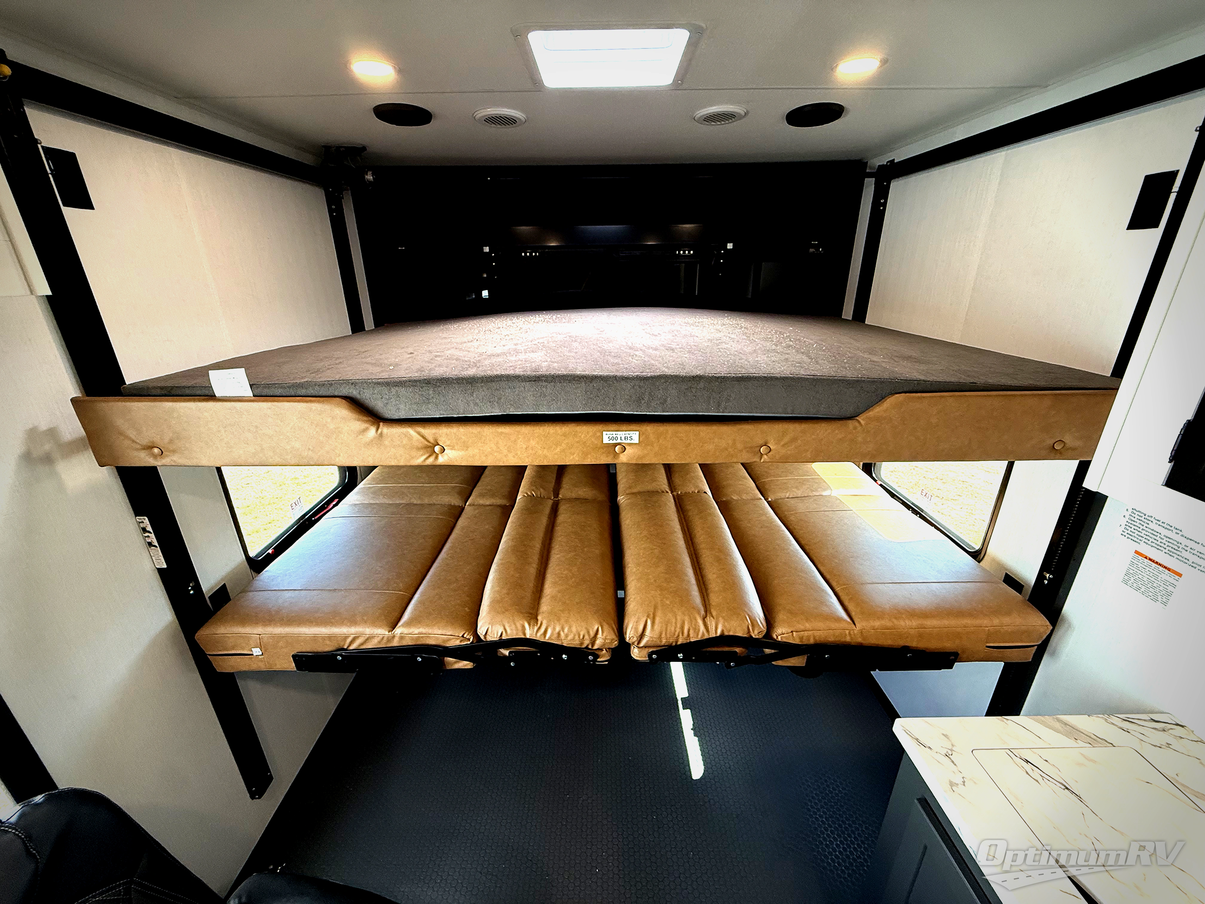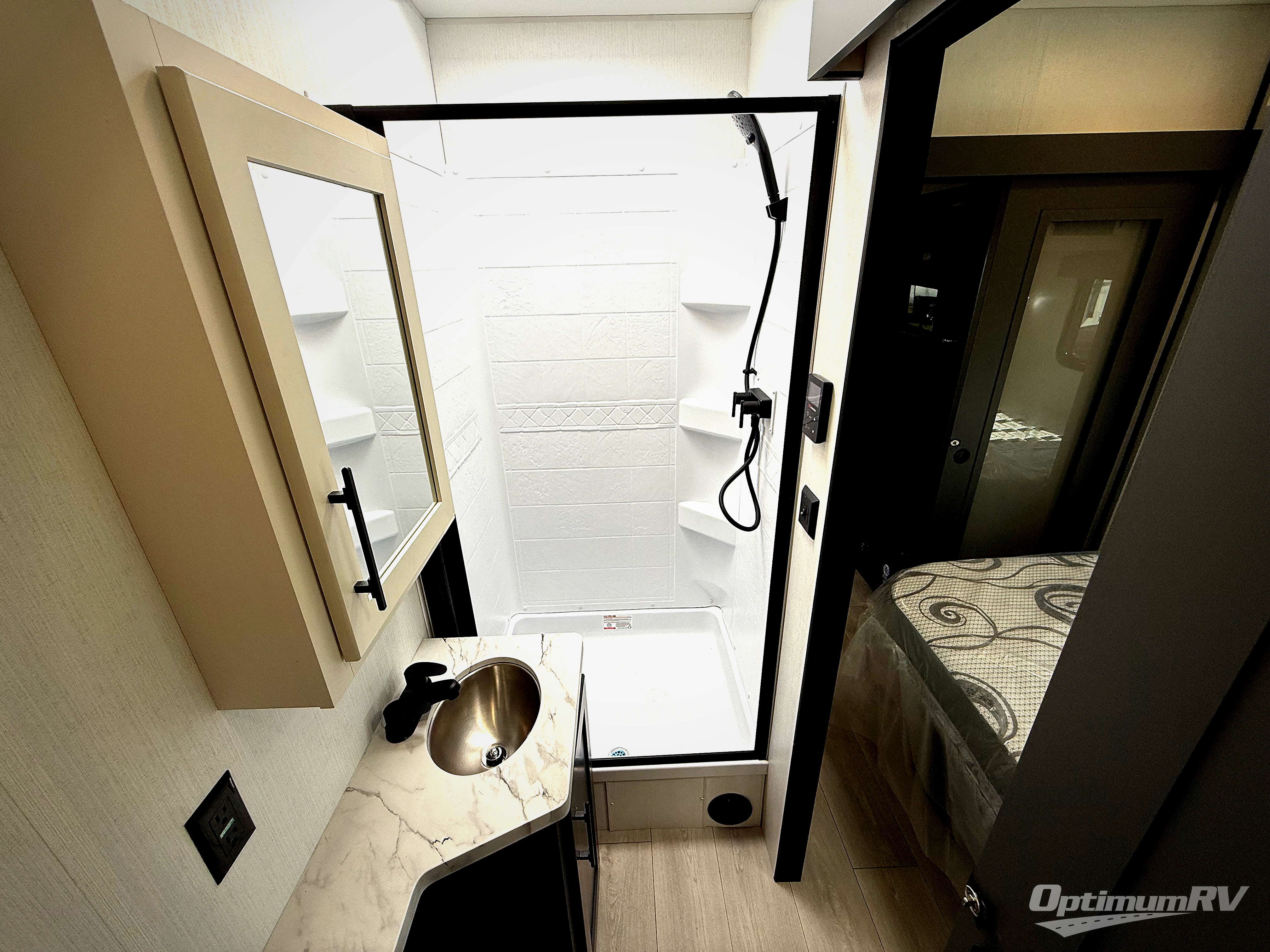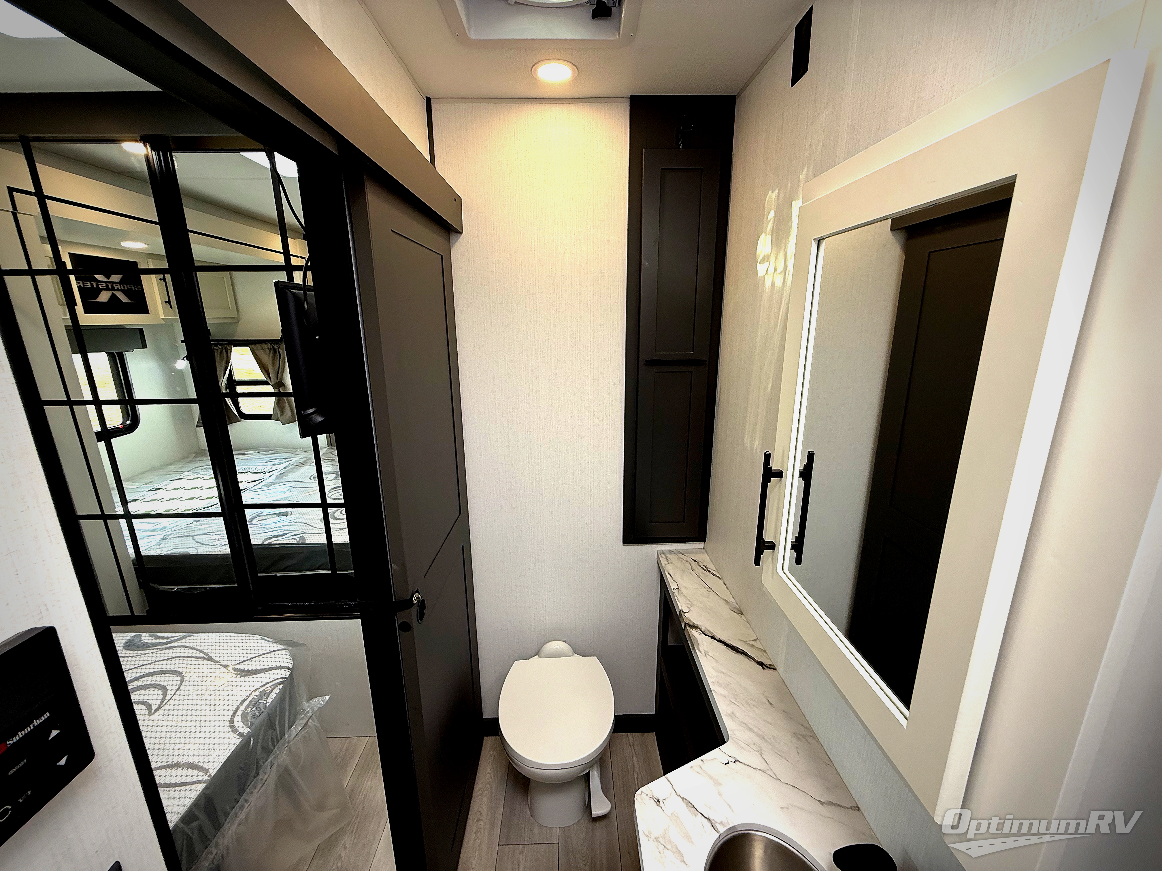 Retreat to the bedroom, where you'll find a plush queen bed, spacious wardrobe, and ample shelving for all your gear. The full bathroom features a generous 30” x 36” shower, perfect for washing away the dirt and grime of a day on the trails.