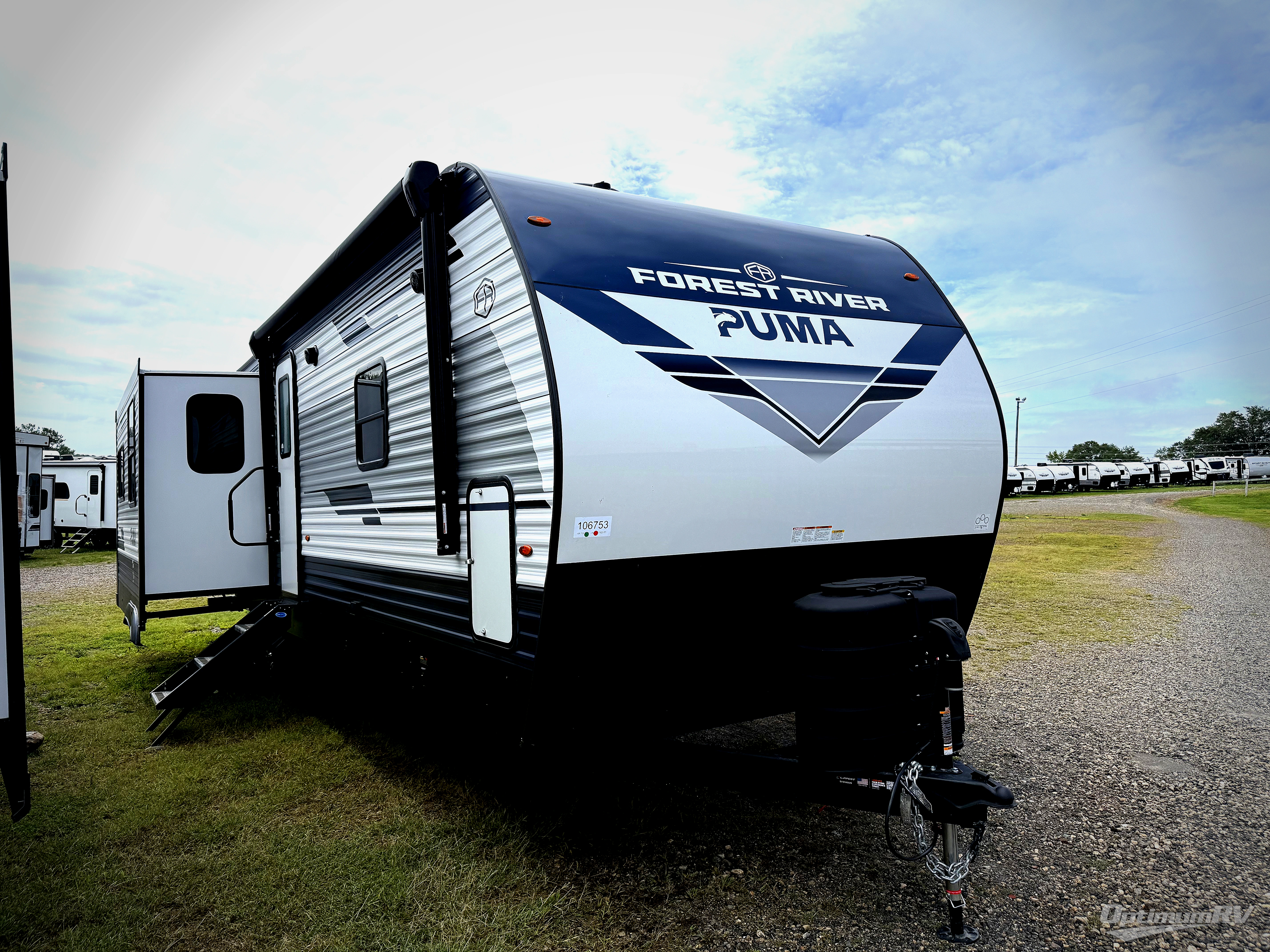 If you're looking for family-fun adventures then you need one of these Palomino Puma fifth wheels or travel trailers! They are built rugged, easy to tow, and jam packed with features. The Darco wrapped underbelly will protect your units vitals and the AlphaPly roofing membrane covers it. They also have new aluminum wheels and a powder coated steel I-beam frame. Inside, the Congoleum linoleum will be easy to keep clean, and the night roller shades will provide privacy when it's time to turn in. You'll also enjoy an electric awning with an LED light strip plus an AM/FM/Bluetooth stereo and two outside speakers to keep the party going!