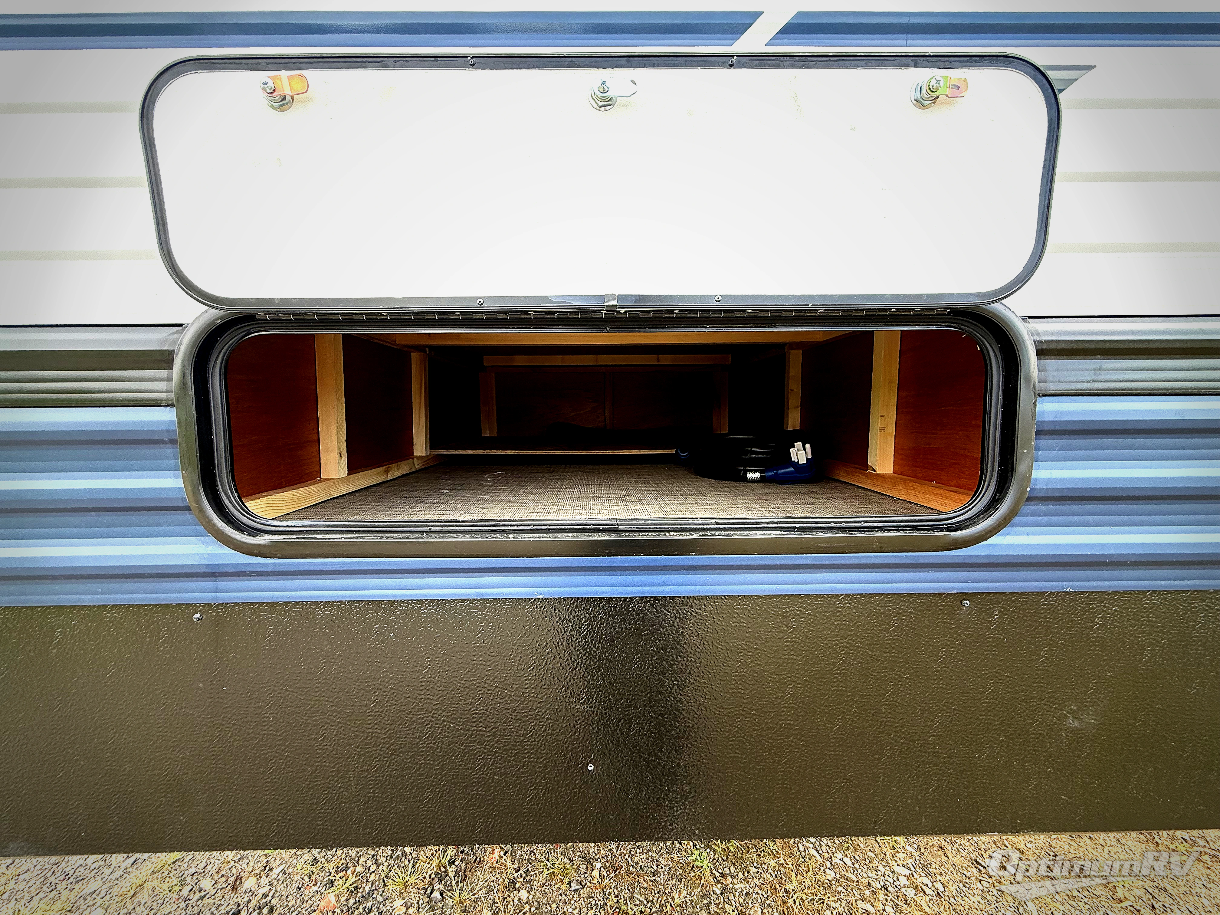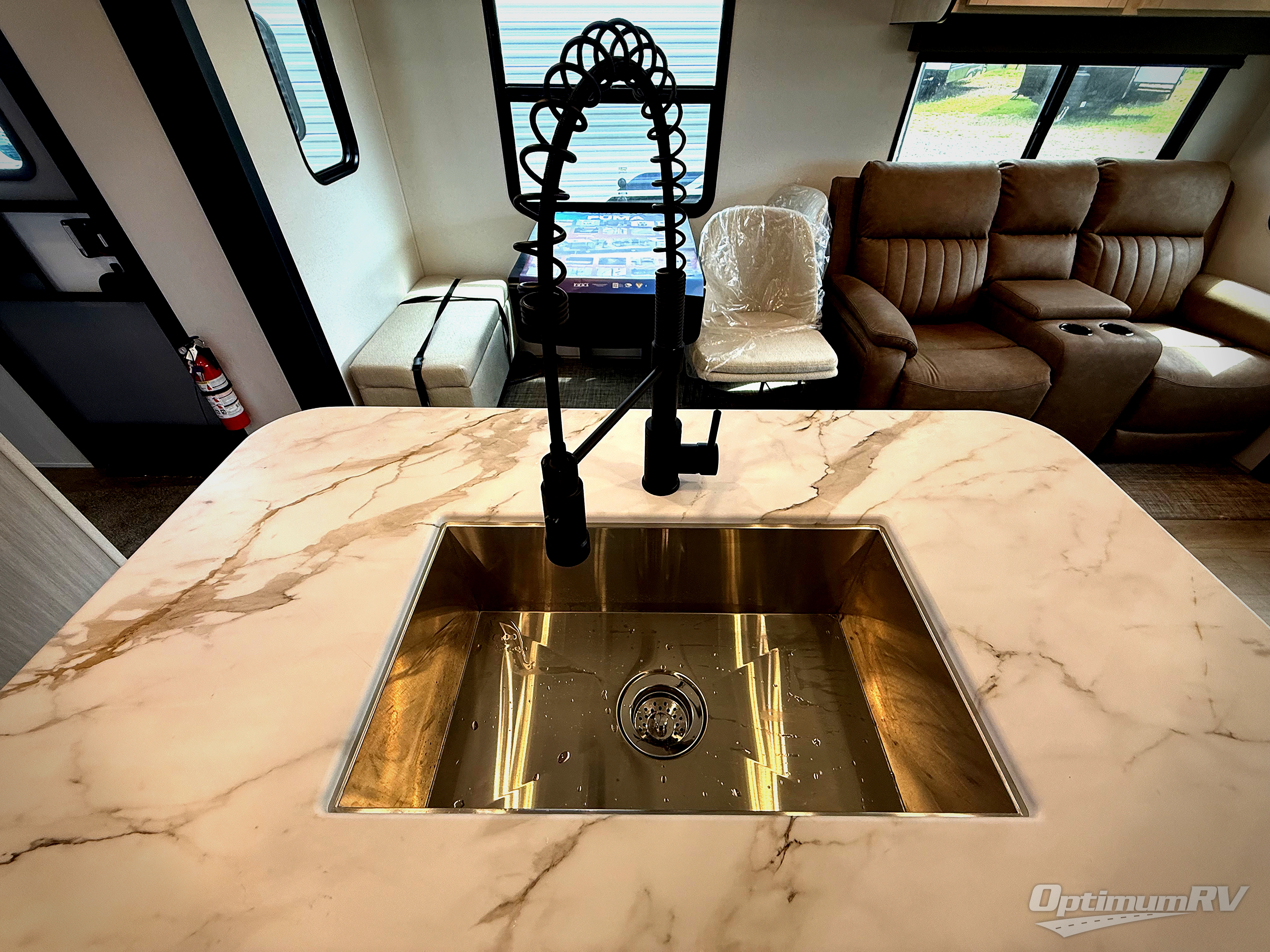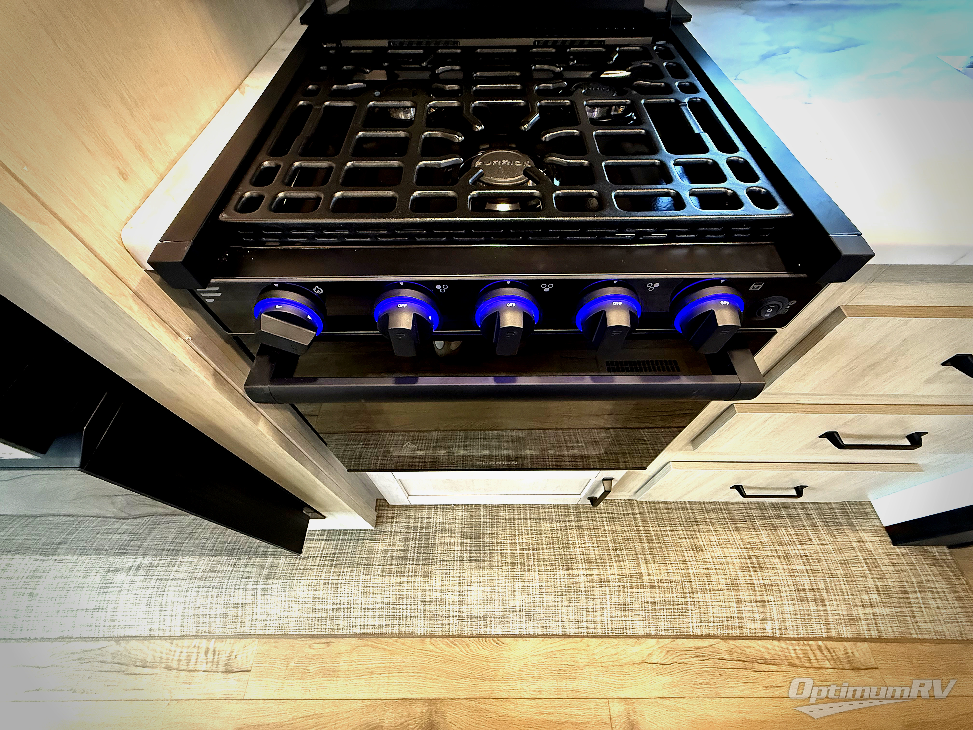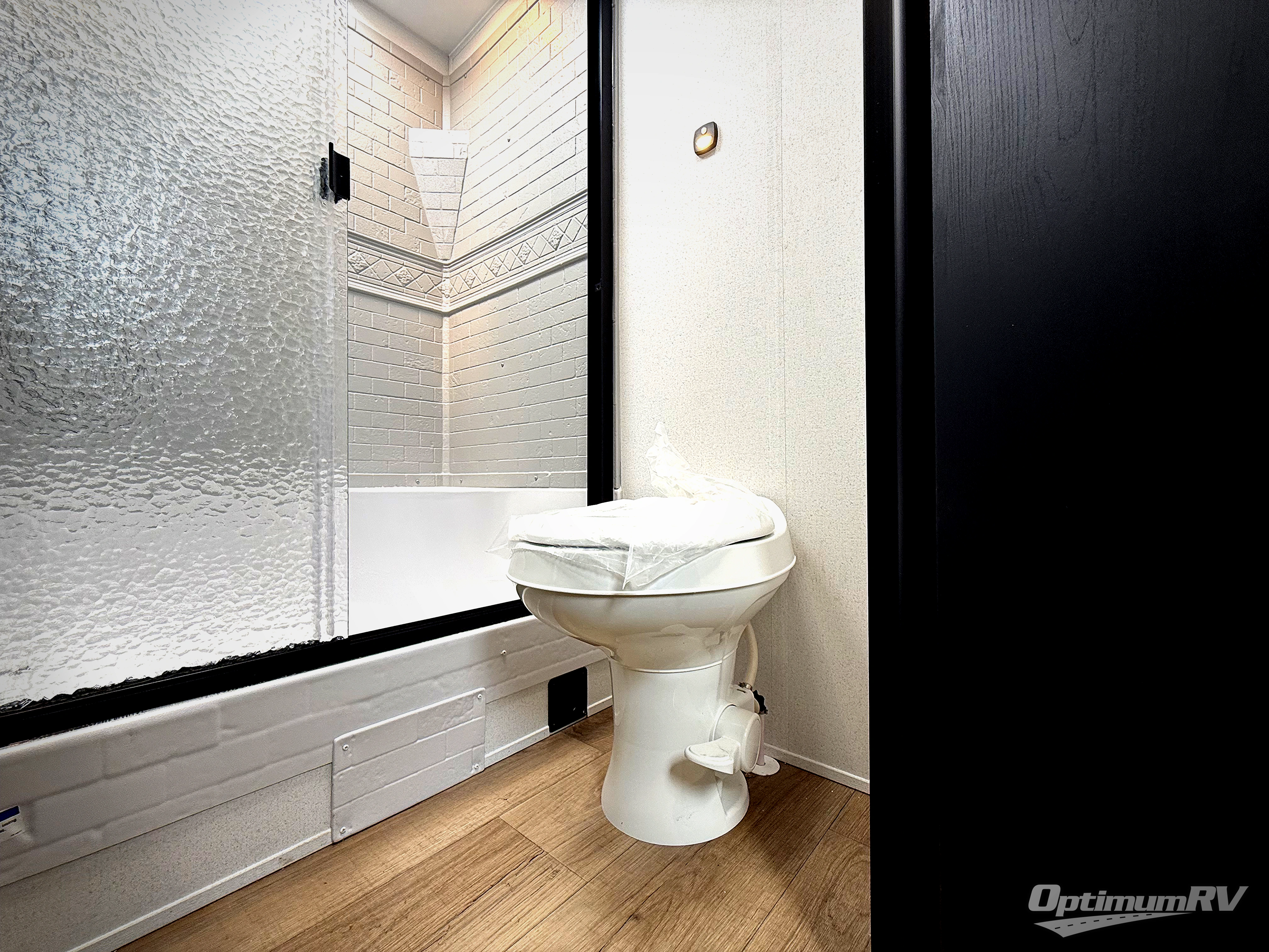 You're going to feel right at home in this travel trailer! The front private bedroom has a queen bed slide for a good night's rest, a dresser and front closet for your clothes, and another closet with washer and dryer prep. Freshen up each morning in the full bathroom with the 32" x 40" shower with a seat and then head to the kitchen to fry up some eggs on the stainless steel oven and range. You will also appreciate having a kitchen island for easier meal prep and a walk-in pantry to easily see your canned goods and snacks. The booth dinette offers a comfortable place to dine, play, and even sleep once converted. What better way to wind down your nights than to relax on either the rear sofa or in one of the two recliners across from the entertainment center with a fireplace!