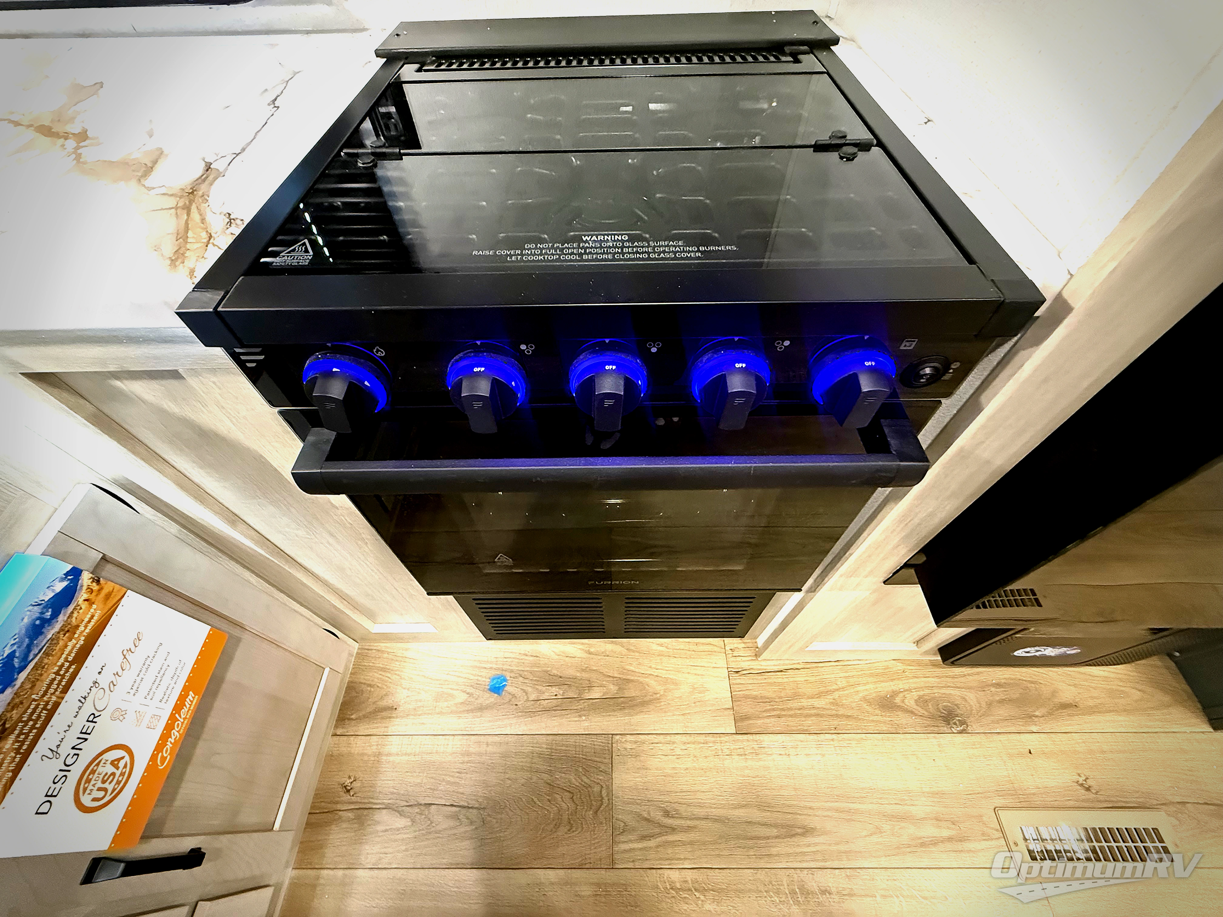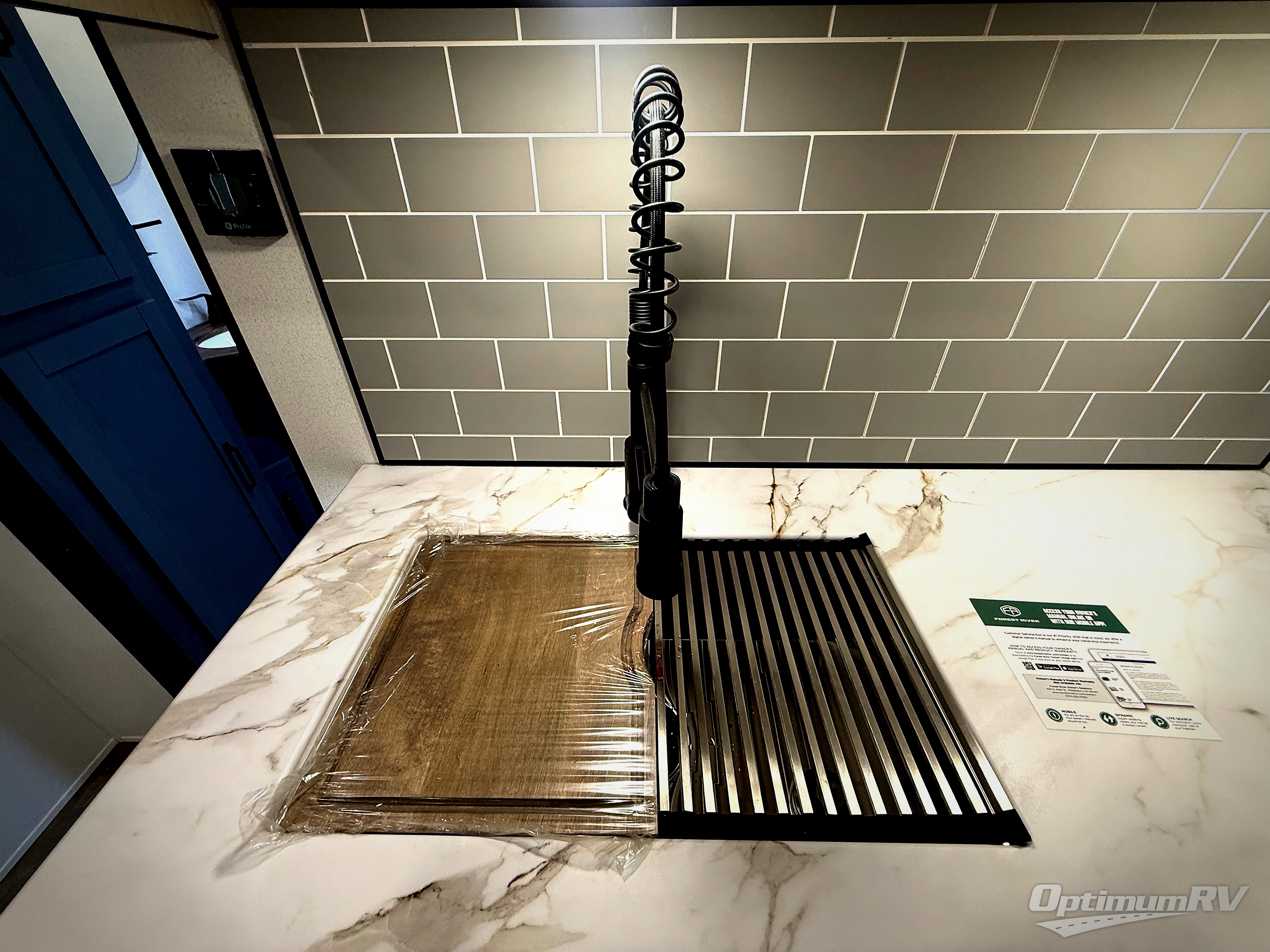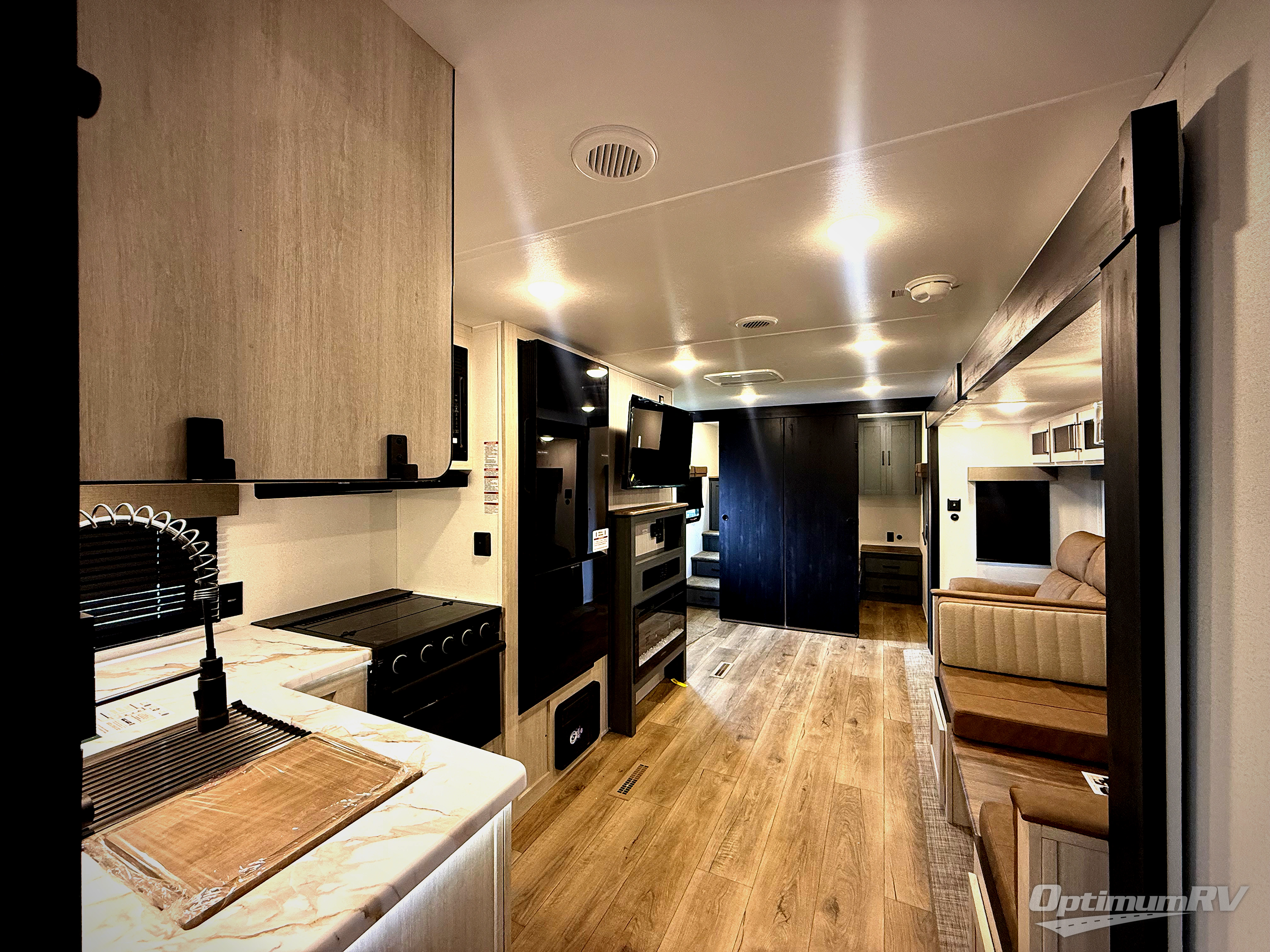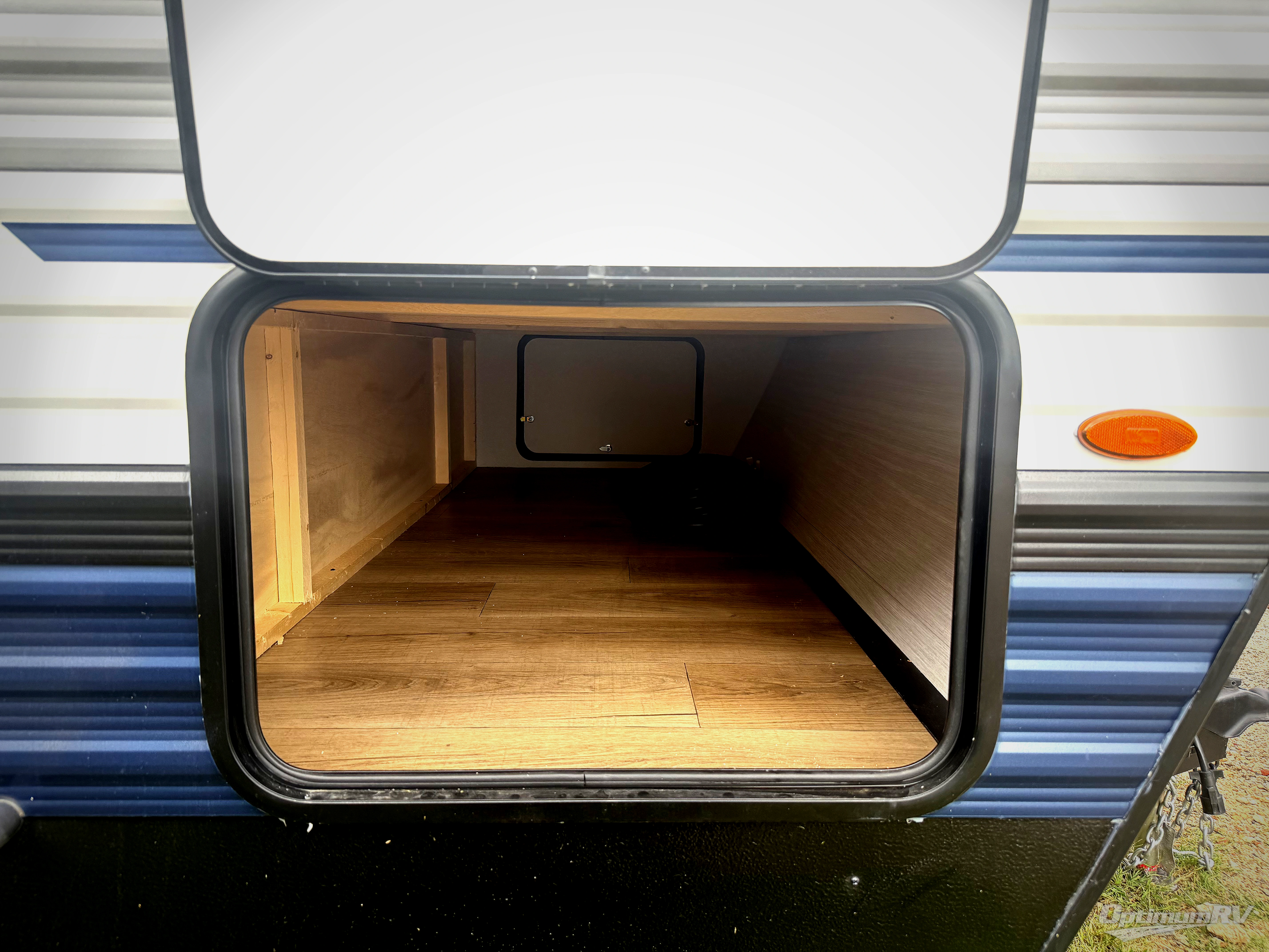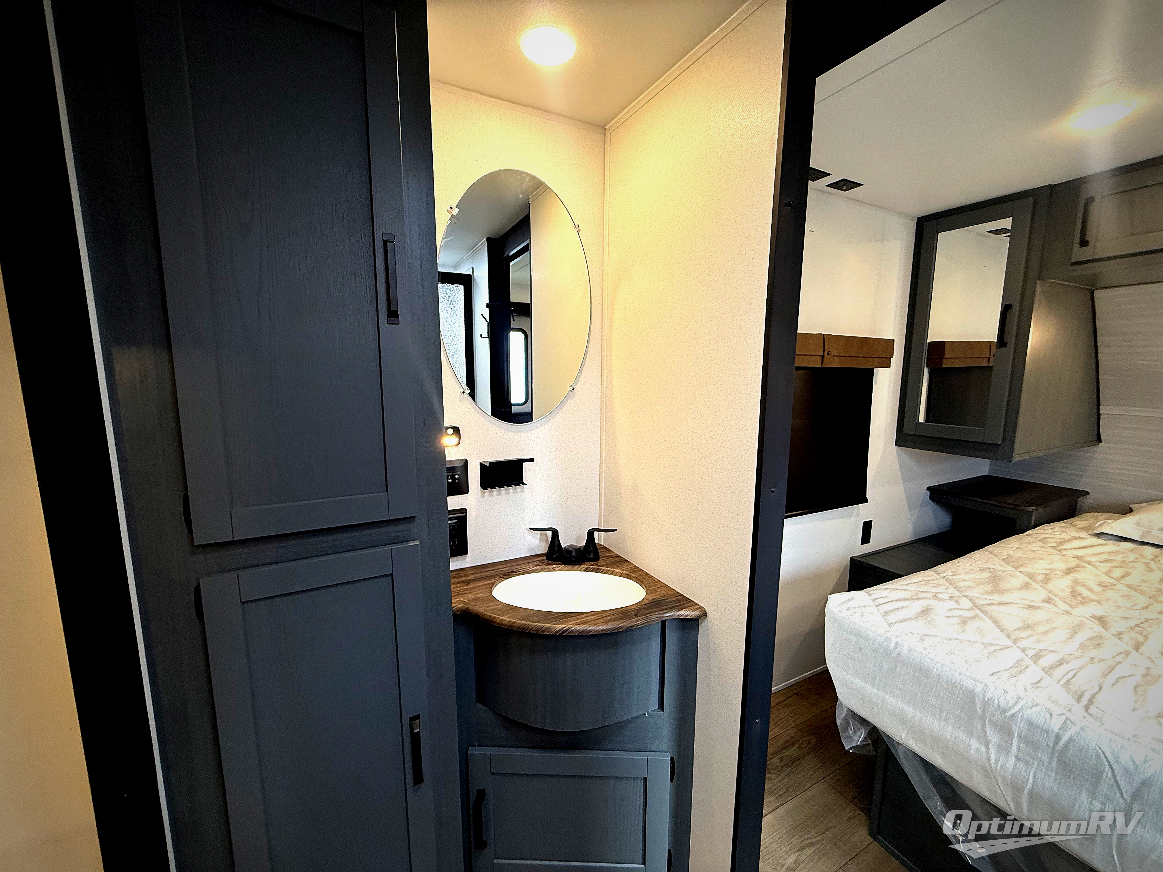 This travel trailer is perfect for camping with a larger group of friends or if you have older kids since there are two private bunkrooms! Each room includes a bunk bed and storage space for clothes, shoes, and more. You'll enjoy your own space up front in the master bedroom that includes a queen bed, dual shirt closets, and one of the dual entry doors to the unit for added convenience. Everyone can come together in the combined living area and kitchen that includes a large slide out with a sofa and booth dinette, plus there is a fireplace to make this space feel more like home. A full kitchen inside lets you create home-cooked meals each day, and you can choose to add the optional micro kitchen with a griddle for a pancake breakfast outdoors!