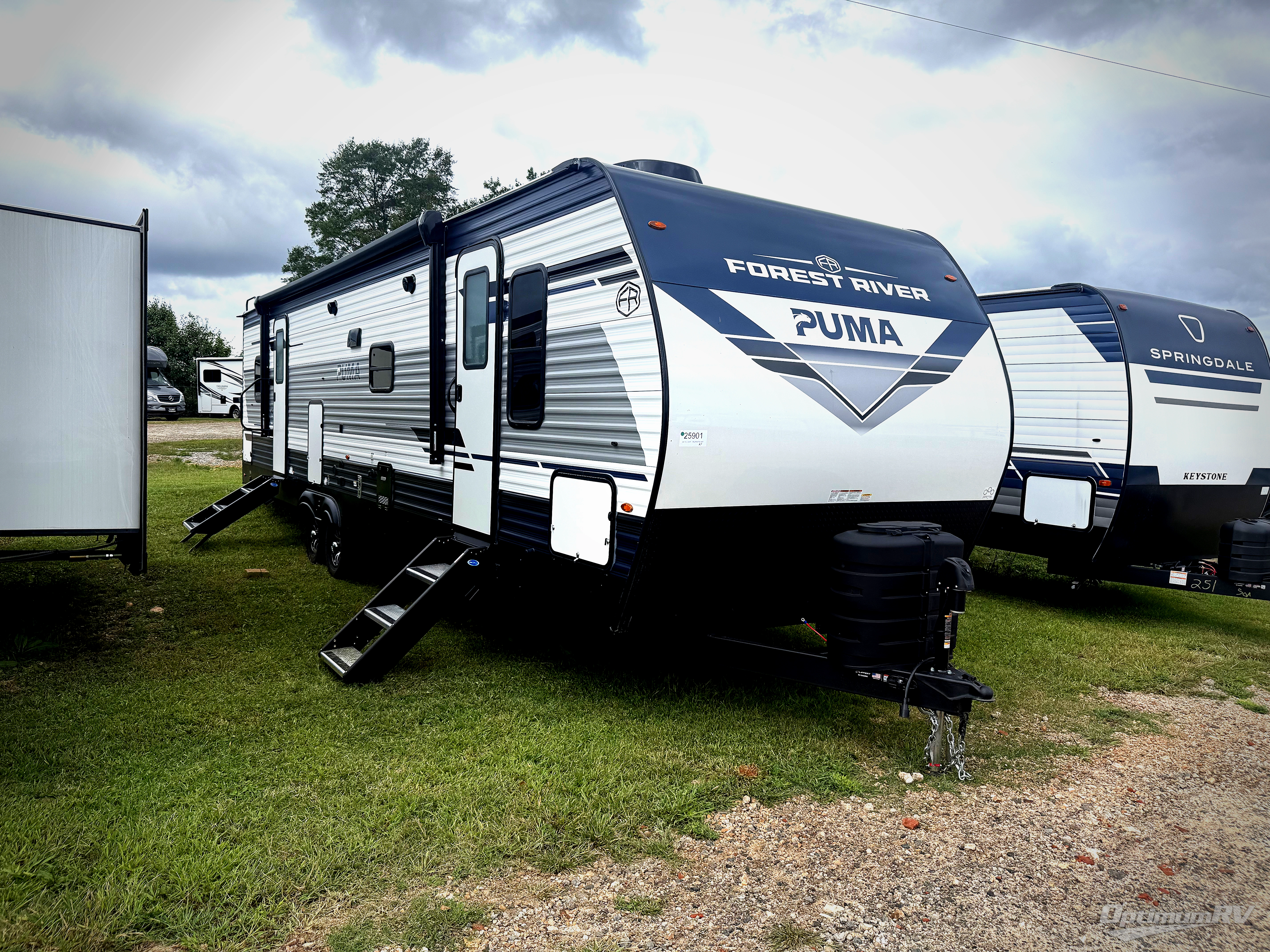 If you're looking for family-fun adventures then you need one of these Palomino Puma fifth wheels or travel trailers! They are built rugged, easy to tow, and jam packed with features. The Darco wrapped underbelly will protect your units vitals and the AlphaPly roofing membrane covers it. They also have new aluminum wheels and a powder coated steel I-beam frame. Inside, the Congoleum linoleum will be easy to keep clean, and the night roller shades will provide privacy when it's time to turn in. You'll also enjoy an electric awning with an LED light strip plus an AM/FM/Bluetooth stereo and two outside speakers to keep the party going!