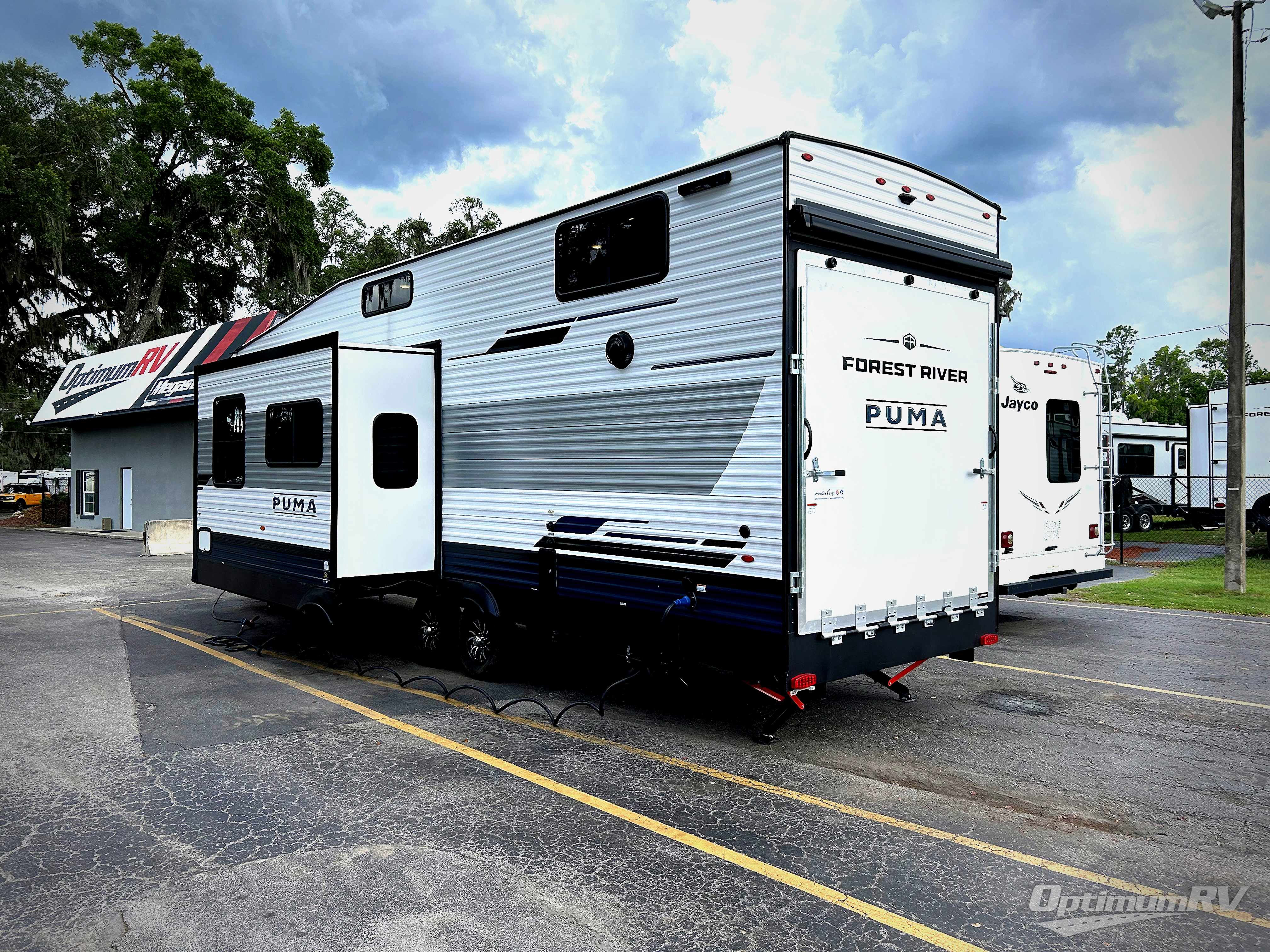 The ultimate travel trailer is found in this Puma! There is ample space to move about thanks to the large slide out and dual entry doors, plus there is a rear patio where you can entertain guests and relax in your camp chairs! The full bath includes a large linen closet to keep bath necessities stocked, and above this room is where you'll find the loft with two bunk mats. The loft looks out on the main living area and kitchen, where you can relax on the sofa, play a game at the booth dinette, and make dinner in the full kitchen. And a front private bedroom provides you with your own space at night!