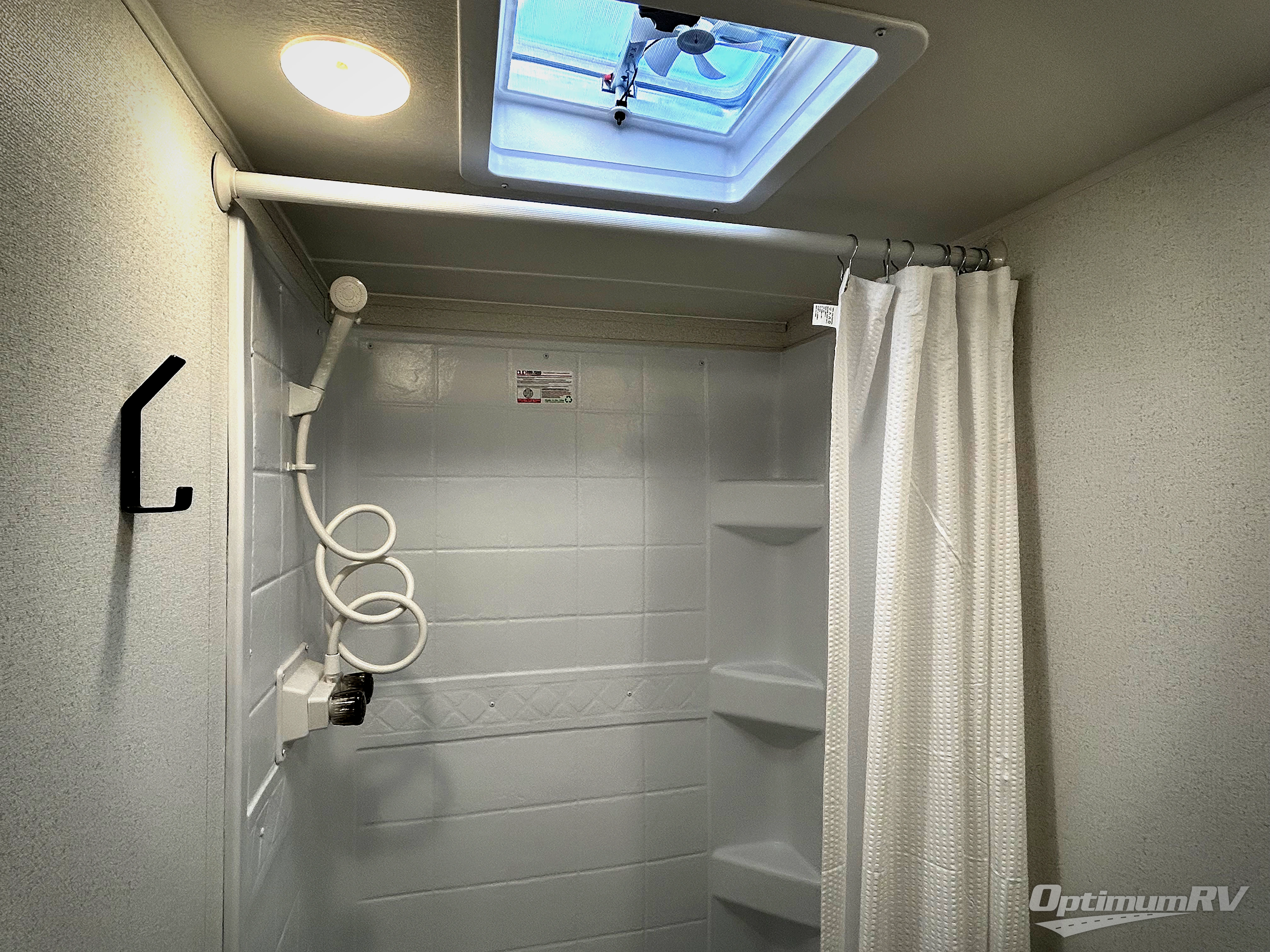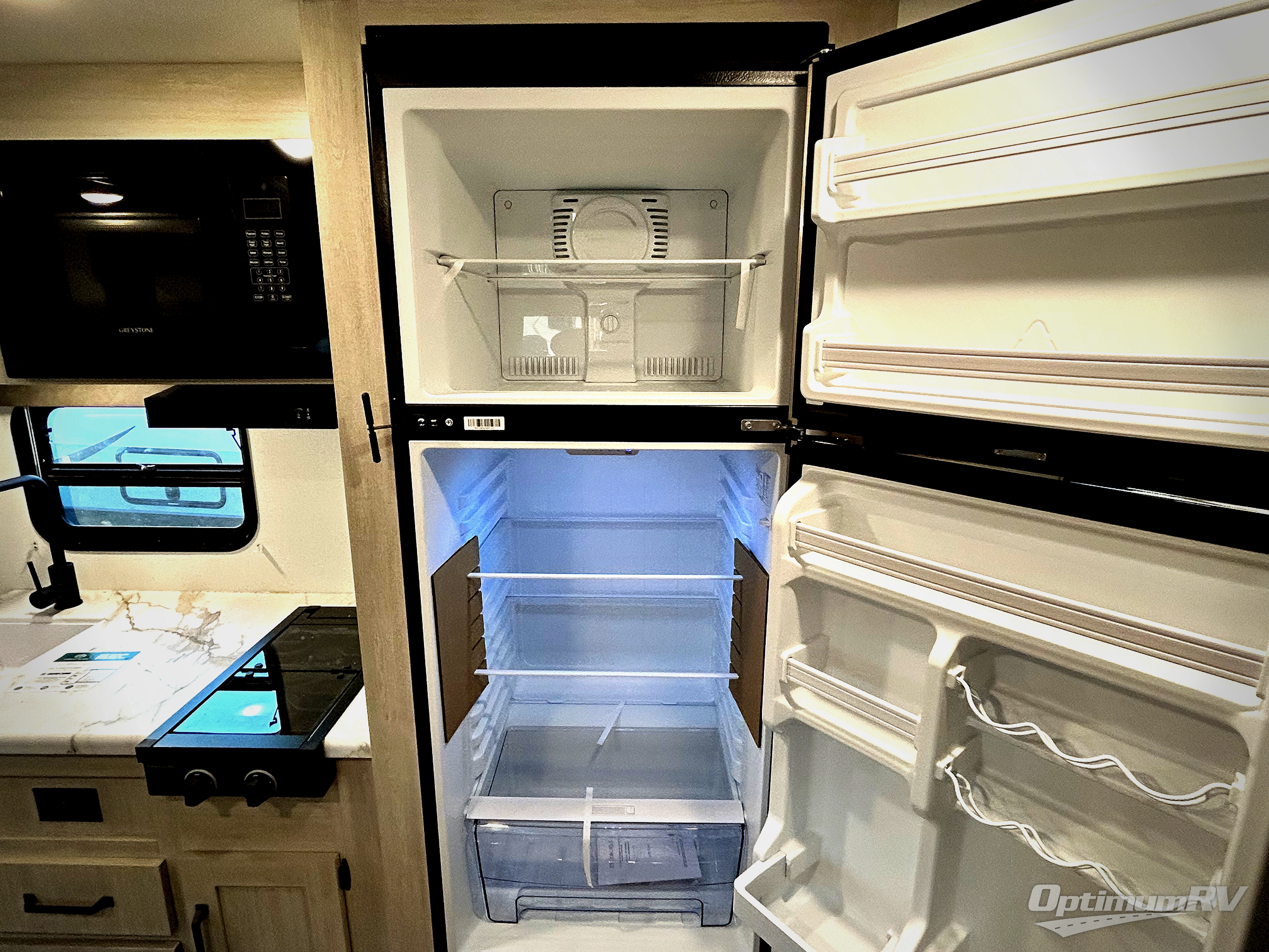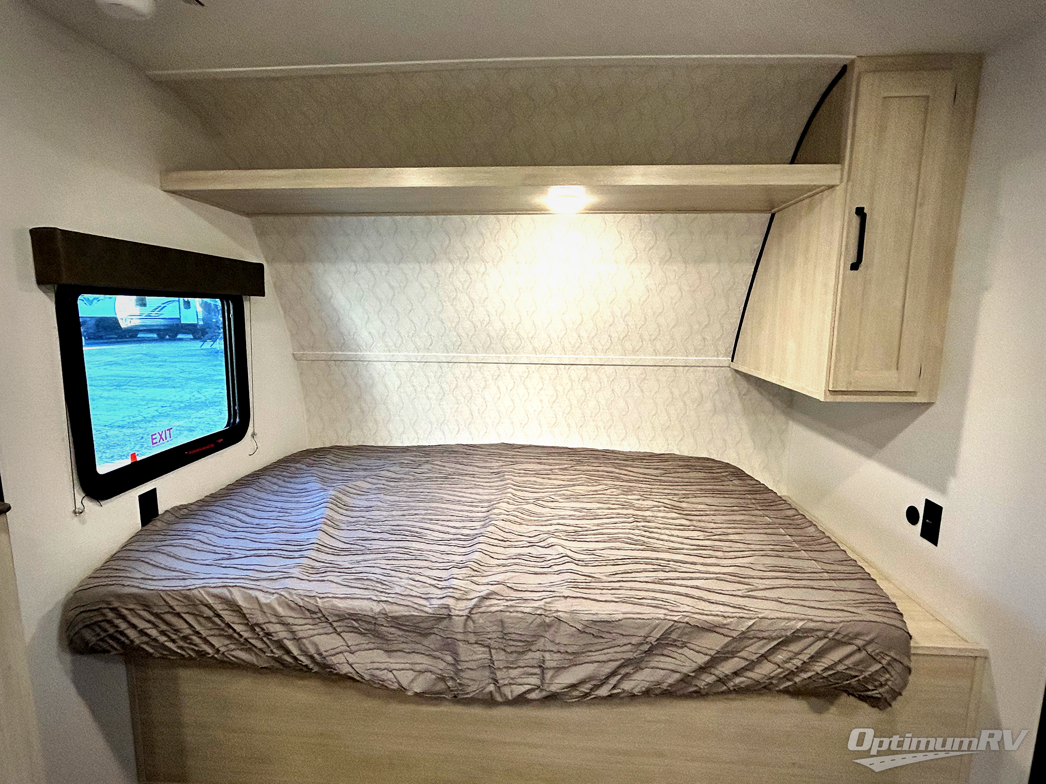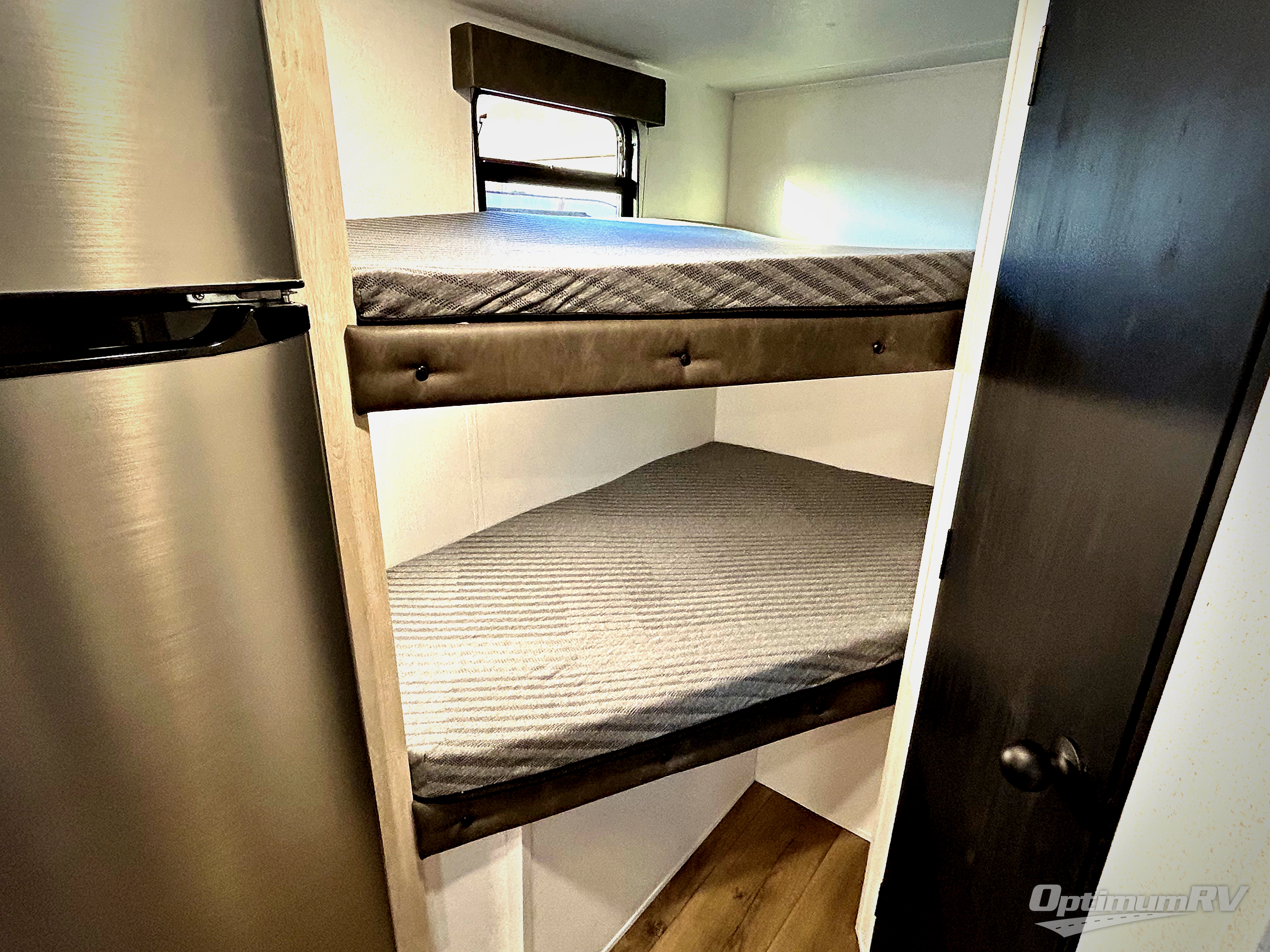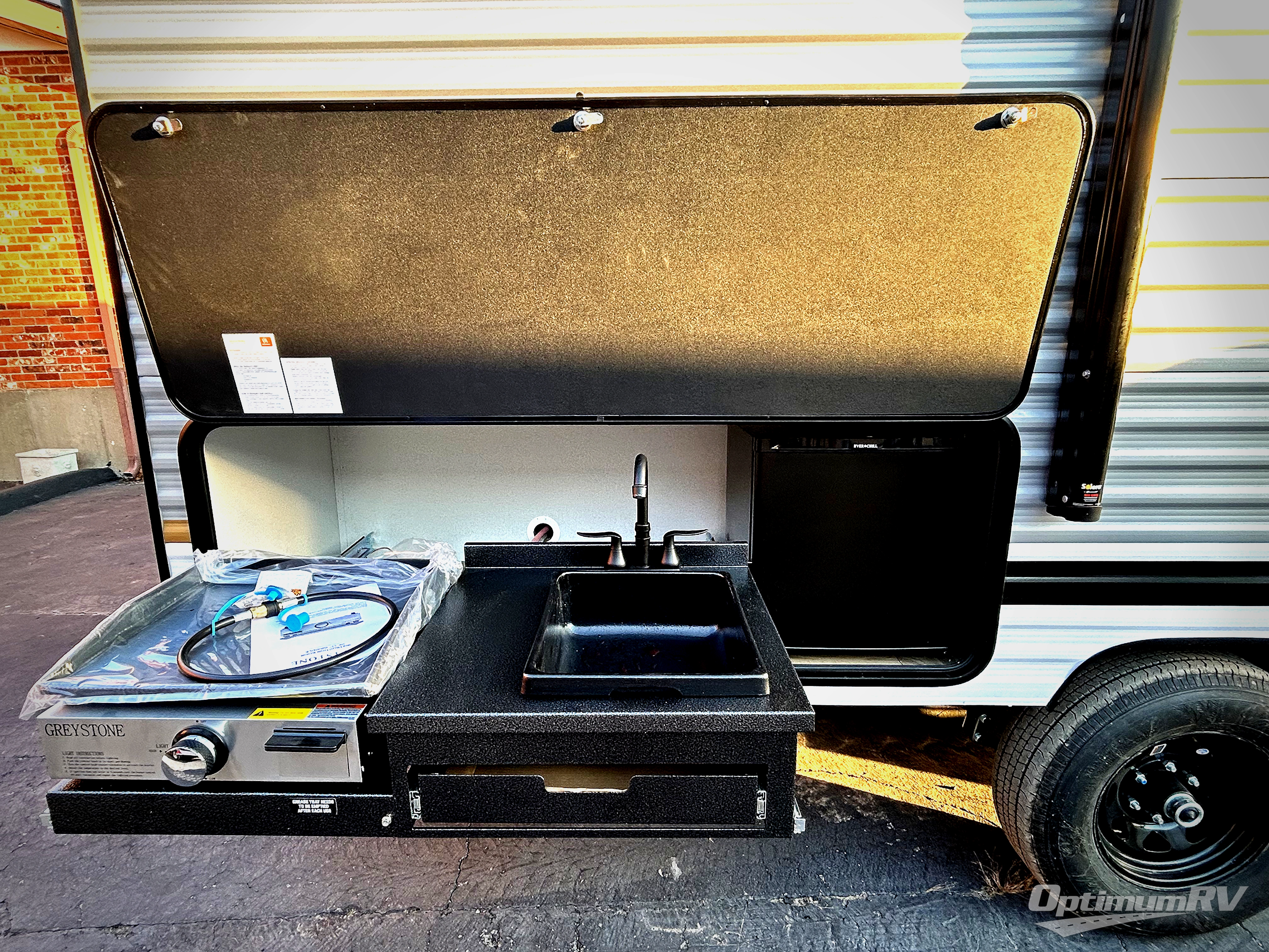 The whole gang will love camping in this travel trailer since there are double-size bunks for compact sleeping spaces and a slide out for more space to relax! The front RV queen bed is sure to provide a great night's rest, and you can choose the optional Murphy bed if you're needing more seating space during the day. Once you've made dinner on the two burner cooktop, you can dine around the U-shaped dinette. And an optional mini kitchen with a griddle is available if you'd rather cook outdoors! This unit includes ample storage space for your things, including exterior storage and storage under the bunks!
