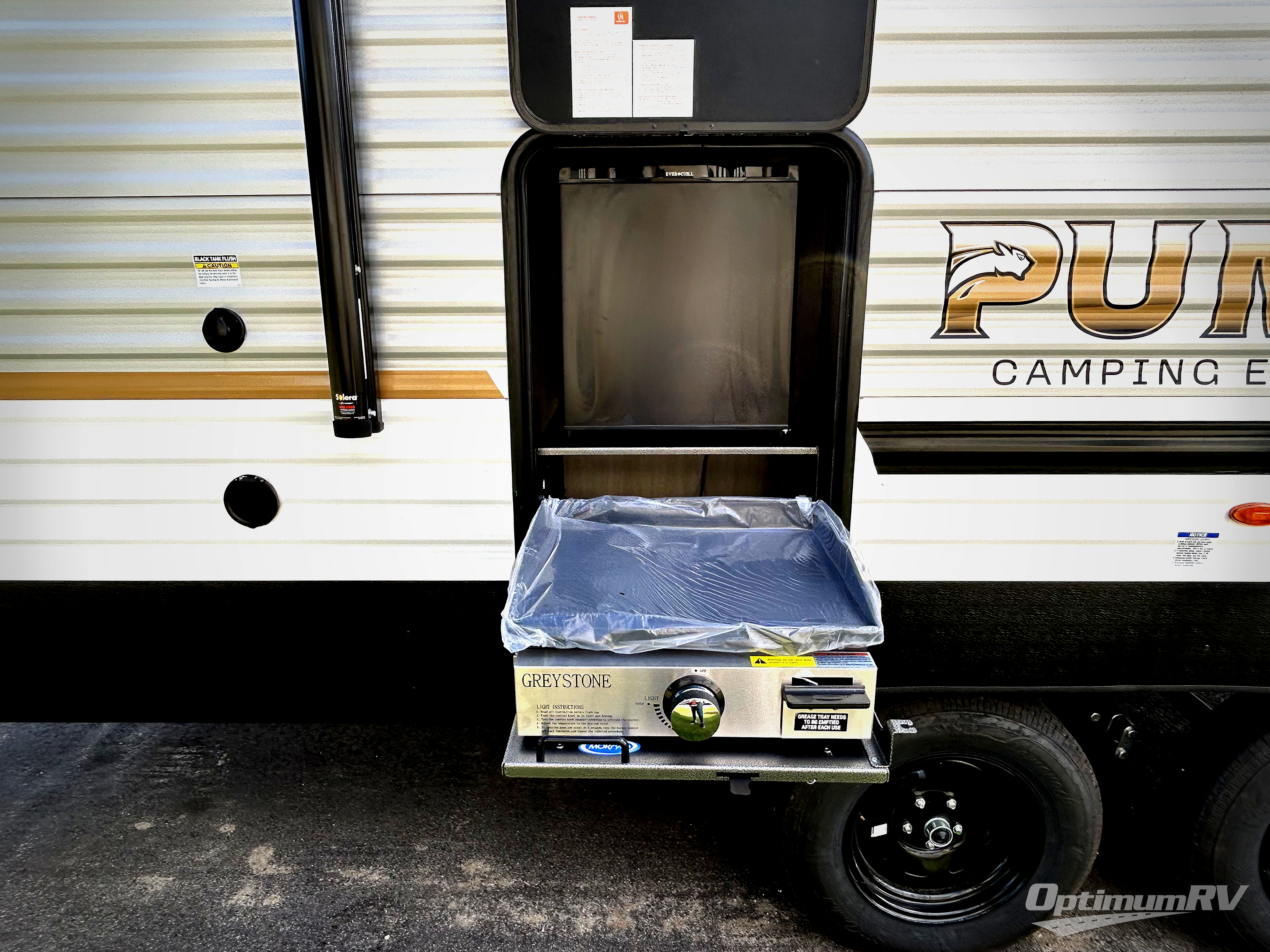 The Puma Camping Edition by Palomino offer an affordable travel trailer for rookie campers or seasoned RVers! They are built with 5/8" tongue and groove plywood flooring and a front diamond plate for added protection. There are also exterior clamp style door latches, back up camera prep, and 20 lb. LP bottles. Head inside to find Thermofoil countertops with a smooth drop edge, bedroom USB ports and outlets, and a GE appliance and kitchen package.