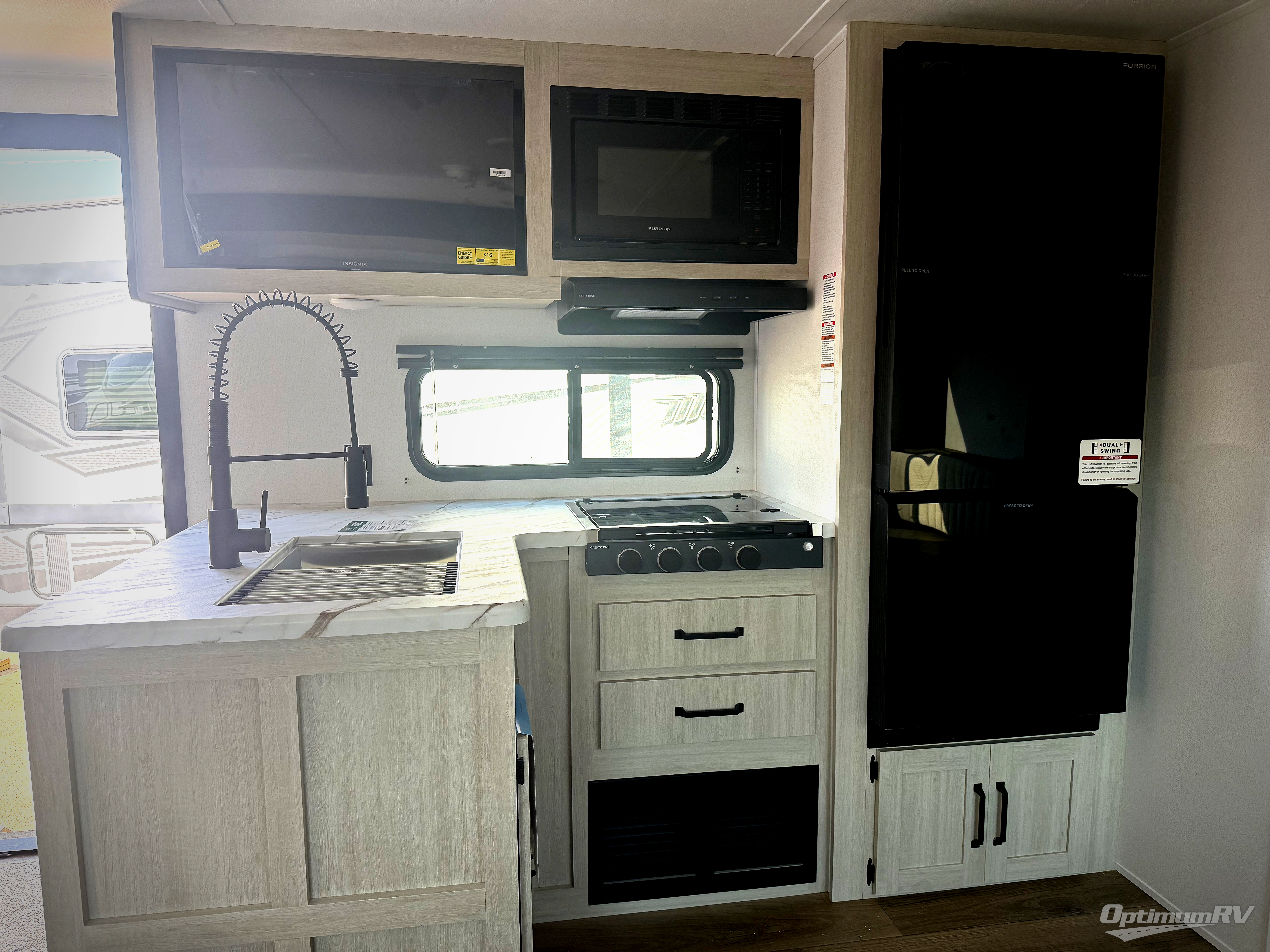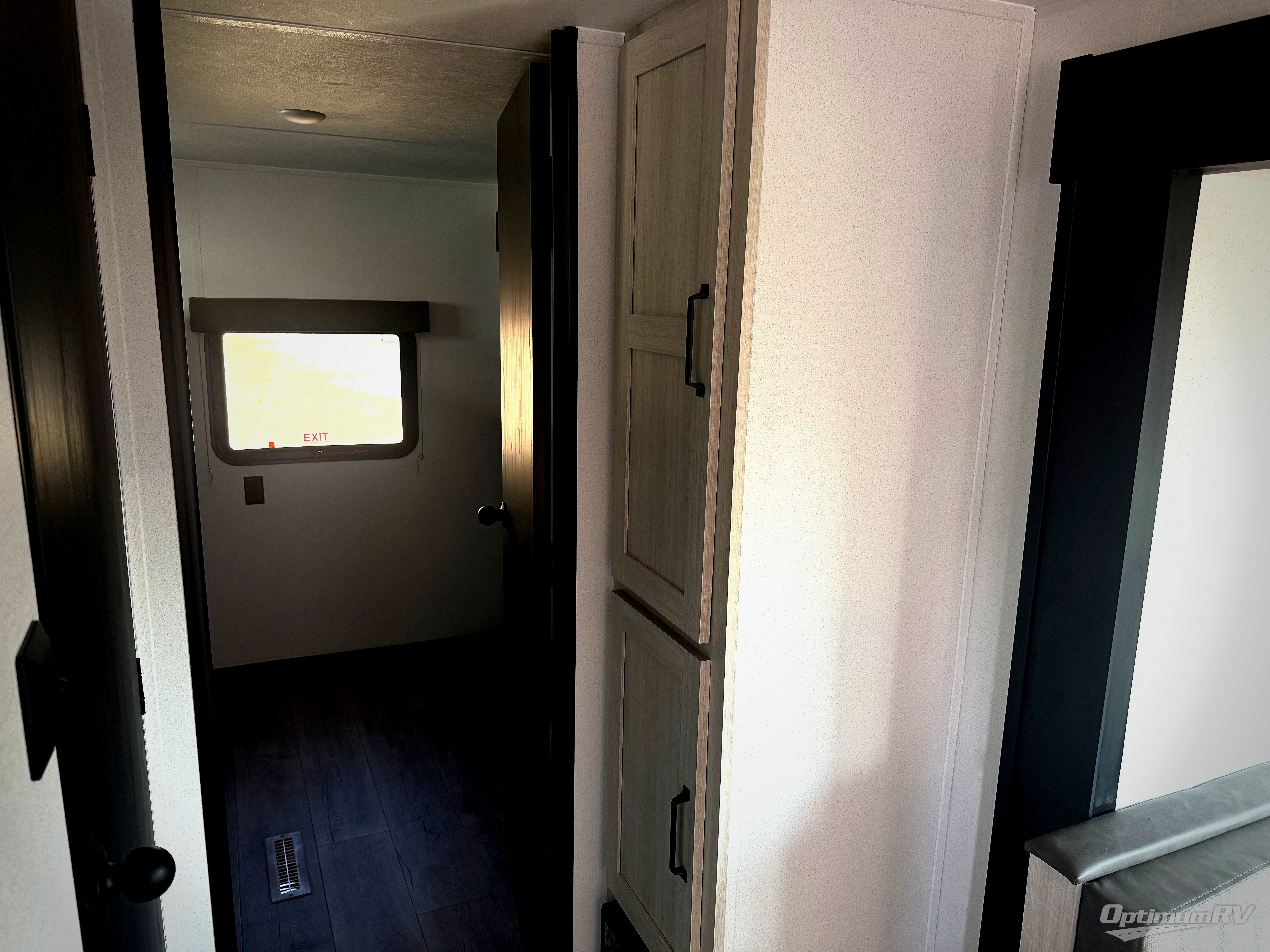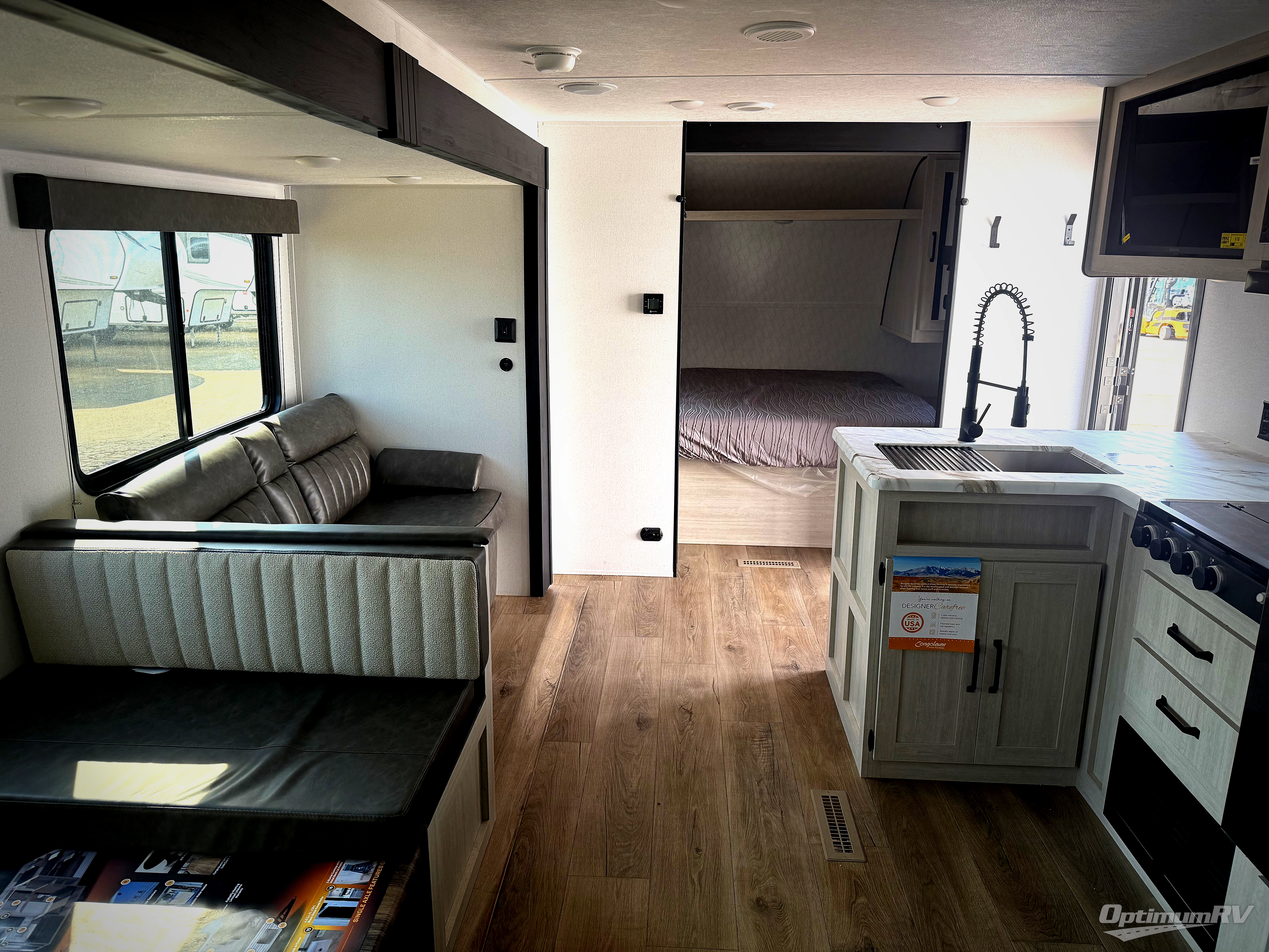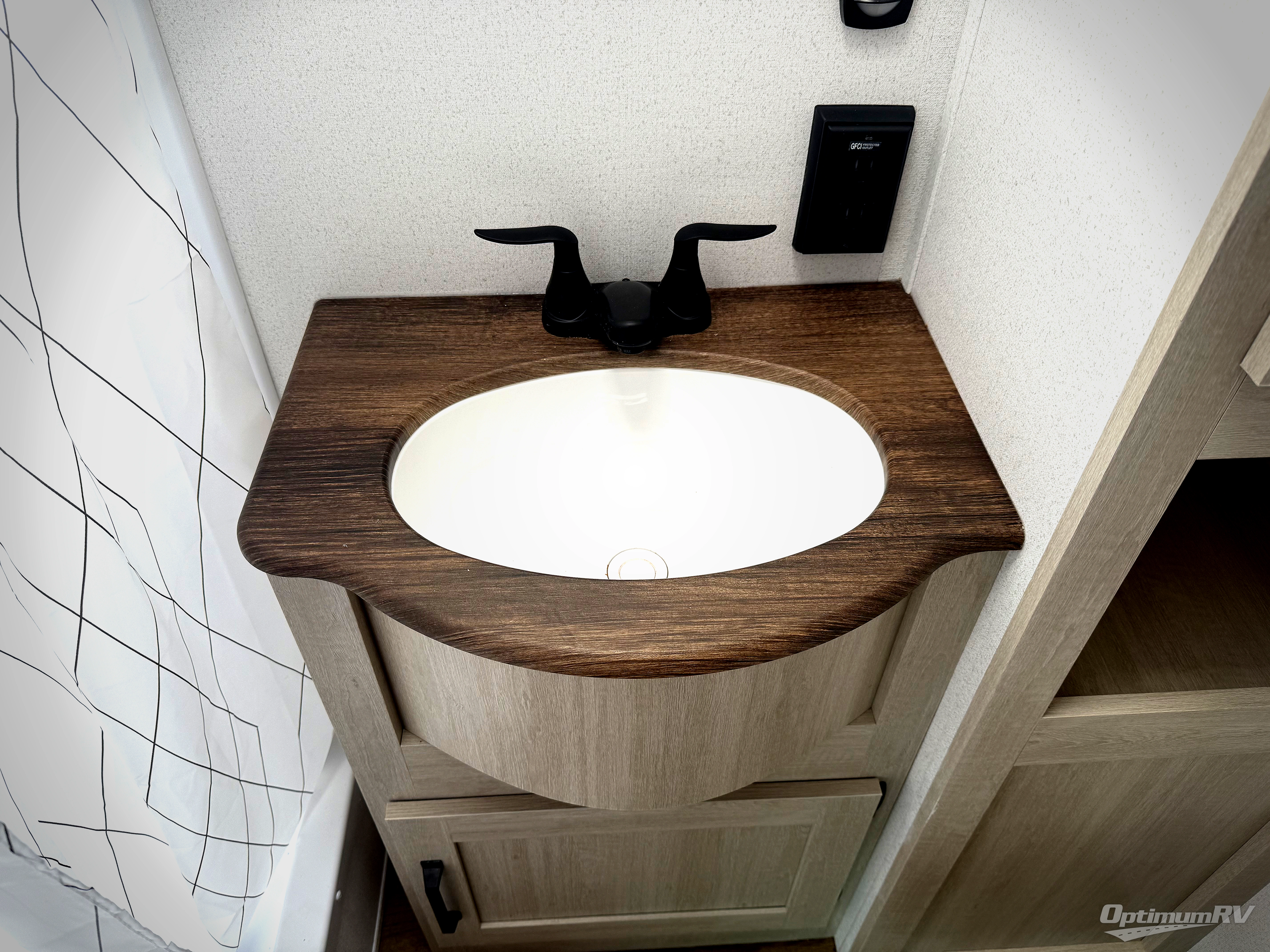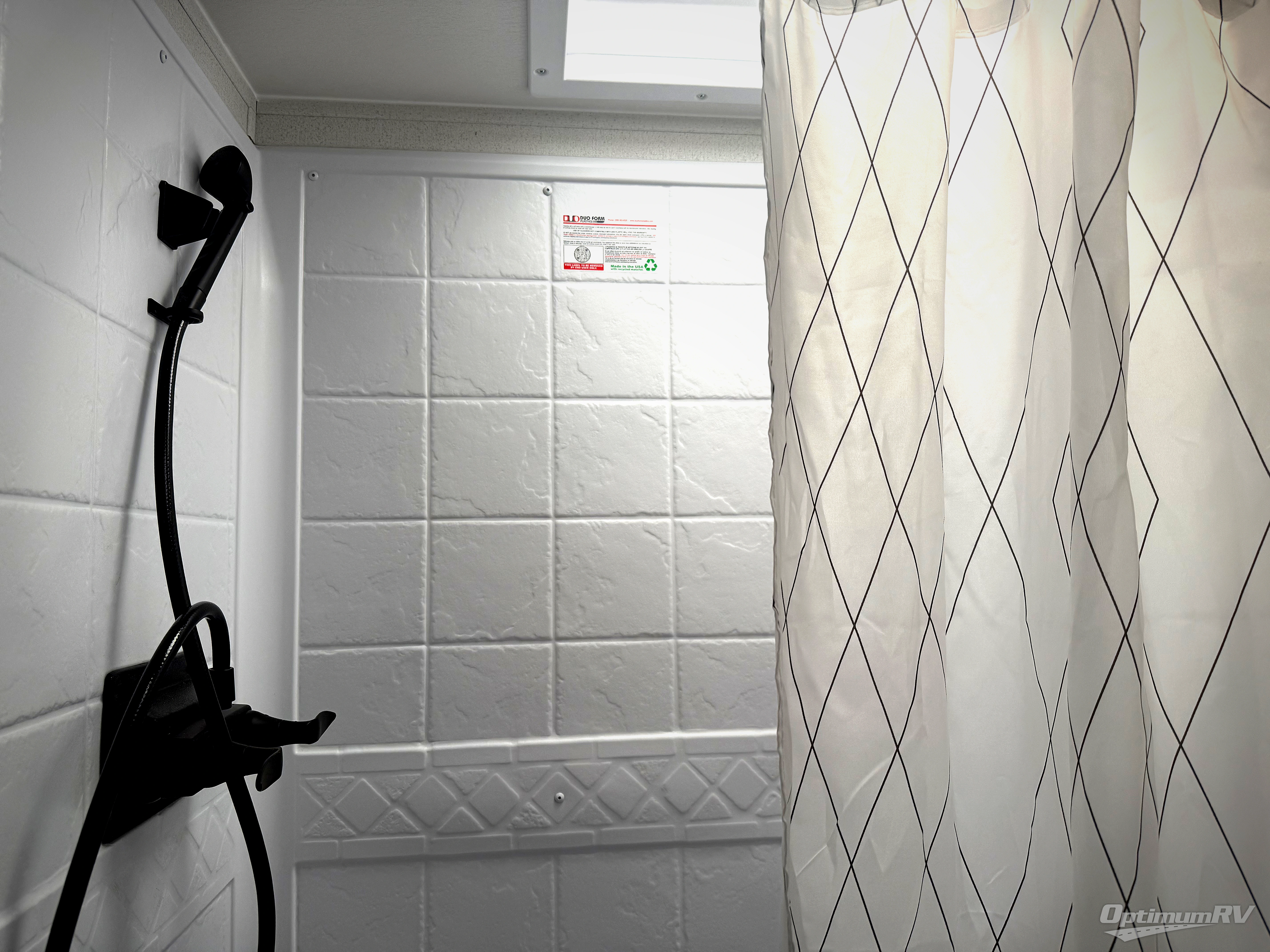 If you're looking for more space, this double axle, double slide out unit is perfect for your group of eight. Within the large slide in the living room, you'll find the booth dinette and sofa, which sit across from the optional TV if you want to enjoy movie nights. The full kitchen includes a stainless microwave and three burner cooktop to make meals, plus a pantry and 12V refrigerator for food storage. And an optional outside kitchen with a griddle can be added if you enjoy cooking outdoors! Your guests or littles are sure to enjoy the rear private bunkhouse that features a set of 38" x 76" bunks across from the third bunk and jiffy sofa within a slide out!