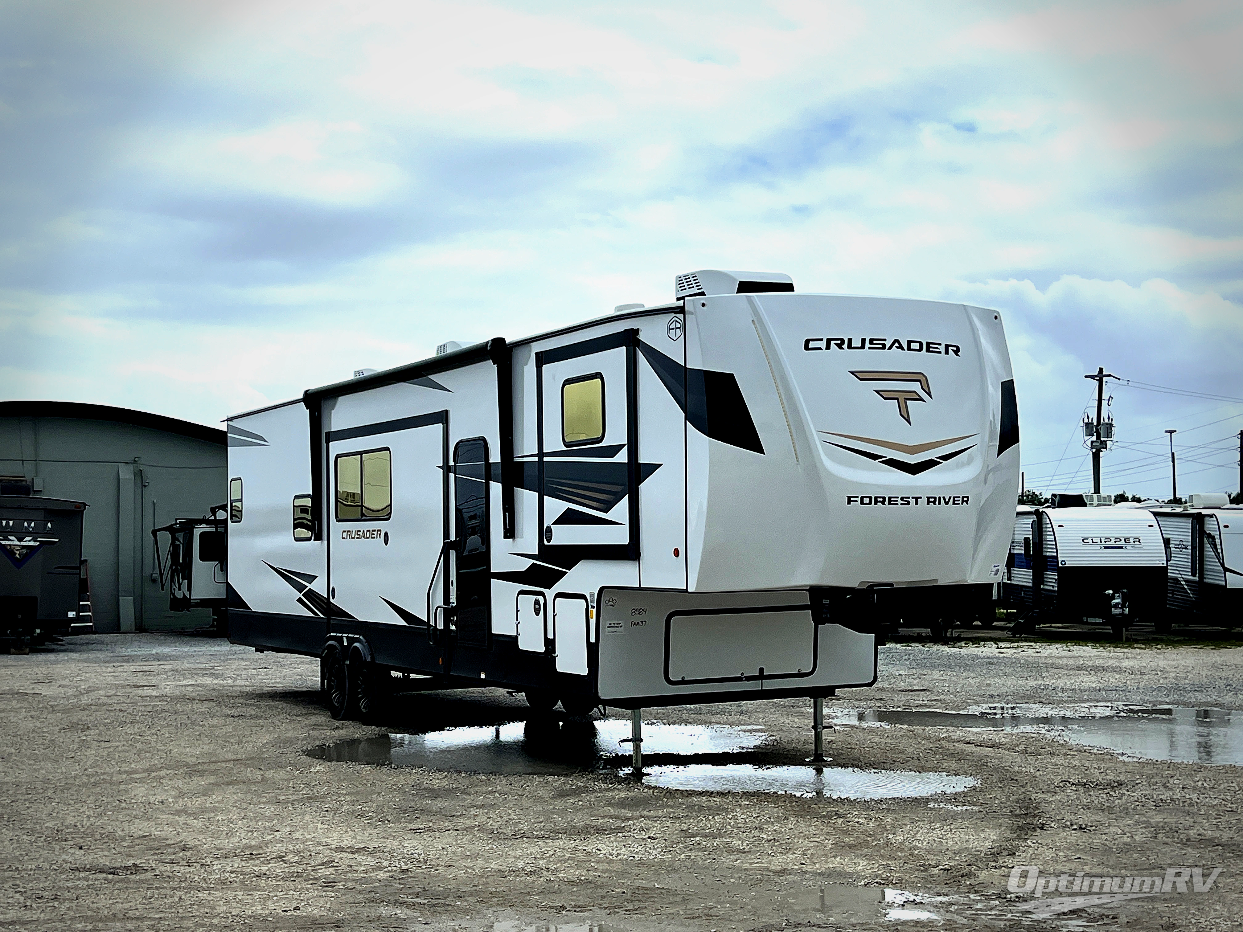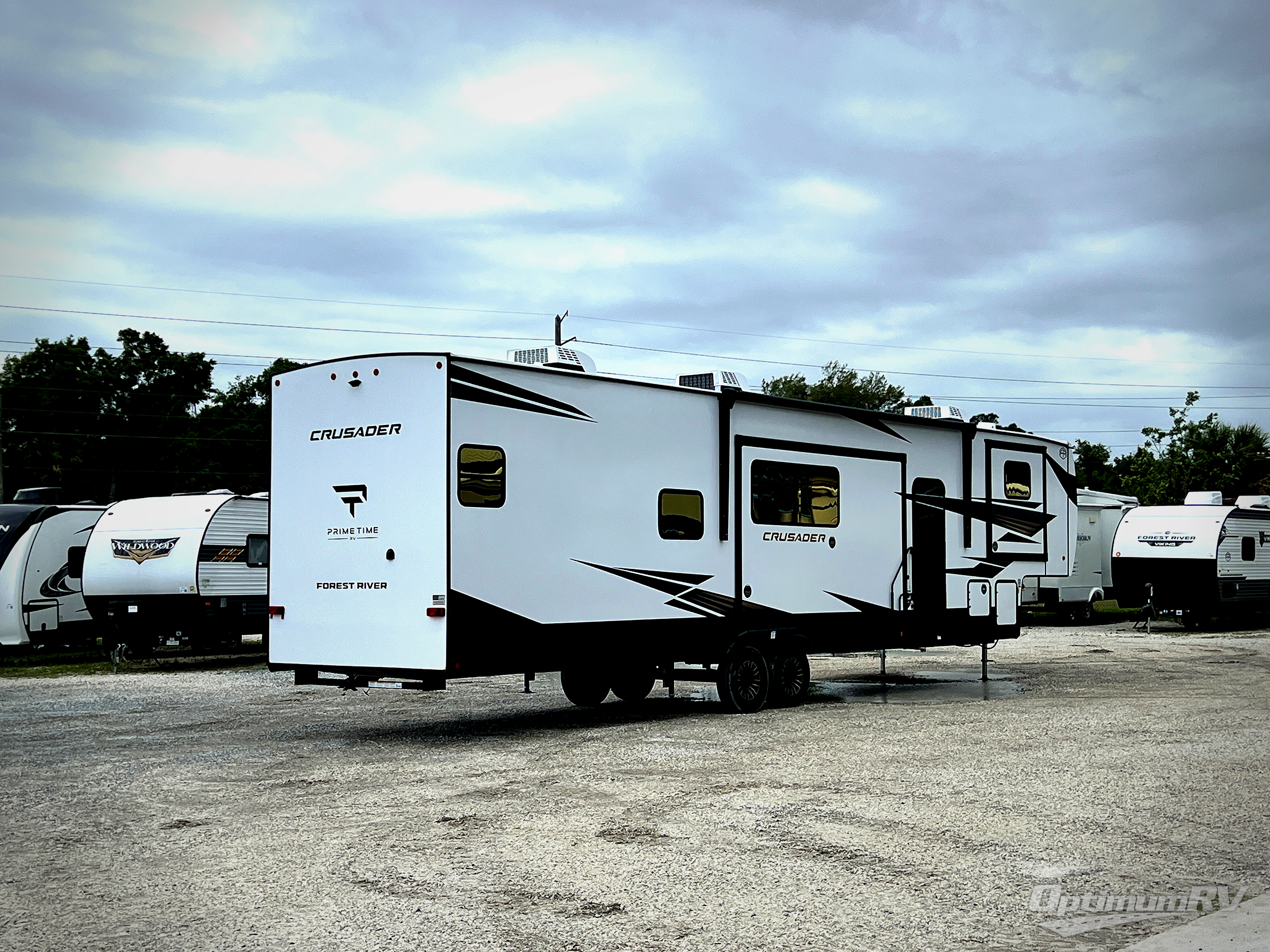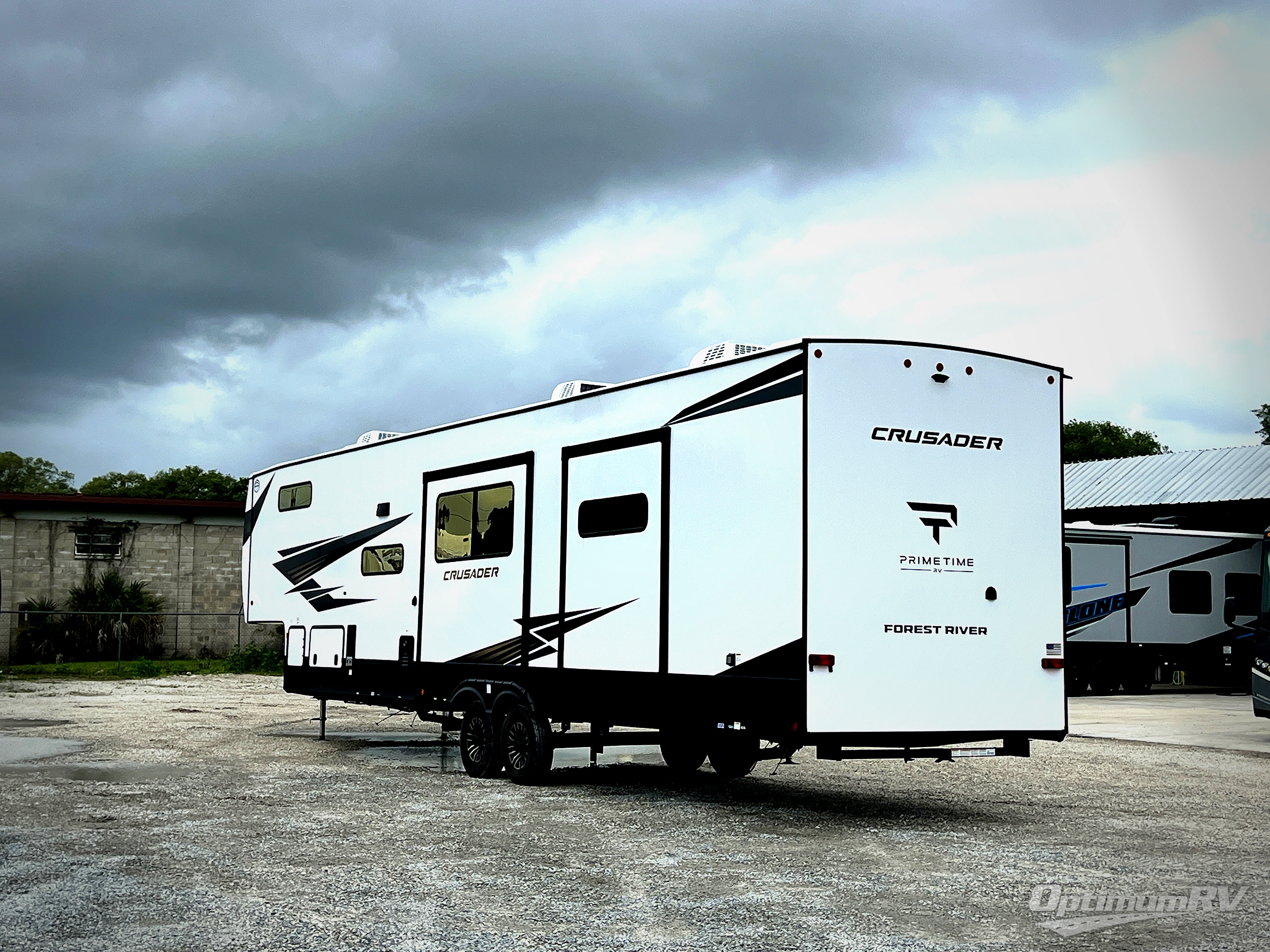 With any Crusader fifth wheel by Prime Time, you will enjoy outstanding quality and premium features! The Dexter E-Z Flex rubberized suspension equalizer will help make towing smoother than ever, and the high gloss gel coated exterior fiberglass is sure to be eye-catching. There are also thick insulated pass-through storage baggage doors outside, along with a 102" wide body, and hassle-free one-touch auto leveling. Inside, you'll find real wood cabinet doors, carpet-less slide rooms, blackout roller shades, and stain resistant, easy clean furniture. The Crusader fifth wheels are built with Eternabond construction, a one-piece PVC roof membrane, radiant foil insulation, plus rack and pinion slide systems.