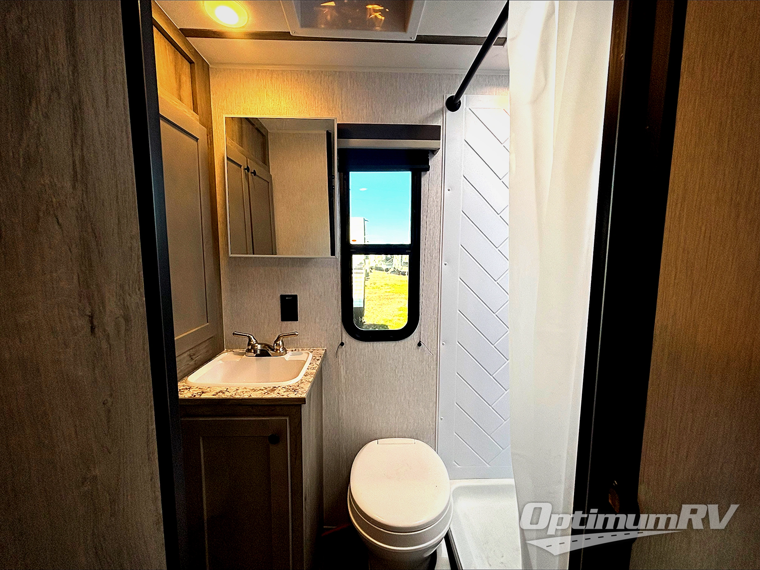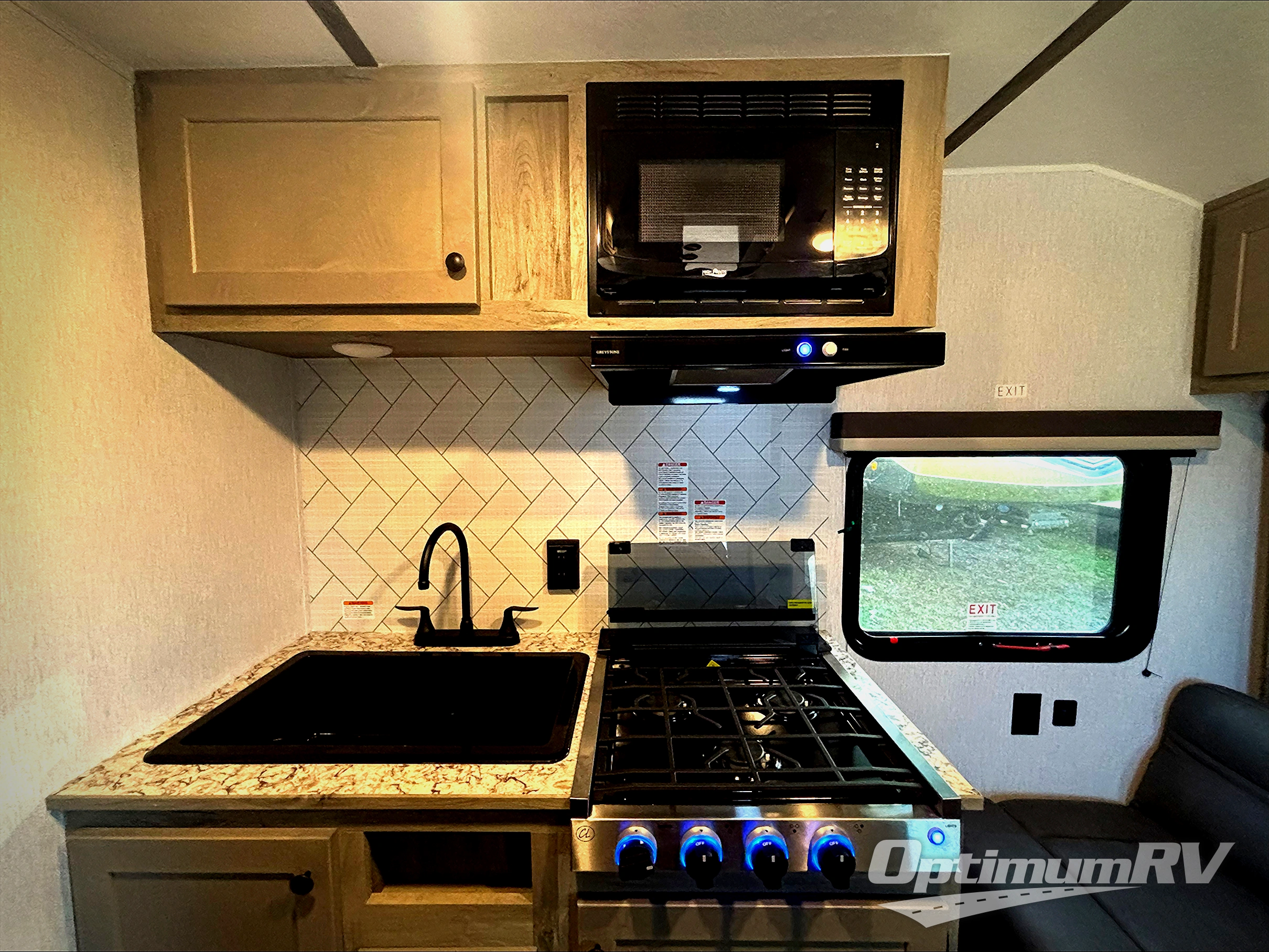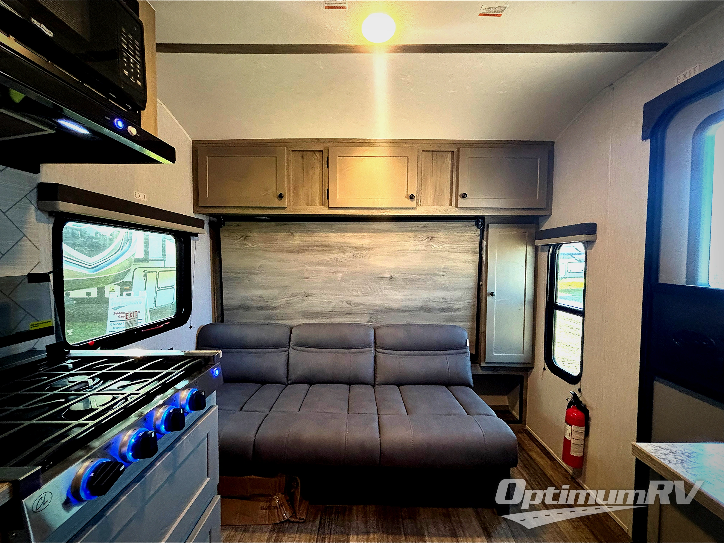 This compact travel trailer will be perfect for trips to the lake. Since there is a front Murphy bed, you won't have to sleep on an air mattress, and the convenient rear full bathroom lets you freshen up each day. Breakfast can be made on either the three burner cooktop, warmed up in the microwave oven, or even at the outside kitchen. When you're ready to wind down at night, you can grab a book and head to the sofa for a relaxing evening!