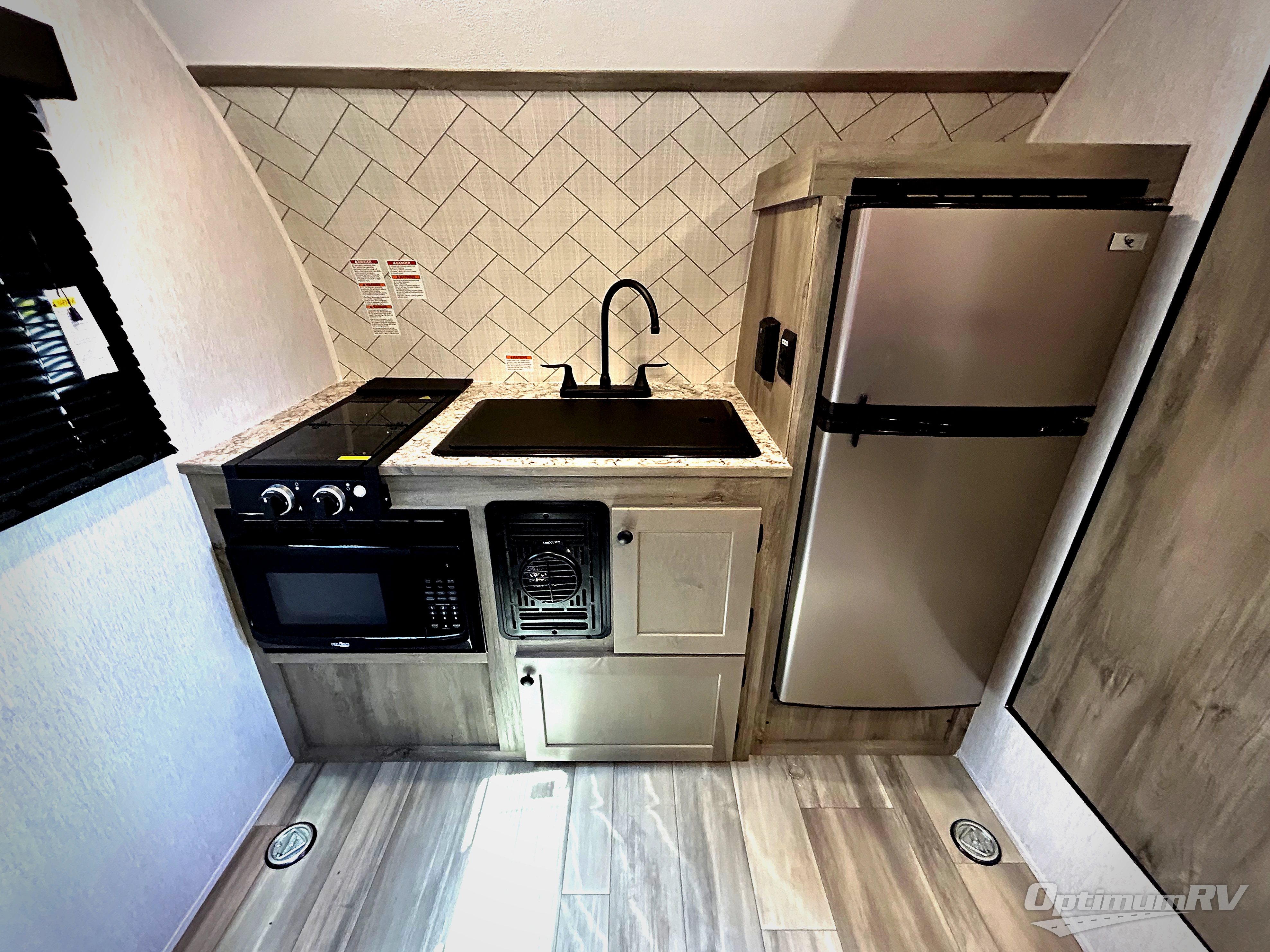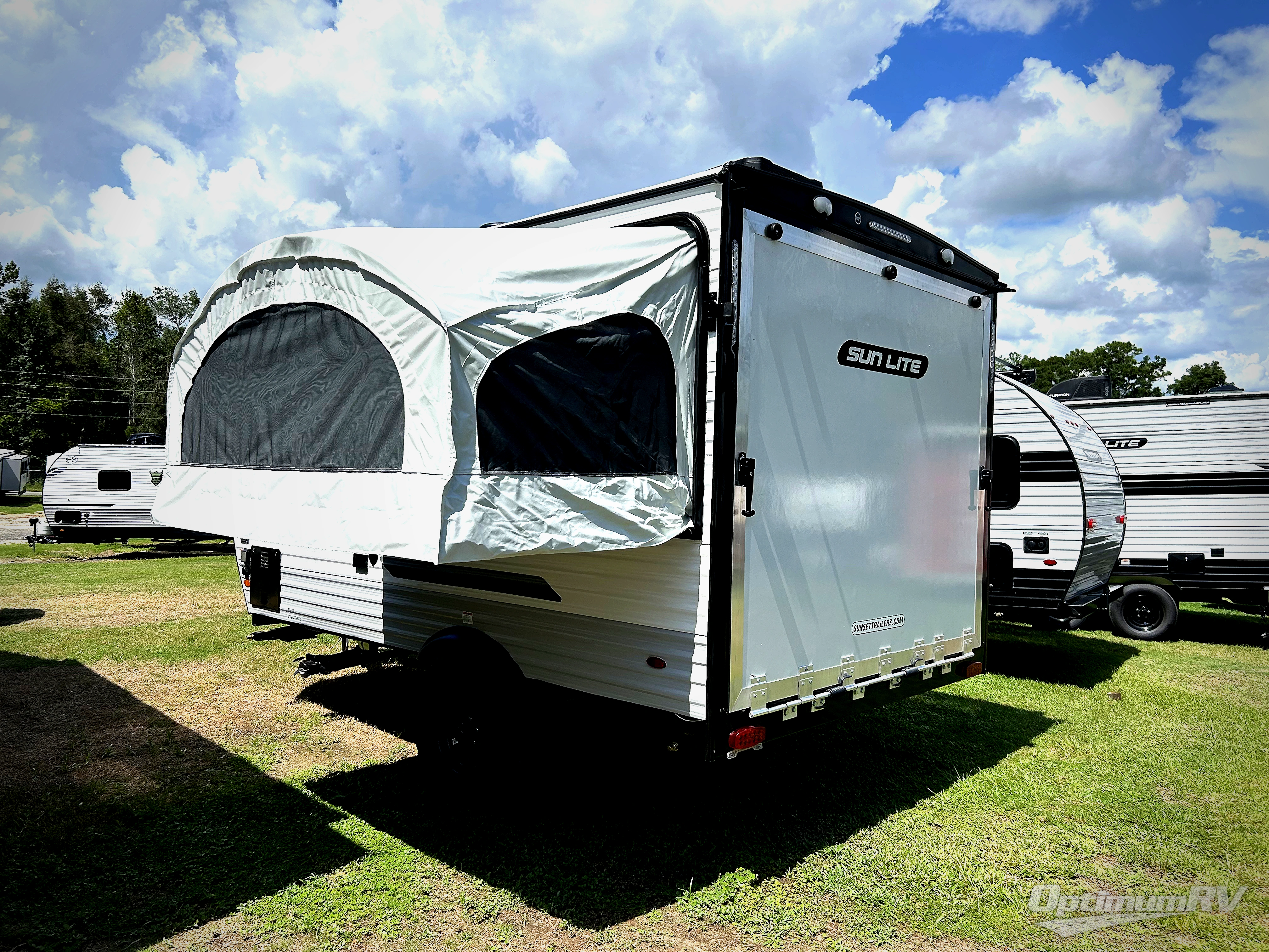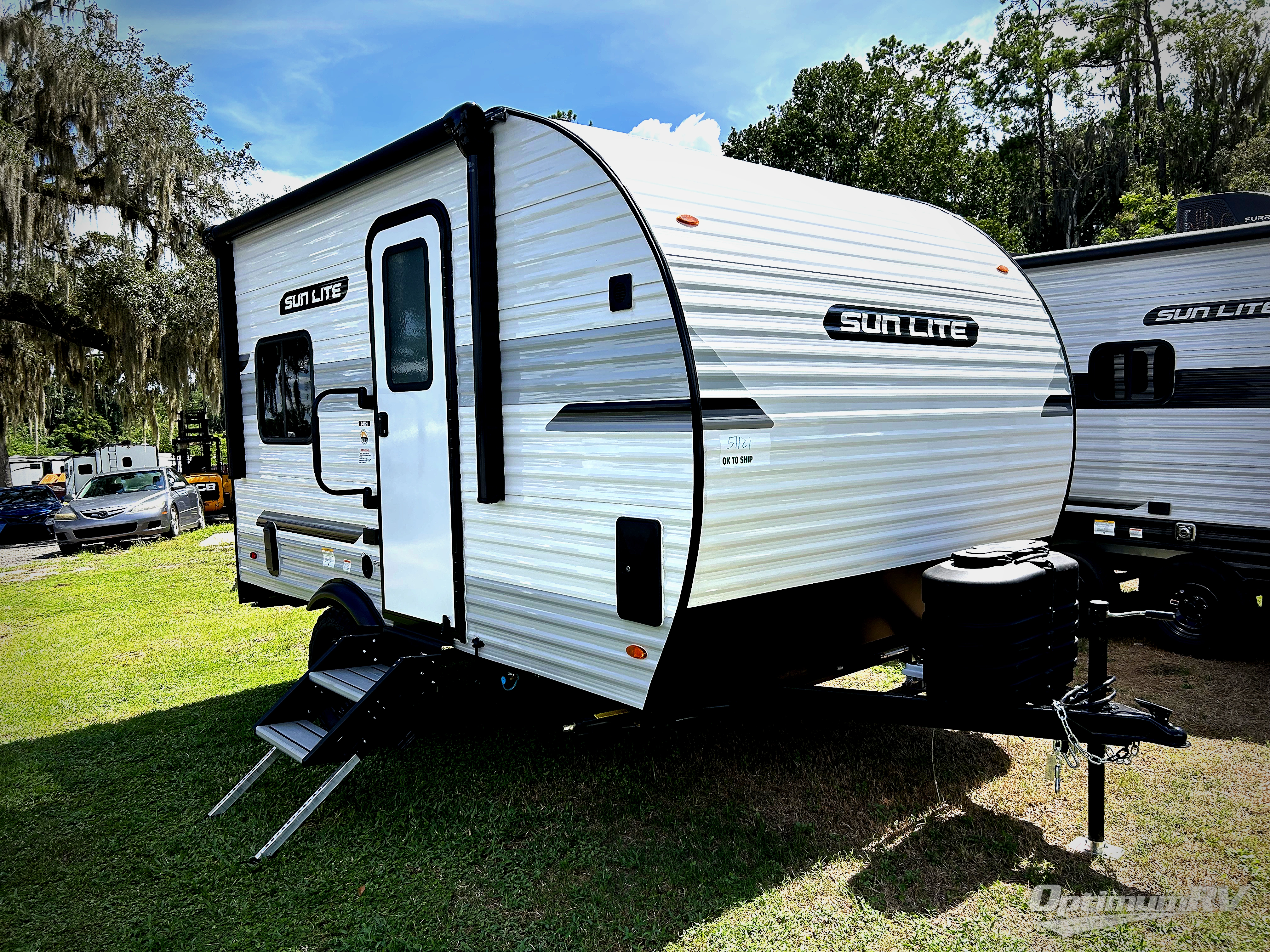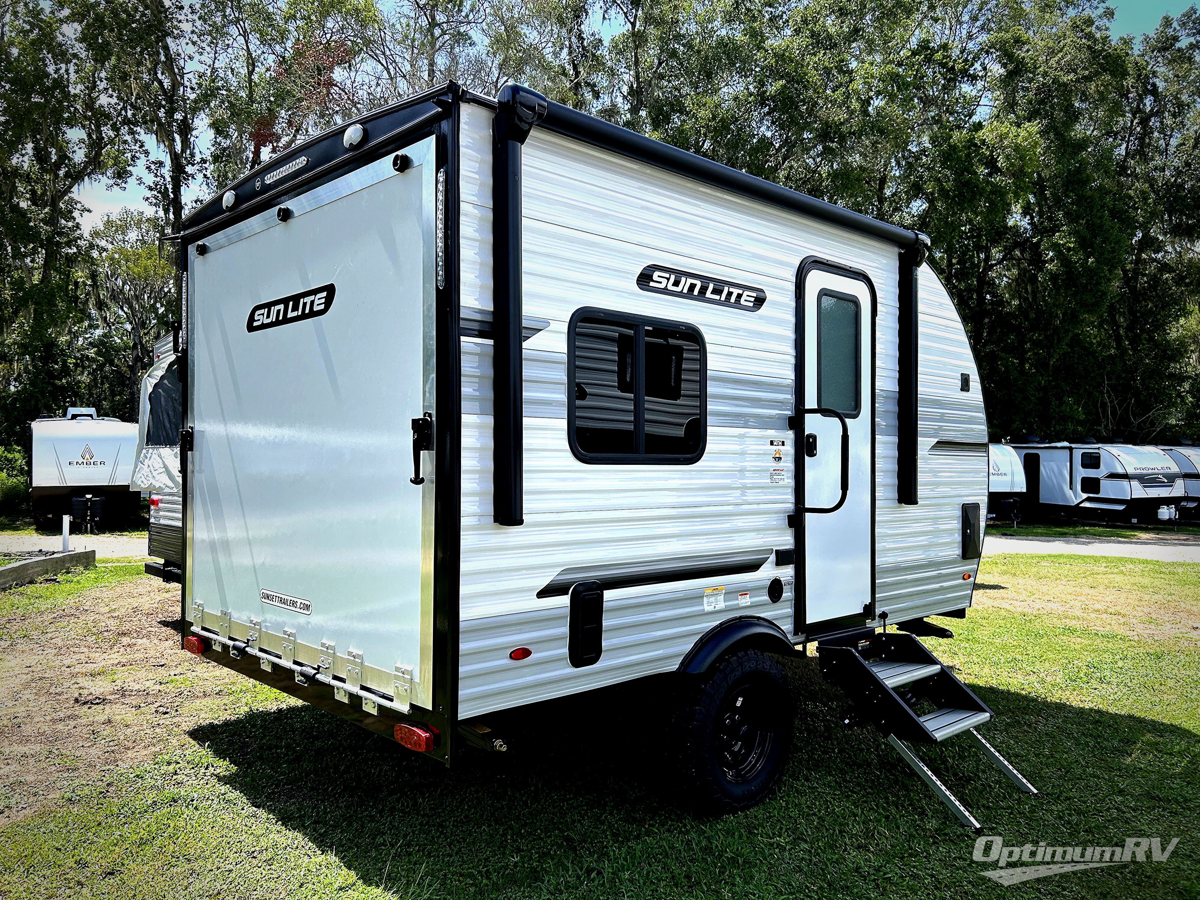 You can trust the build and enjoy your experience with any one of these Sunset Park RV Sun Lite travel trailers or toy haulers! Their aerodynamic profile is not only easy to haul, but also saves on fuel. They are built to withstand years of traveling even though they are lightweight with a diamond plate rock guard, a one piece PVC roof membrane, Dexter Spring-Leaf axles, and tinted safety glass windows. Some comfort standards you are sure to enjoy are the two-burner stove top range with hood, light and fan, plus the refrigerator and microwave, and an outside shower to help keep the dirt outdoors where it belongs.