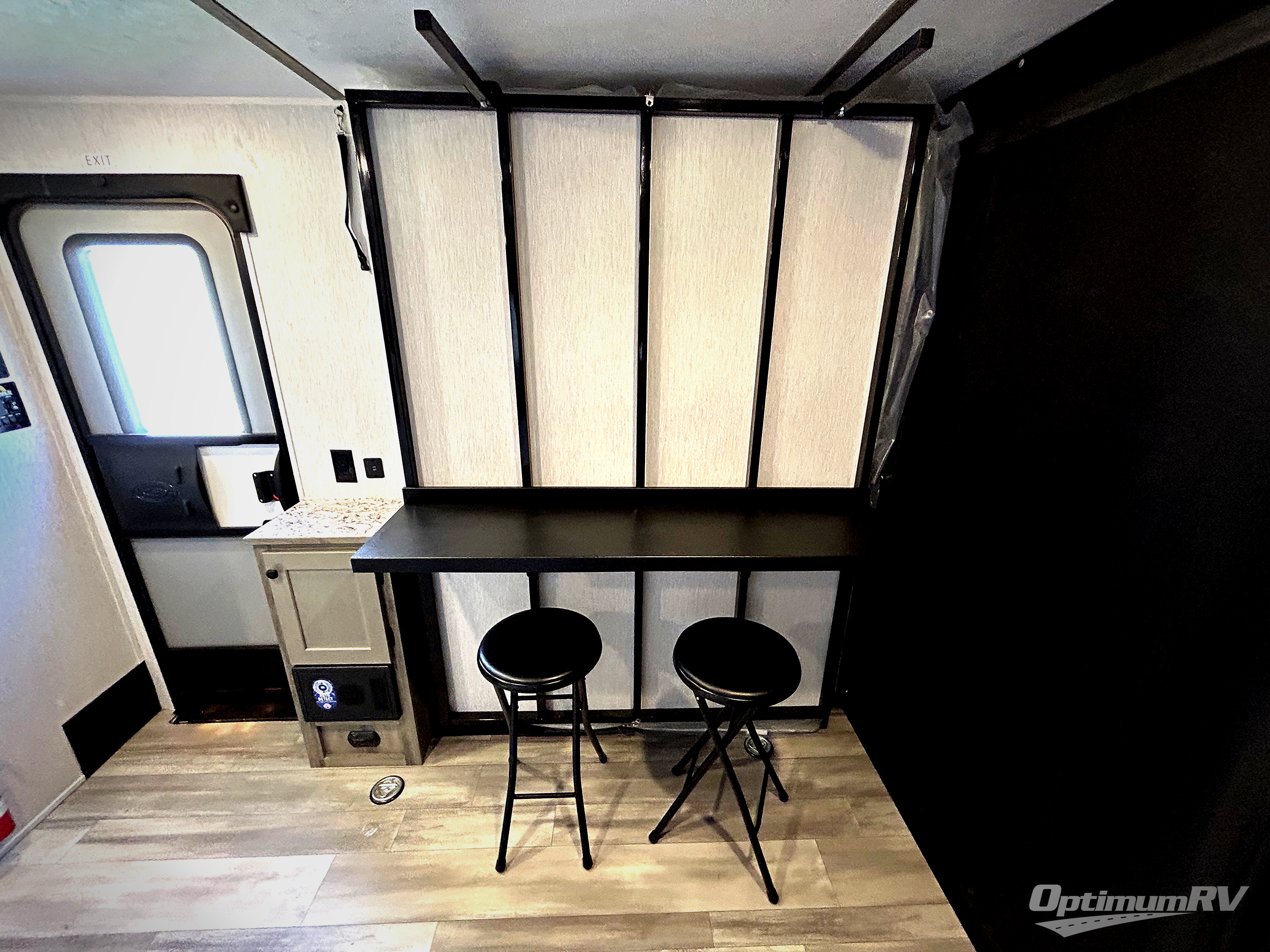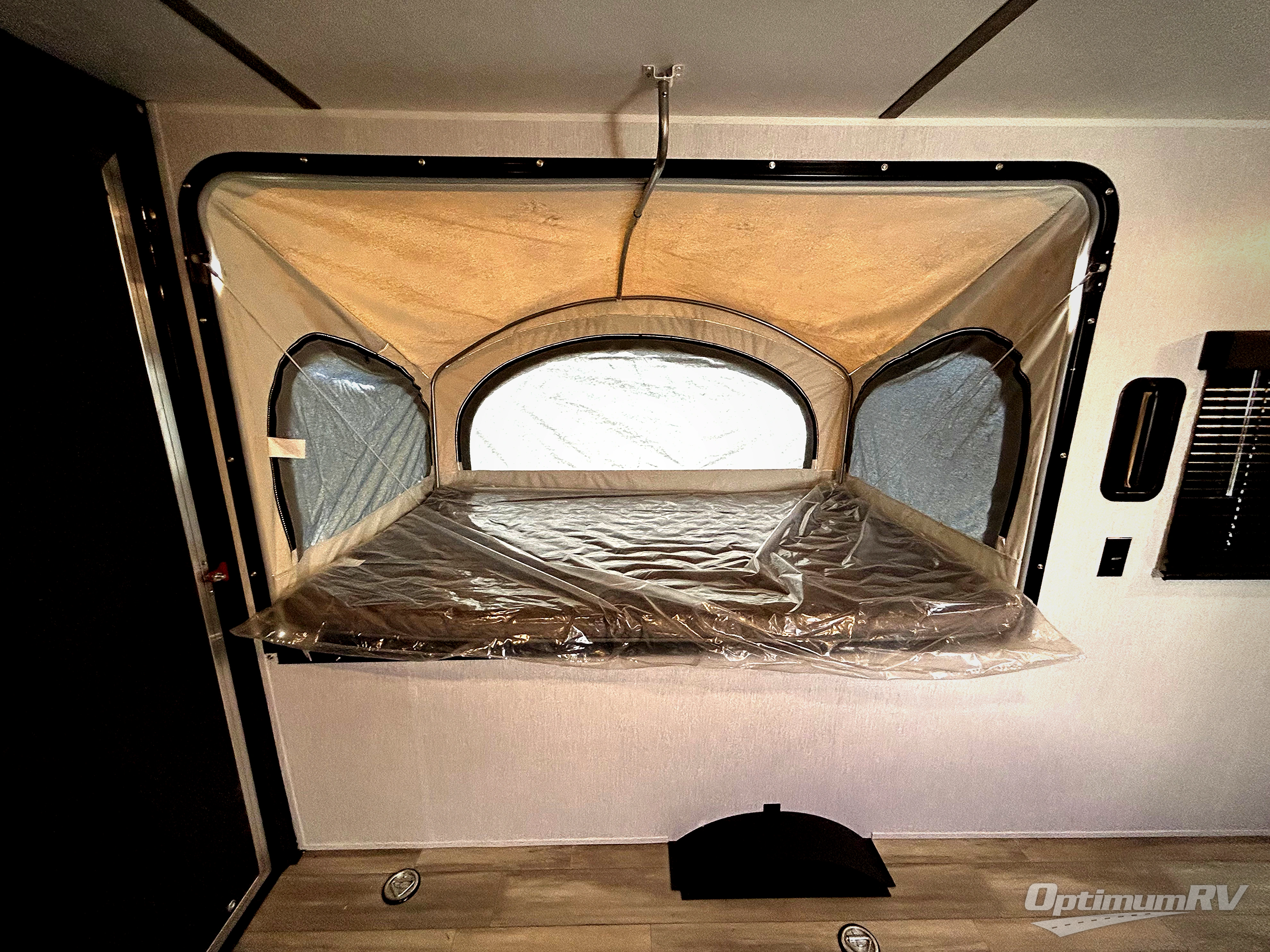 Get ready for a great camping experience where you can take along your favorite ride-on toys, kayaks, or other items that you may not normally have room to load as this toy hauler features a 6' 9" cargo width and 10' 11" cargo length. Once unloaded, set up with the rear bed that will make for a great night's rest. The front of this unit is shared with the wet bath and kitchen. Here, you can make meals on the two burner stove or in the microwave oven, and there is a refrigerator for perishables. This unit also includes the Rush Toy Hauler Package with a ramp door, dual cargo loading lights, a magnetic rear bug screen, and four D-rings to secure your toys.