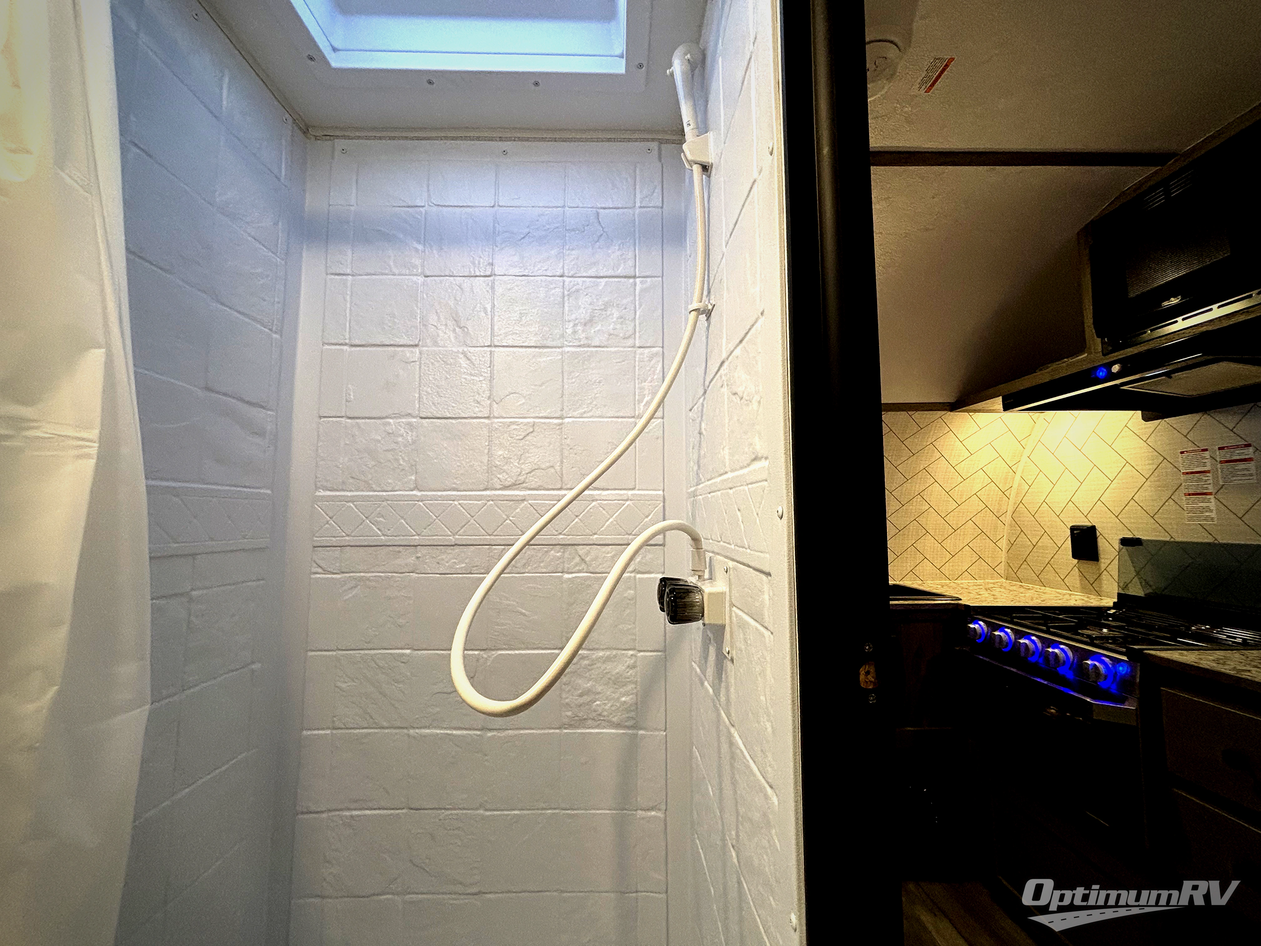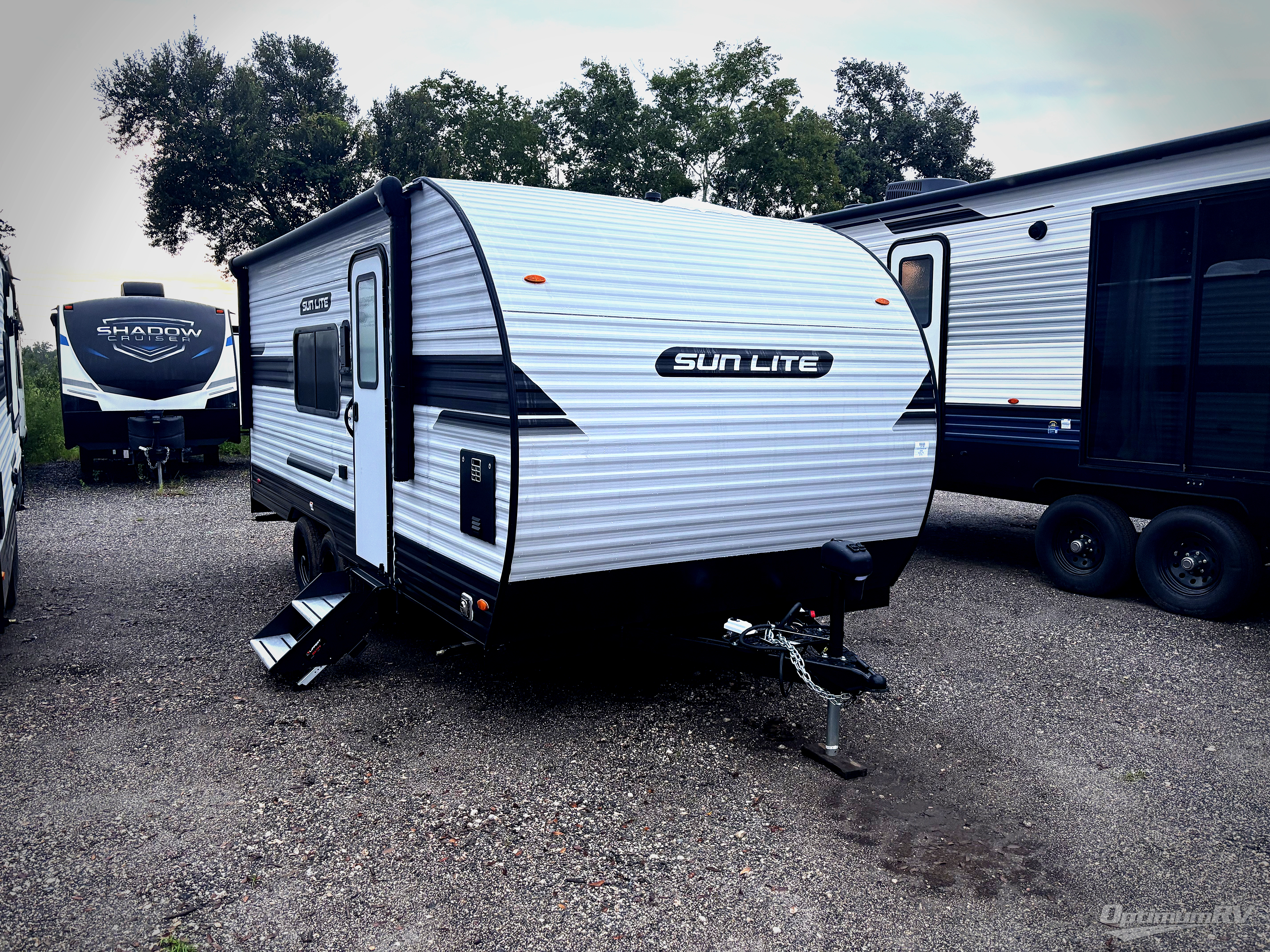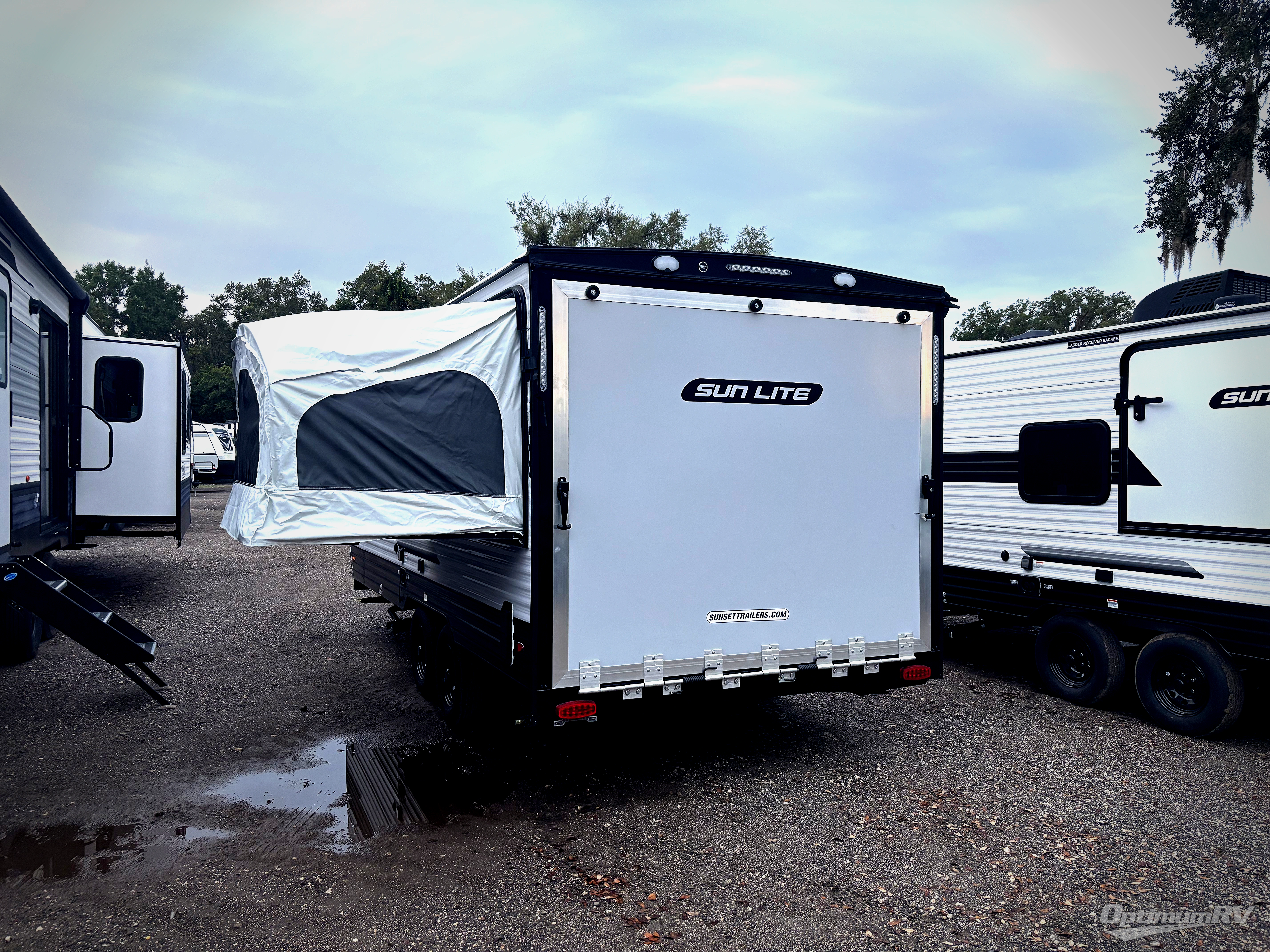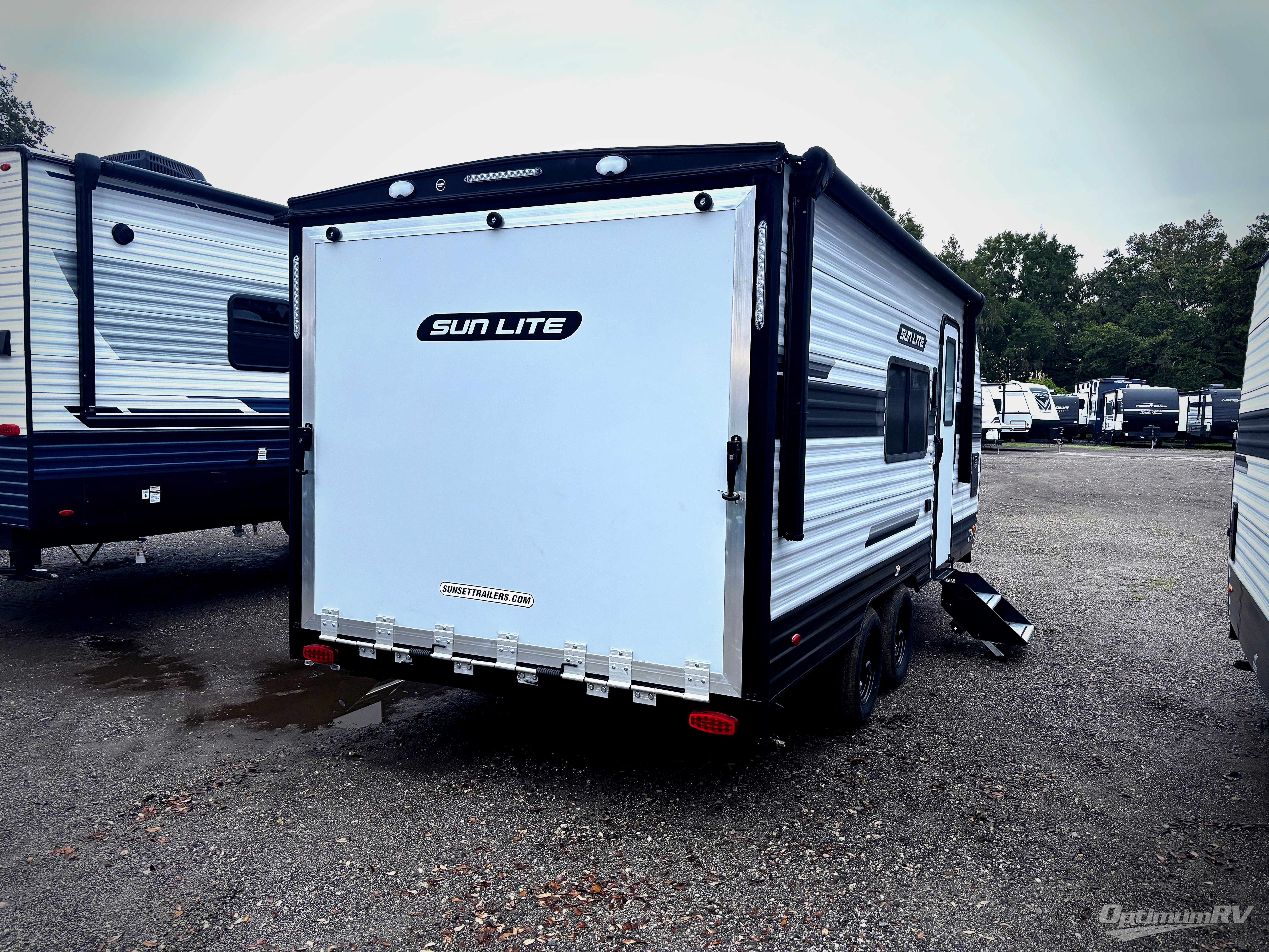 You can trust the build and enjoy your experience with any one of these Sunset Park RV Sun Lite travel trailers or toy haulers! Their aerodynamic profile is not only easy to haul, but also saves on fuel. They are built to withstand years of traveling even though they are lightweight with a diamond plate rock guard, a one piece PVC roof membrane, Dexter Spring-Leaf axles, and tinted safety glass windows. Some comfort standards you are sure to enjoy are the two-burner stove top range with hood, light and fan, plus the refrigerator and microwave, and an outside shower to help keep the dirt outdoors where it belongs.