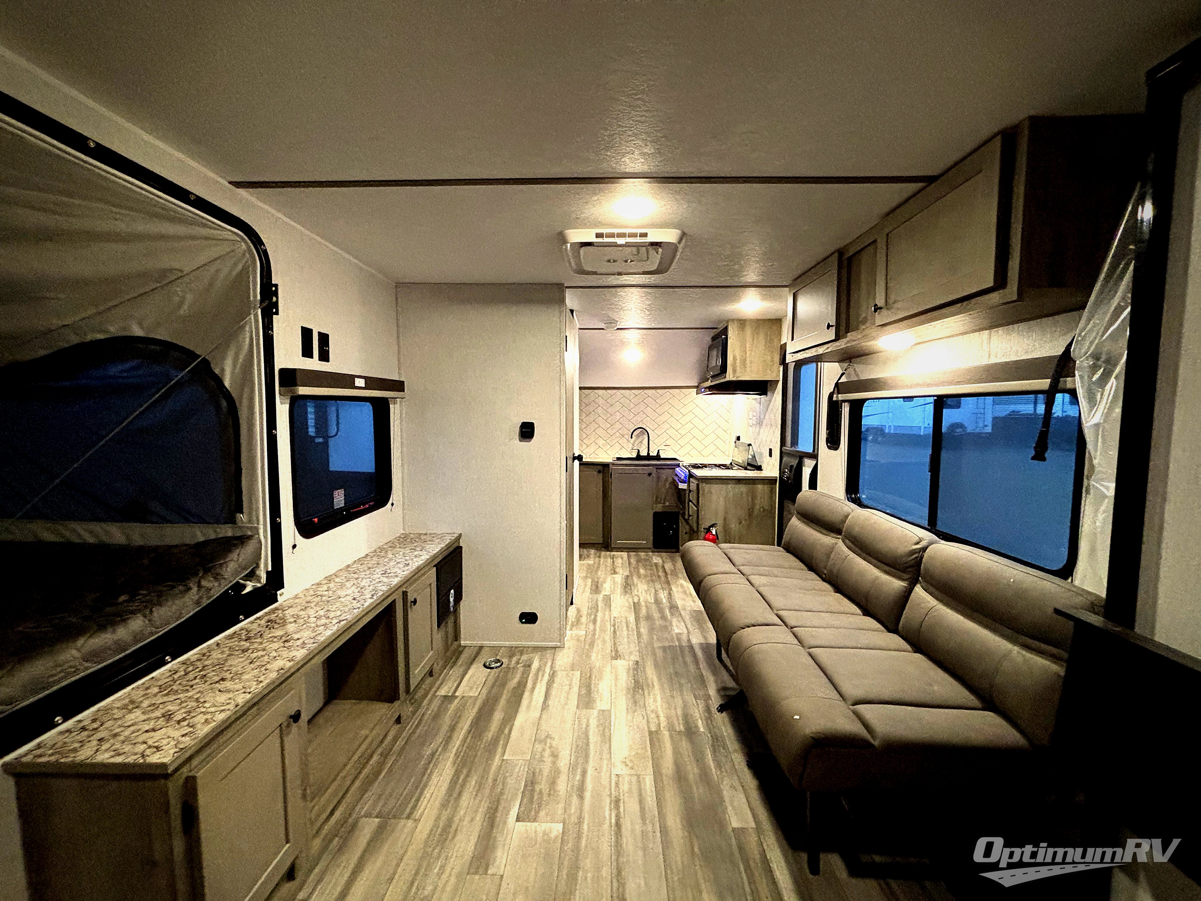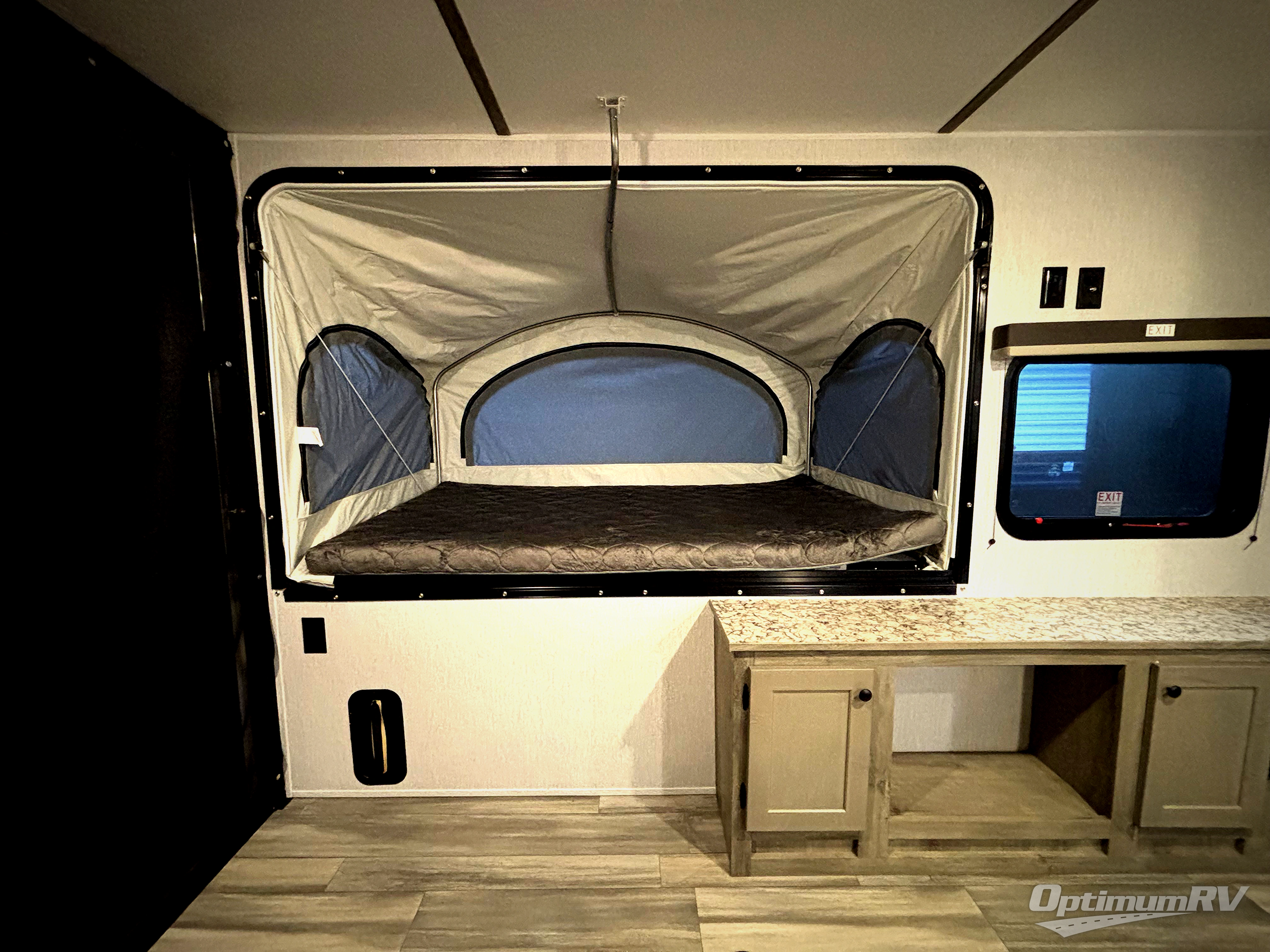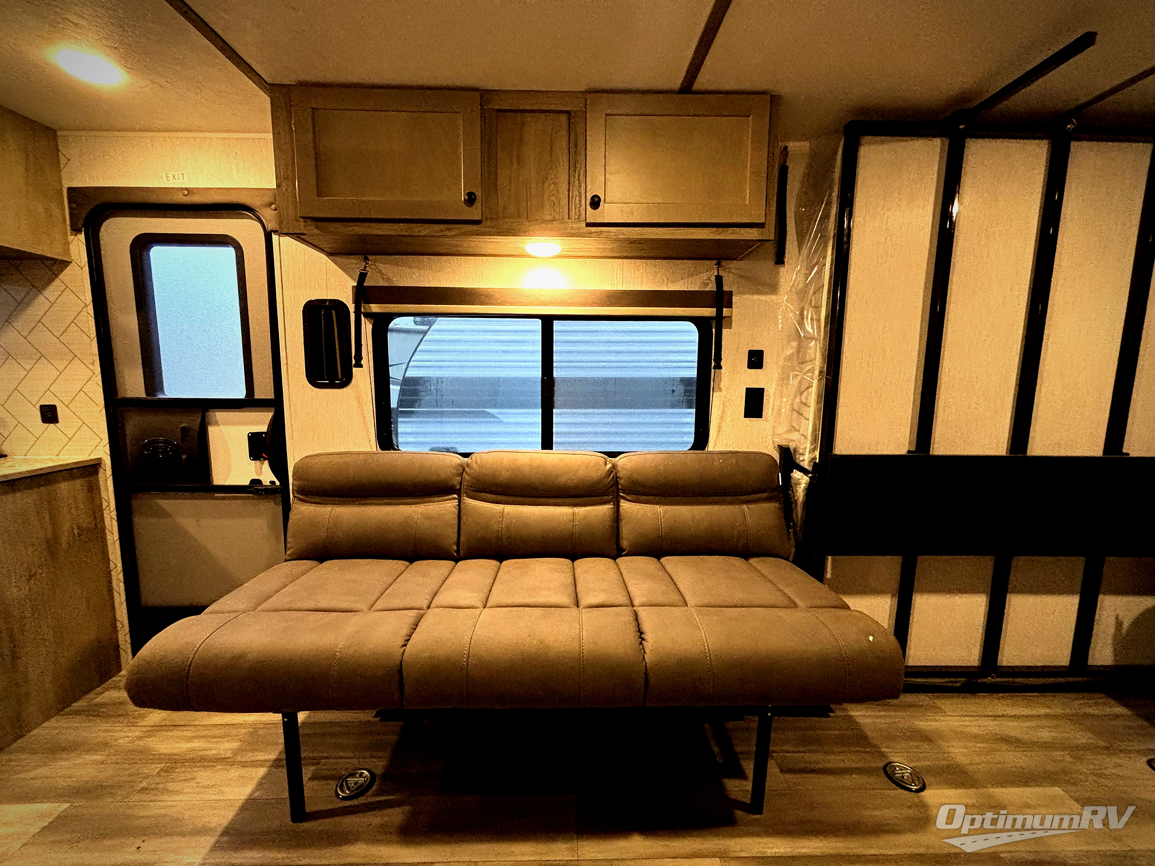 Get ready for a great camping experience where you can take along your favorite ride-on toys, kayaks, or other items that you may not normally have room to load as this toy hauler features 13' 2" of cargo space that can easily be loaded using the rear ramp door. Once unloaded, set up with the fold-down bed that will make for a great night's rest. There is also a jiffy sofa that can transform into added sleeping space at night. The kitchen amenities will make it easy to create a warm meal, and you can get cleaned up and refreshed in the bathroom with tub/shower and toilet. This unit also includes the Rush Toy Hauler Package with a ramp door, dual cargo loading lights, a magnetic rear bug screen, and four D-rings to secure your toys.