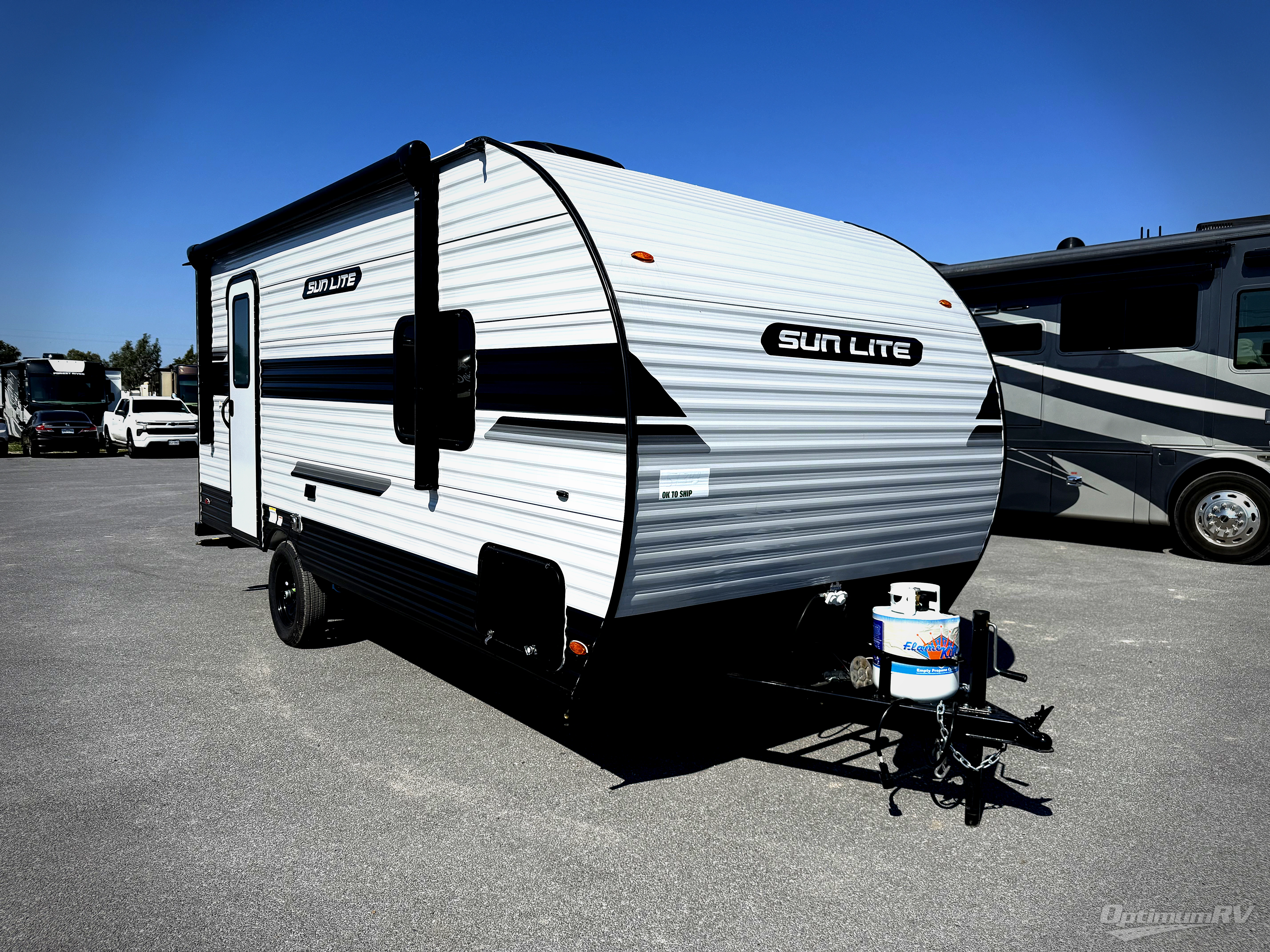 The perfect couple's trailer is waiting for you with this Sun Lite LTD! The front RV queen bed will provide a great night's rest after a day of hiking outdoors, and the full rear bath will let you clean up each day. There is a booth dinette where you can dine at each day, and even let another guest sleep over if needed. You'll also find a two burner stove to make meals, a double sink to clean up, and a 4.3 cu. ft. 12V refrigerator for leftovers! What's not to love about this travel trailer?!