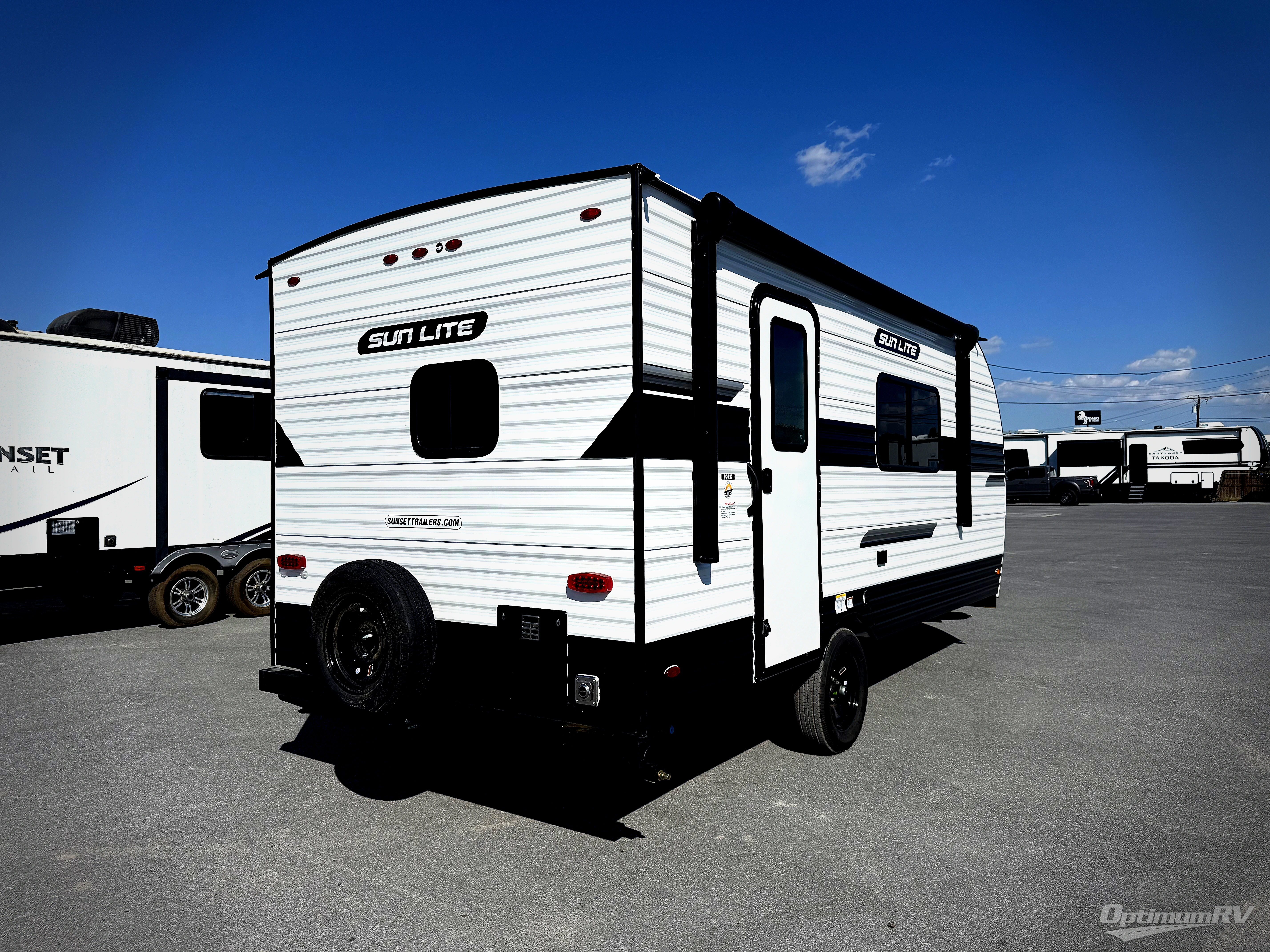 Each Sun Lite LTD travel trailer by Sunset Park RV is made with flexibility in mind. These lightweight models weigh under 3,000 lbs. for easy towing, and they offer best-in class interior storage for all your belongings. They are built with a one-piece PVC roof membrane and a durable rock guard that will help protect against rock and debris on the way to the campground. There is also an electric awning outside, along with a 100-watt solar kit, an outside shower, and more convenient features. You'll find a power roof vent in the bath, stylish window treatments, ball bearing drawer guides, and LED lights to name a few interior comforts.