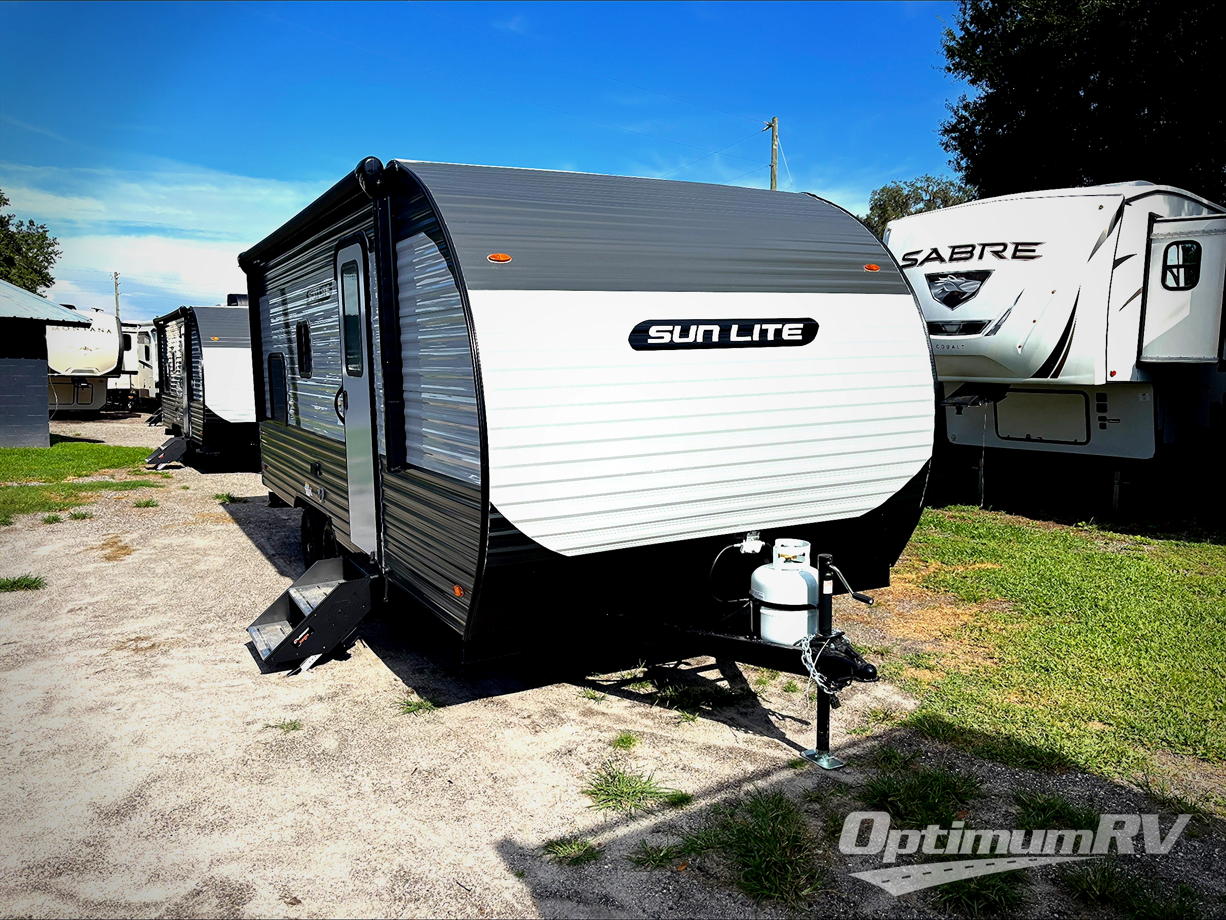 Each Sun Lite LTD travel trailer by Sunset Park RV is made with flexibility in mind. These lightweight models weigh under 3,000 lbs. for easy towing, and they offer best-in class interior storage for all your belongings. They are built with a one-piece PVC roof membrane and a durable rock guard that will help protect against rock and debris on the way to the campground. There is also an electric awning outside, along with a 100-watt solar kit, an outside shower, and more convenient features. You'll find a power roof vent in the bath, stylish window treatments, ball bearing drawer guides, and LED lights to name a few interior comforts.