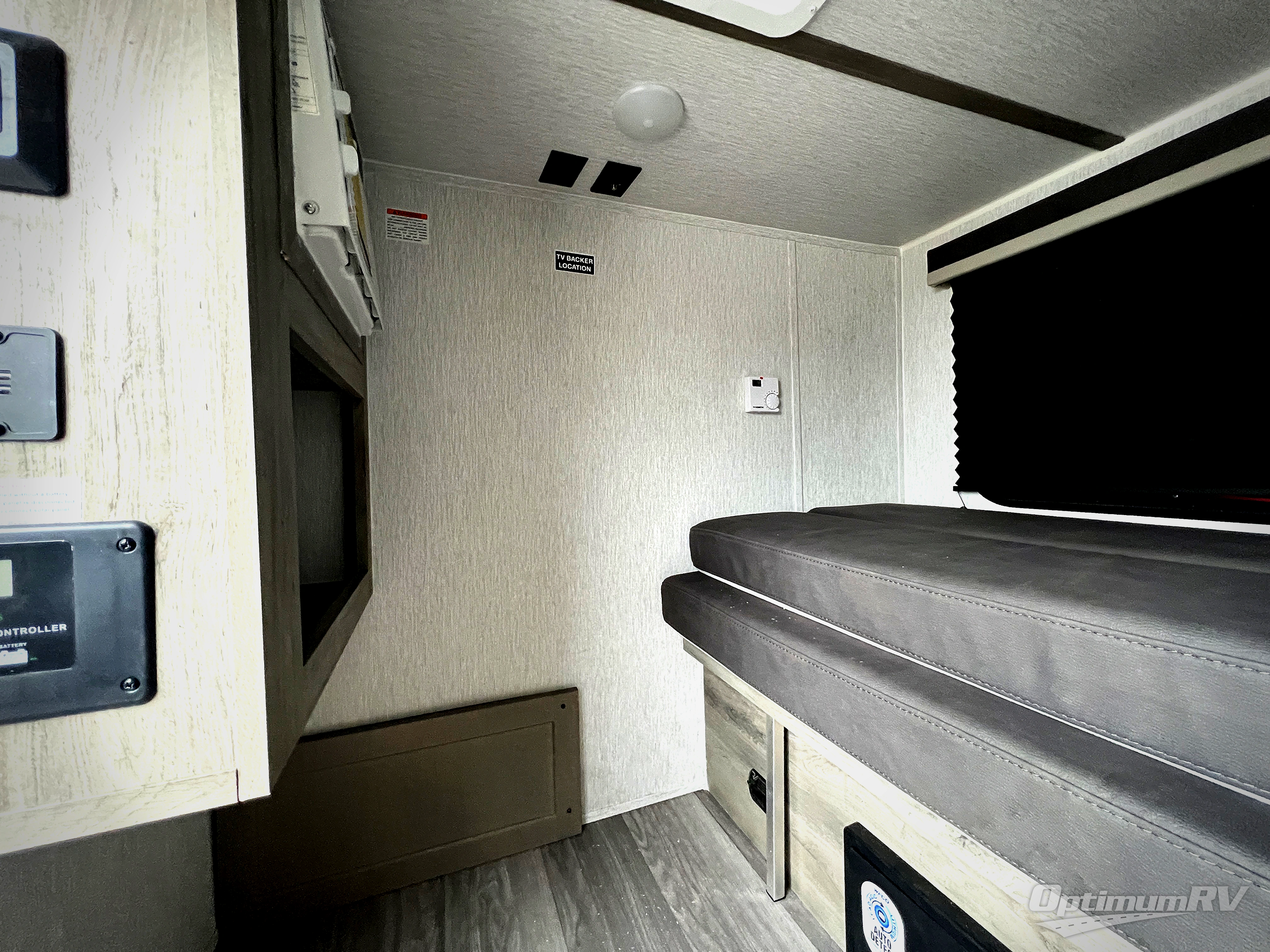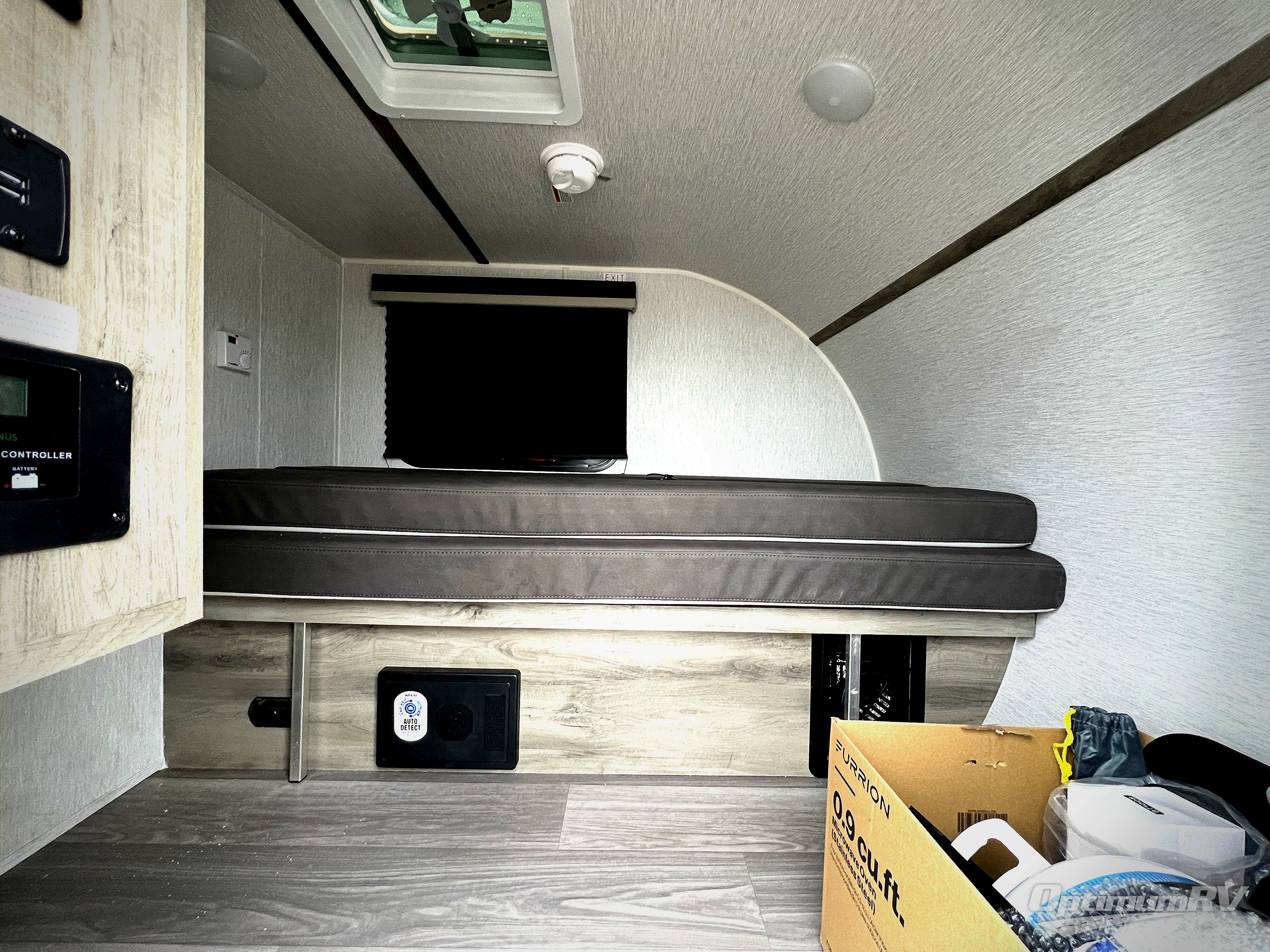 This Sunray travel trailer with its 12' length and 1,320-LB dry weight, is simple to navigate. You have most of the basic essentials without needing to tow all of the extra weight. There is an outdoor kitchen that comes with a two-burner stove top, a refrigerator, and a microwave so that you can cook dinner without having to start a fire. You will have an outside shower that you can use for various purposes, like rinsing off your equipment, filling a bucket with water, or hosing down your muddy puppy, and there are USB ports and a Winegard HDTV antenna to keep you modern.