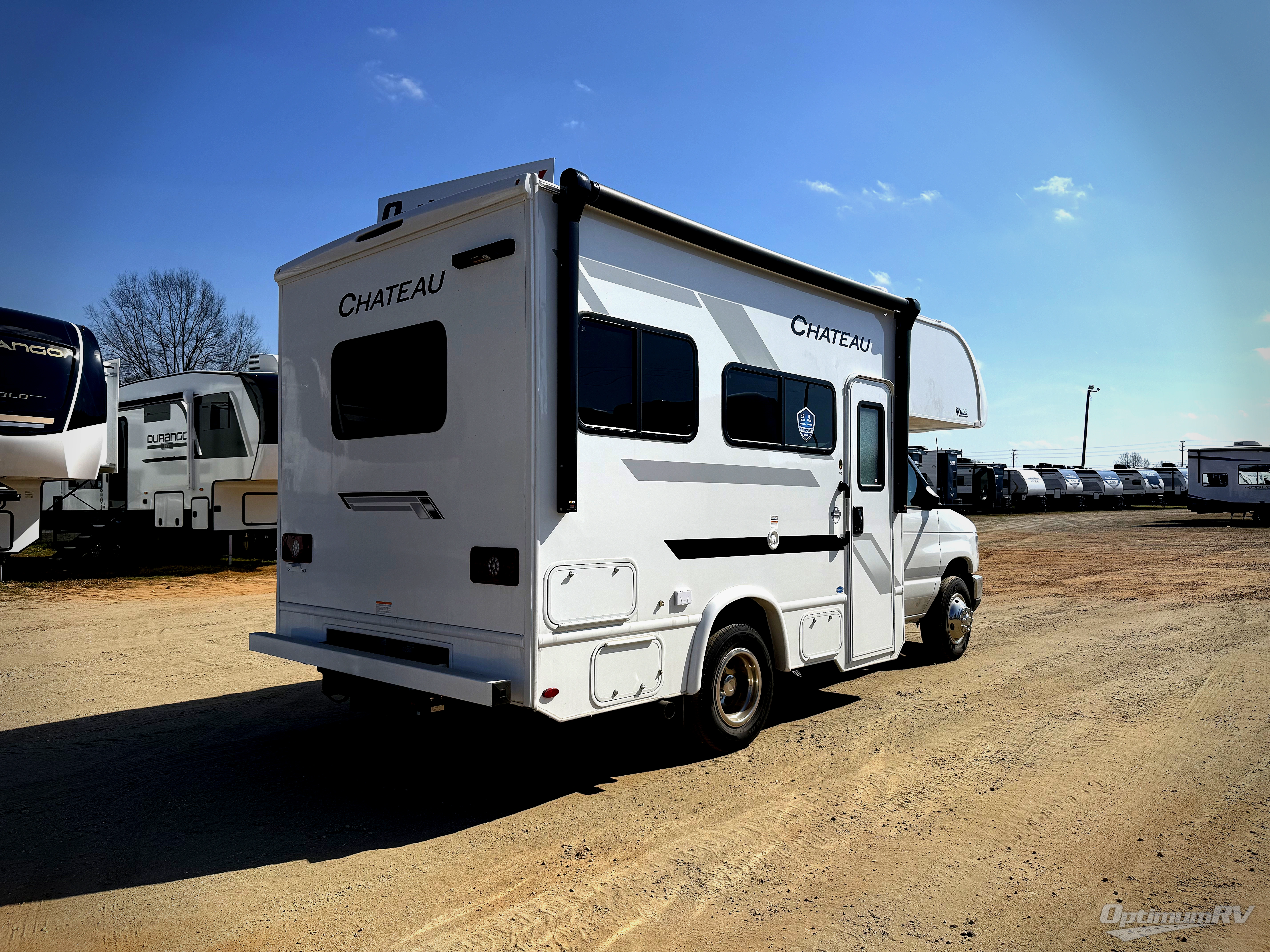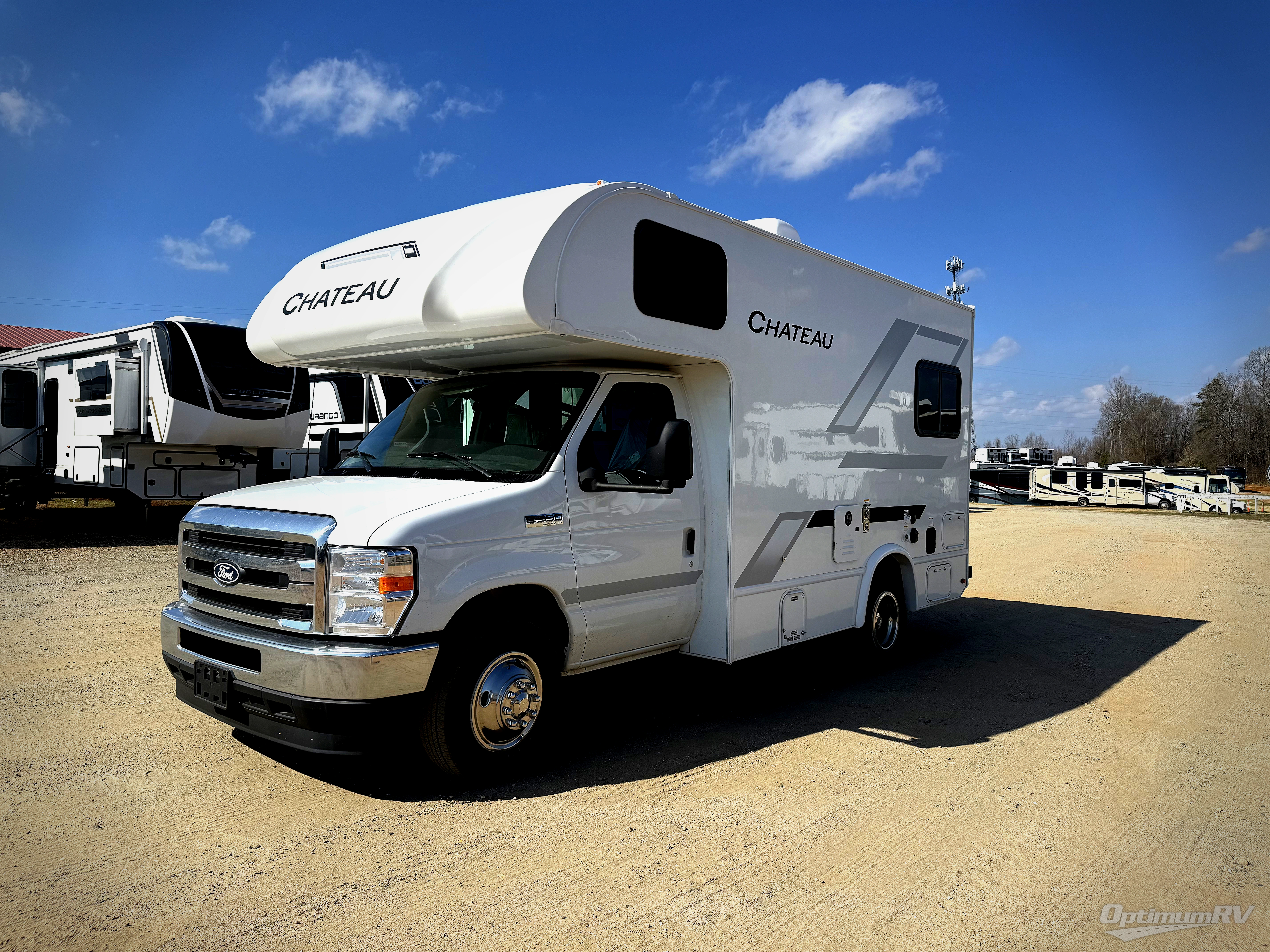 With any Chateau ESpec Class C gas motorhome by Thor Motor Coach, you will find convenient amenities, a modern interior, and a reliable Ford E-Series chassis, with an optional Chevy chassis on select models to power your adventures. There is welded tubular aluminum roof and sidewall cage construction, a one-piece fiberglass front cap, and a premium one-piece domed roof membrane for added strength. Residential vinyl flooring will be easy to keep clean, and you'll love the sleek look of the Hampton Collection two-toned cabinets. These motorhomes also include a 50 State 4.0 kW dual gas/LP generator and a 30-amp shoreline power cord to keep you going, along with a tankless water heater and 13,500 roof front A/C to ensure your comfort!