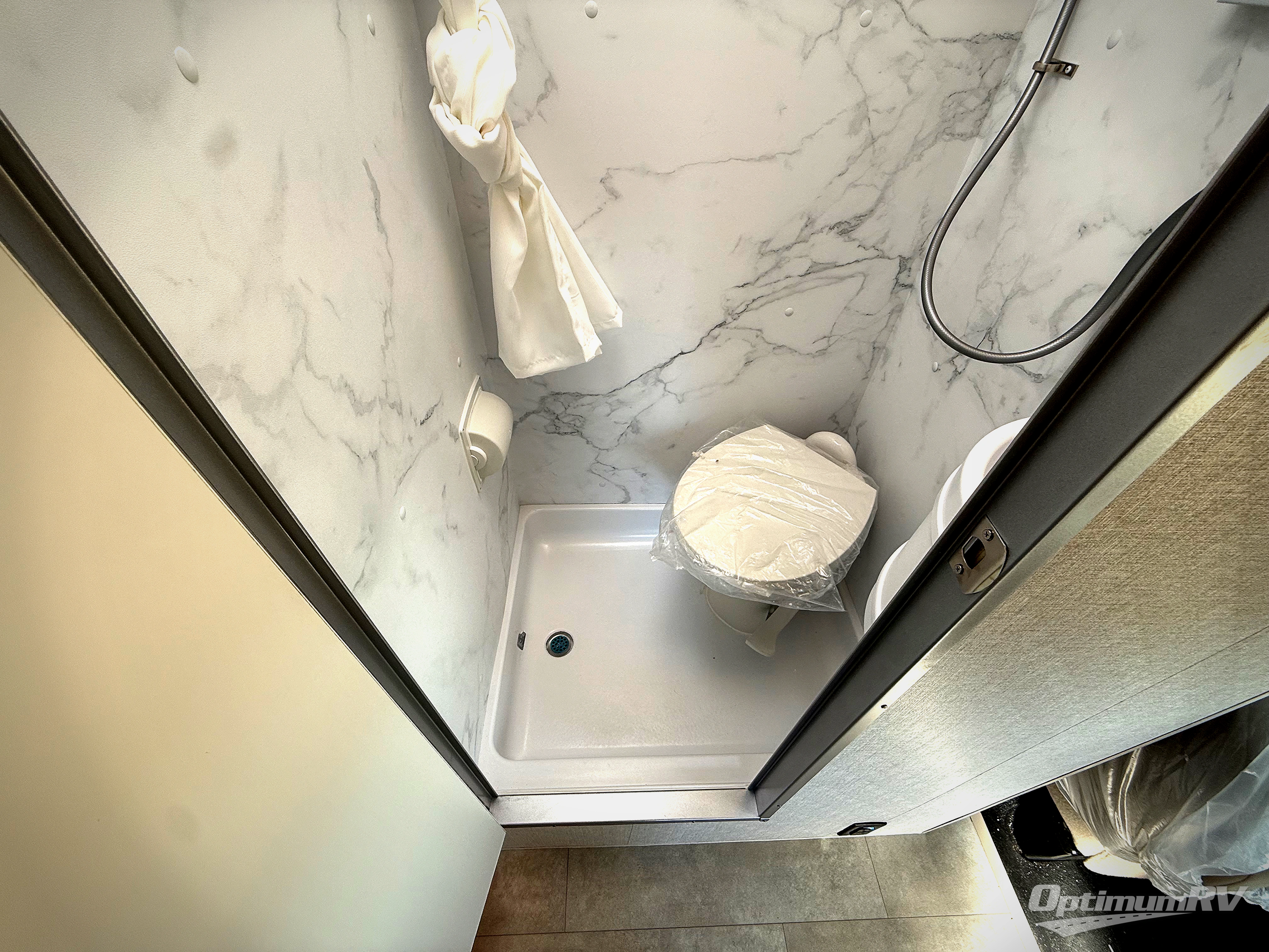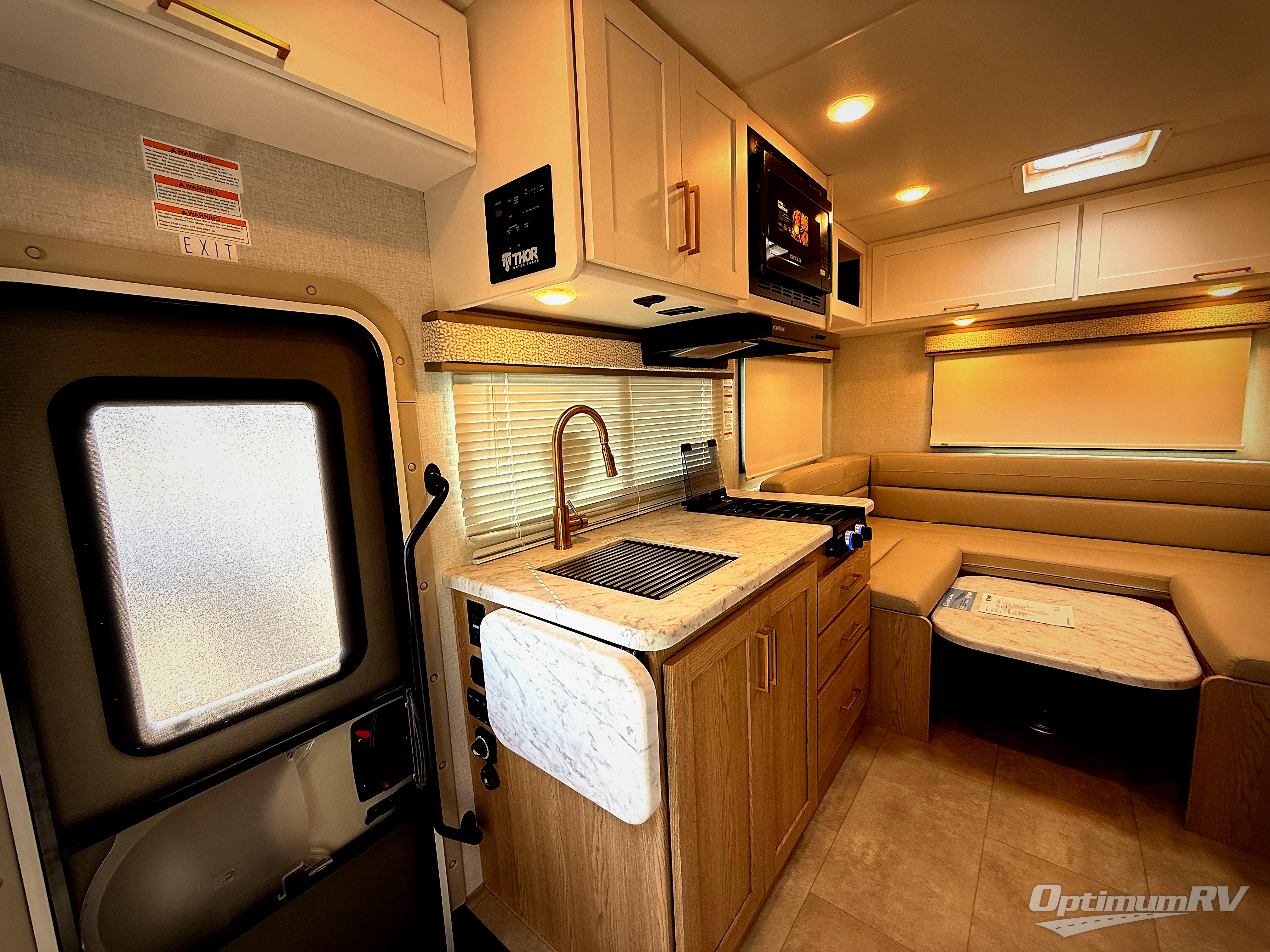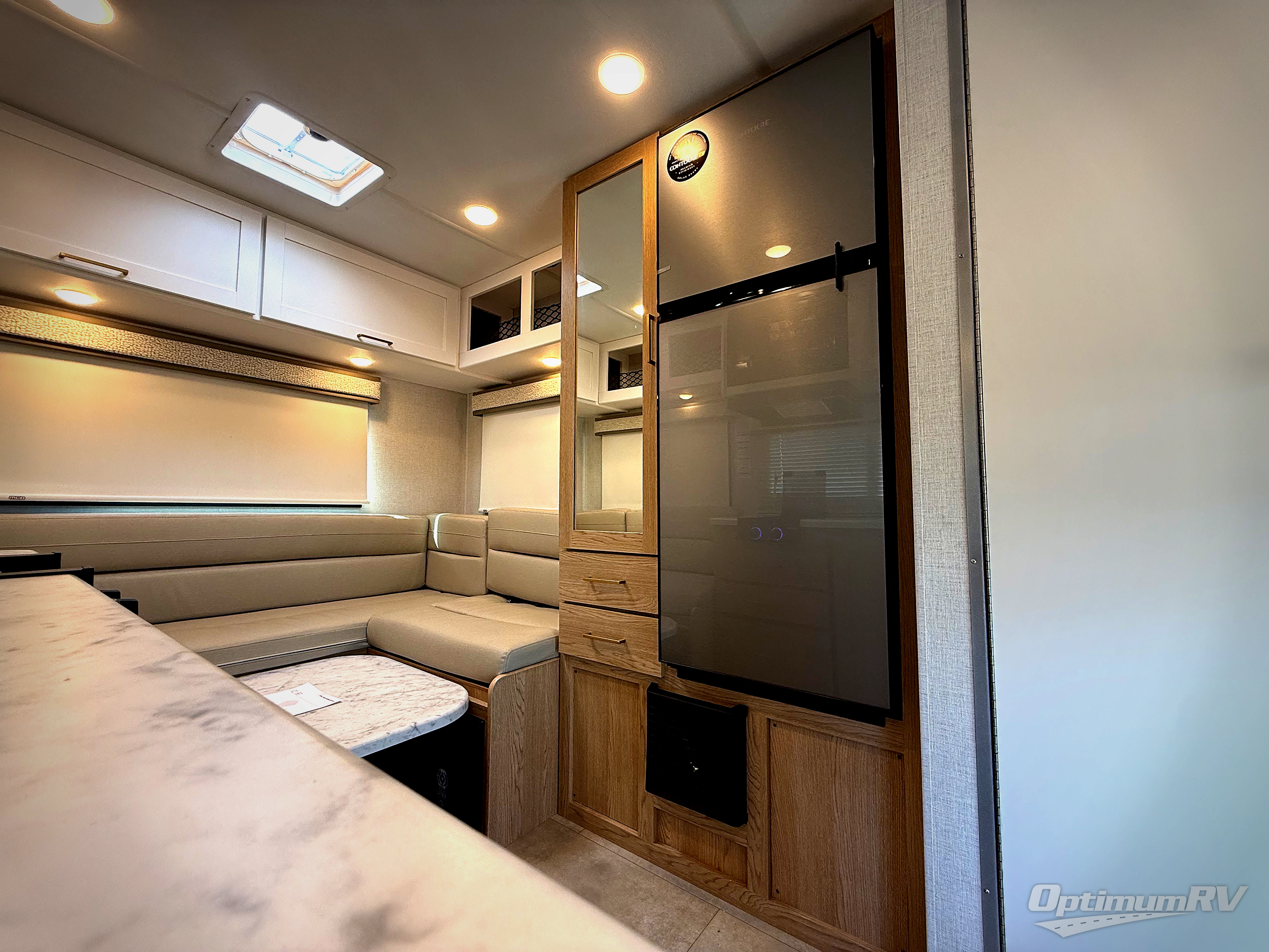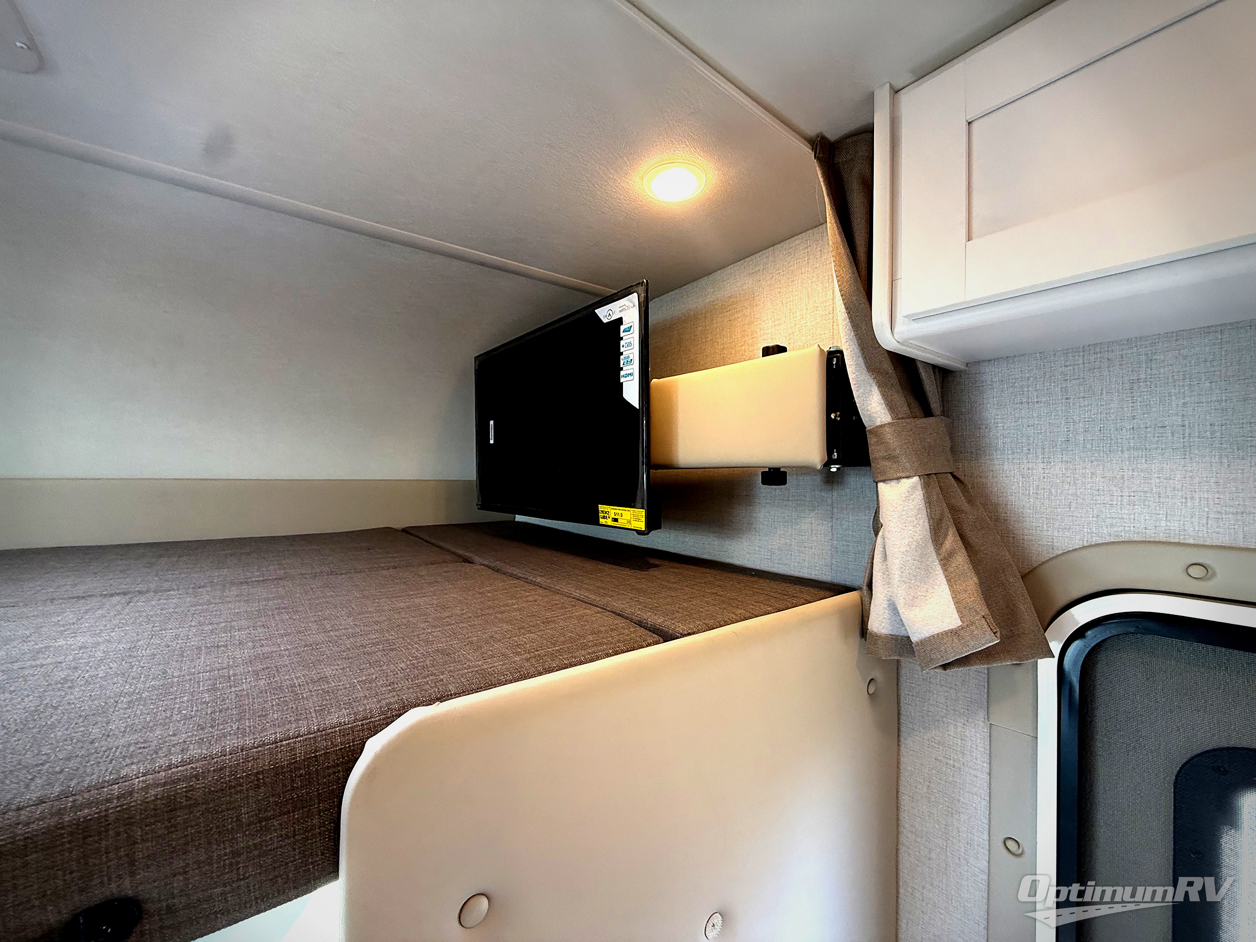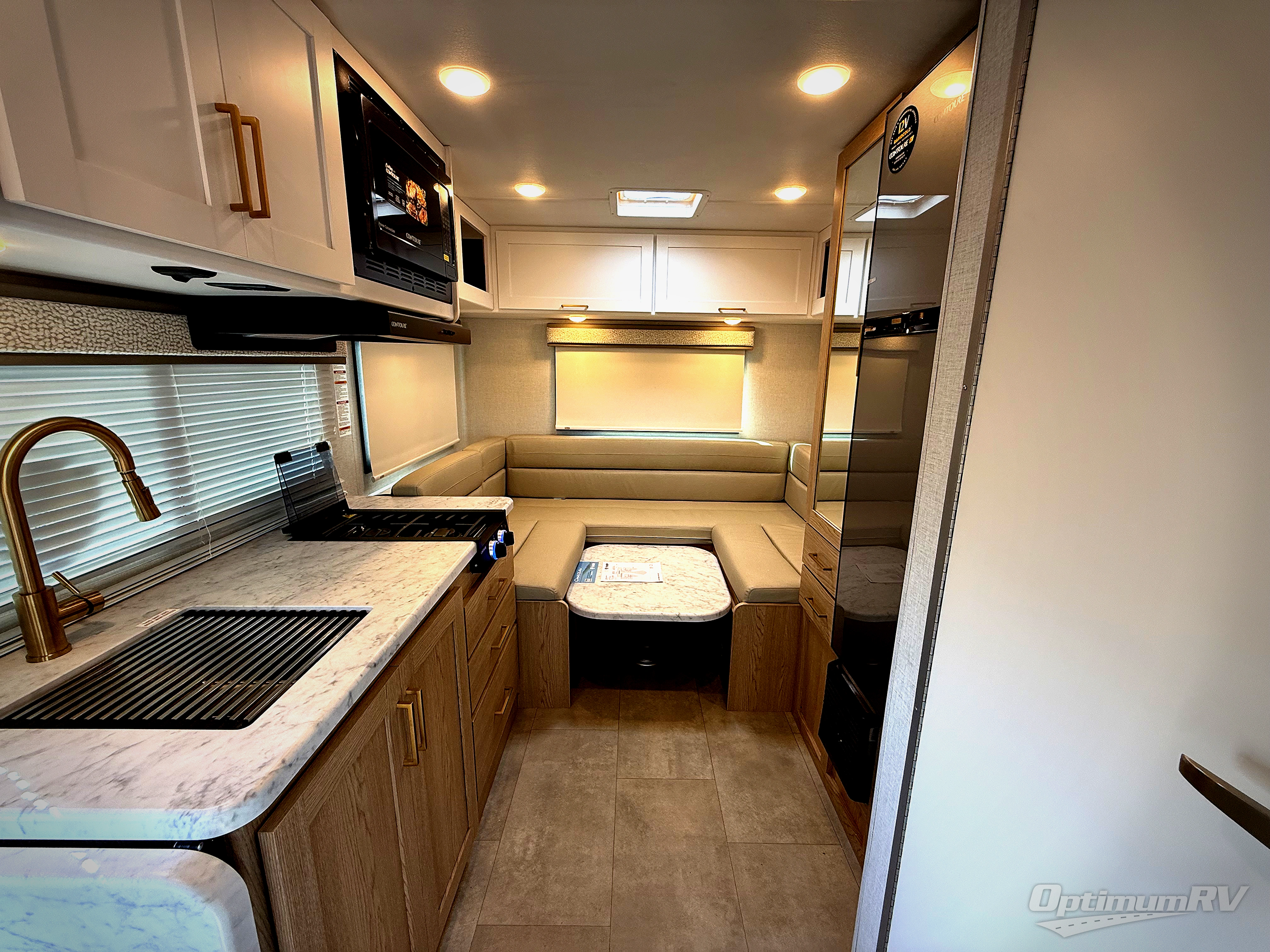 This compact, yet cozy coach is perfect for trips to the campground each weekend! Once you've reached your destination, you can set up the 11' power awning, unload the exterior storage compartments, and relax in your camp chairs. The two burner gas cooktop and convection microwave with an air fryer will let you make meals each day, and there is a 12V refrigerator to keep food fresh. A flip-up counter is another great feature that will give you more prep space! You can freshen up in the wet bath, grab your night clothes from the closet, then convert the U-shaped dinette into a 54" x 77" bed for a great night's rest!