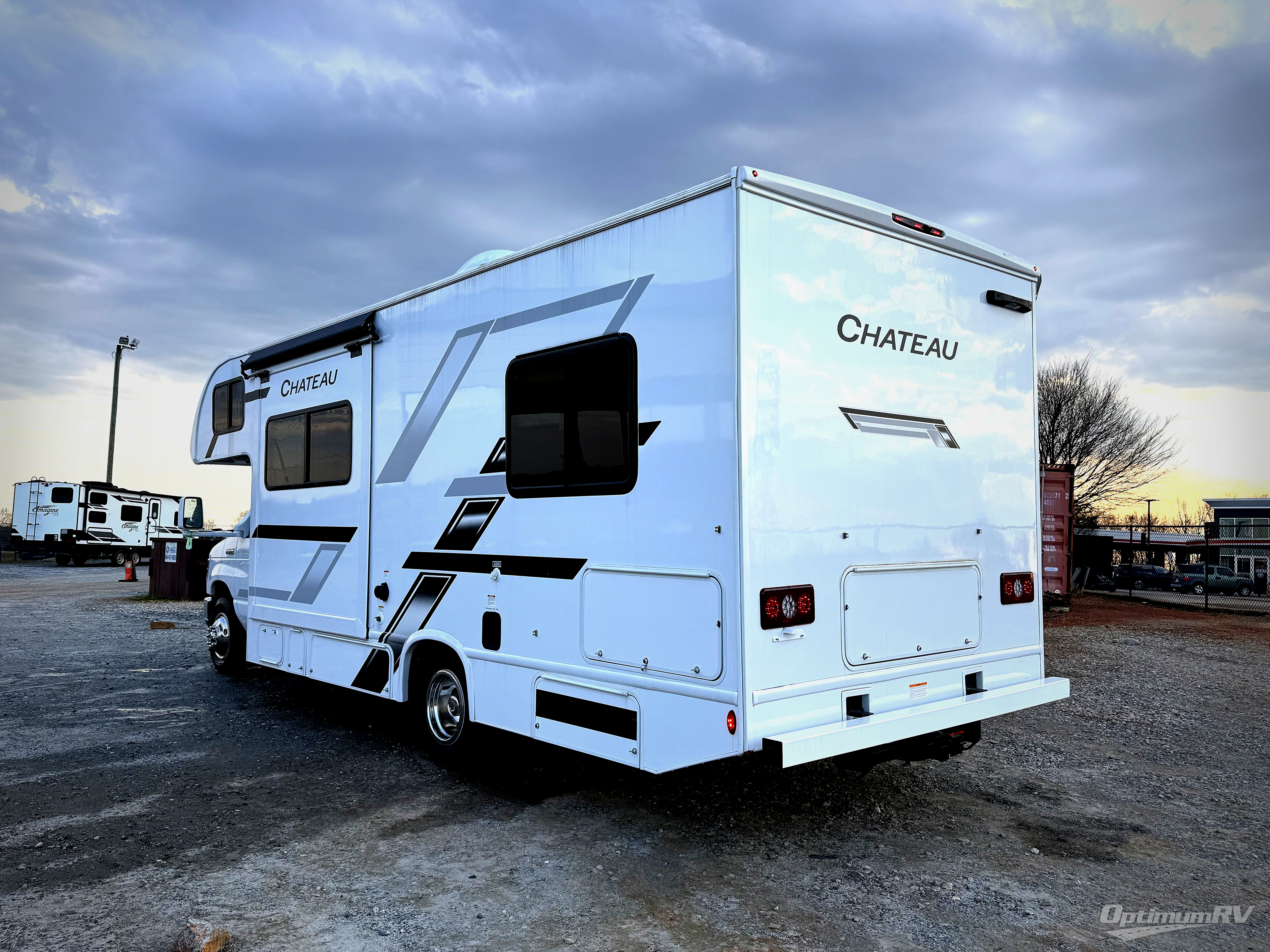 With any Chateau ESpec Class C gas motorhome by Thor Motor Coach, you will find convenient amenities, a modern interior, and a reliable Ford E-Series chassis, with an optional Chevy chassis on select models to power your adventures. There is welded tubular aluminum roof and sidewall cage construction, a one-piece fiberglass front cap, and a premium one-piece domed roof membrane for added strength. Residential vinyl flooring will be easy to keep clean, and you'll love the sleek look of the Hampton Collection two-toned cabinets. These motorhomes also include a 50 State 4.0 kW dual gas/LP generator and a 30-amp shoreline power cord to keep you going, along with a tankless water heater and 13,500 roof front A/C to ensure your comfort!