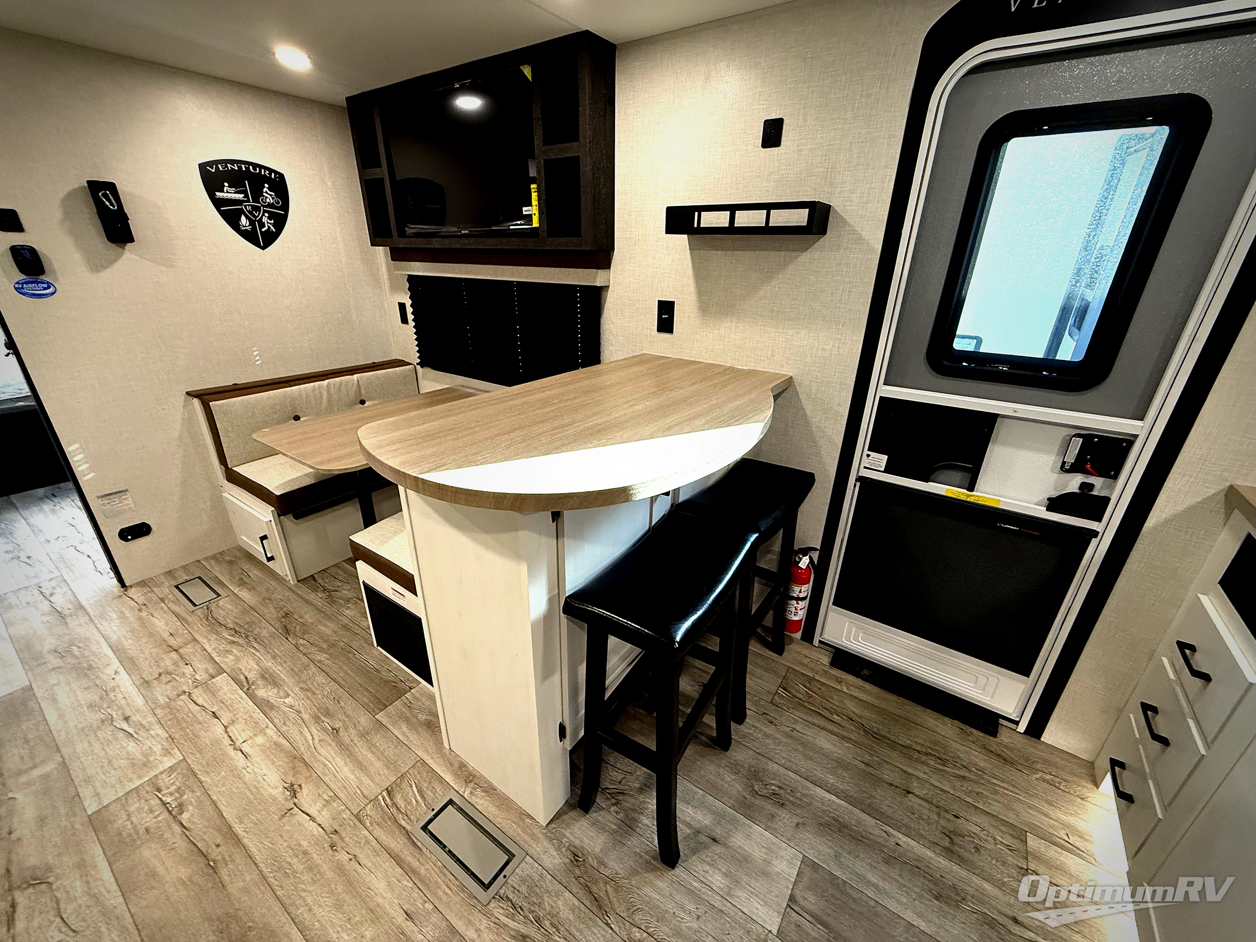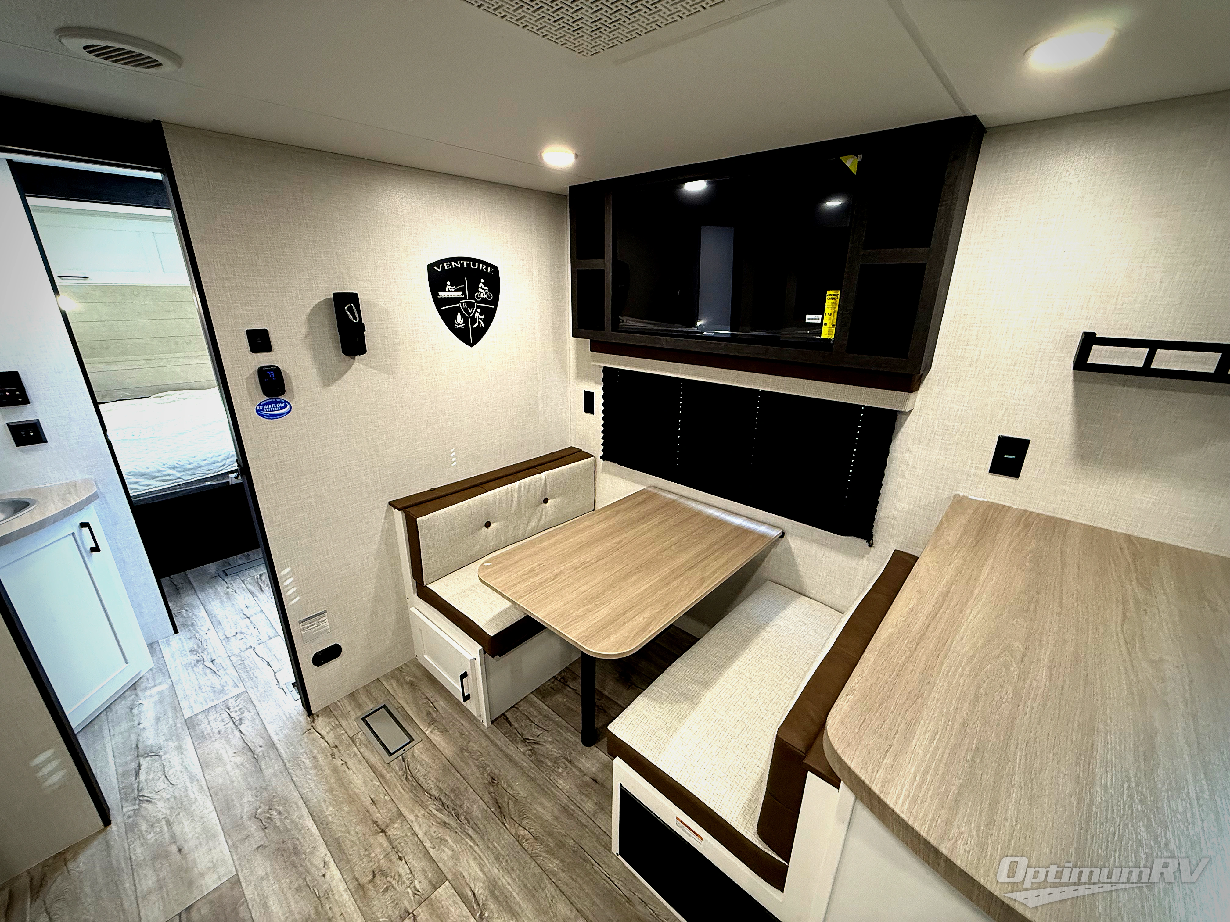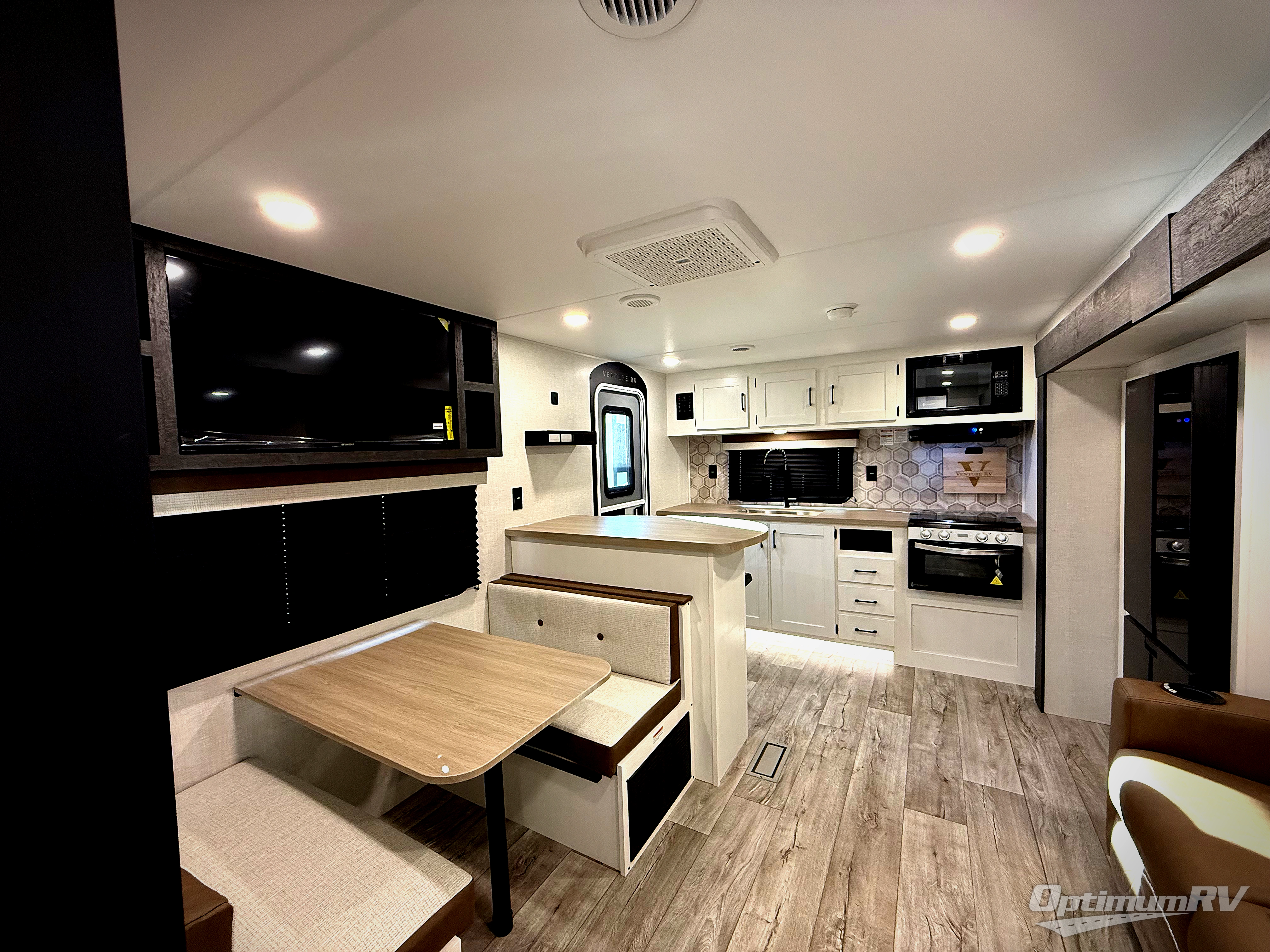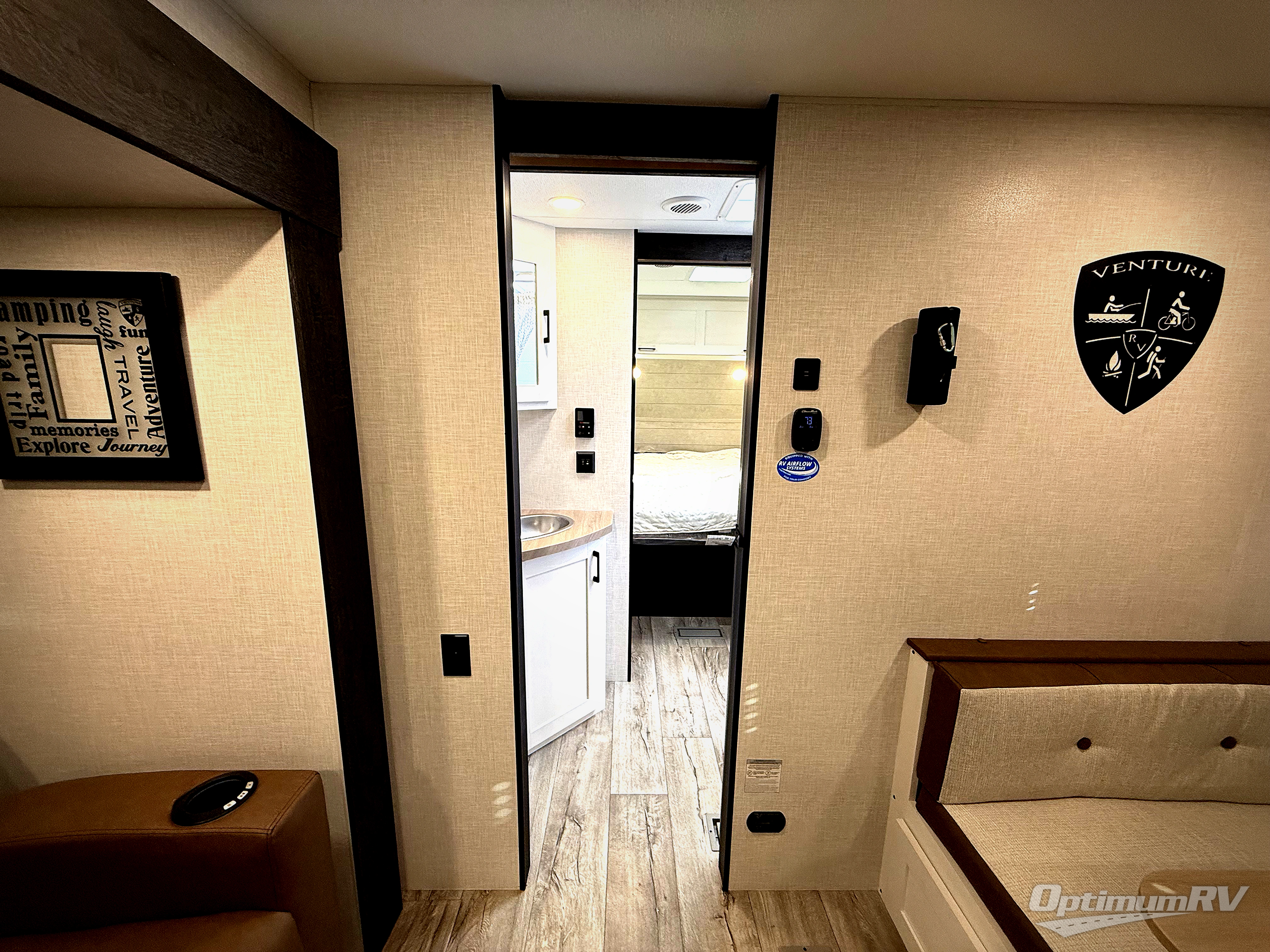 With any Sienna travel trailer by Venture RV, you will enjoy a lightweight unit, convenient amenities, and a durable construction that includes a BAL NXG-bolted frame. There is also a heated and enclosed one-piece underbelly, residential fiberglass insulation, and a reflective PVC roof membrane within the Weather-Shield Package to help extend your camping season. Outside, the BAL 5.0 power stabilizer jacks and power tongue jack will have you set up in no-time, and the Venture RV bottle opener/dog tie down will make it easy to bring your furry friends along. Head inside to enjoy the modern farmhouse design, along with Beauflor throughout with no carpet, custom backsplash, large underbed storage, and a bath skylight to name a few comforts!