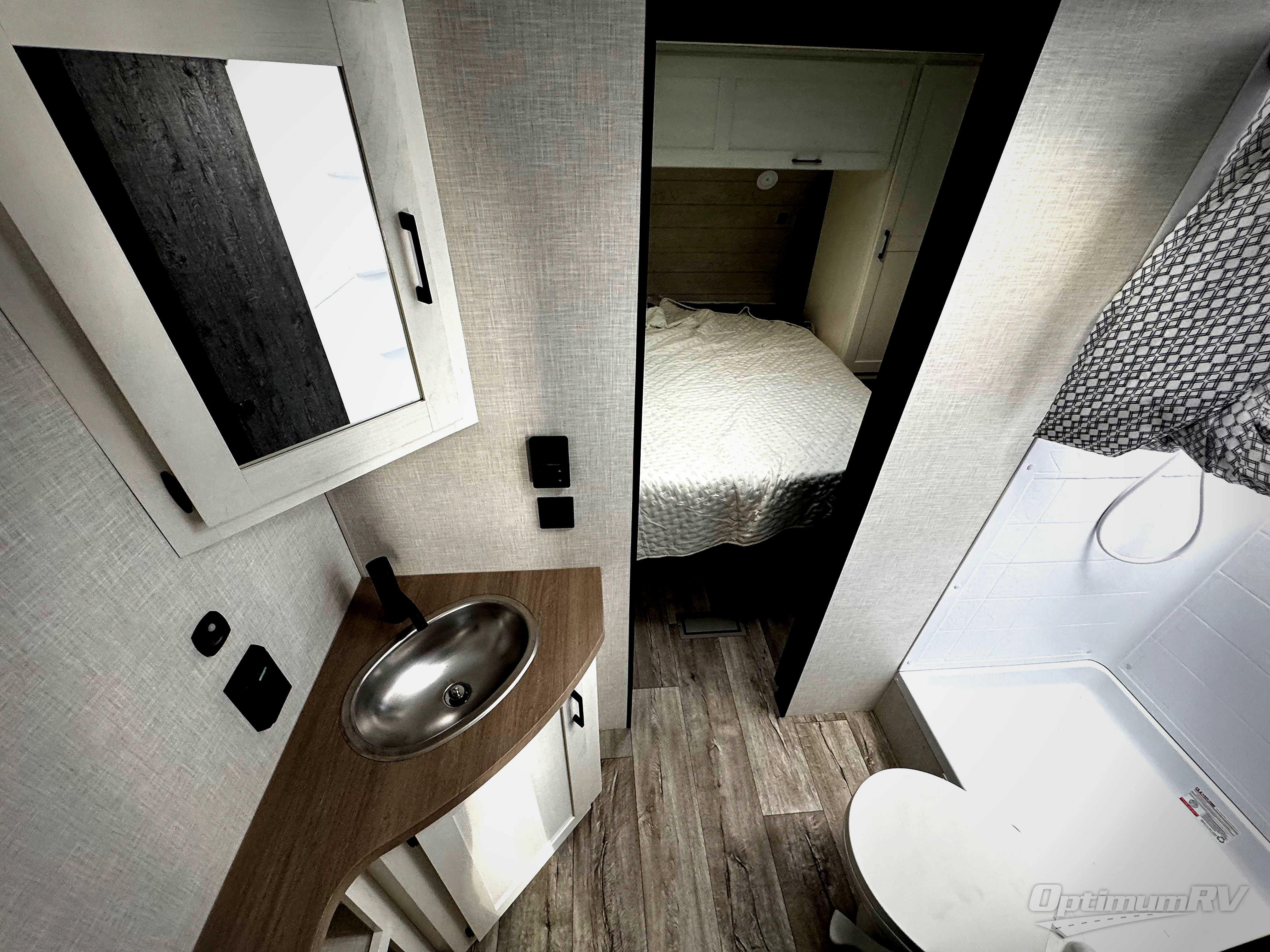 With any Sienna travel trailer by Venture RV, you will enjoy a lightweight unit, convenient amenities, and a durable construction that includes a BAL NXG-bolted frame. There is also a heated and enclosed one-piece underbelly, residential fiberglass insulation, and a reflective PVC roof membrane within the Weather-Shield Package to help extend your camping season. Outside, the BAL 5.0 power stabilizer jacks and power tongue jack will have you set up in no-time, and the Venture RV bottle opener/dog tie down will make it easy to bring your furry friends along. Head inside to enjoy the modern farmhouse design, along with Beauflor throughout with no carpet, custom backsplash, large underbed storage, and a bath skylight to name a few comforts!