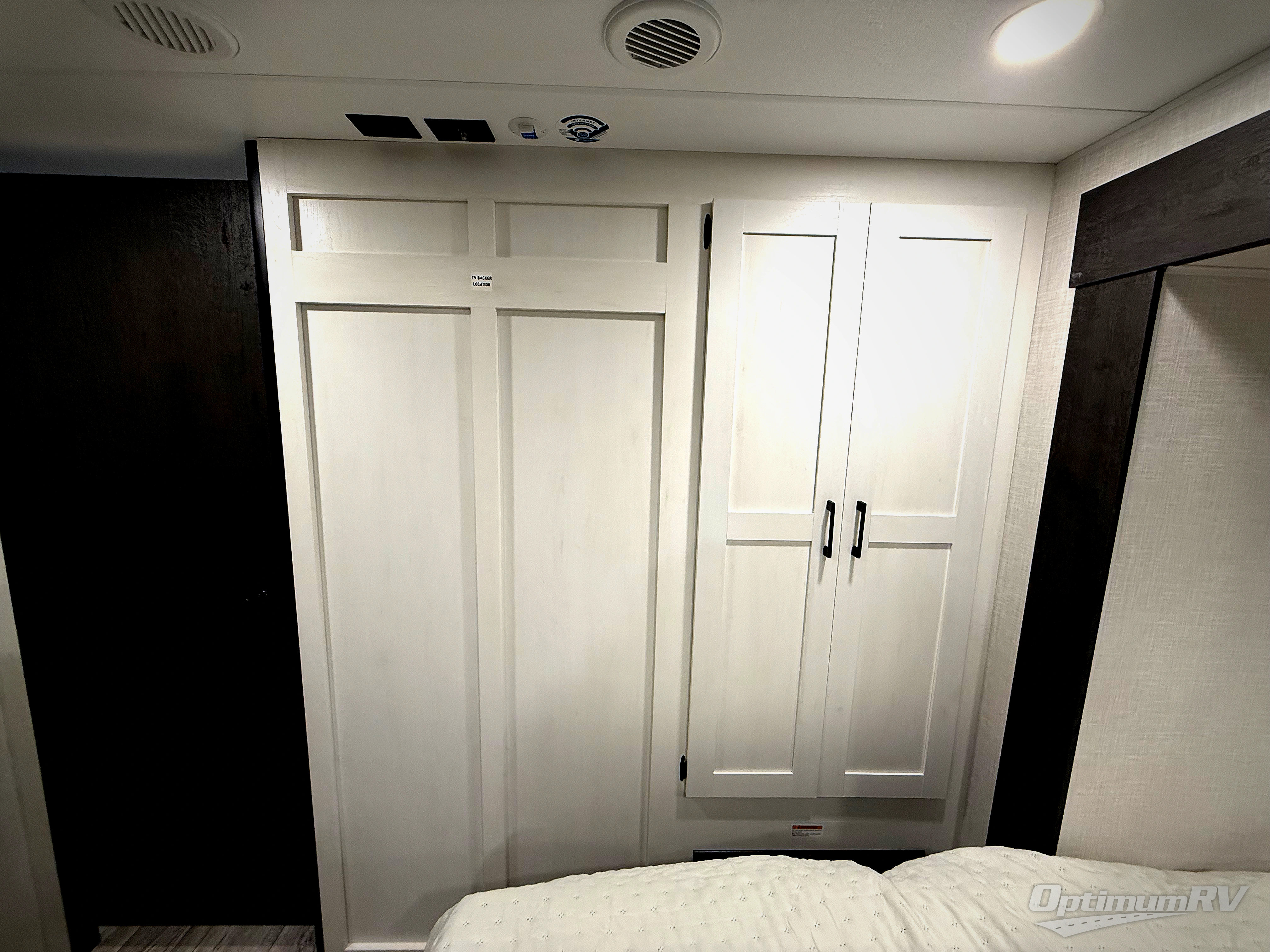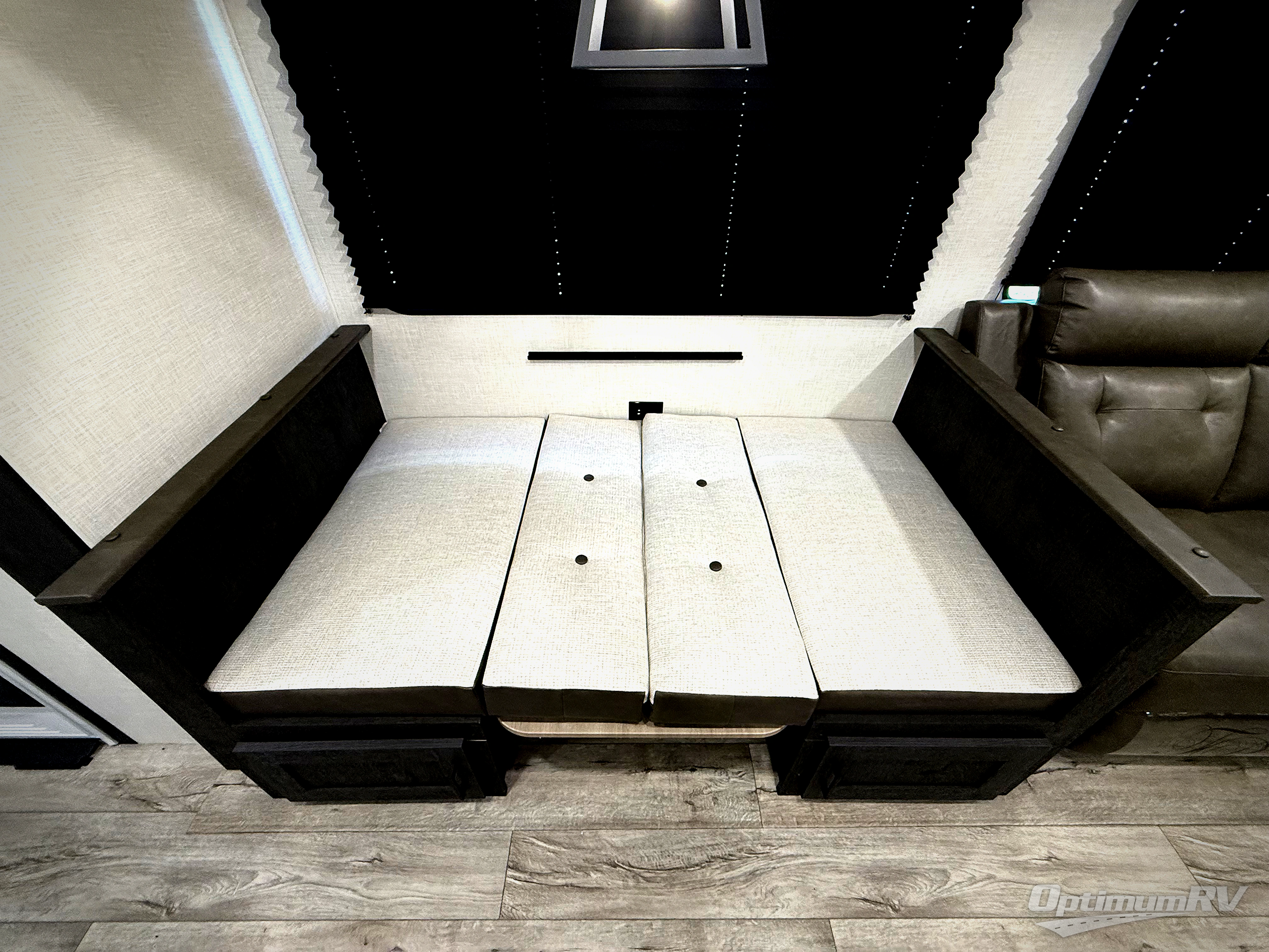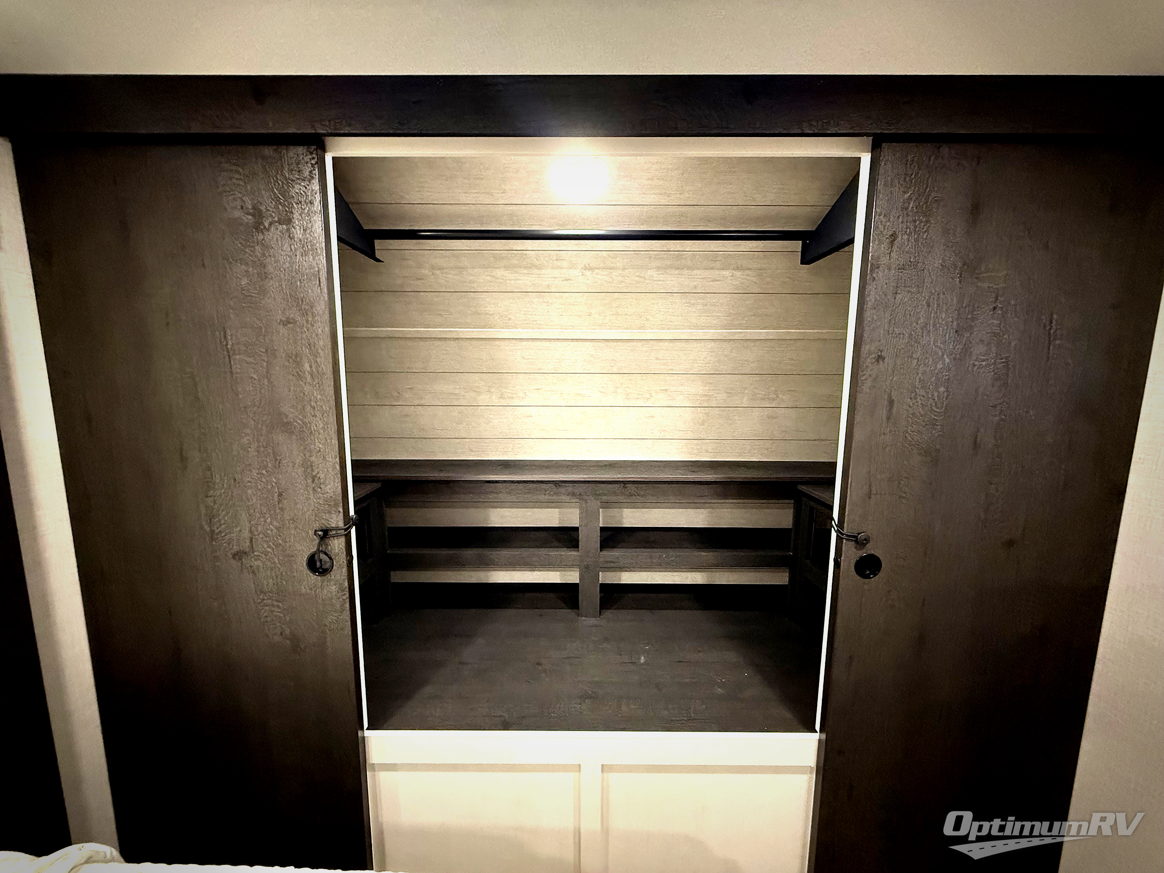 This travel trailer will feel just like home thanks to its spacious interior, large front private bedroom, and kitchen island. There are plenty of places to seating space, including a rear 70" sofa plus theater seating and a Sit N' Slide table within one of the slides. The opposing slide here includes the entertainment center and some of the kitchen appliances. You will also appreciate two pantries, one with washer and dryer prep if you want to add those appliances. A full bath lets you stay clean throughout your trip without having to use the campground's facilities, and the front bedroom is sure to make you feel at home. There is a Sleep Tight queen bed slide, a large front closet, plus a dresser and a second closet for ample storage space!