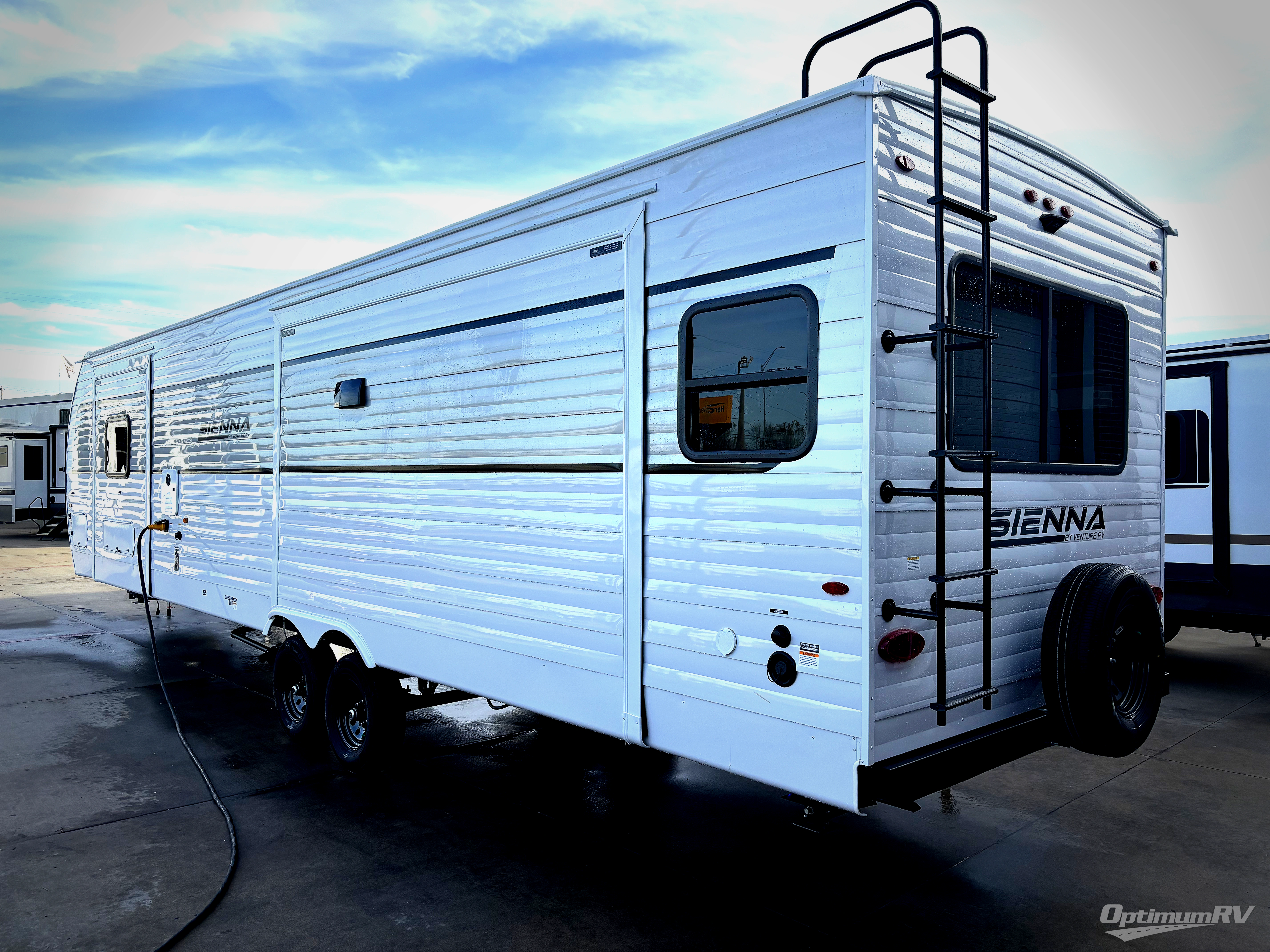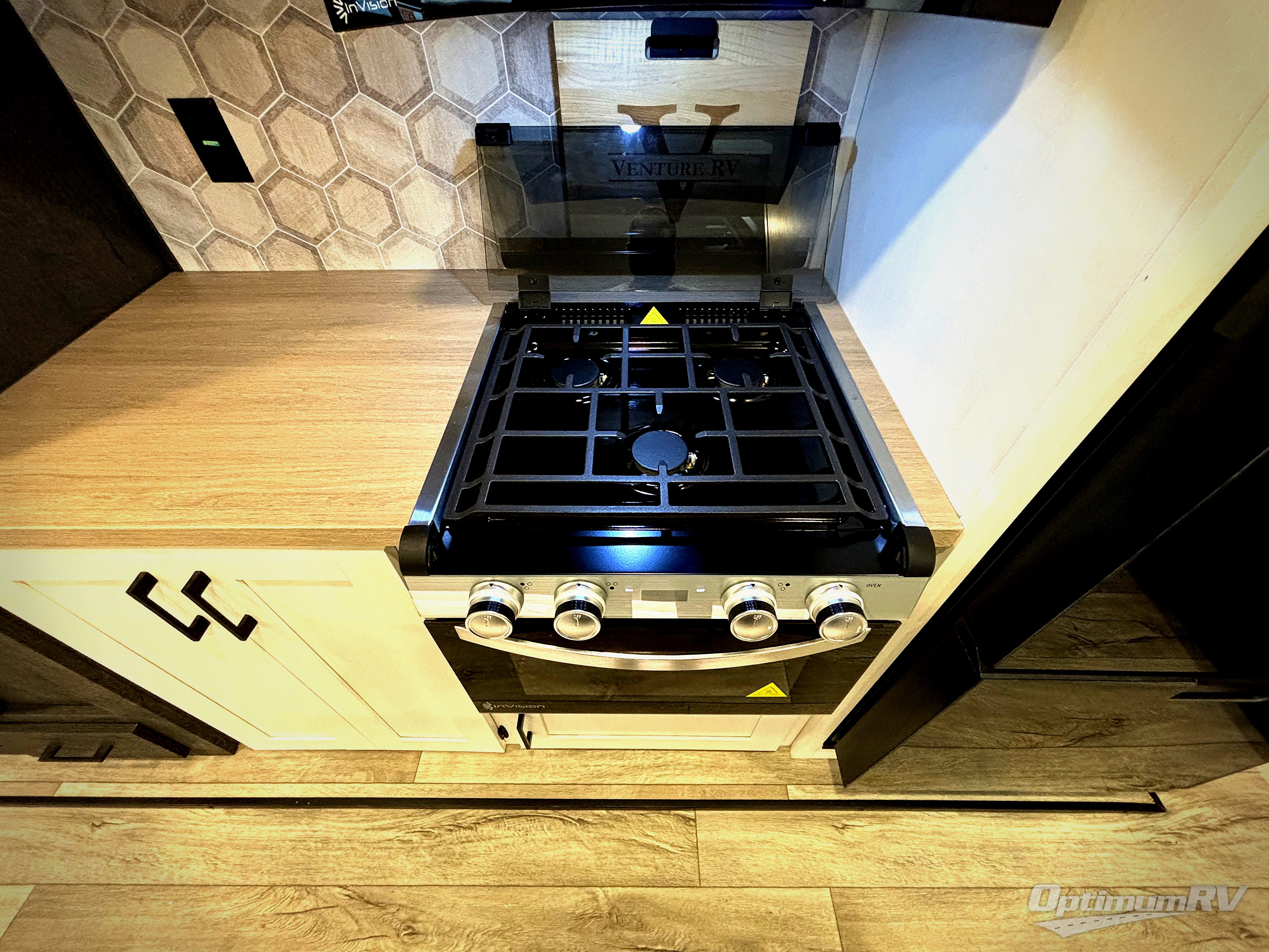 With any Sienna travel trailer by Venture RV, you will enjoy a lightweight unit, convenient amenities, and a durable construction that includes a BAL NXG-bolted frame. There is also a heated and enclosed one-piece underbelly, residential fiberglass insulation, and a reflective PVC roof membrane within the Weather-Shield Package to help extend your camping season. Outside, the BAL 5.0 power stabilizer jacks and power tongue jack will have you set up in no-time, and the Venture RV bottle opener/dog tie down will make it easy to bring your furry friends along. Head inside to enjoy the modern farmhouse design, along with Beauflor throughout with no carpet, custom backsplash, large underbed storage, and a bath skylight to name a few comforts!