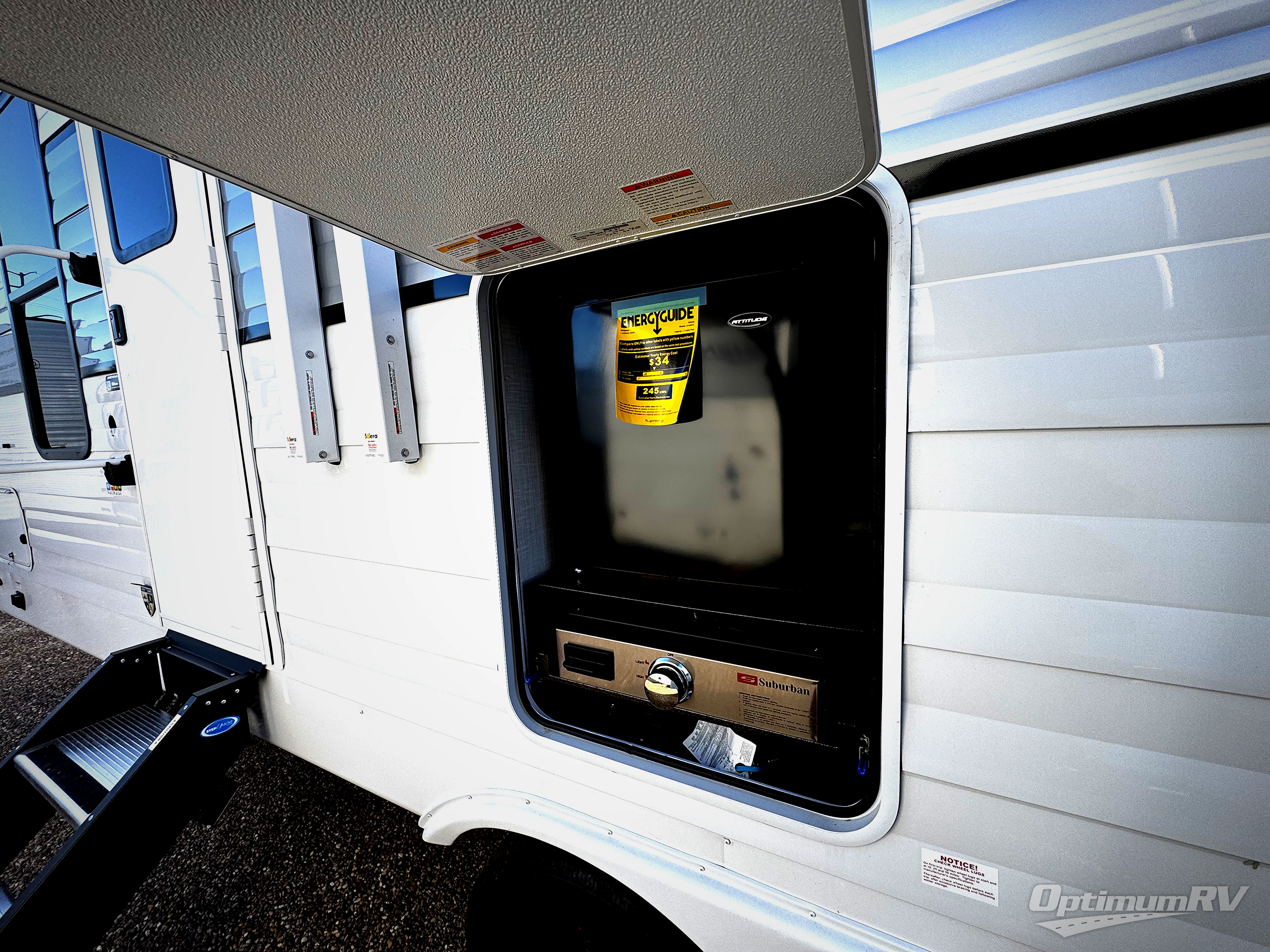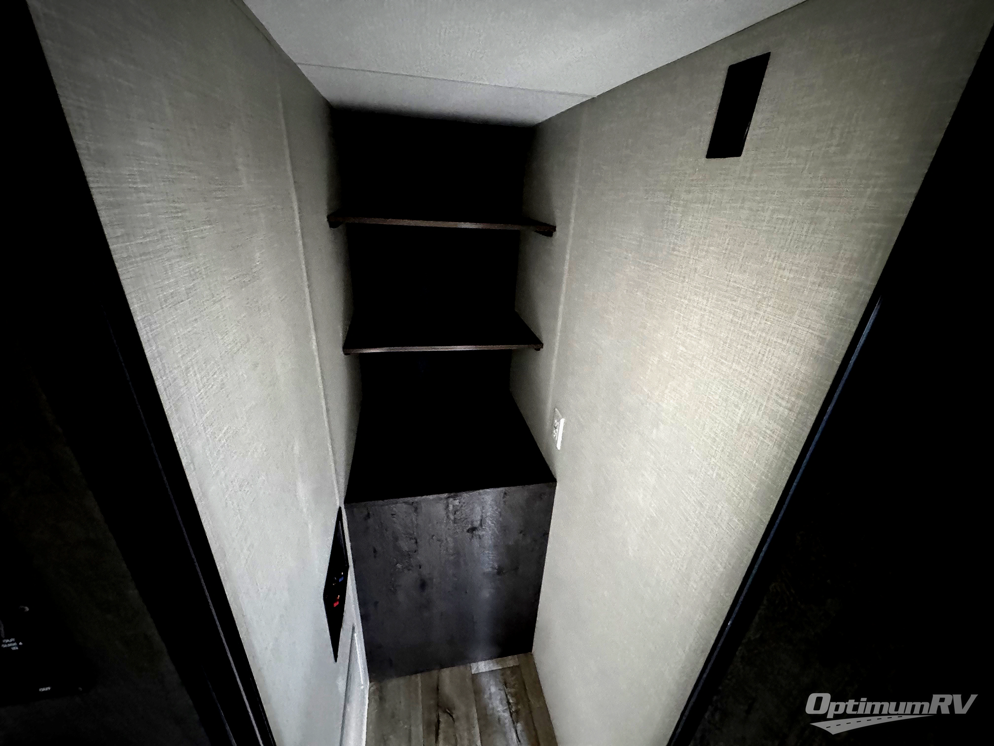 This travel trailer’s bunk beds are perfect for kids, providing ample sleeping space for the whole family. The wardrobes offer plenty of storage for your clothing and essentials.The sofa is a comfortable spot to relax, and the fireplace adds a cozy touch to the interior. The entertainment center is equipped with a 50” TV, perfect for family movie nights or enjoying your favorite shows on the go. The walk-in pantry provides ample storage for your food and snacks, while the 10 cu refrigerator keeps your food and drinks fresh. The sit n’ slide table is a fun and functional spot for meals and adds additional sleeping space. For convenience and comfort the walk-through bath provides easy access and convenience, while the overhead cabinets offer additional storage for your essentials. The front bedroom features a spacious queen bed and overhead cabinet. Head outside and unwind under the shade of the two exterior awnings and store everything you need in the pass-through storage offering ample space for your outdoor gear and equipment.