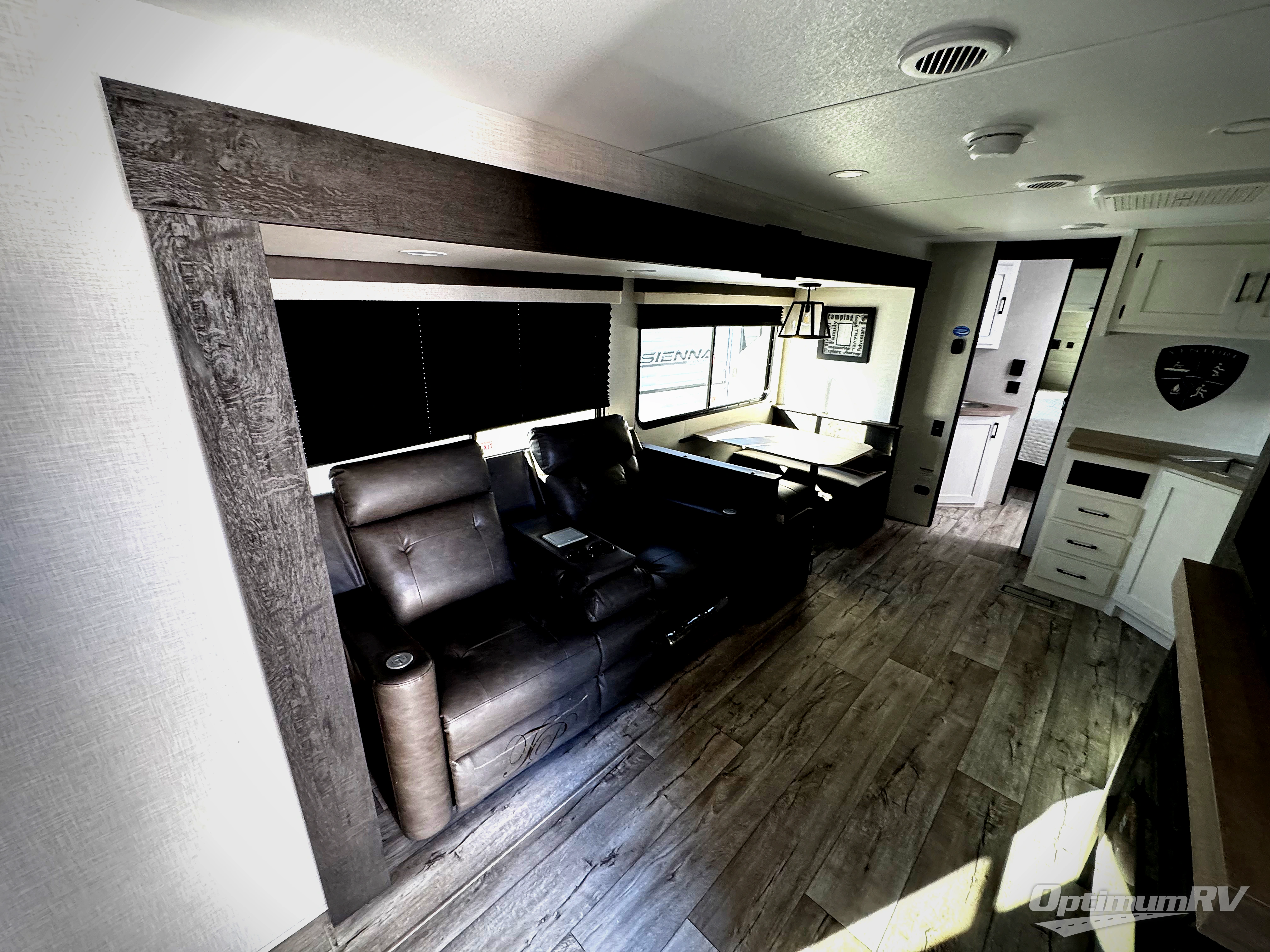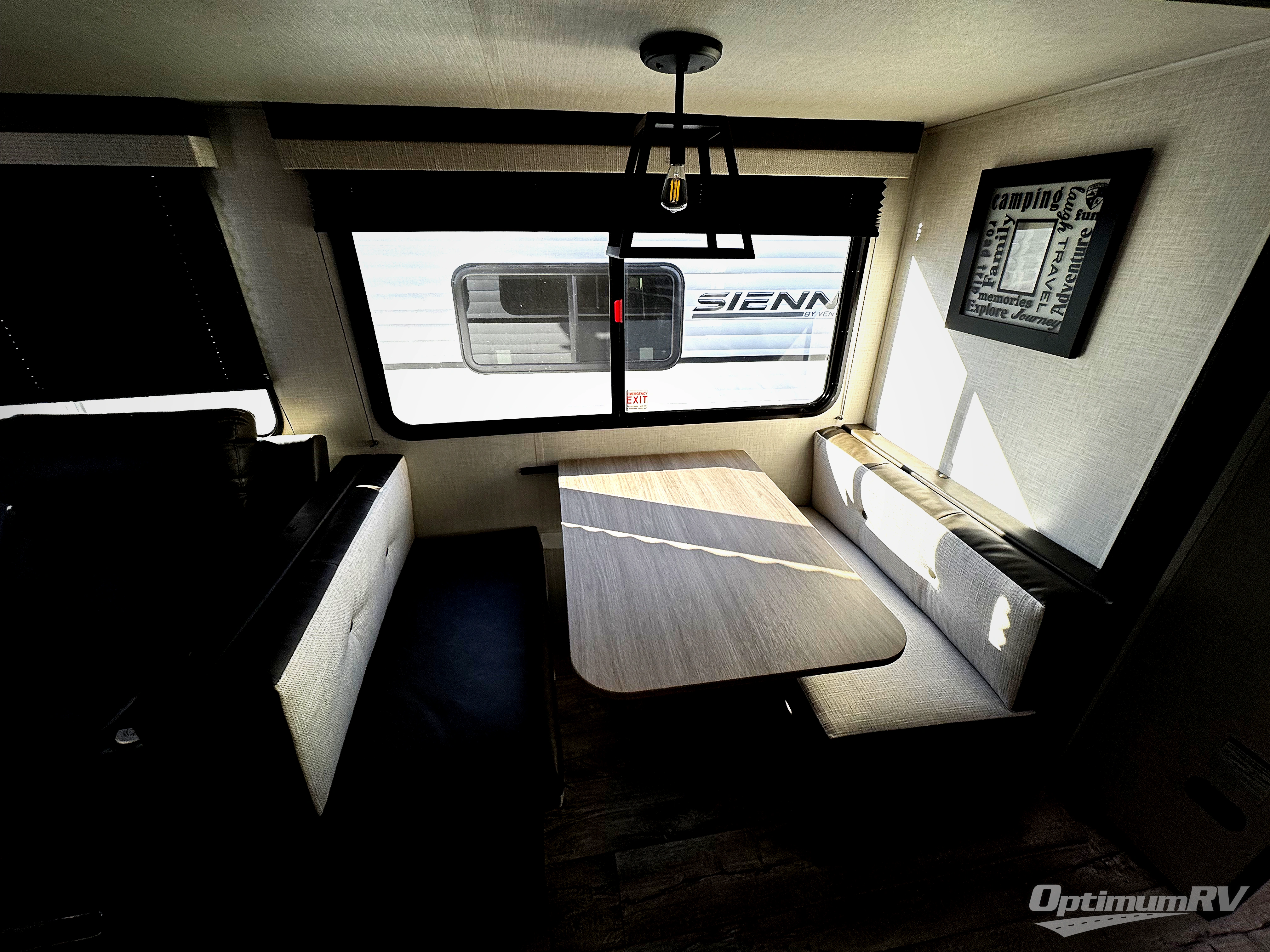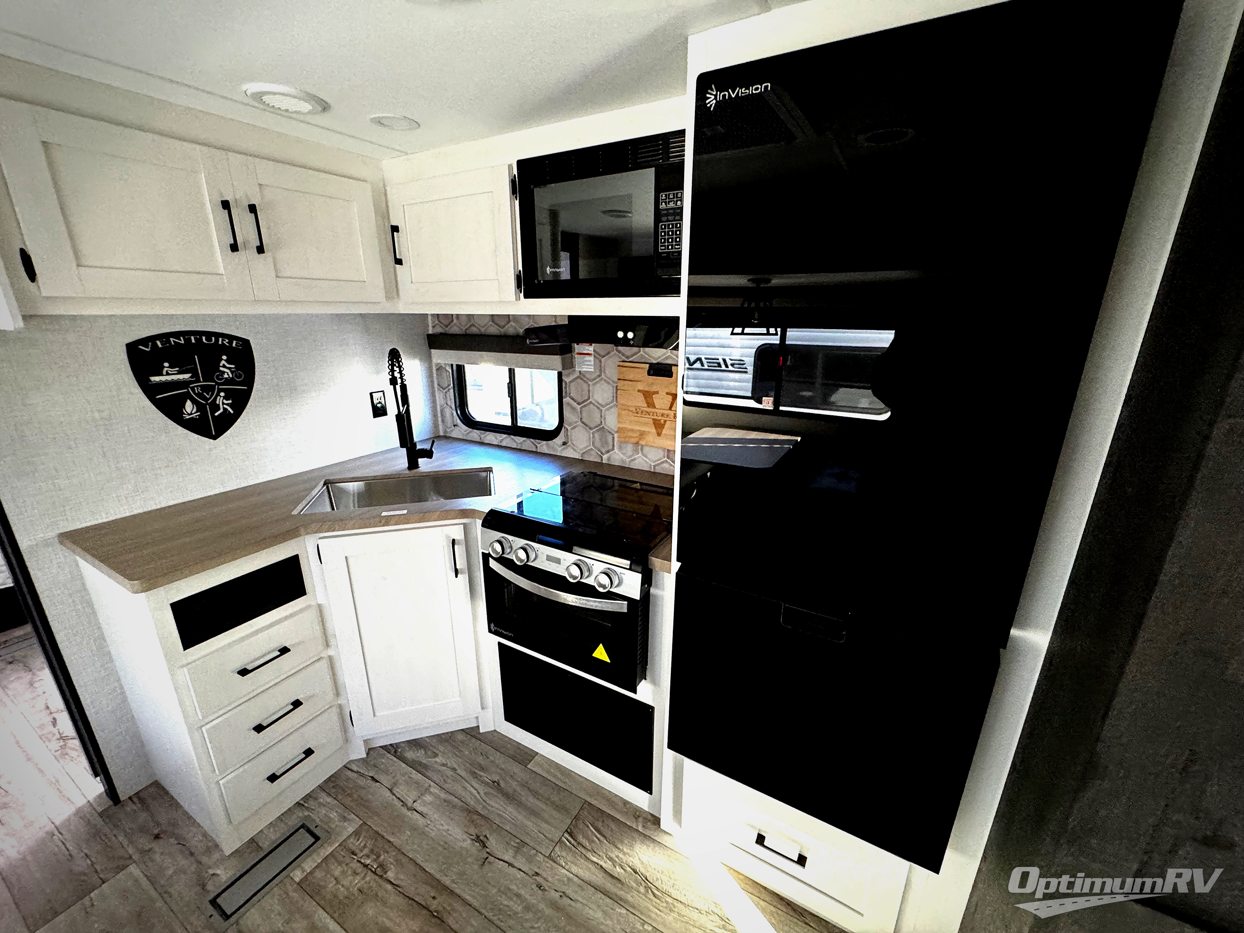 With any Sienna travel trailer by Venture RV, you will enjoy a lightweight unit, convenient amenities, and a durable construction that includes a BAL NXG-bolted frame. There is also a heated and enclosed one-piece underbelly, residential fiberglass insulation, and a reflective PVC roof membrane within the Weather-Shield Package to help extend your camping season. Outside, the BAL 5.0 power stabilizer jacks and power tongue jack will have you set up in no-time, and the Venture RV bottle opener/dog tie down will make it easy to bring your furry friends along. Head inside to enjoy the modern farmhouse design, along with Beauflor throughout with no carpet, custom backsplash, large underbed storage, and a bath skylight to name a few comforts!
