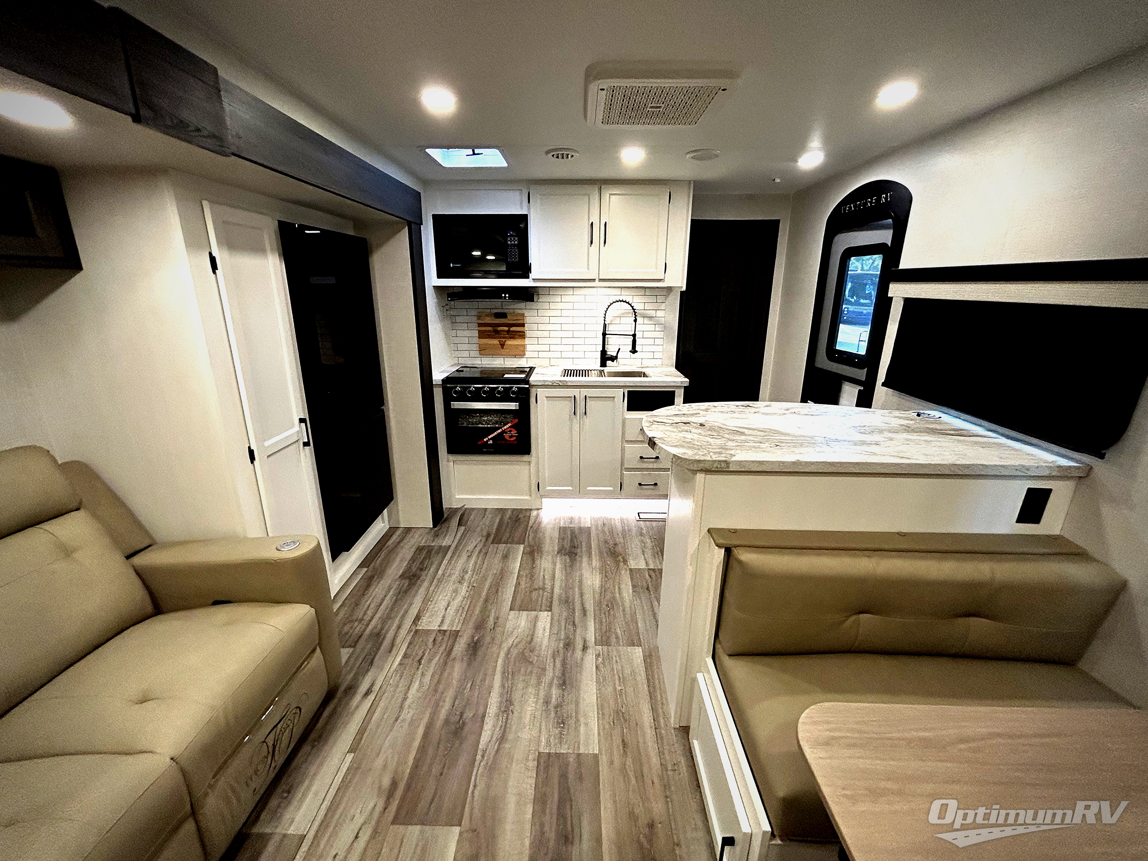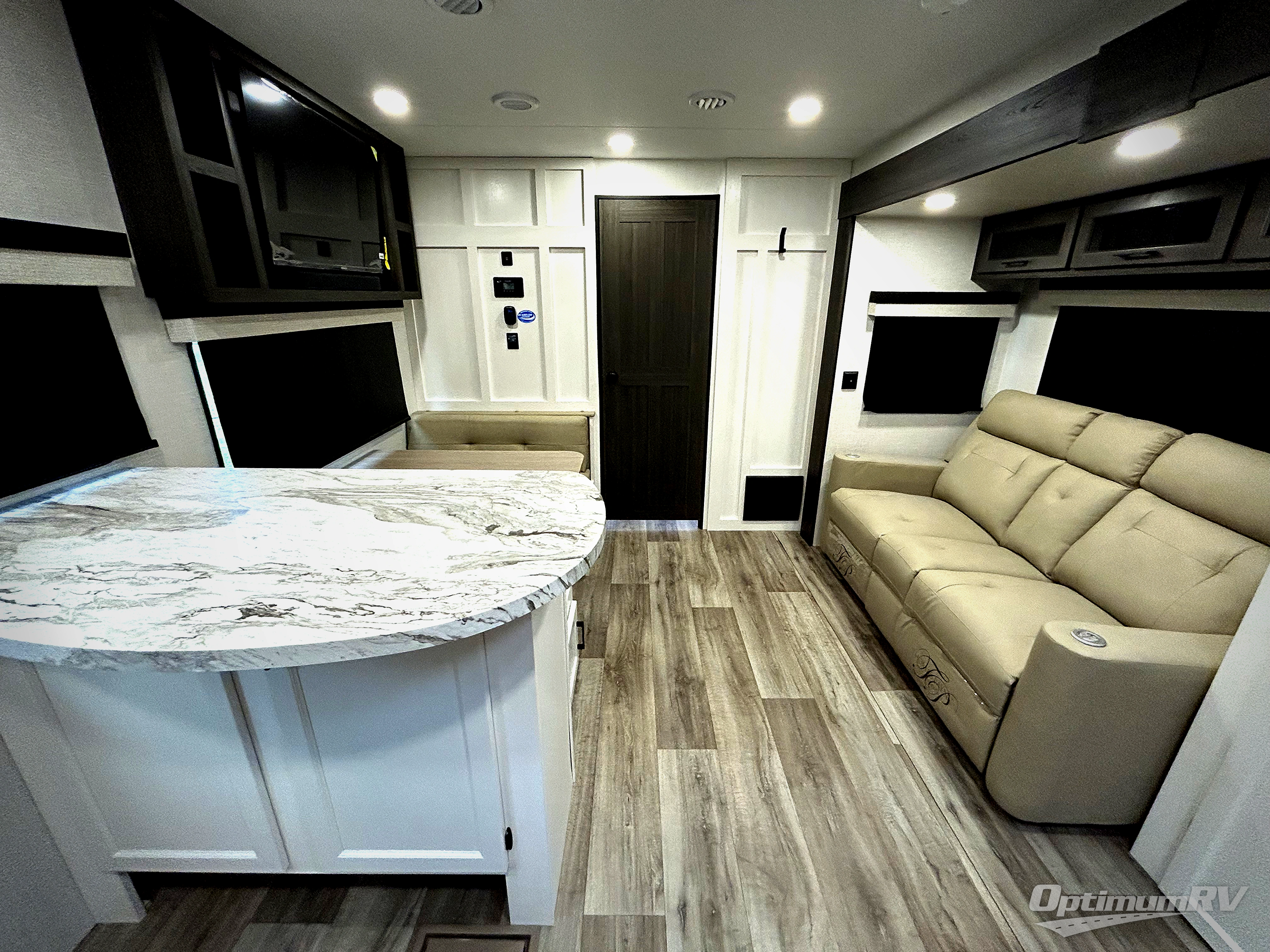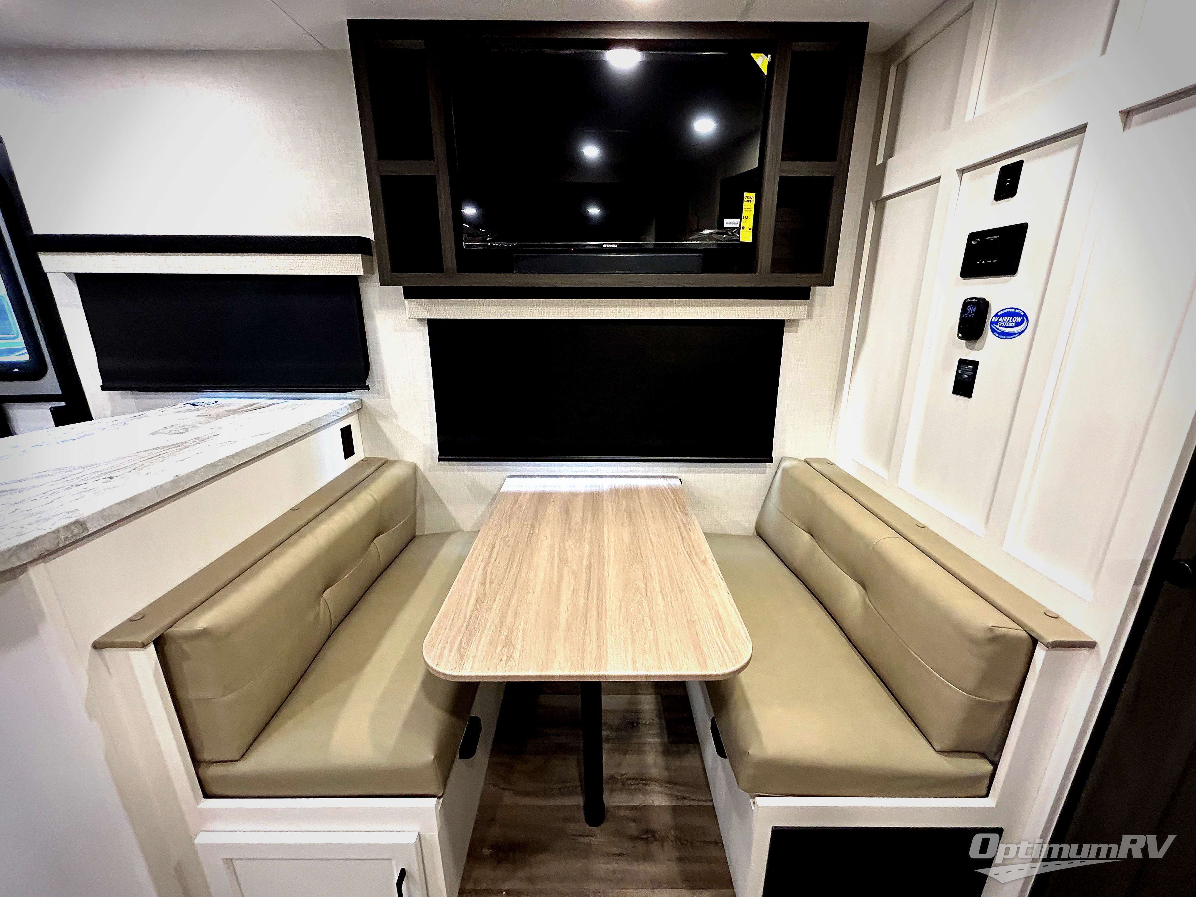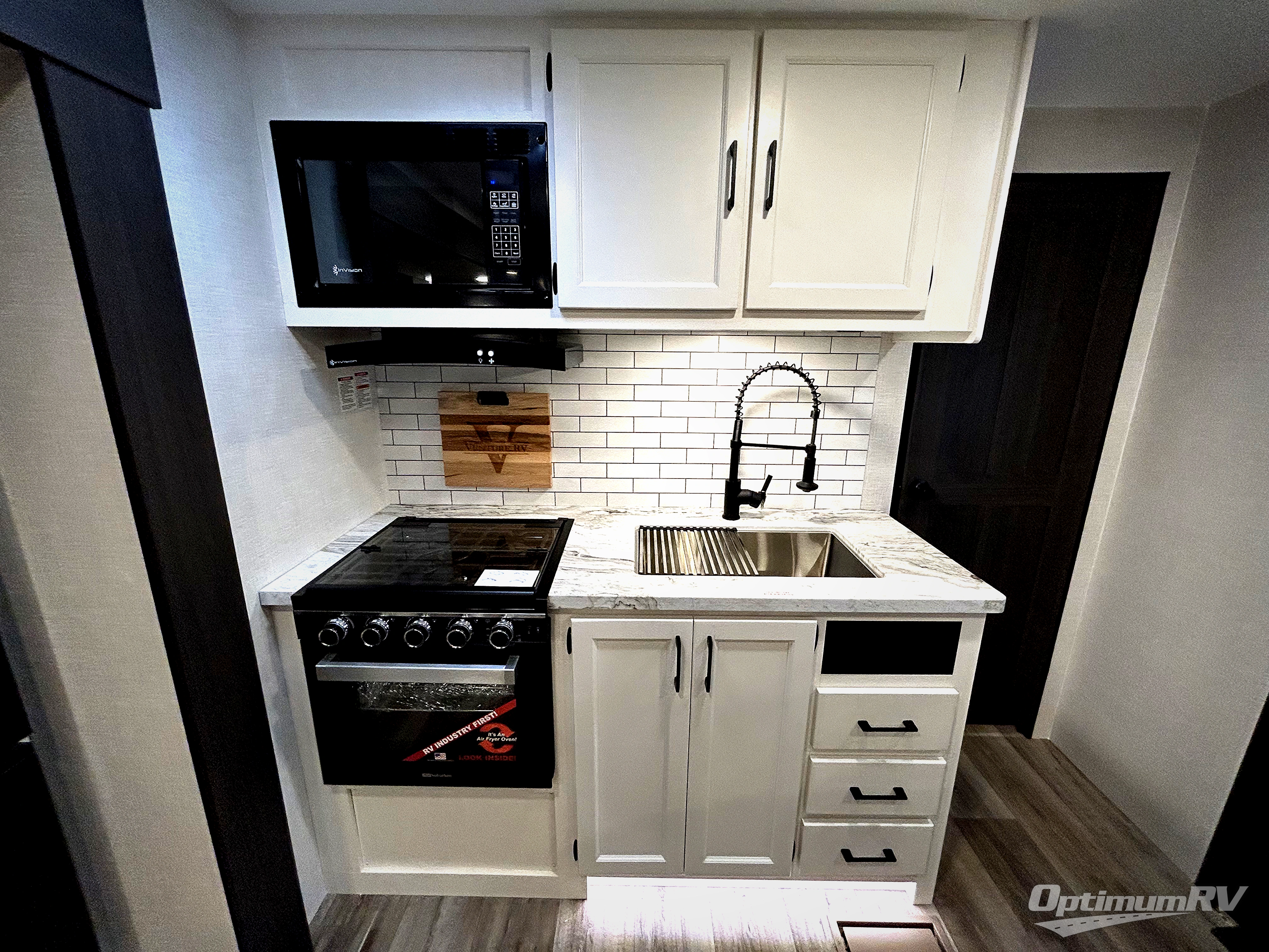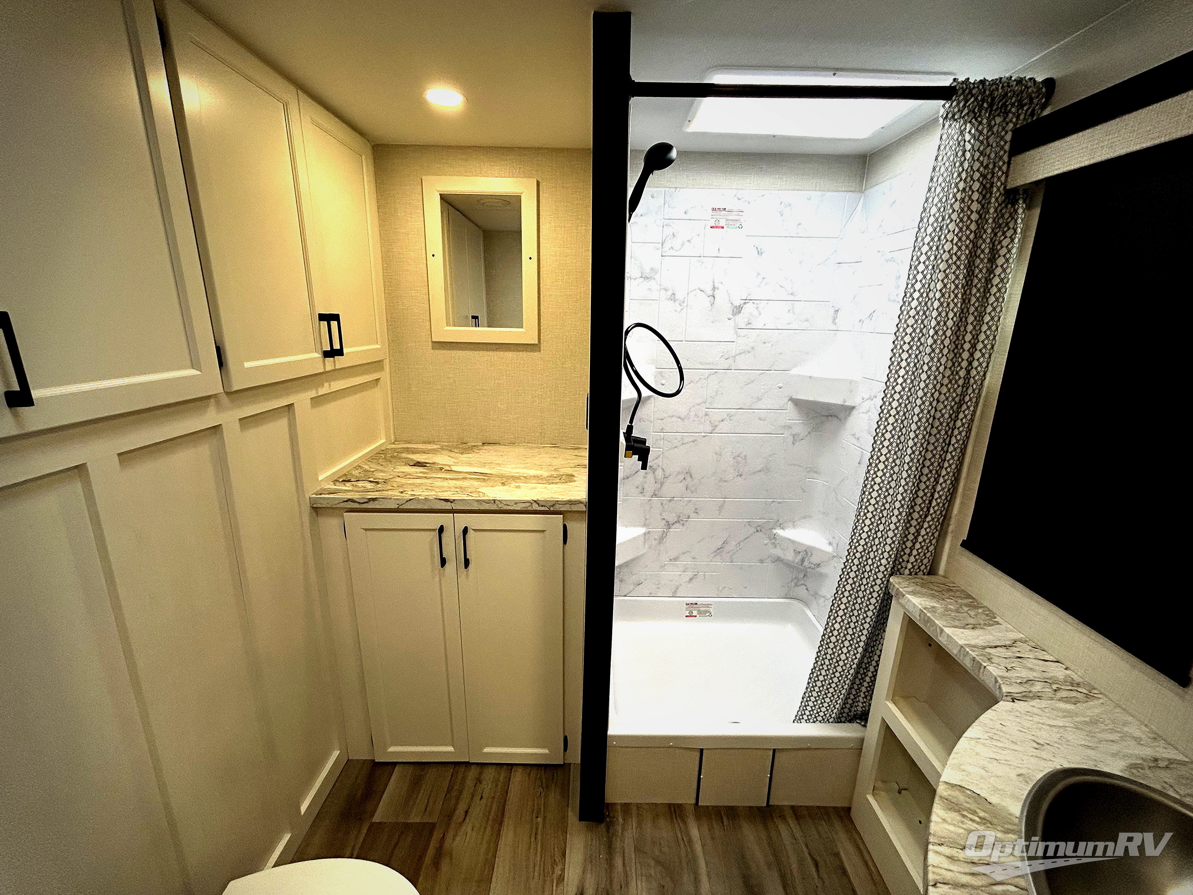 It won't be hard to find comfort in this travel trailer for three to four. Once you arrive at the campground, you can put out the 14' power awning, unload your camp chairs from the pass-thru storage, then start lunch on the exterior kitchen with a griddle. There is also an exterior 40" Smart TV to watch the big game outdoors! If the weather isn't cooperating, you can head inside to relax on the 70" sofa, or play a game at the Sit N' Slide table. You can also choose optional theater seats or a tri-fold sofa in place of the sofa if you prefer this seating arrangements. The kitchen includes appliances to make home-cooked meals, including a 27" oven with a air fryer. The Sleep Tight queen bed in the front private bedroom is sure to bring a great night's rest after you've played all day, and don't overlook the full rear bath, complete with an optional washer and dryer!
