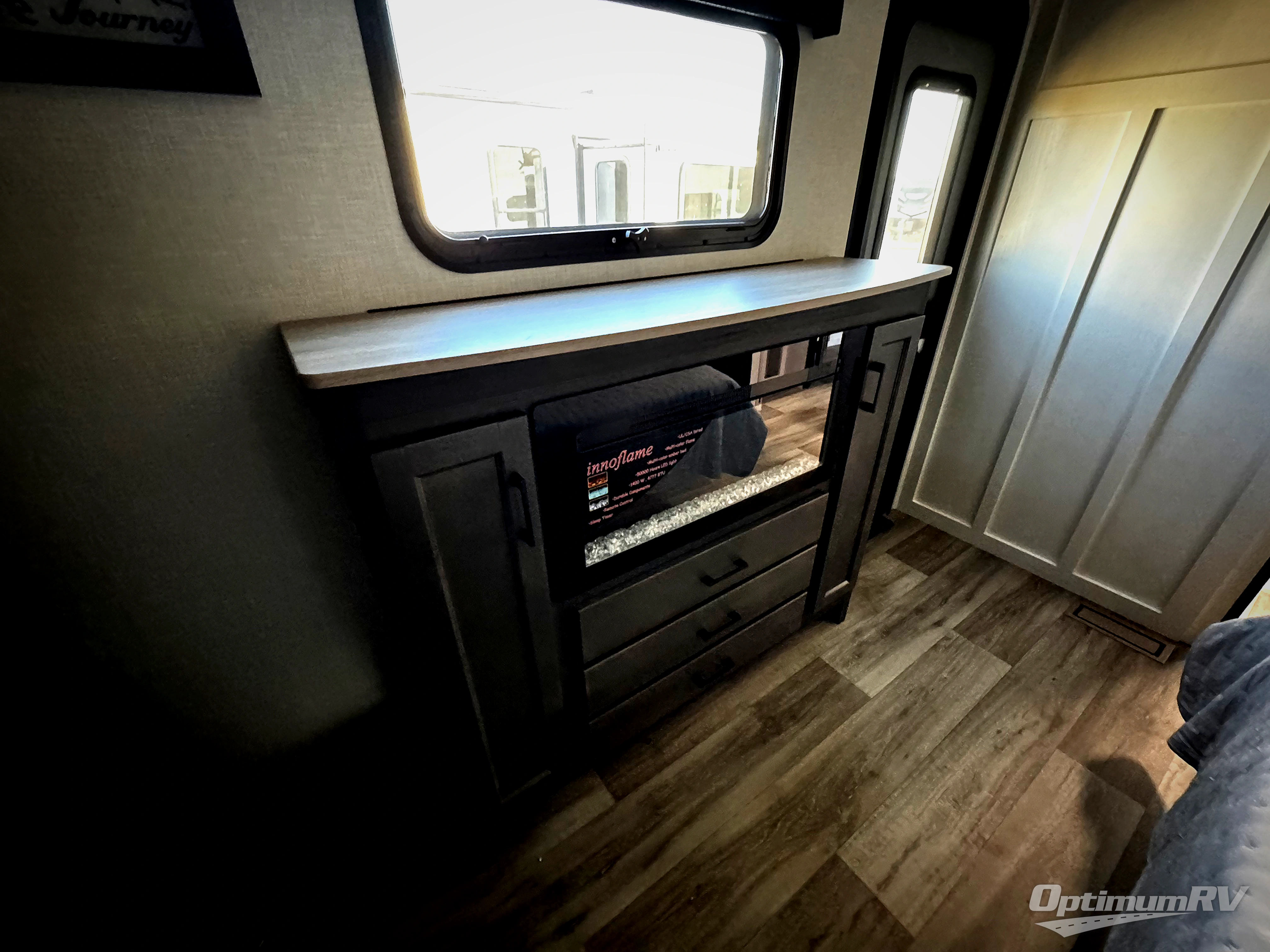 This travel trailer with dual entry doors allows you to enter in through the front master bedroom or the rear living area! You're sure to get a great night's rest on the king bed slide out, and you'll love the front bench seat with closets on either side for your things. There is also a dresser and a private door that leads to the walk-thru bath. Your crew can dine around the U-shaped dinette, relax on the 70" sofa slide out, and watch a movie with the Smart TV. There is also a fully equipped kitchen so you can make meals every day!